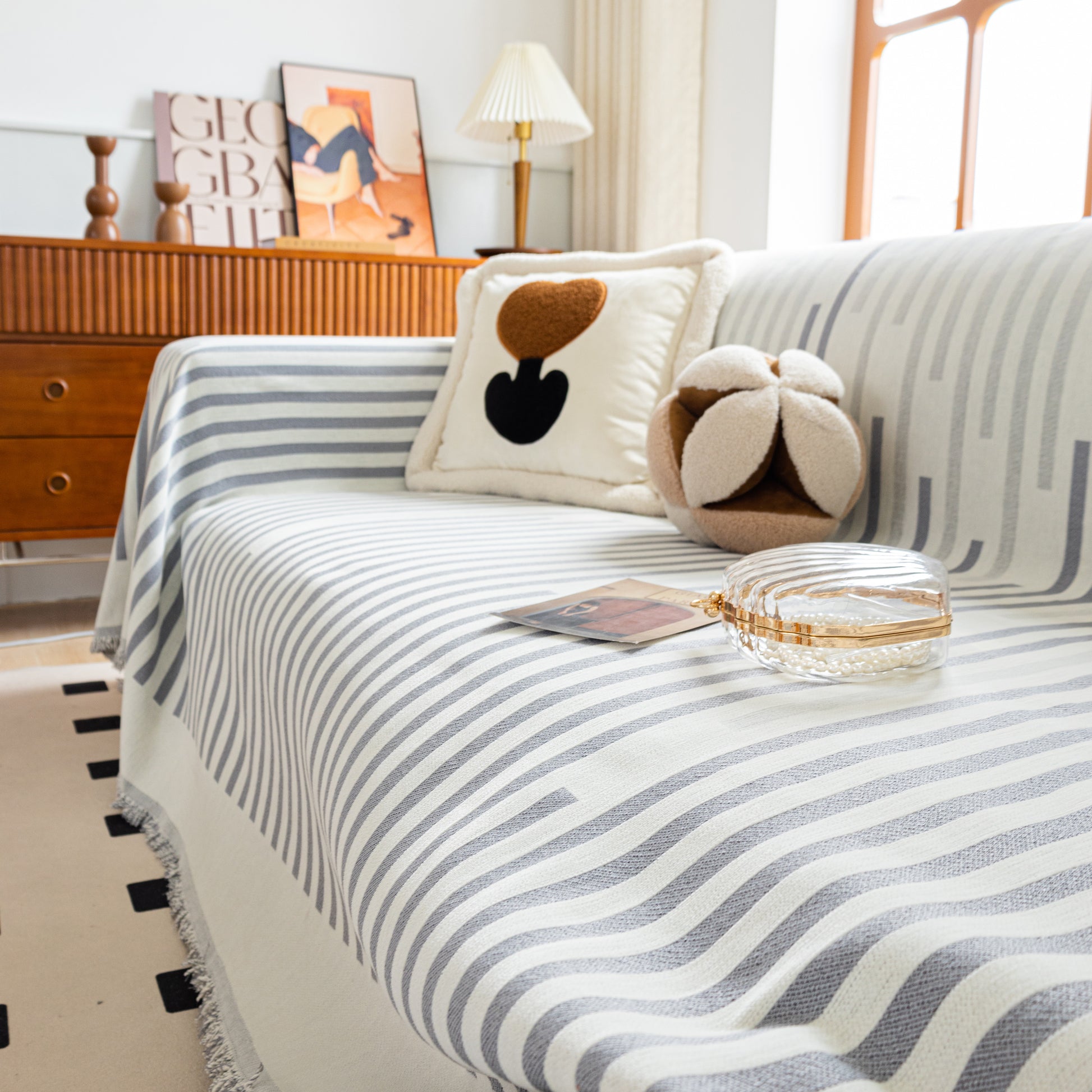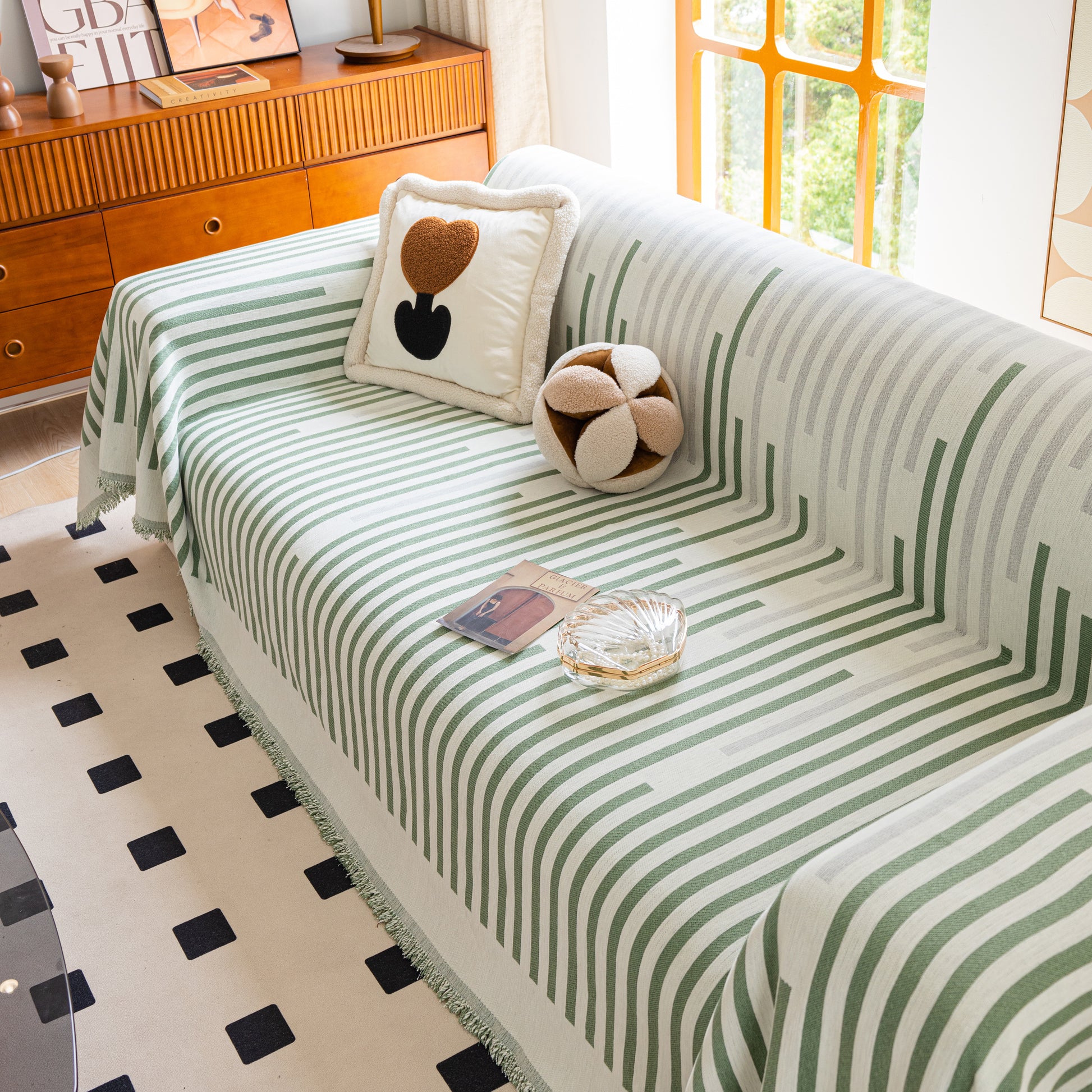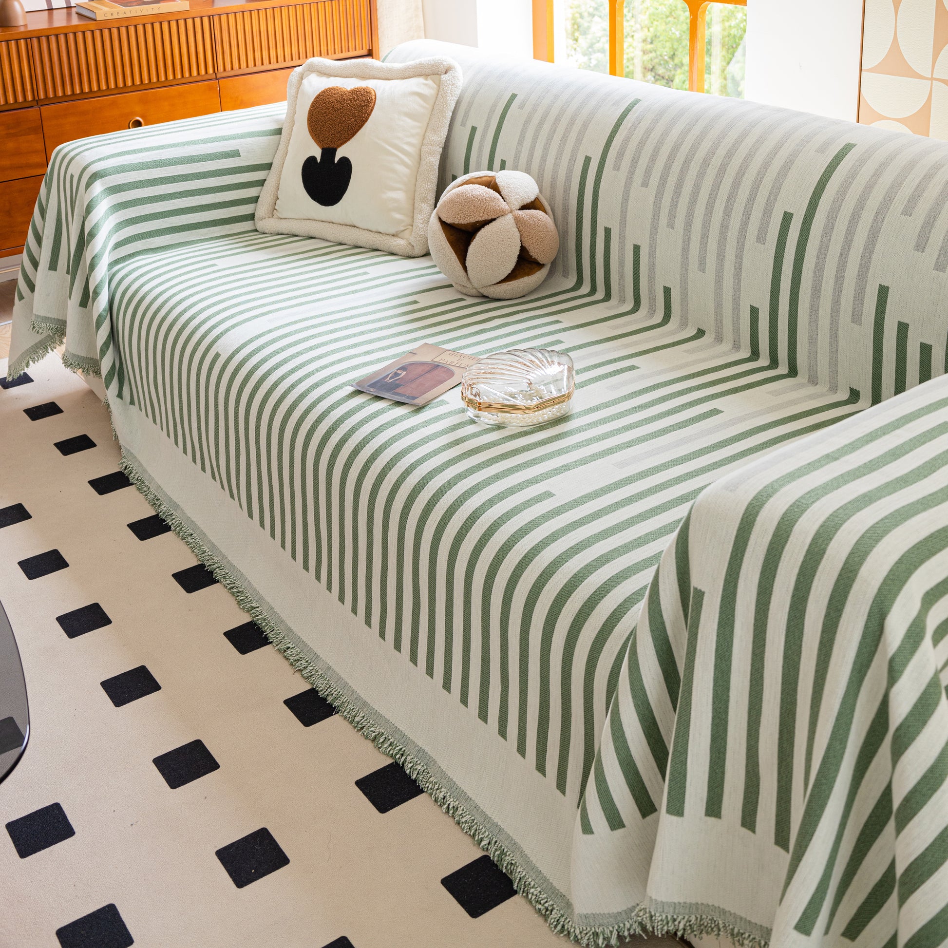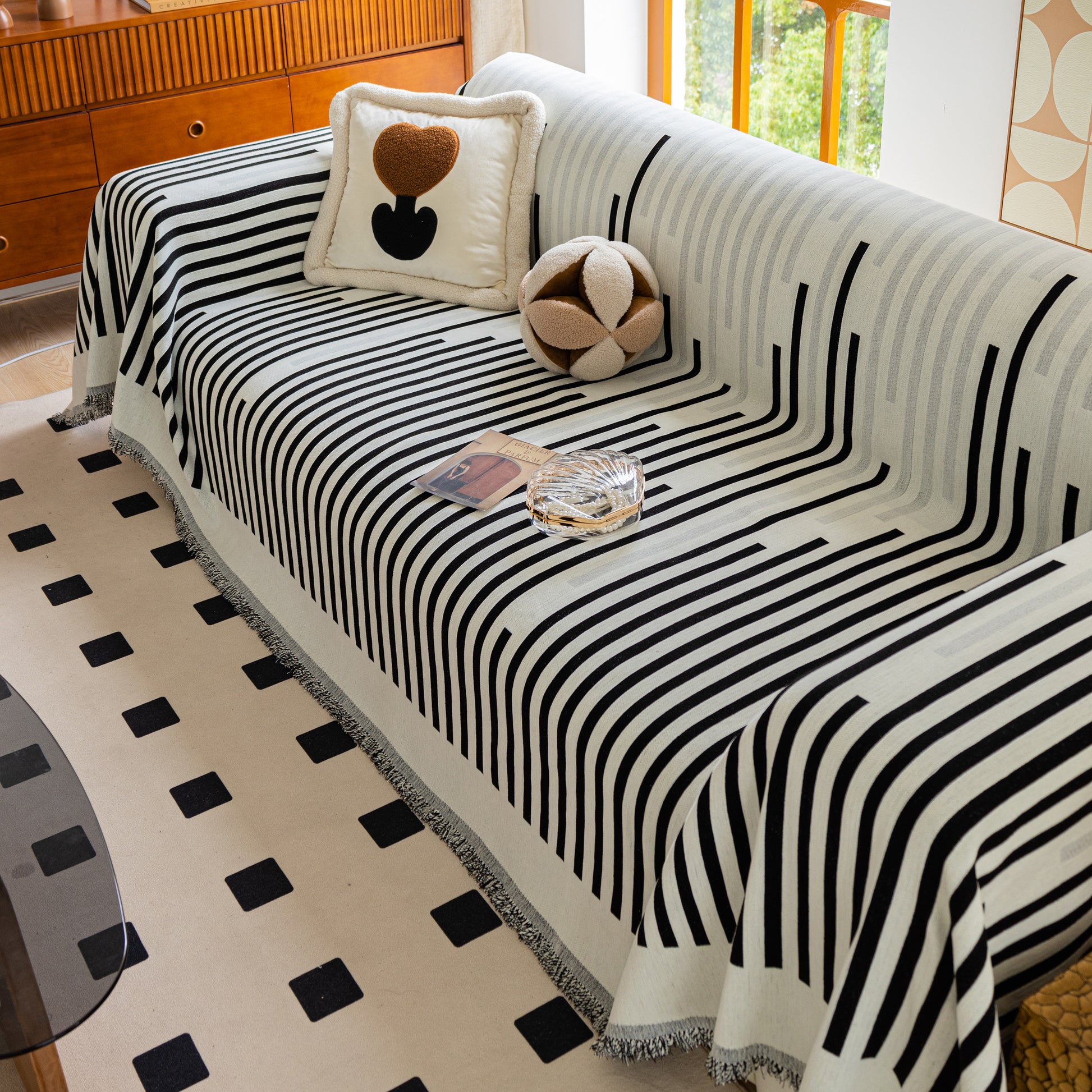 Boho Stripe Sectional Couch Cover Soft Chenille Sofa Slipcovers Blanket on The Sofa for Living Room