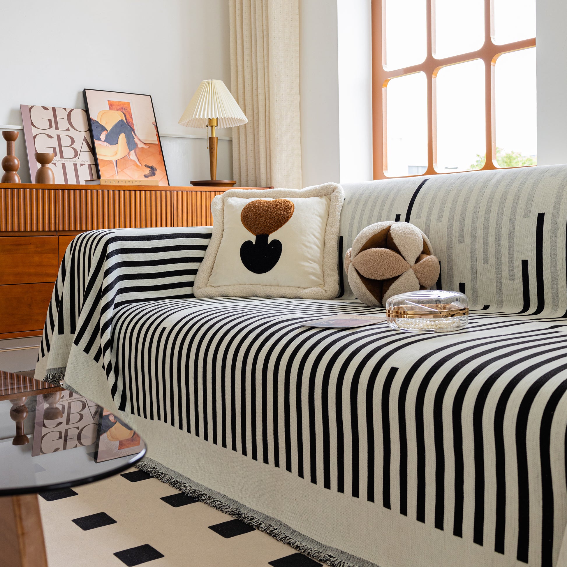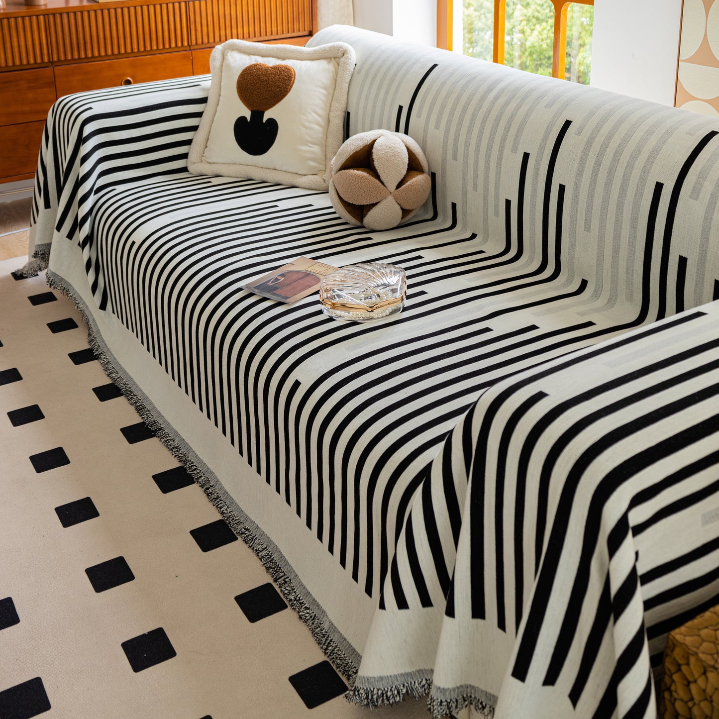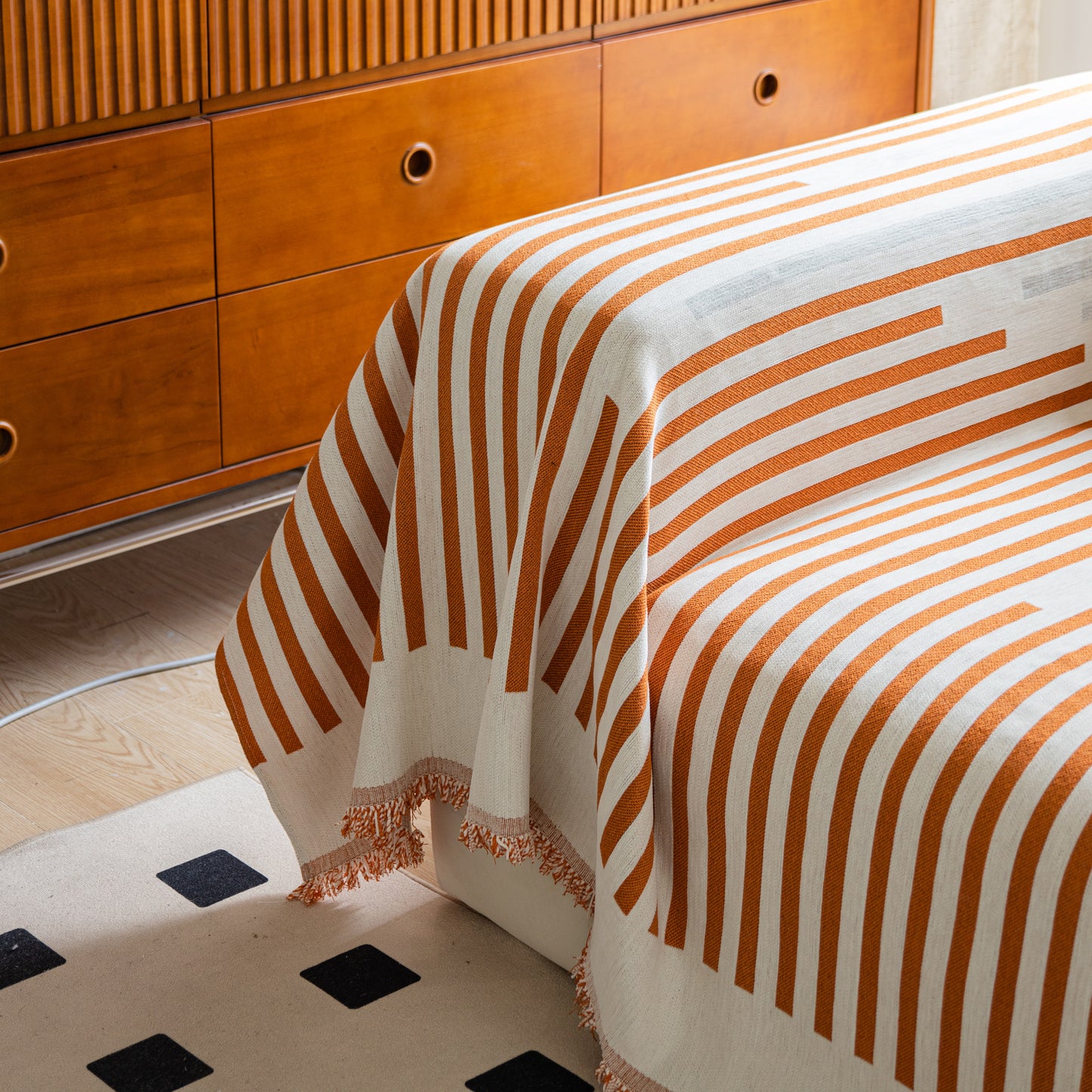 Boho Stripe Sectional Couch Cover Soft Chenille Sofa Slipcovers Blanket on The Sofa for Living Room