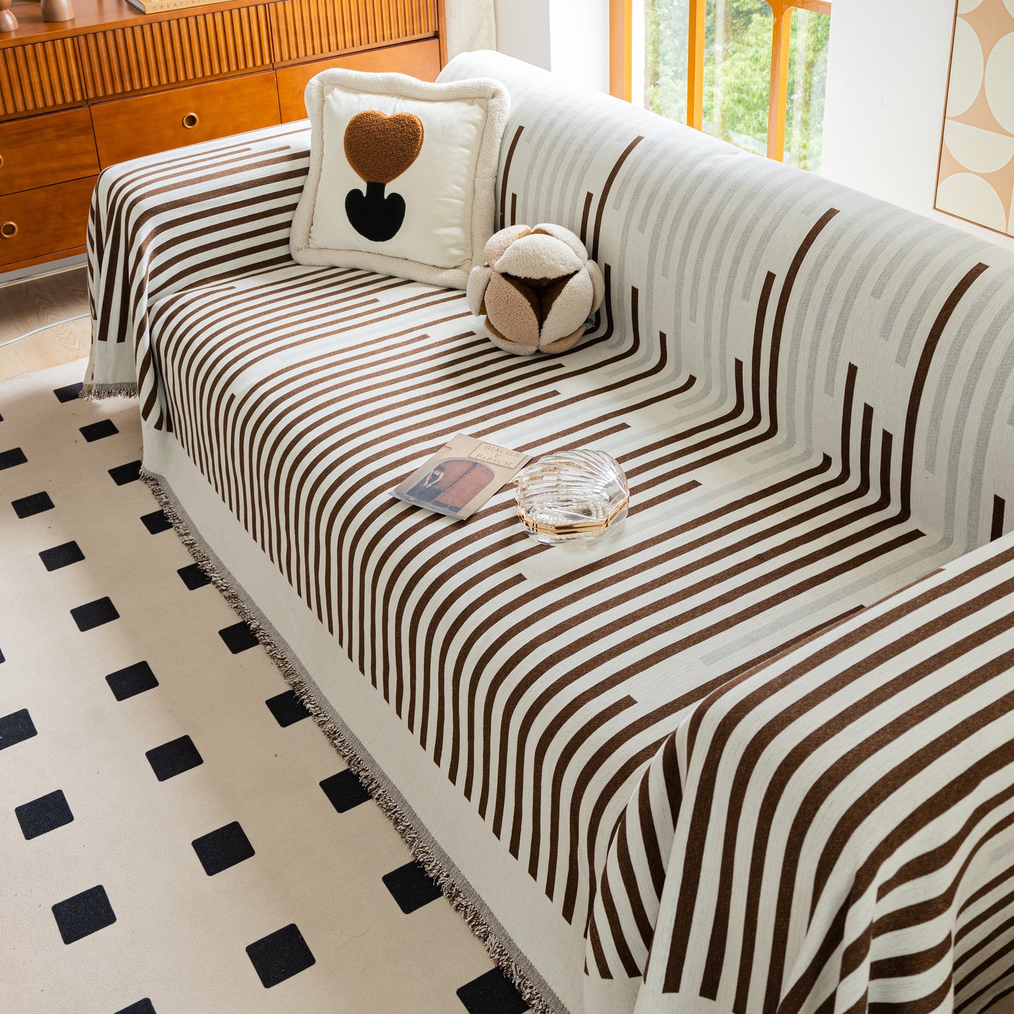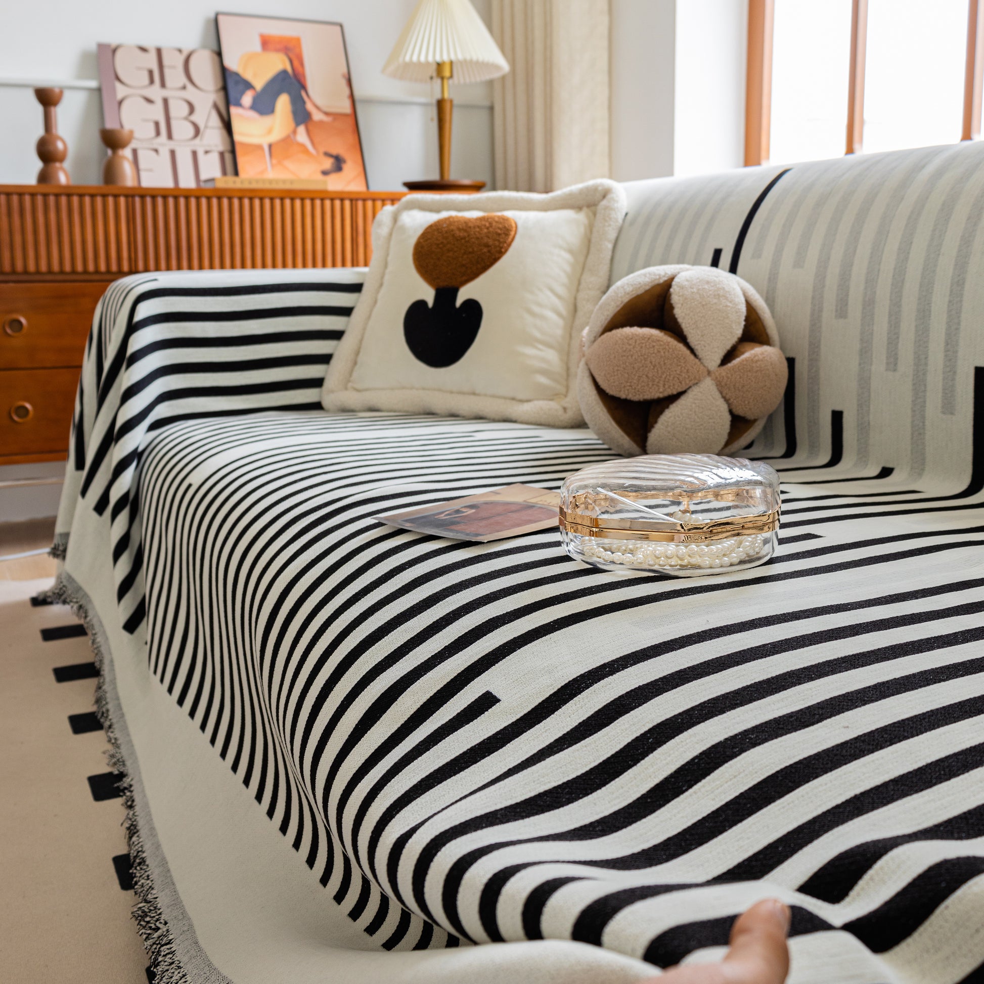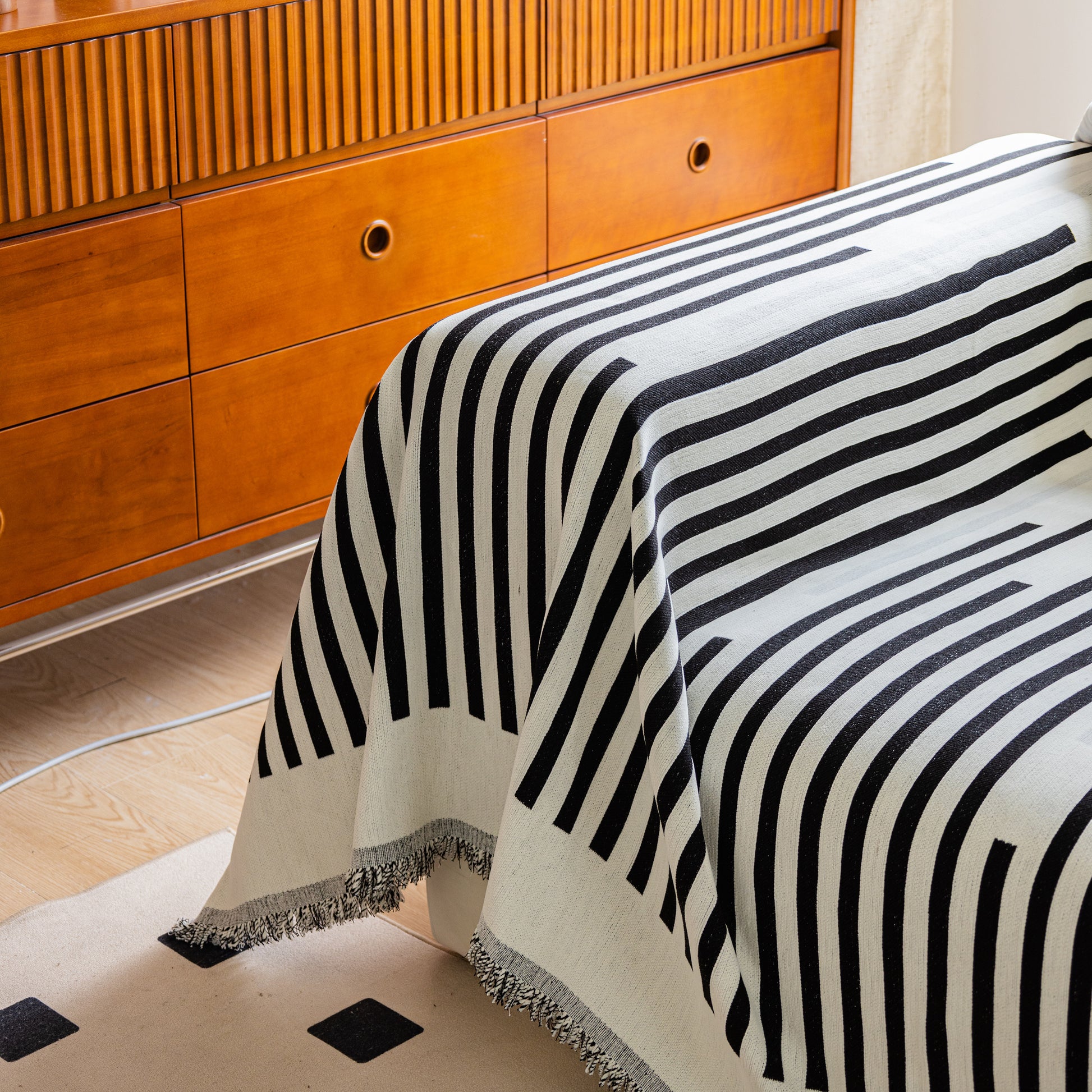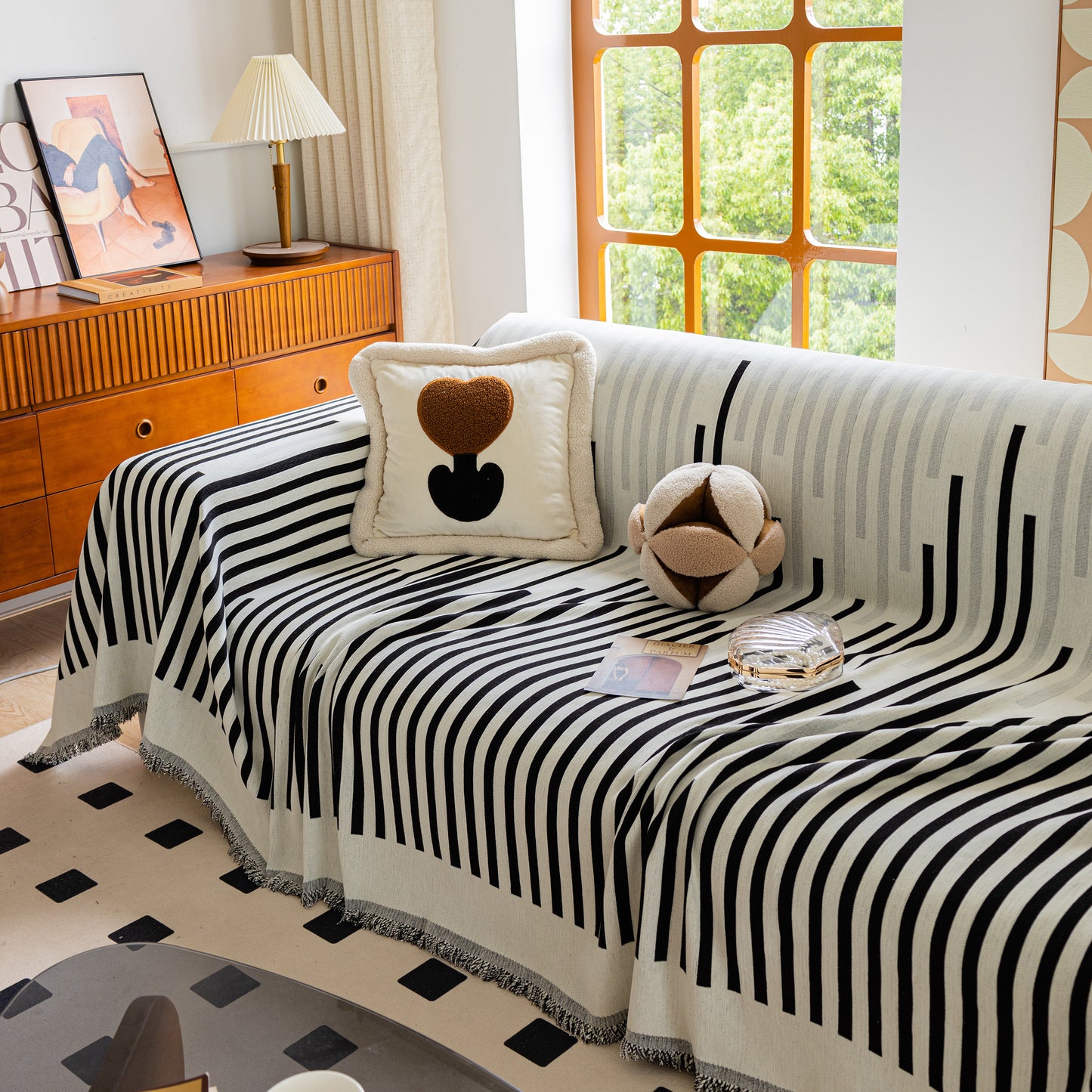 Boho Stripe Sectional Couch Cover Soft Chenille Sofa Slipcovers Blanket on The Sofa for Living Room