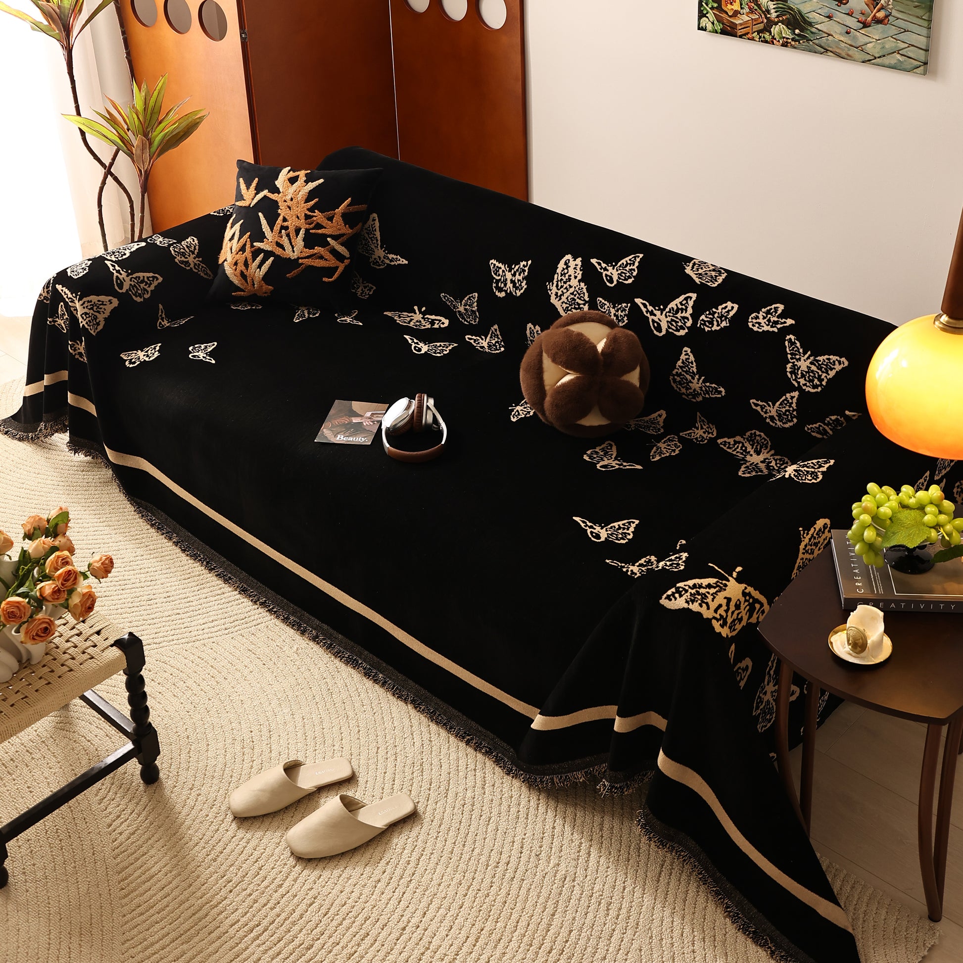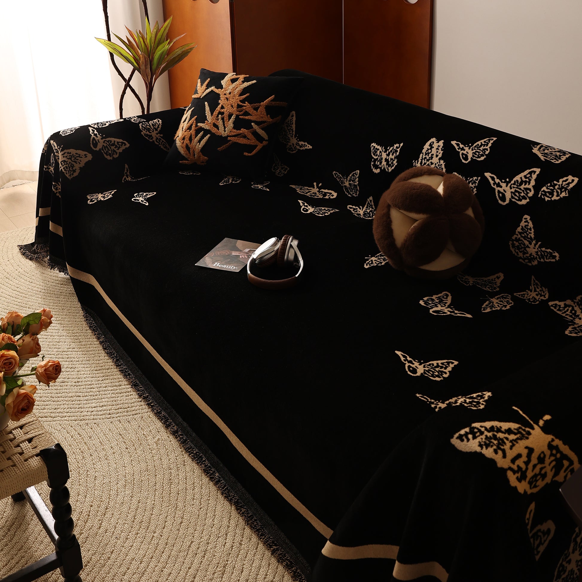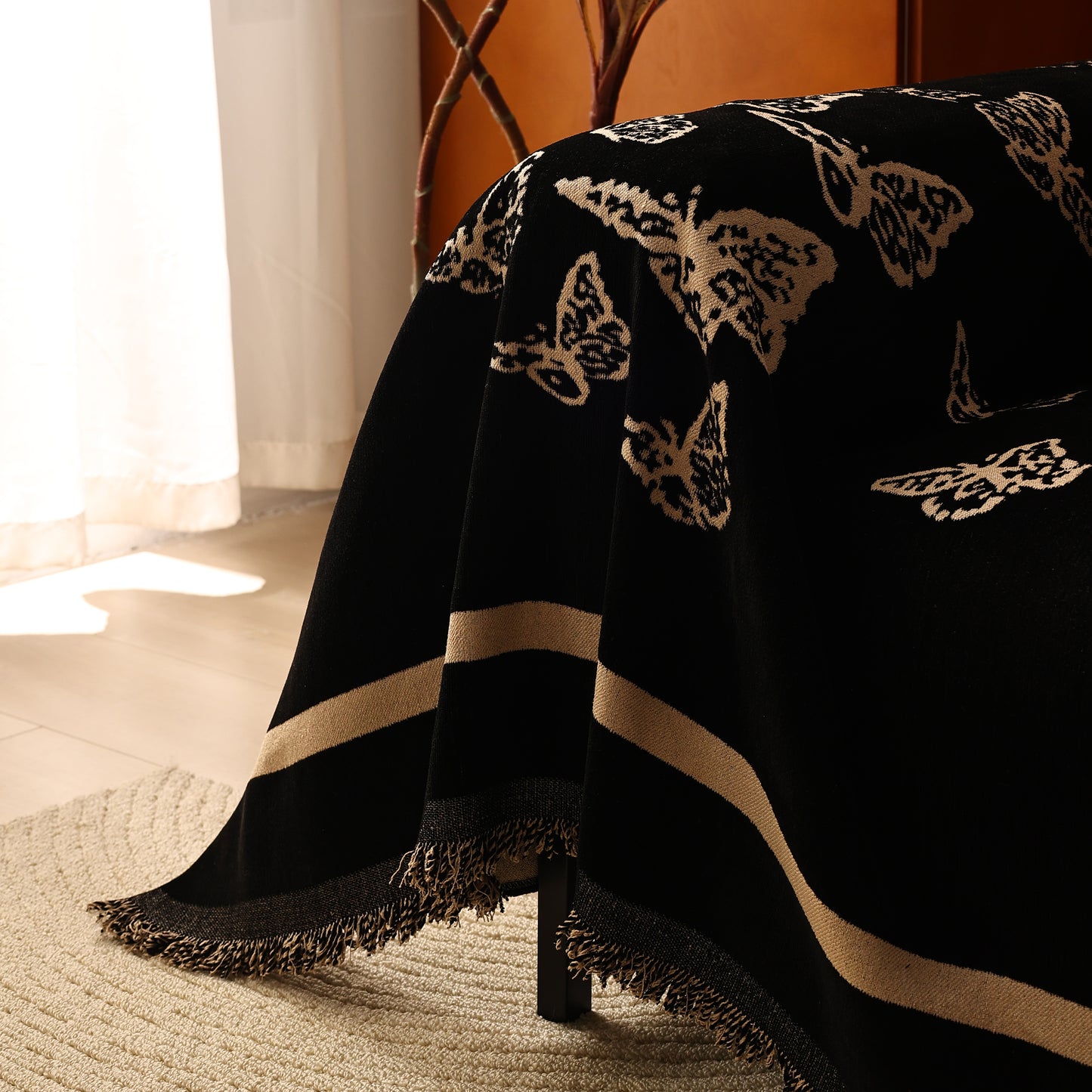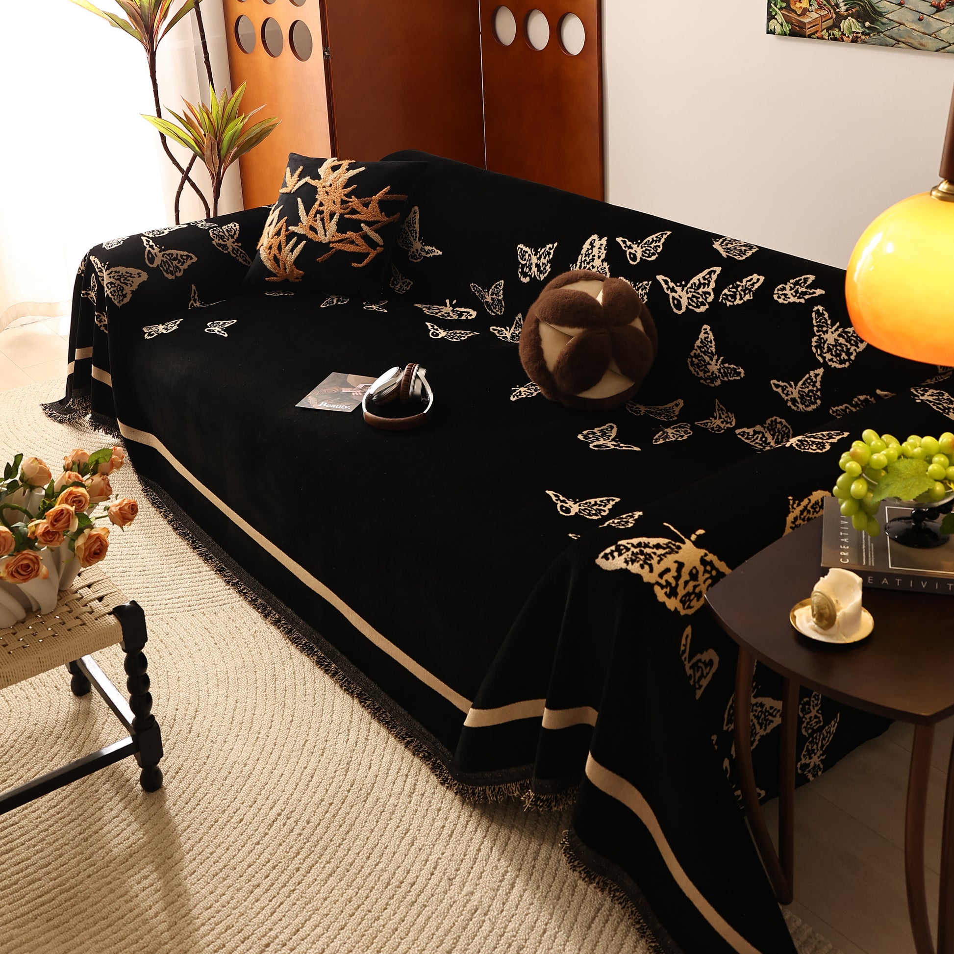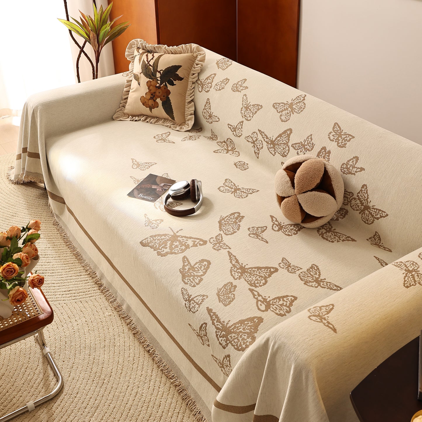 Bring a blend of nature and luxury to your home with the Butterfly Jacquard Soft Couch Blanket. The reversible chenille fabric showcases elegant butterfly motifs, making it both a stylish sofa protector and a cozy addition to your living space.