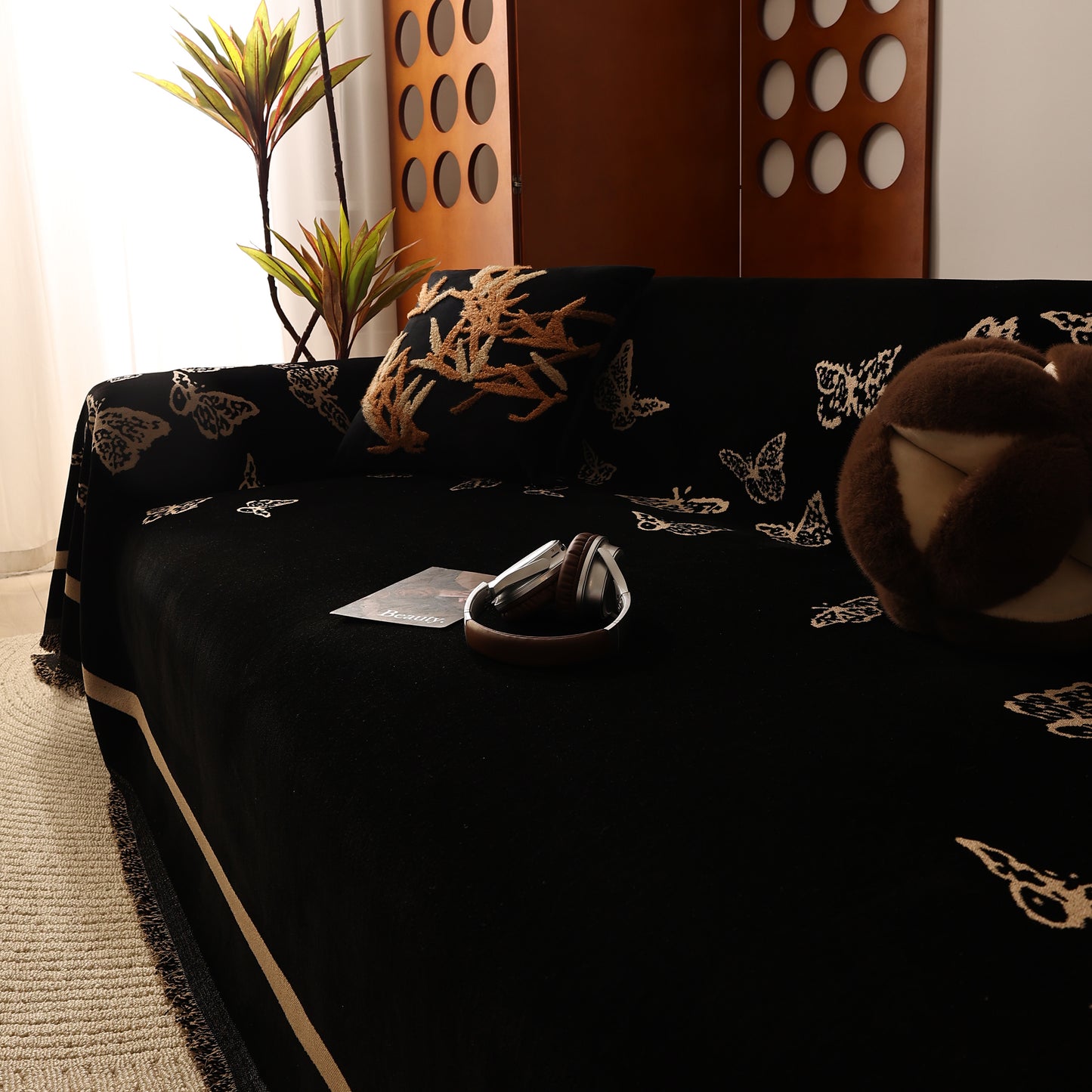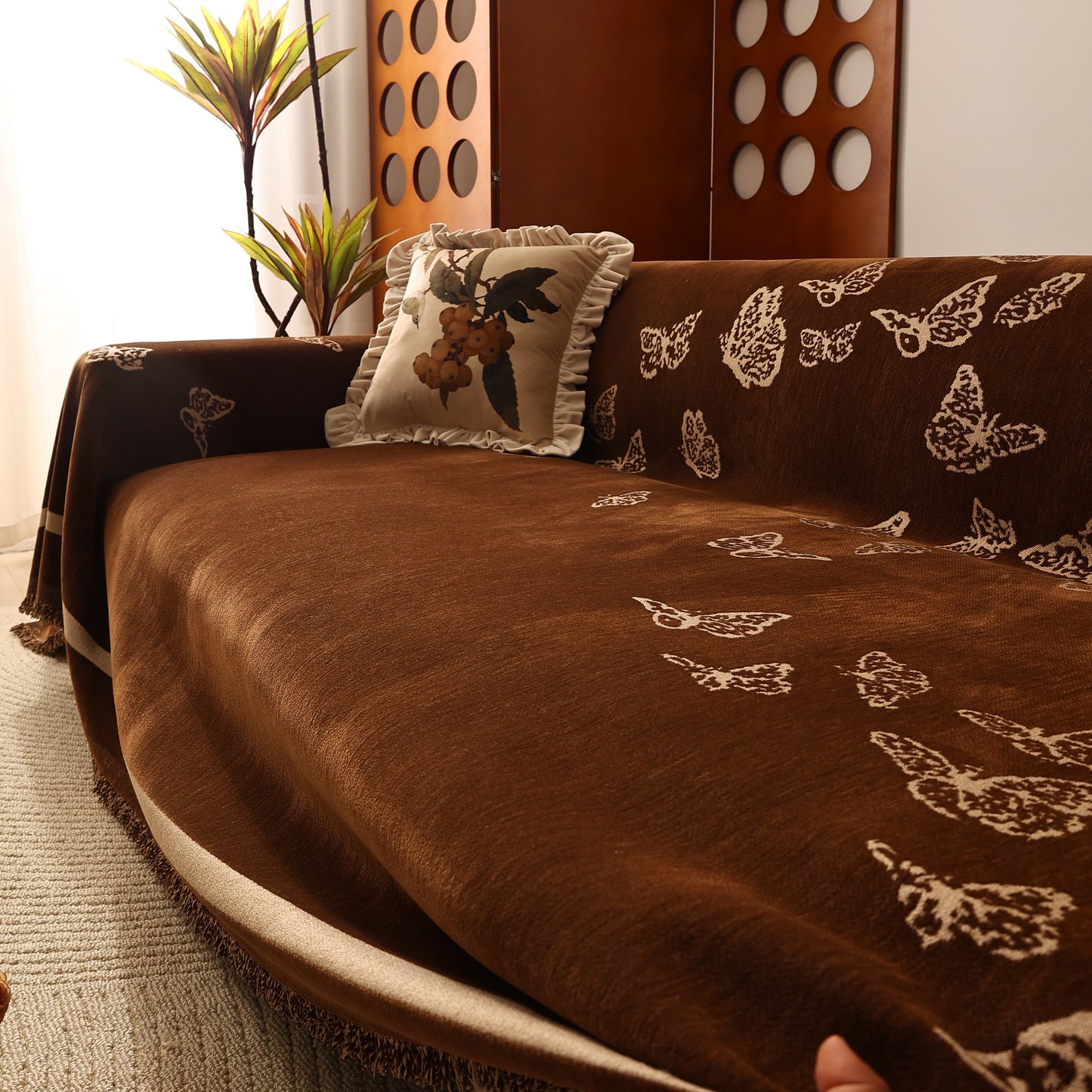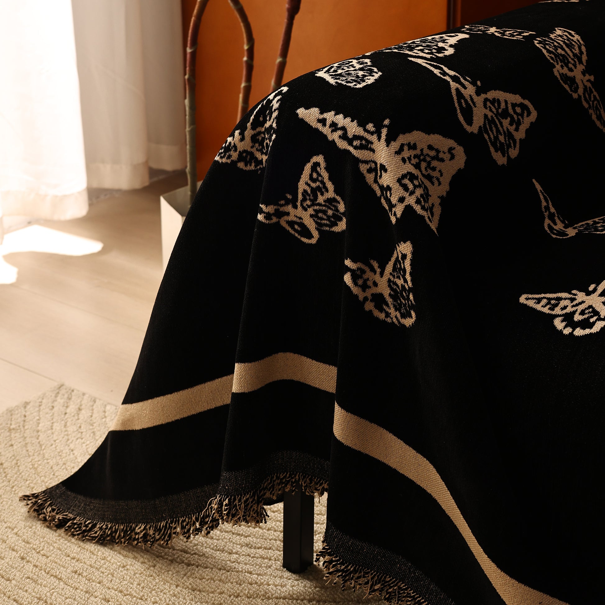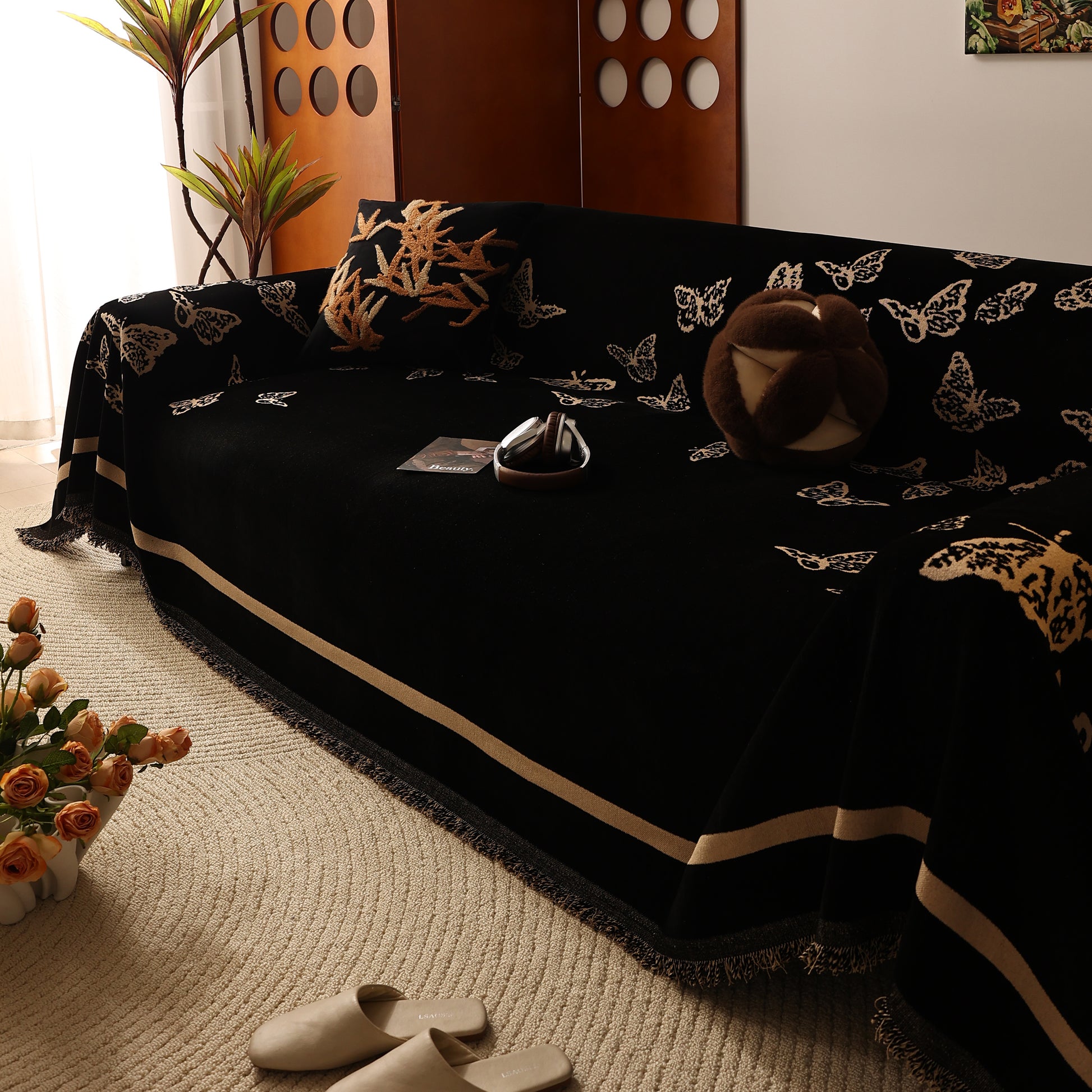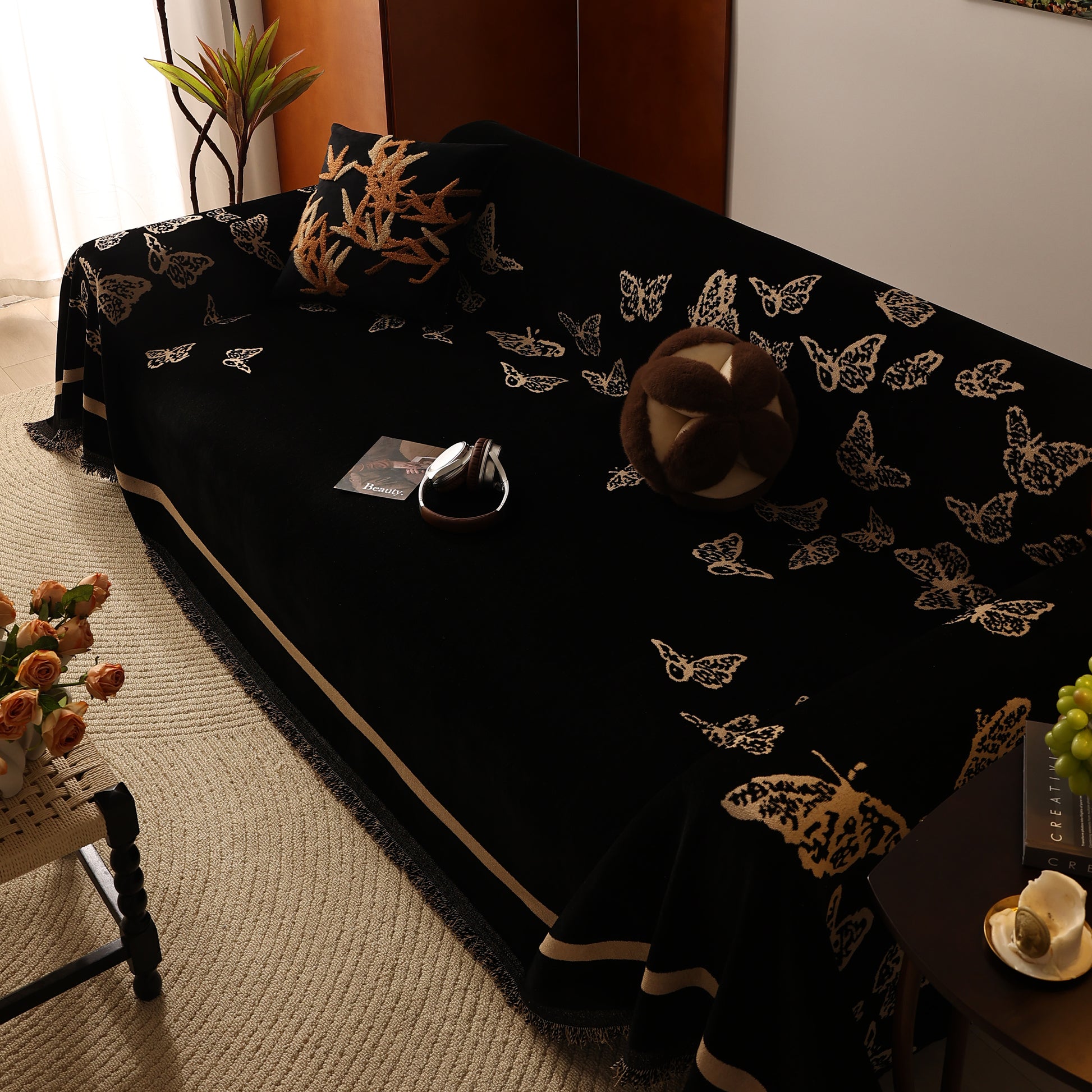 Bring a blend of nature and luxury to your home with the Butterfly Jacquard Soft Couch Blanket. The reversible chenille fabric showcases elegant butterfly motifs, making it both a stylish sofa protector and a cozy addition to your living space.