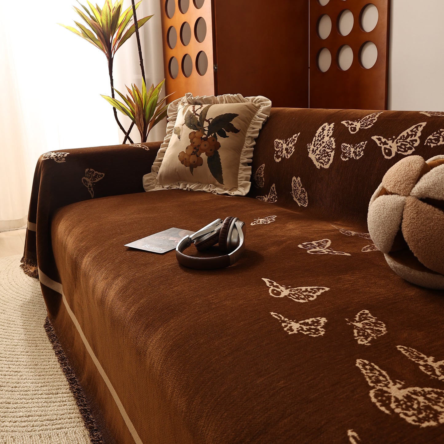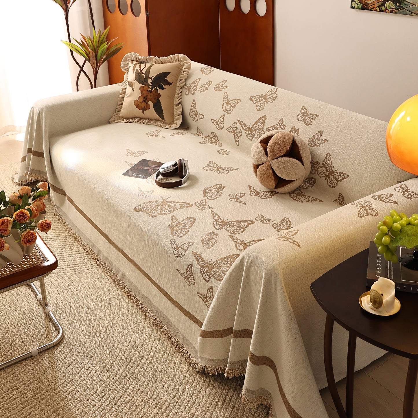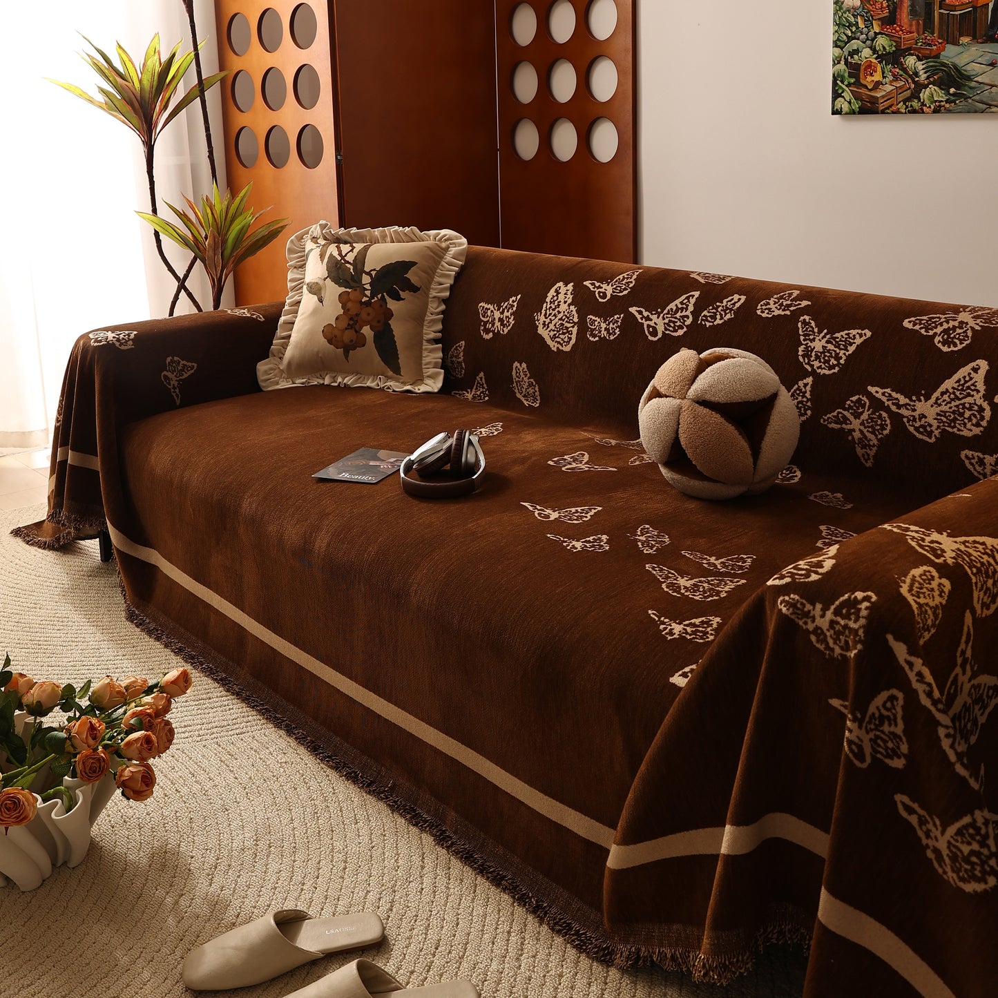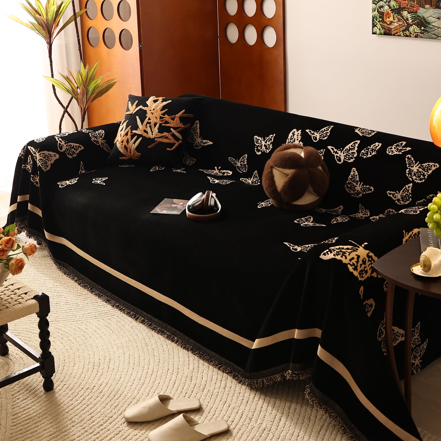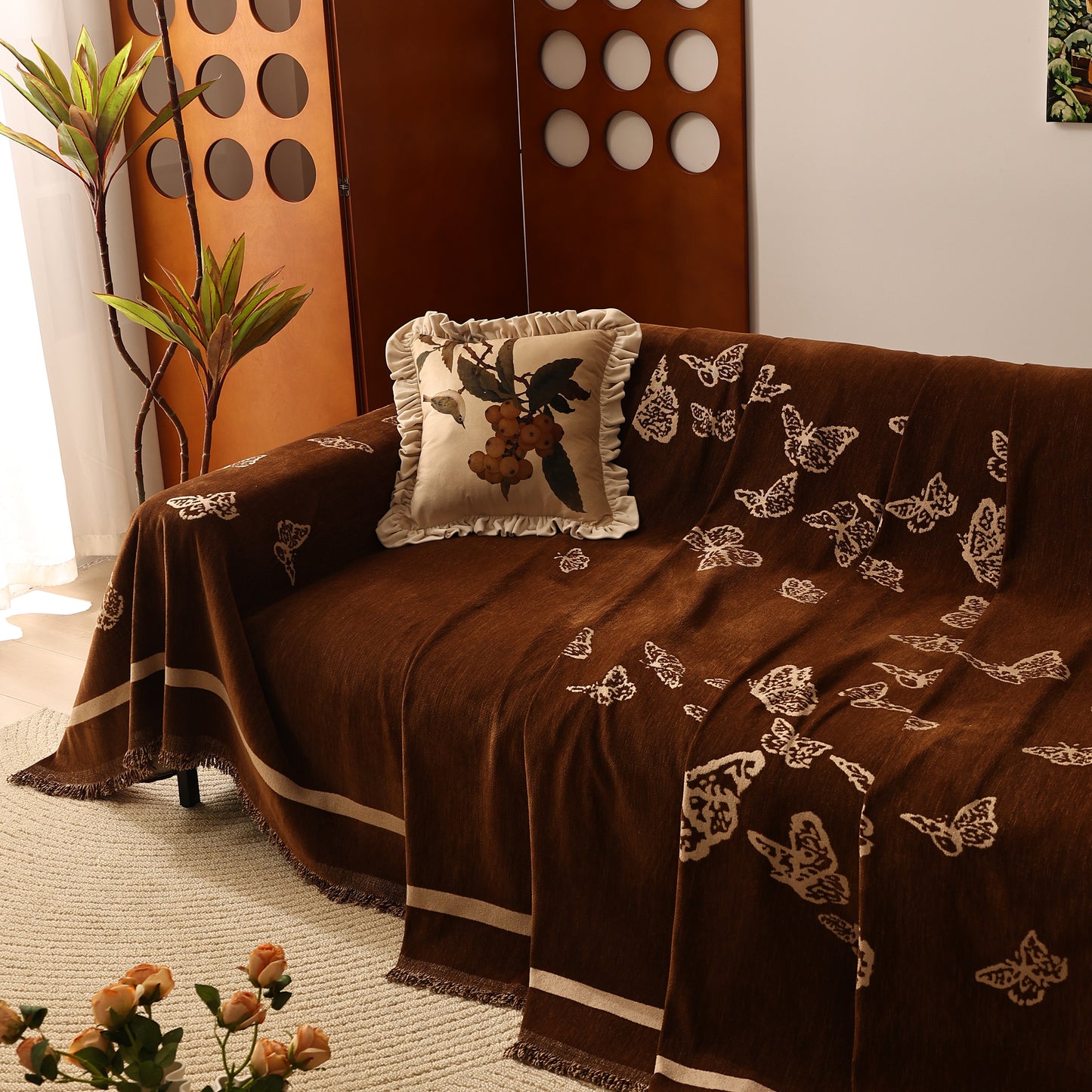 Bring a blend of nature and luxury to your home with the Butterfly Jacquard Soft Couch Blanket. The reversible chenille fabric showcases elegant butterfly motifs, making it both a stylish sofa protector and a cozy addition to your living space.