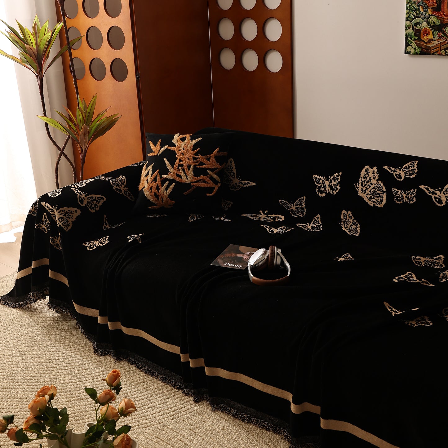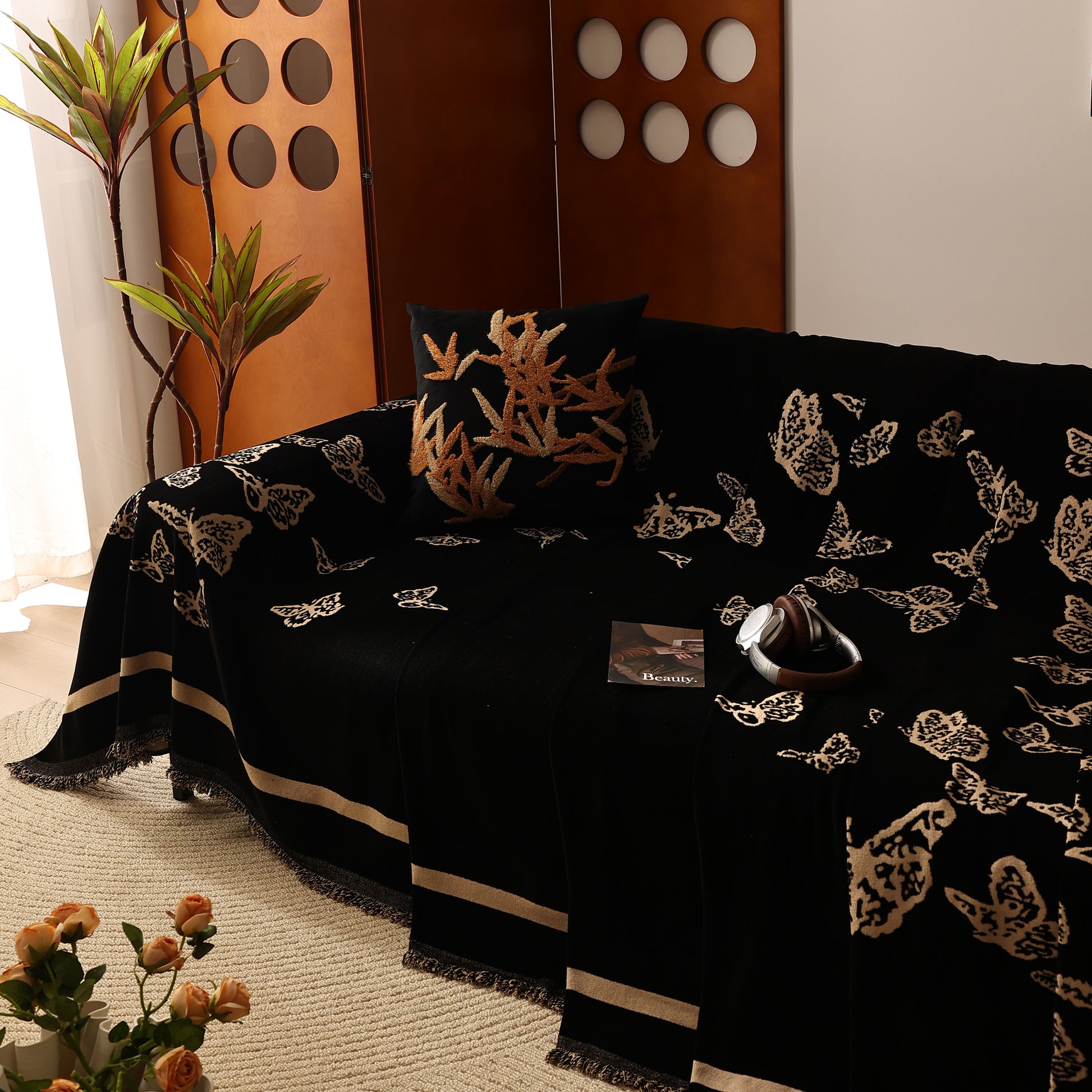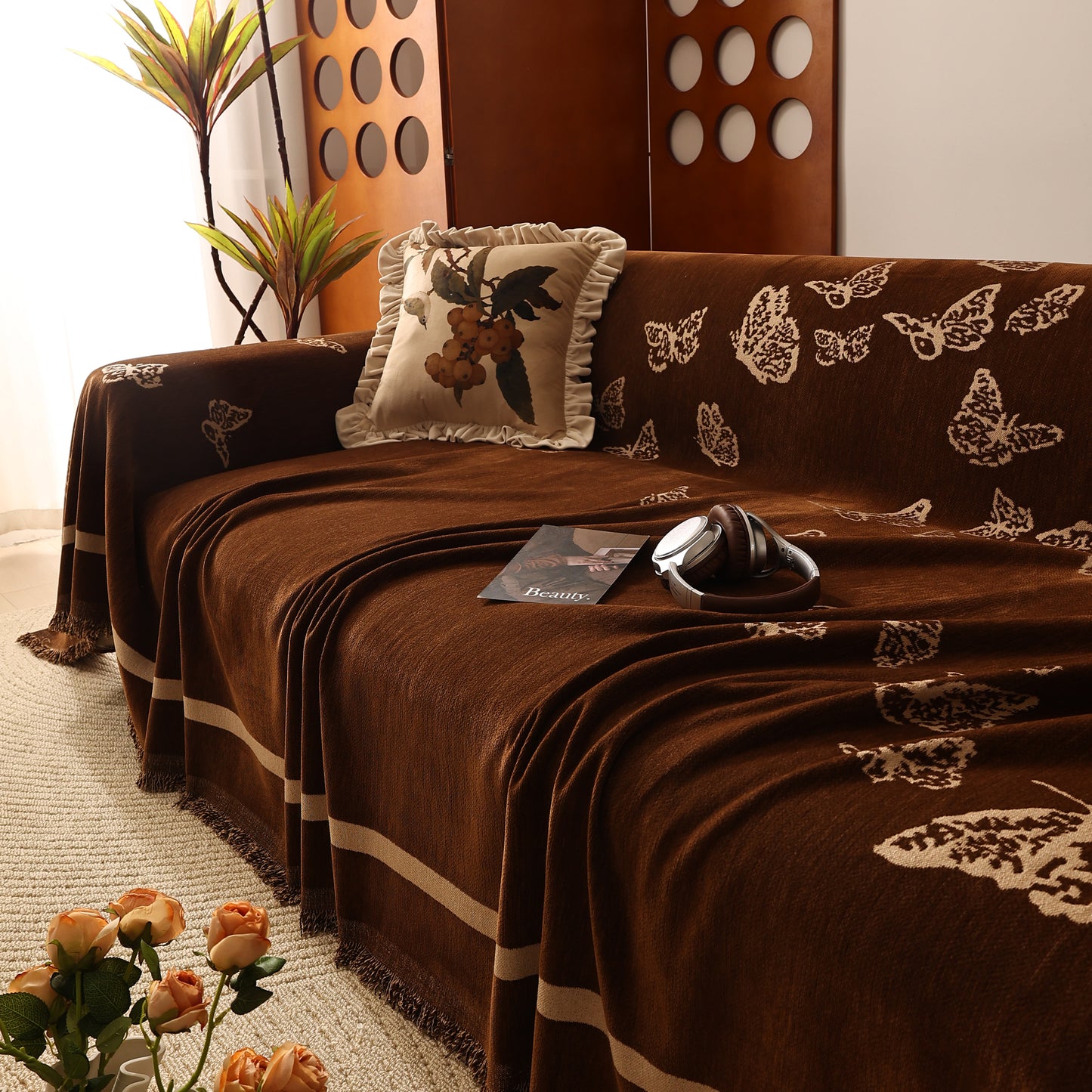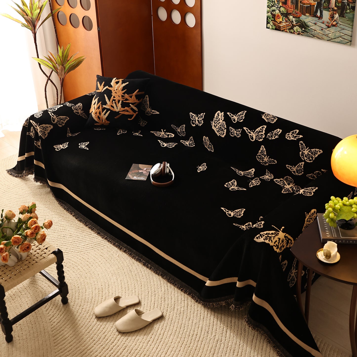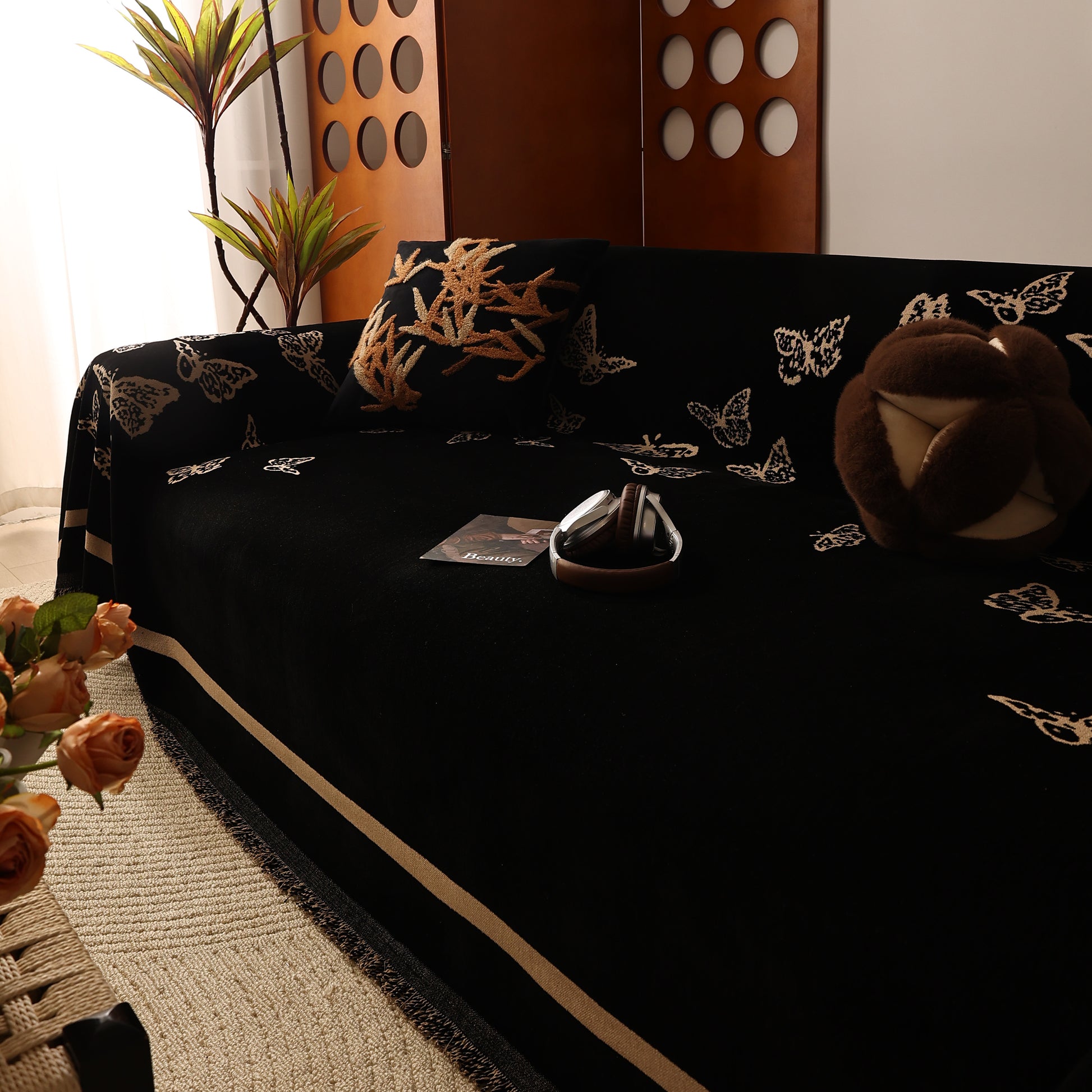 Bring a blend of nature and luxury to your home with the Butterfly Jacquard Soft Couch Blanket. The reversible chenille fabric showcases elegant butterfly motifs, making it both a stylish sofa protector and a cozy addition to your living space.