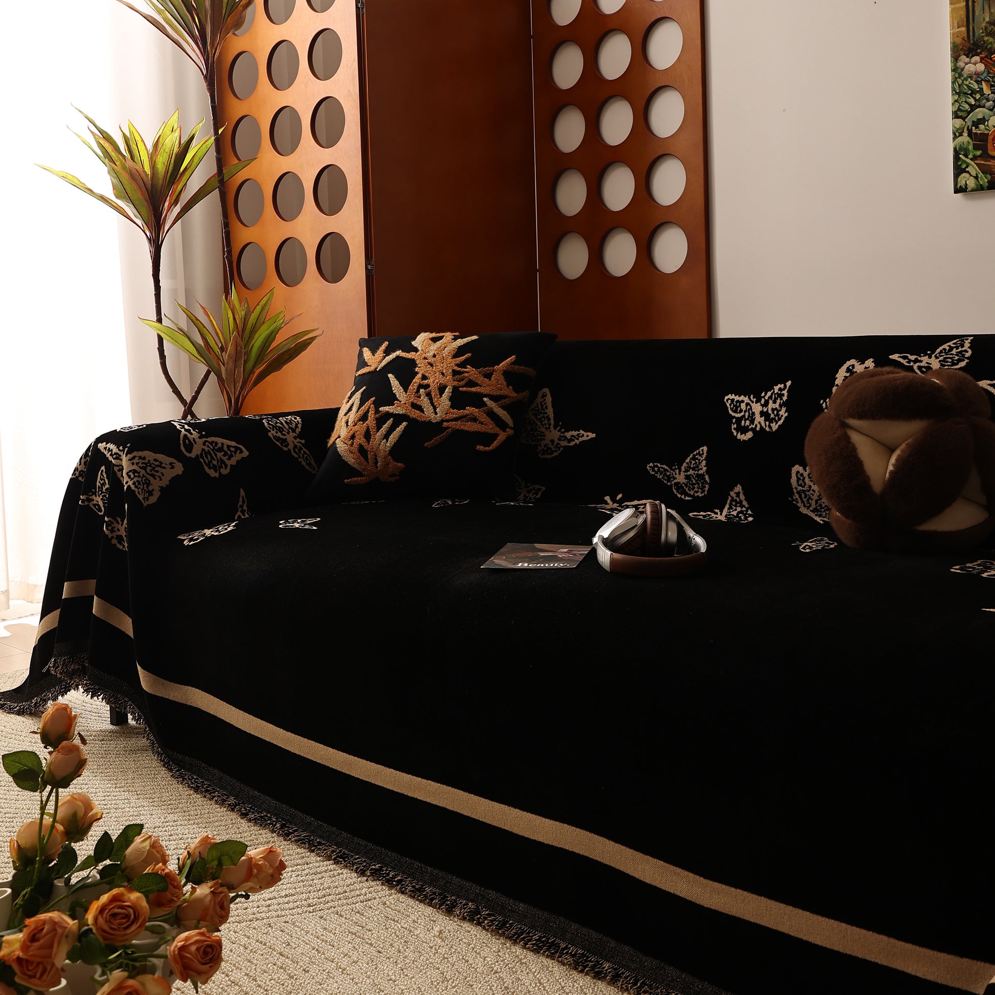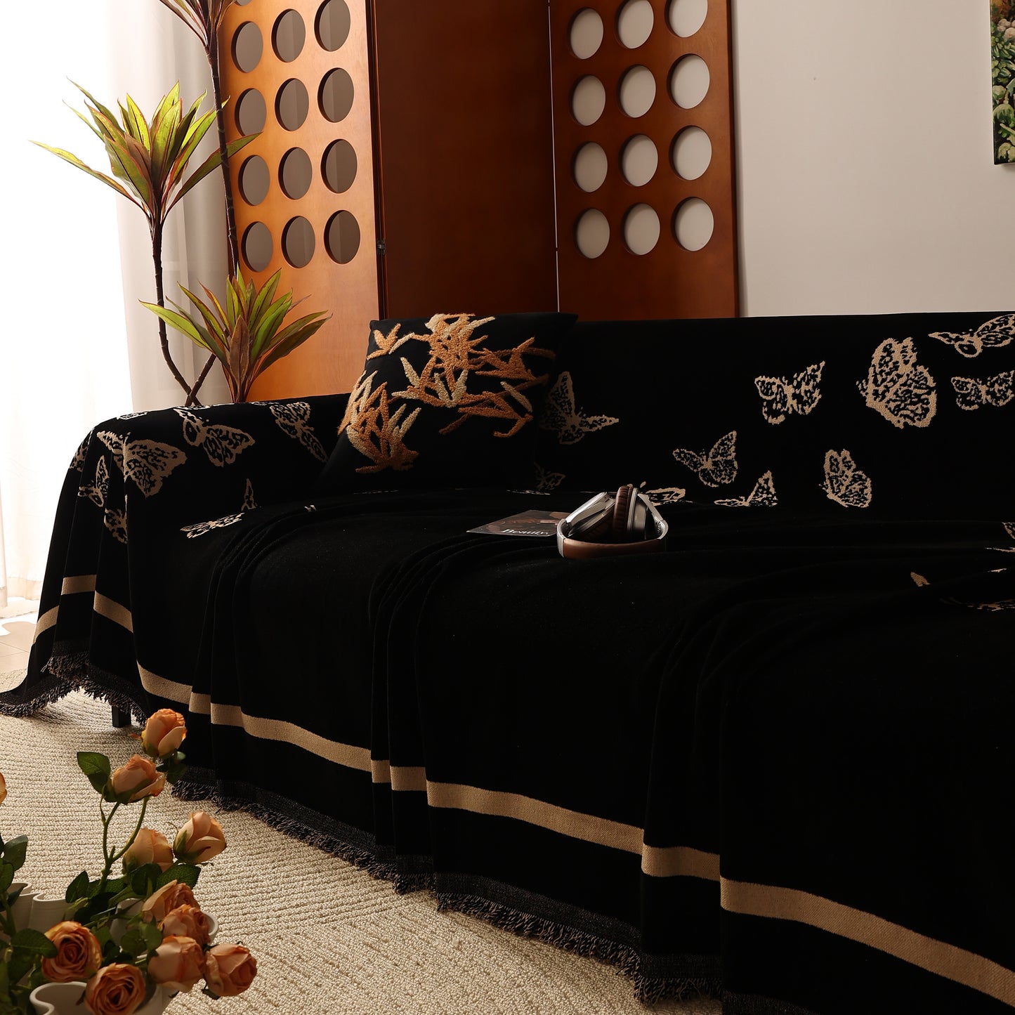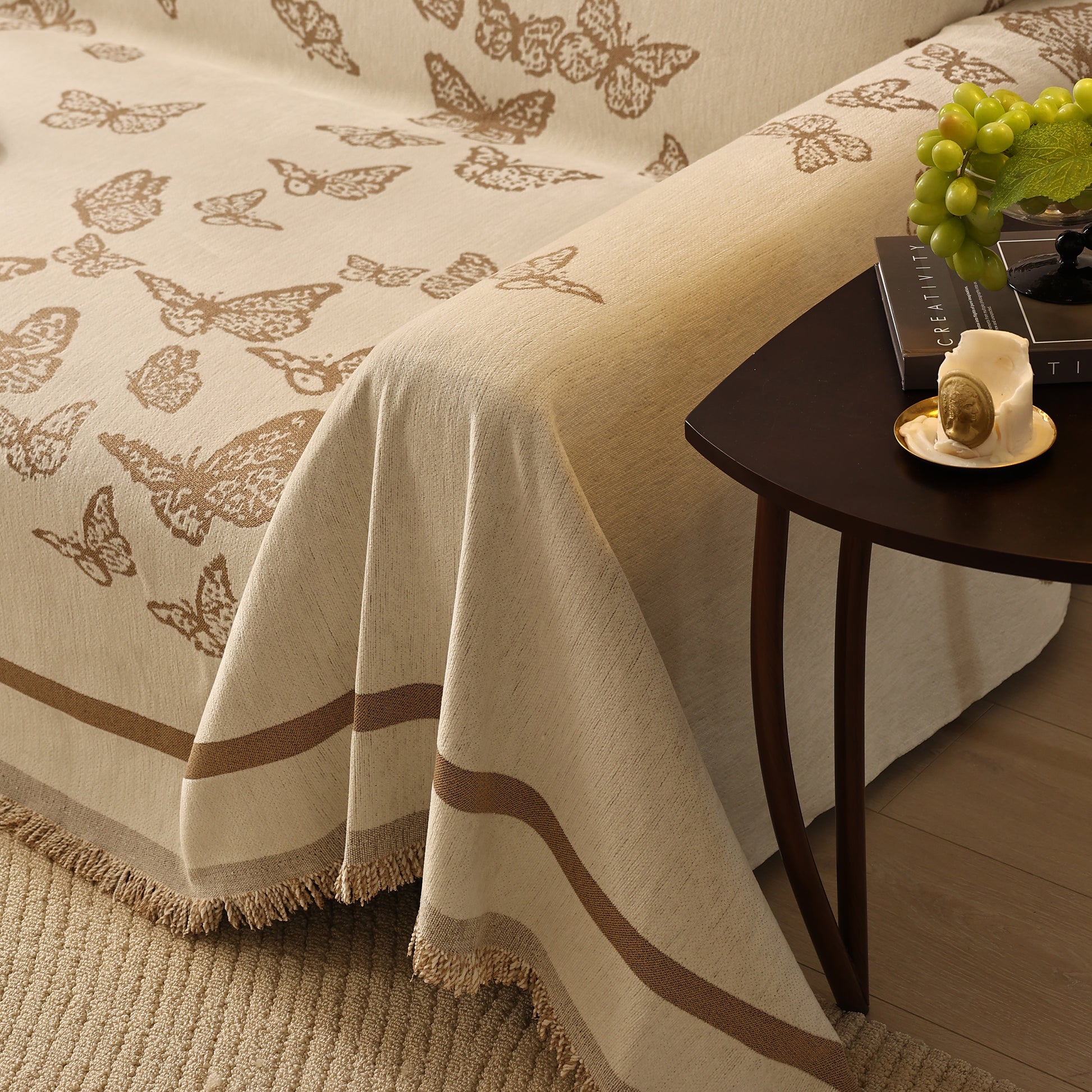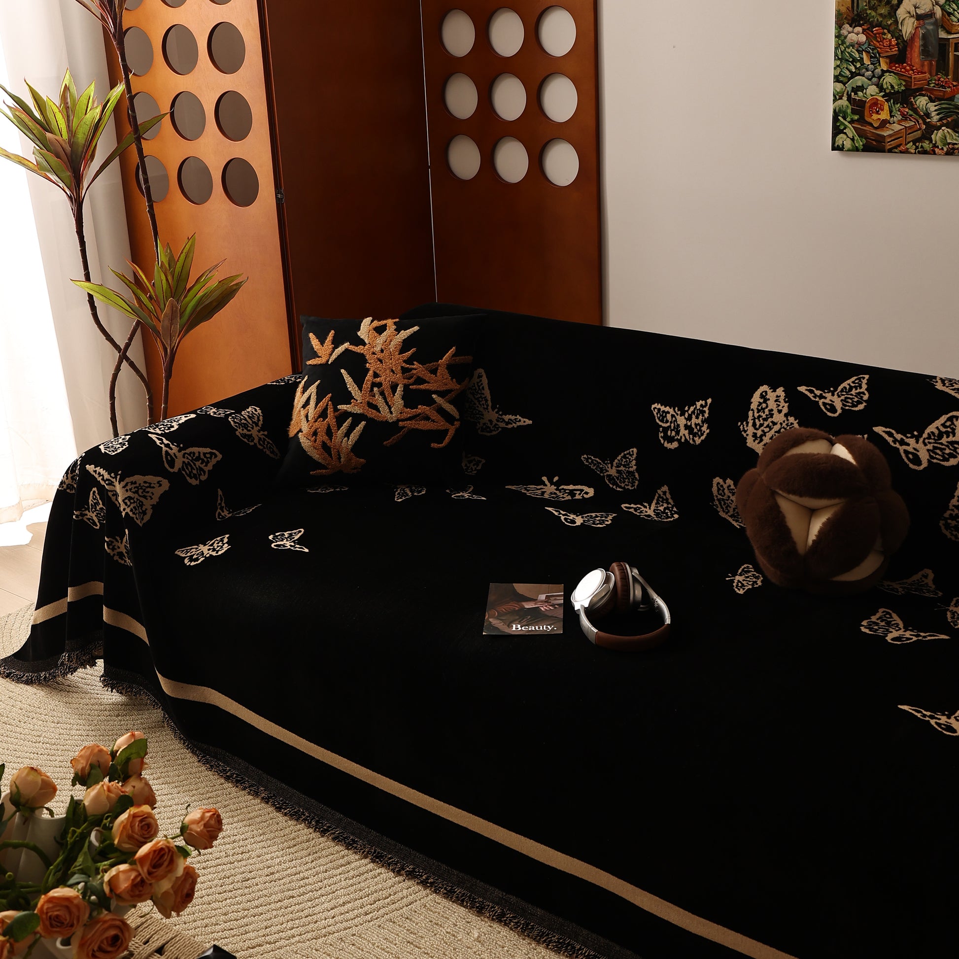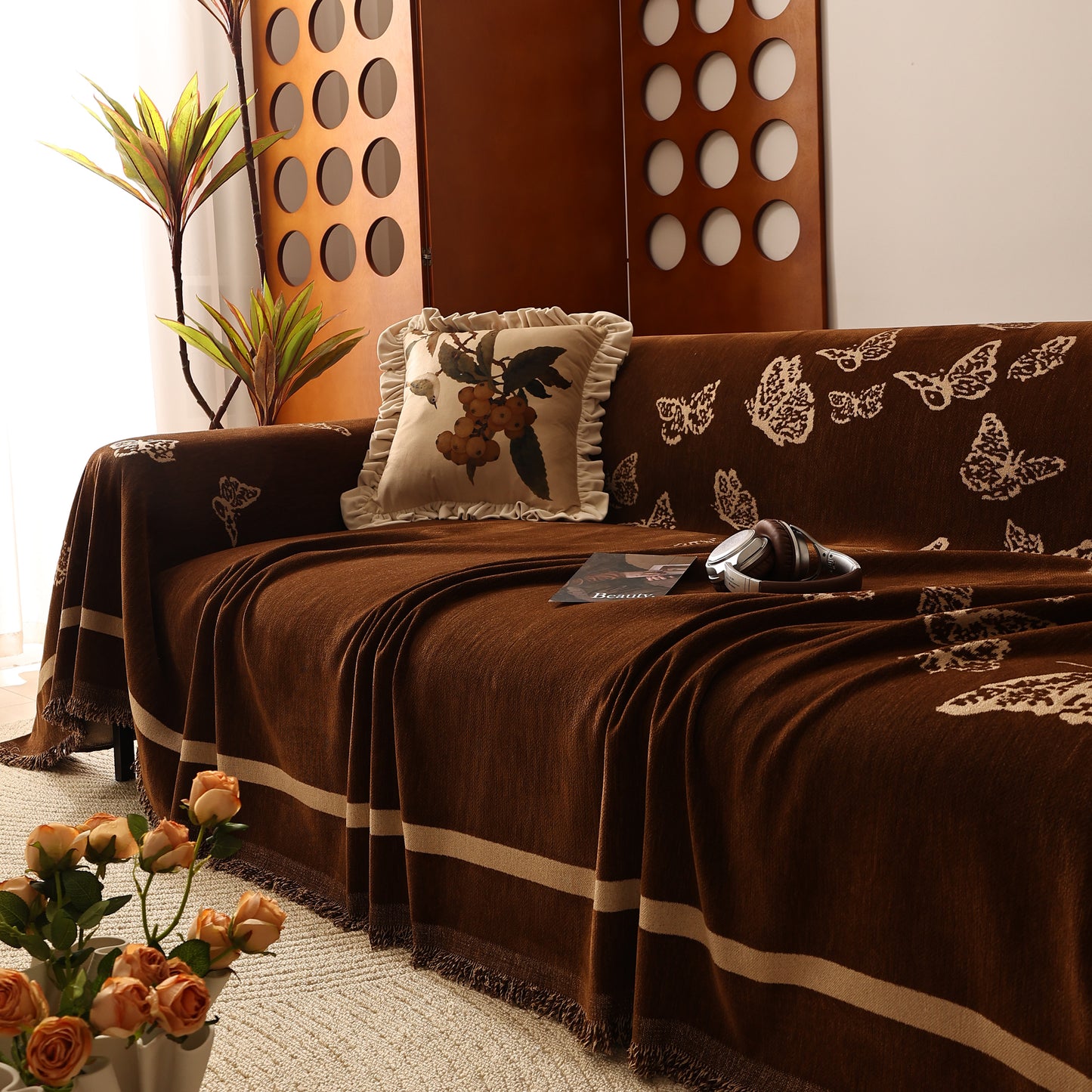 Bring a blend of nature and luxury to your home with the Butterfly Jacquard Soft Couch Blanket. The reversible chenille fabric showcases elegant butterfly motifs, making it both a stylish sofa protector and a cozy addition to your living space.