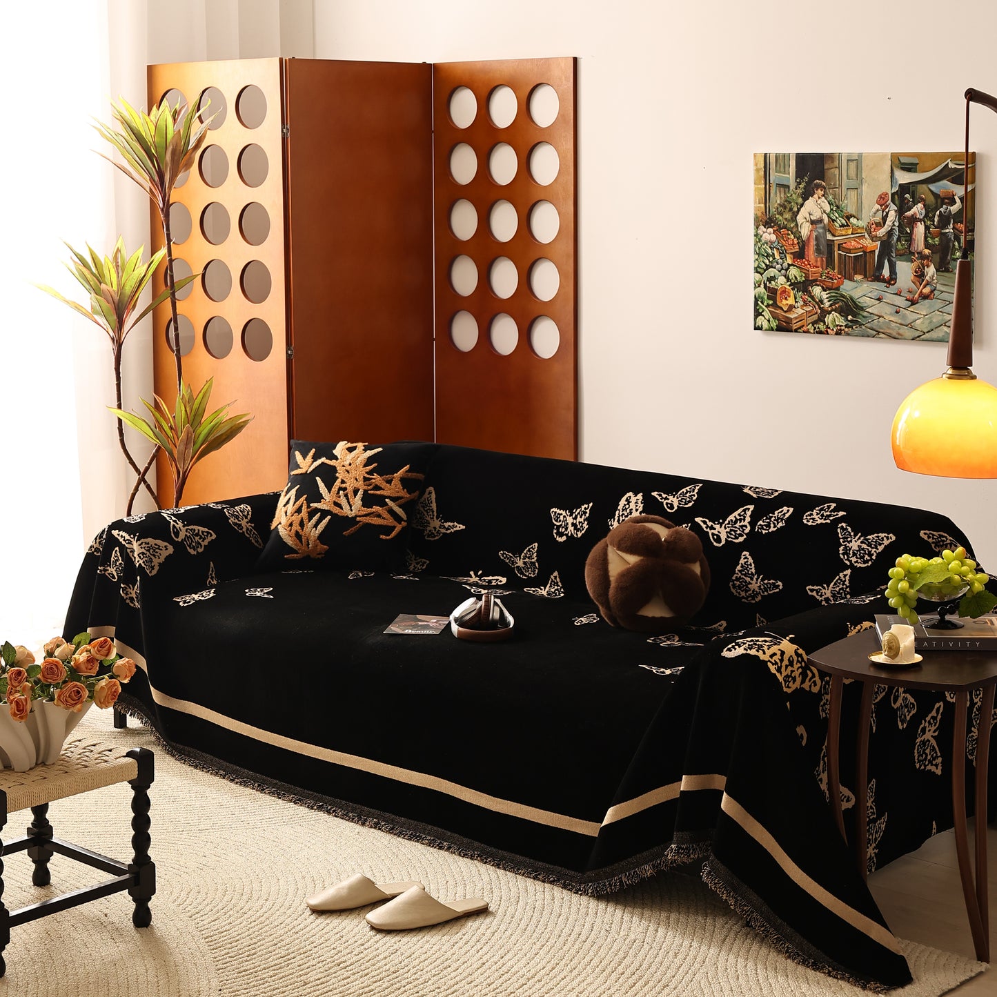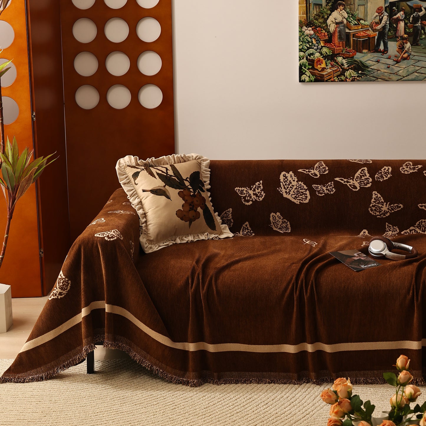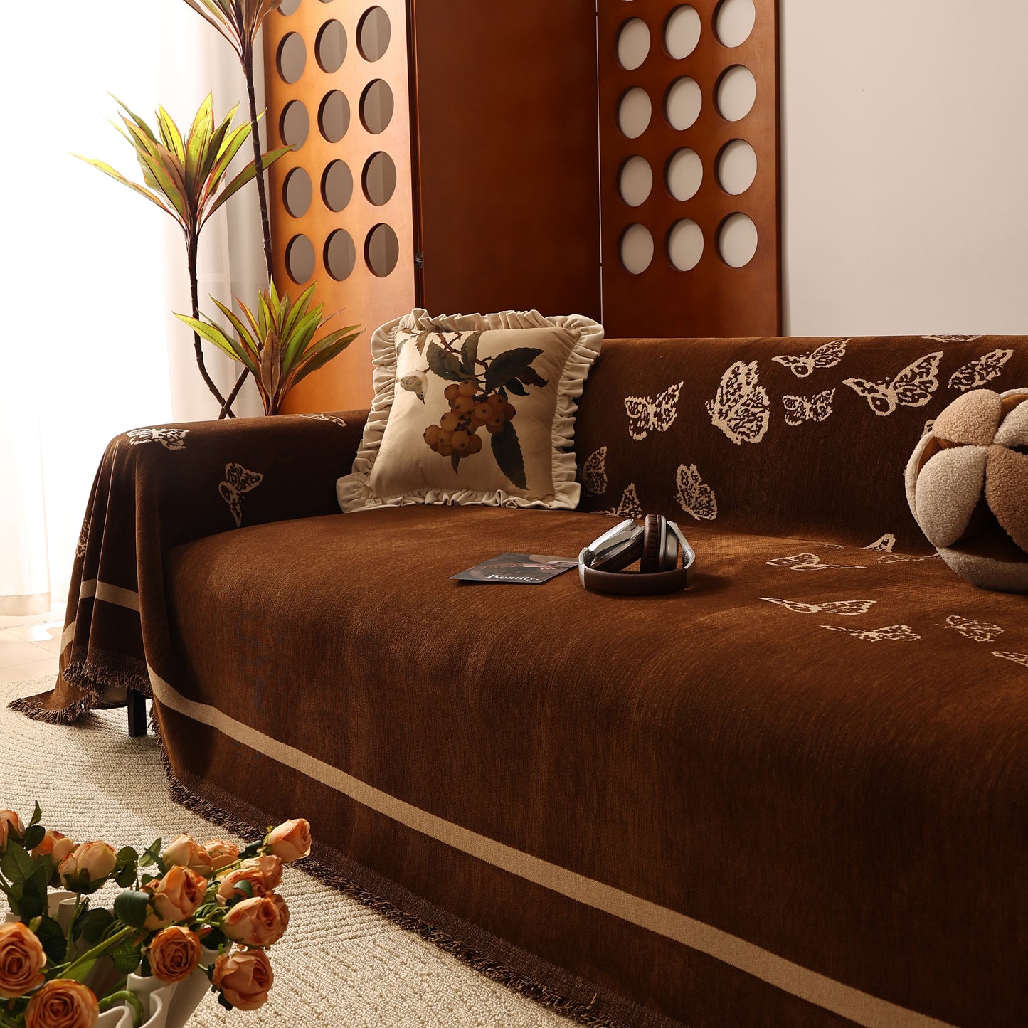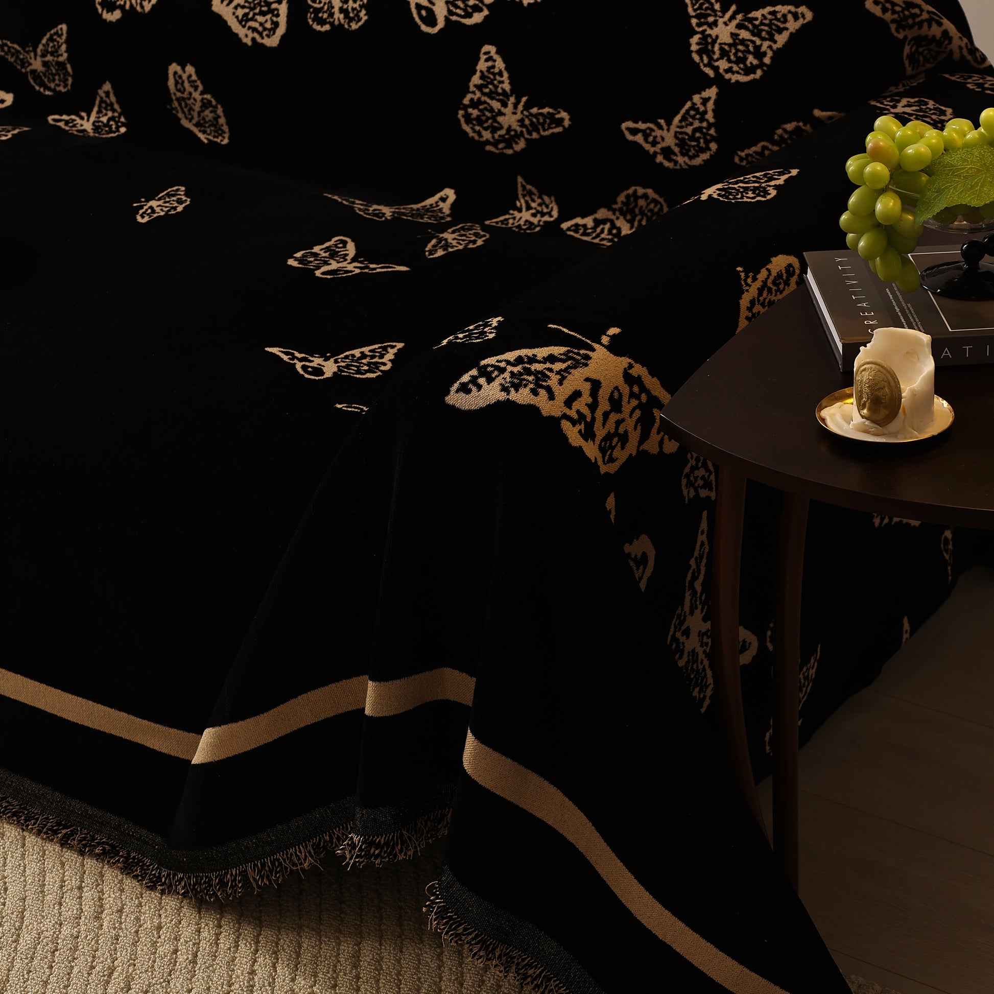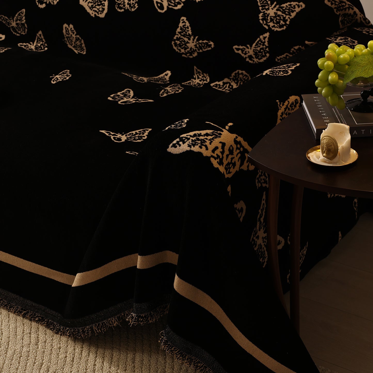 Bring a blend of nature and luxury to your home with the Butterfly Jacquard Soft Couch Blanket. The reversible chenille fabric showcases elegant butterfly motifs, making it both a stylish sofa protector and a cozy addition to your living space.
