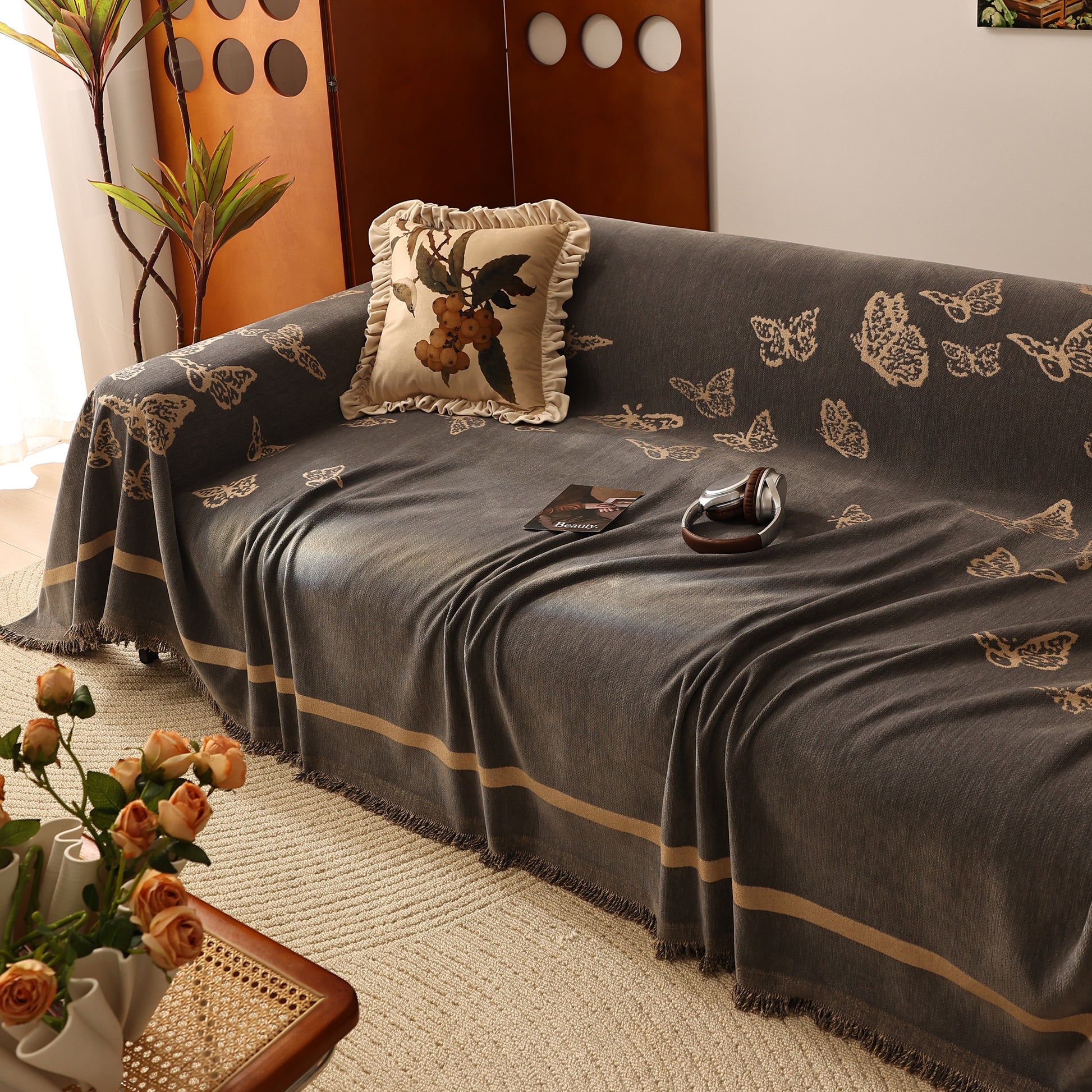 Butterfly Jacquard Soft Couch Blankets Cover for Couch Reversible Modern Sofa Slipcover Throw Covers