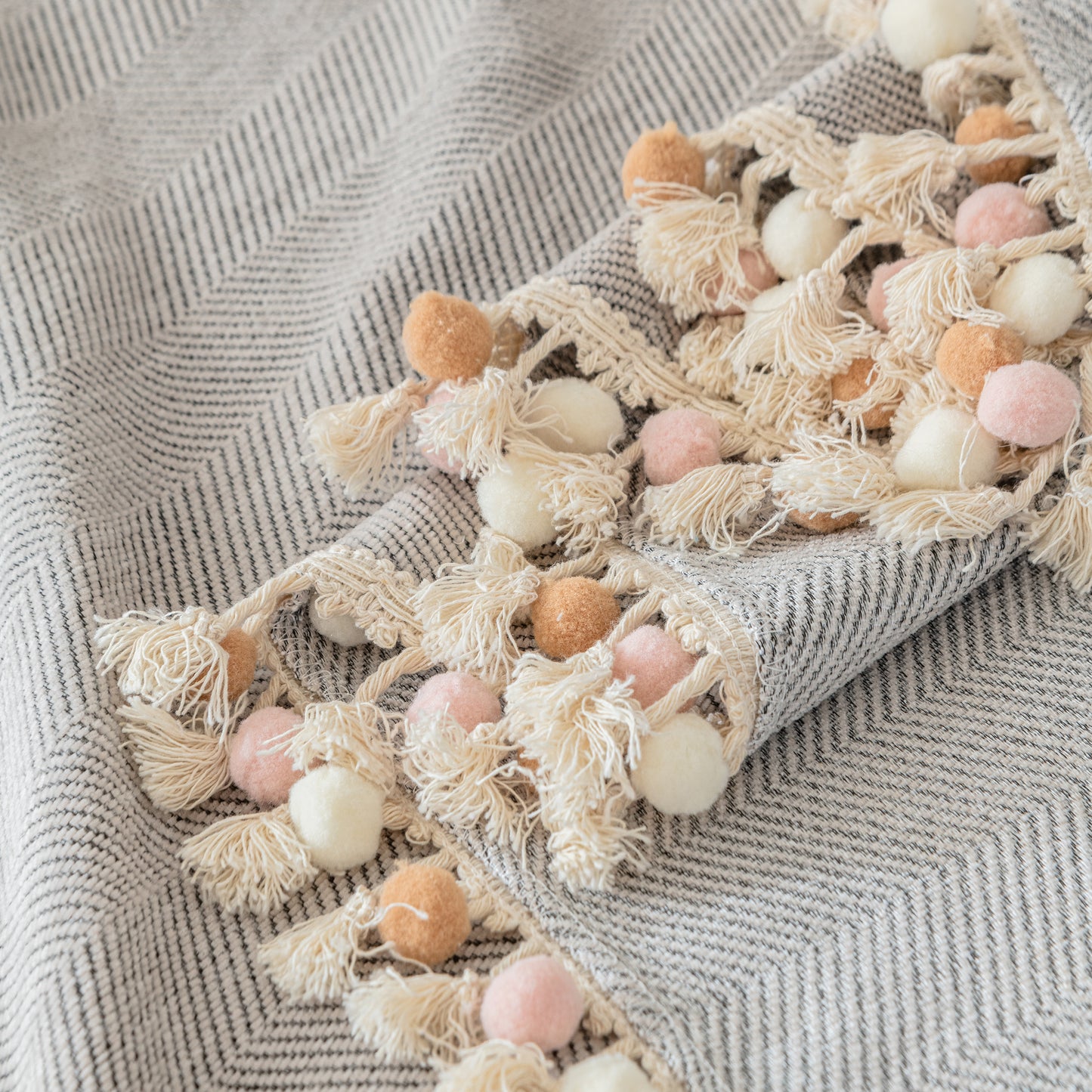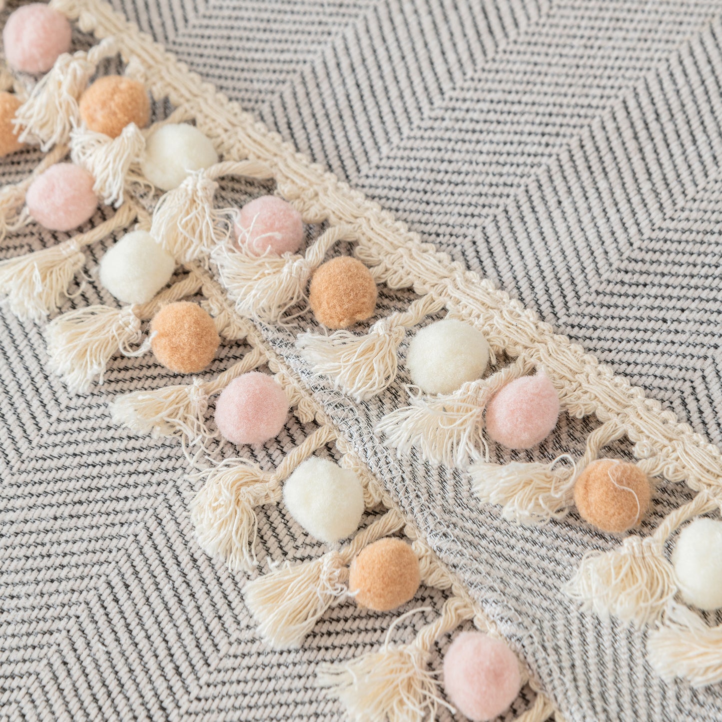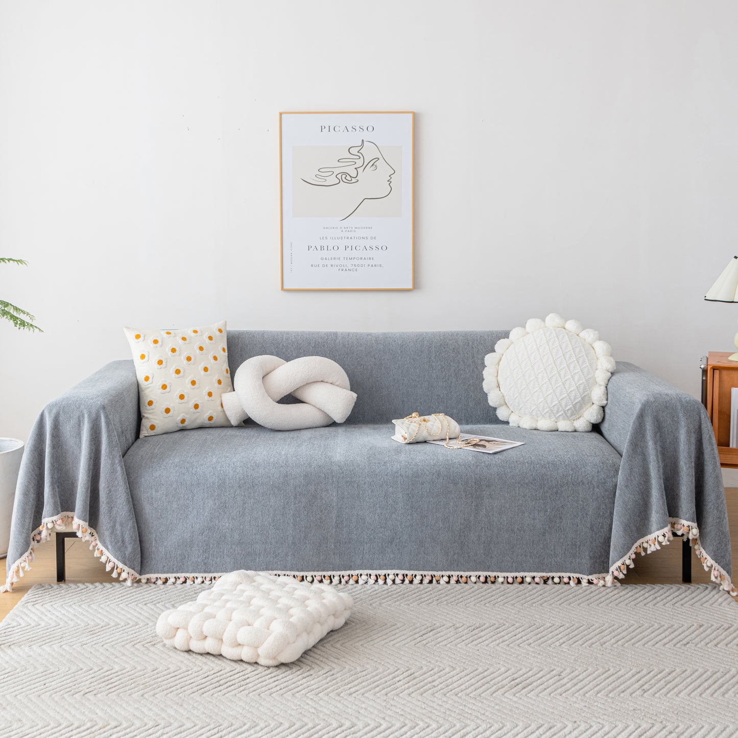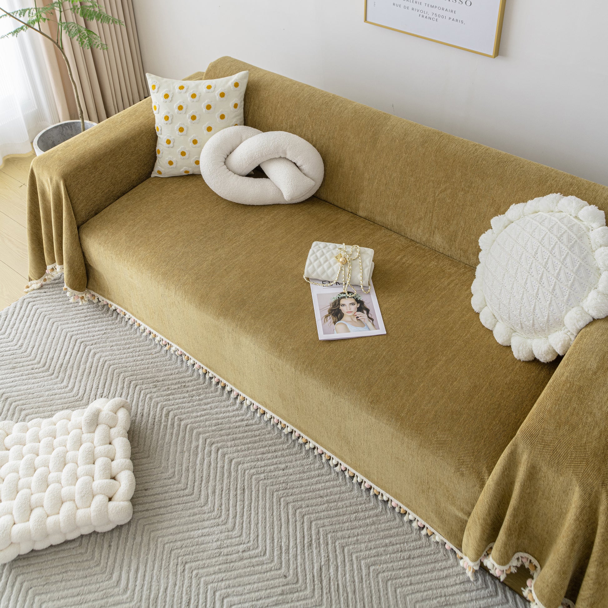 Elevate your living space with our Chenille Herringbone Couch Cover, designed for L-shaped, sectional, and other sofa types. This luxurious cover features elegant tassel pom-poms and a sophisticated herringbone weave. Ideal for pet owners, it protects against scratches and fur while adding a stylish, cozy touch to your home.