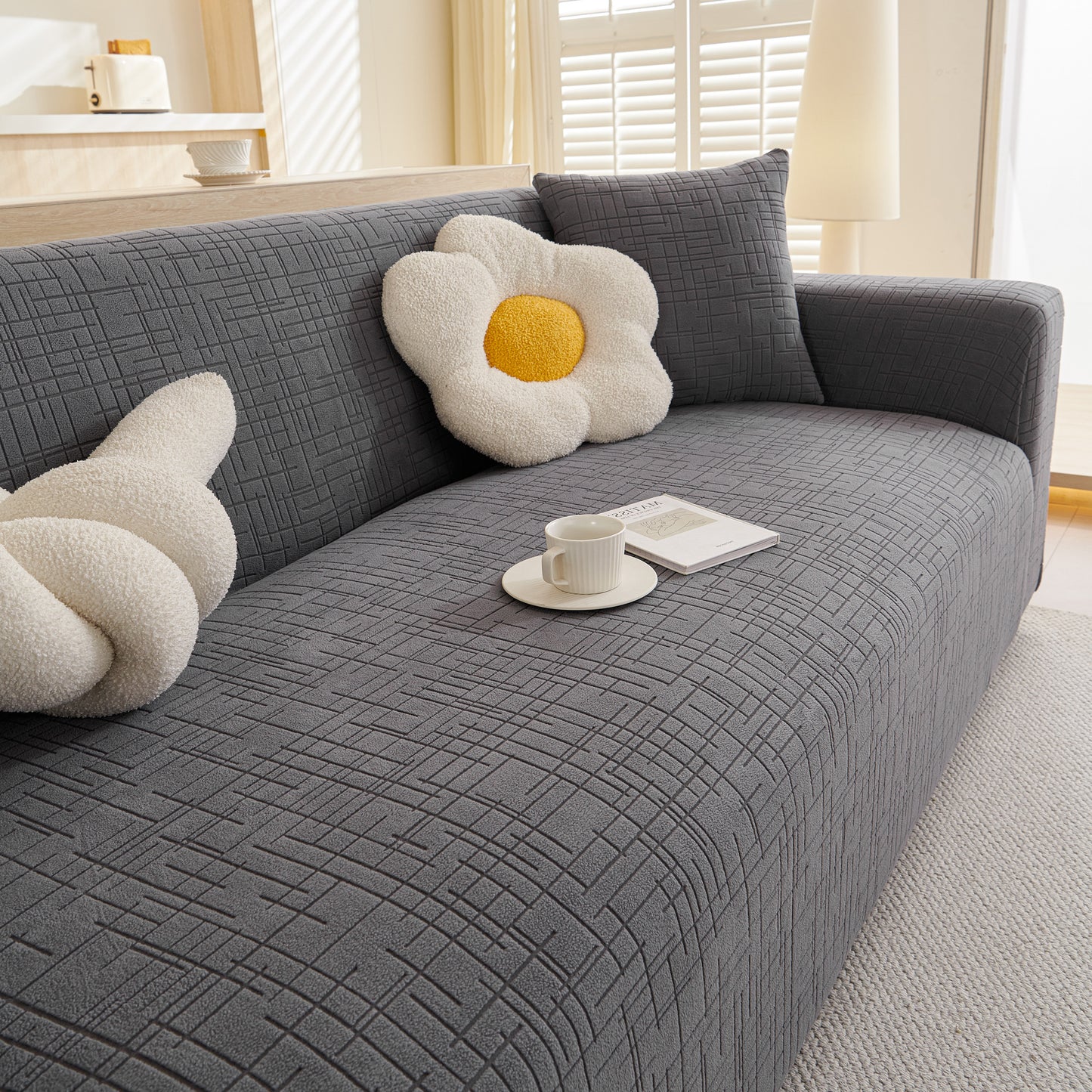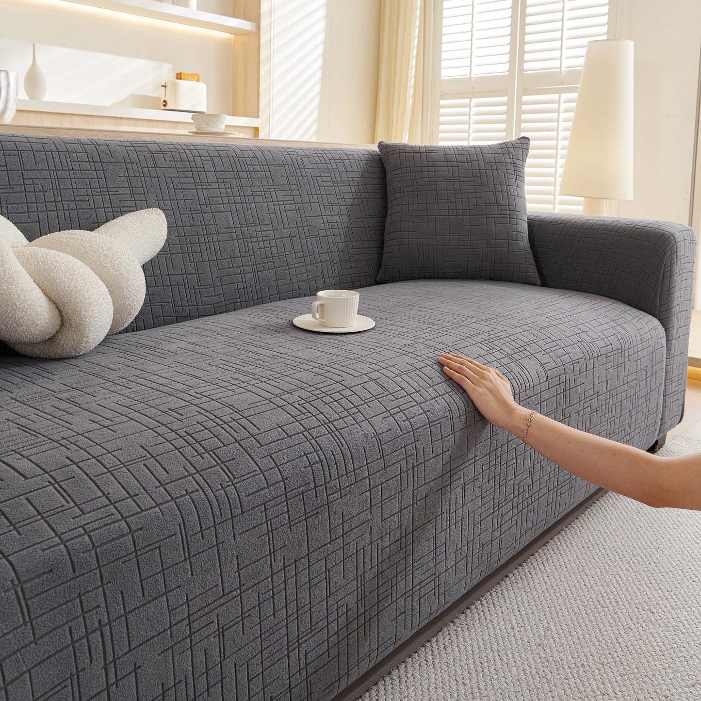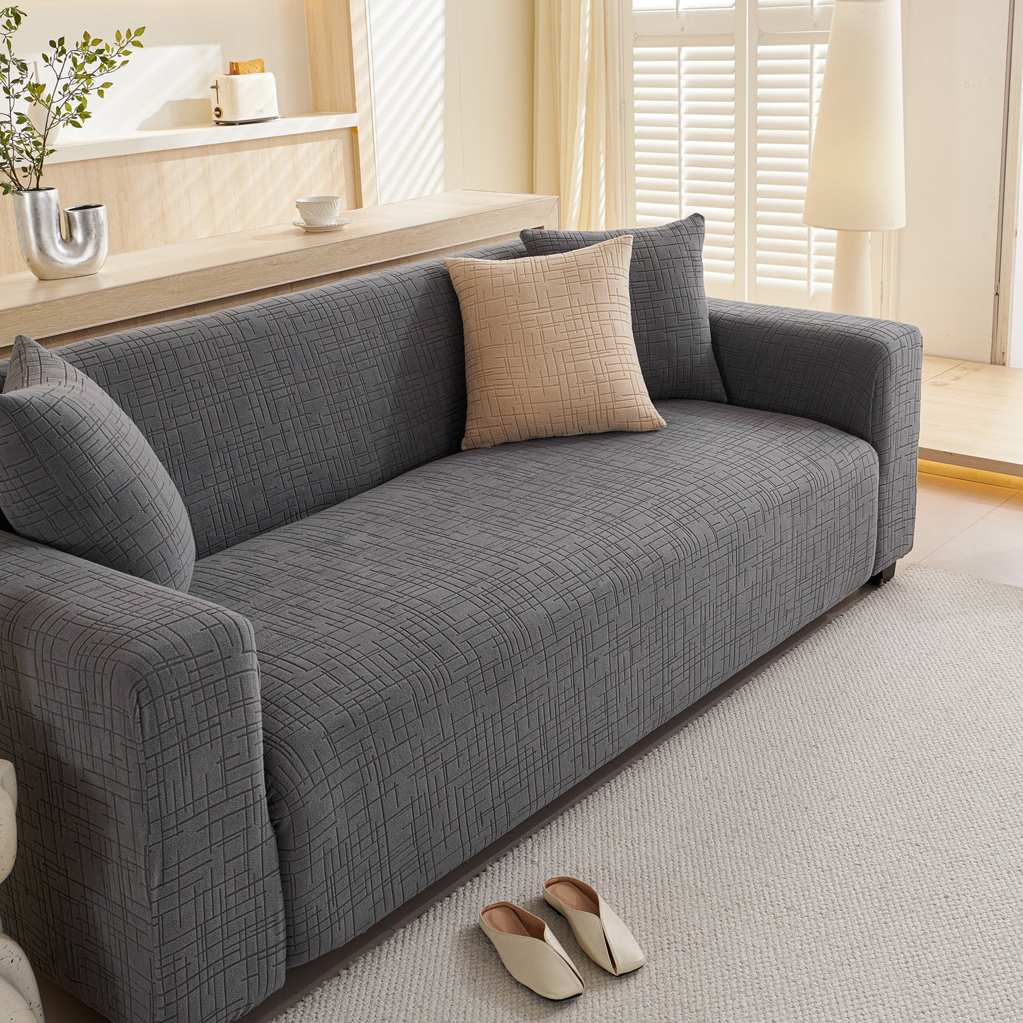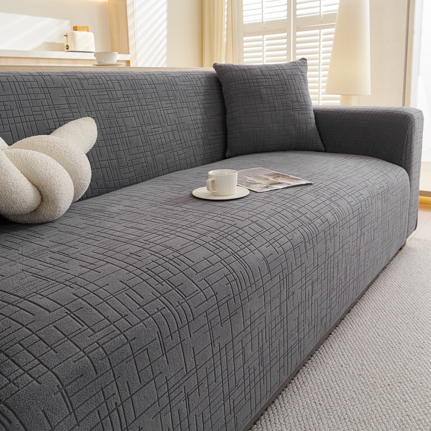 Embossed Lines Couch Covers Stretchable Non-Slip & Washable Sofa Slipcovers