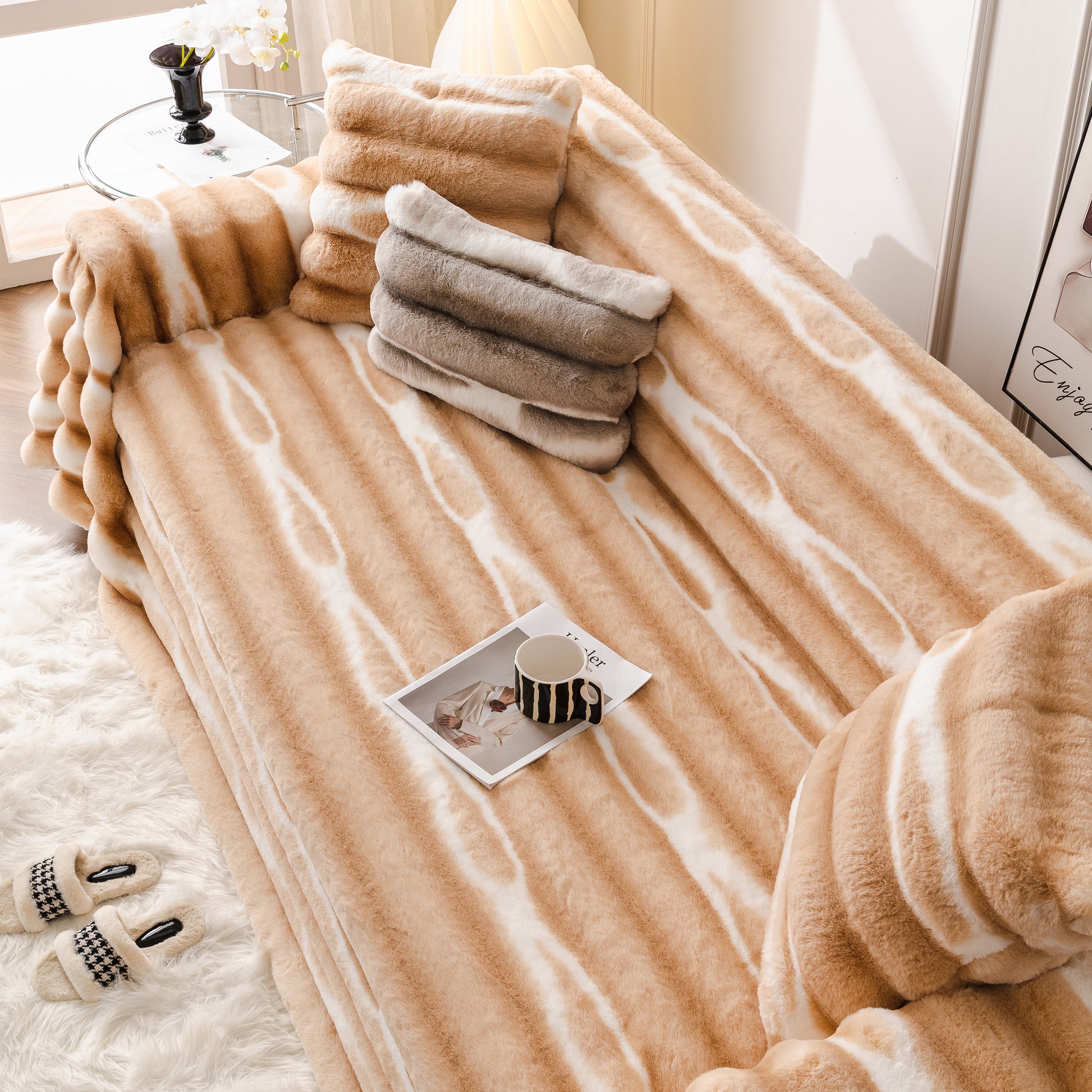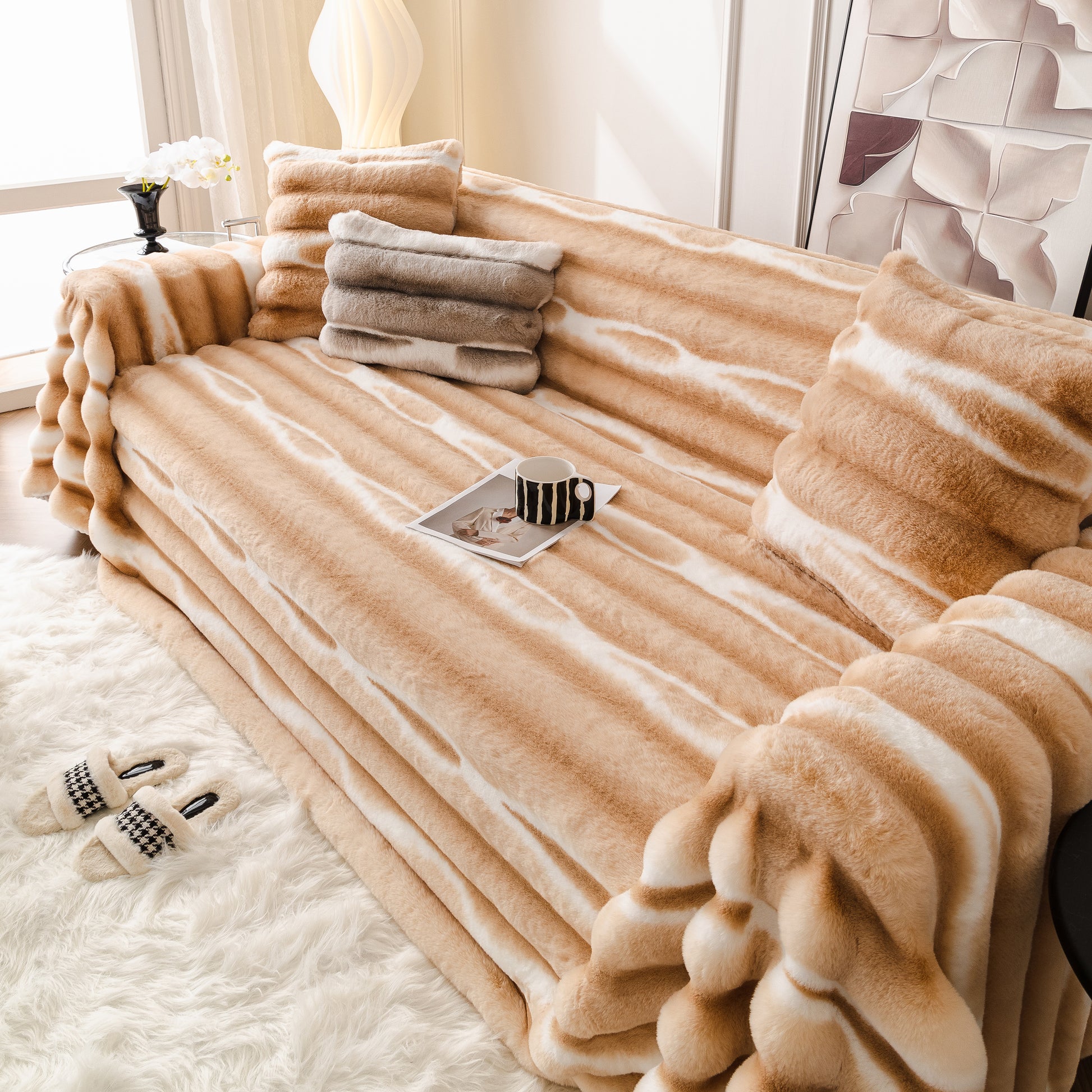 Ultra Soft Faux Fur Couch Cover – Large, Fluffy, and Elegant Sofa Throw Blanket