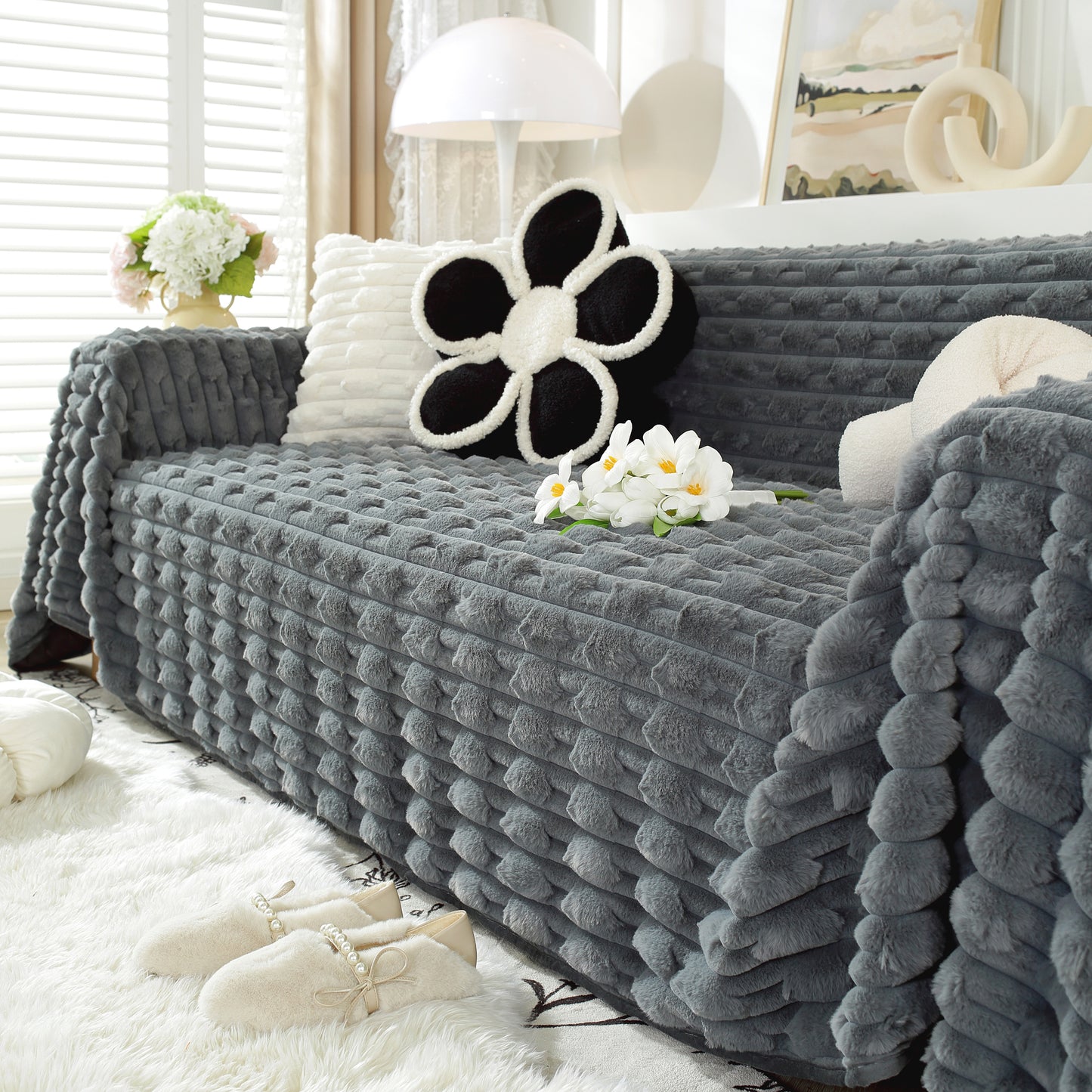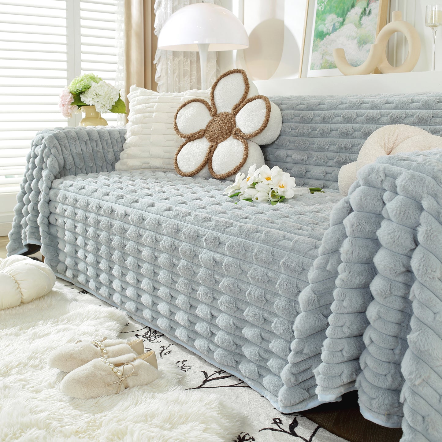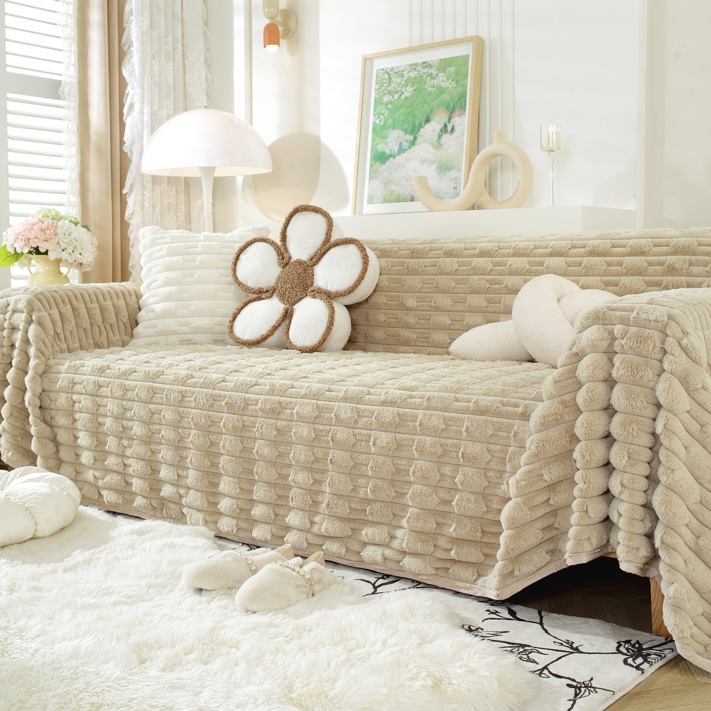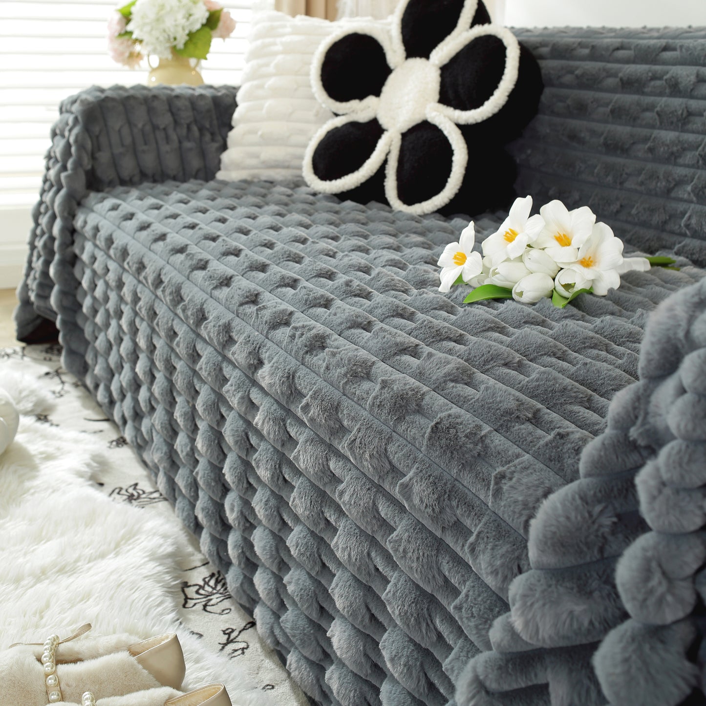 Fluffy Faux Fur Couch Cover Plush Sofa Throw, Warm & Stylish Sofa Protector