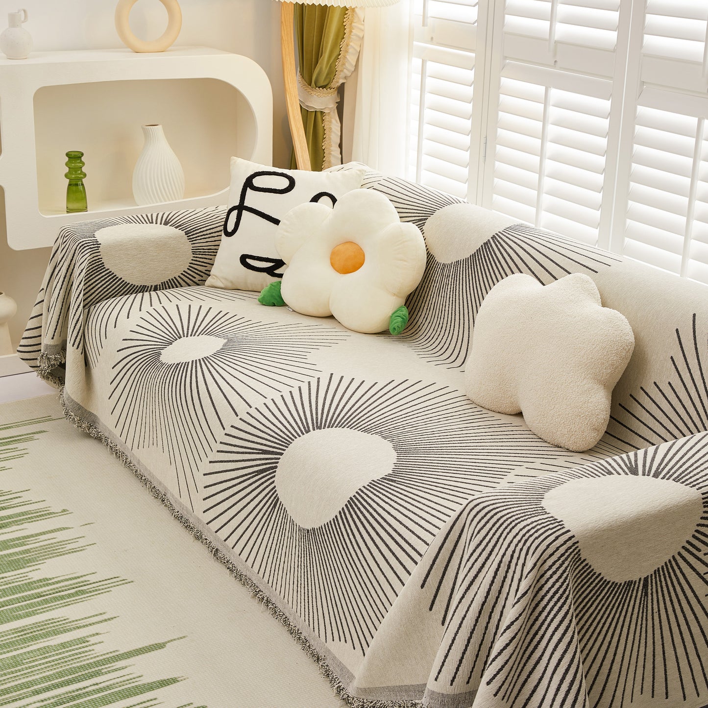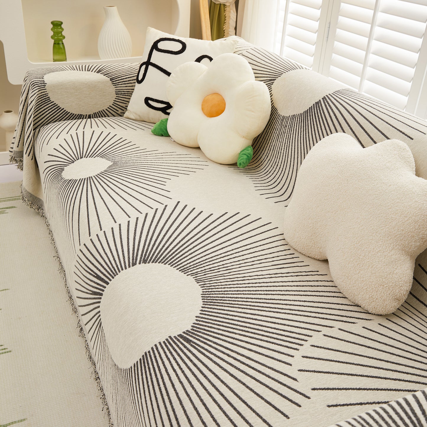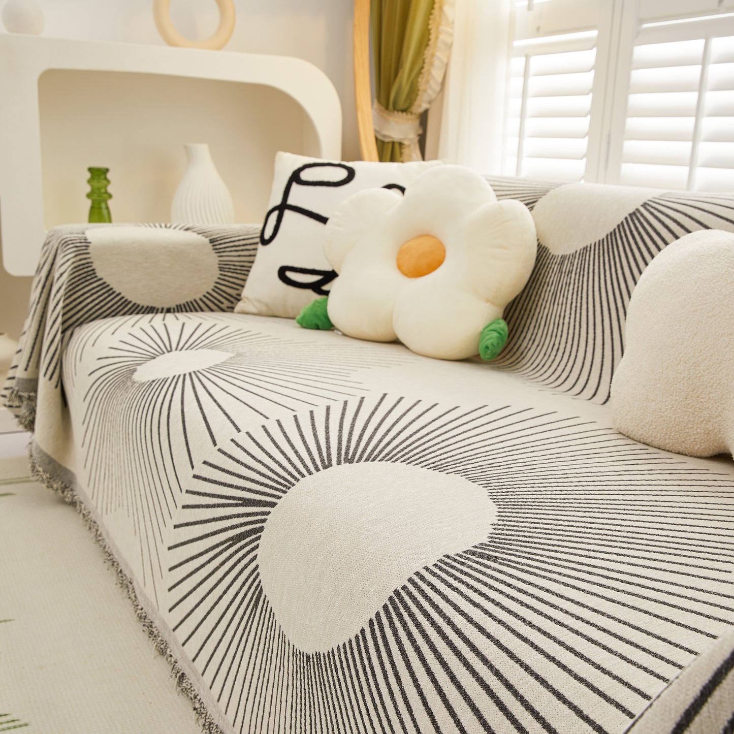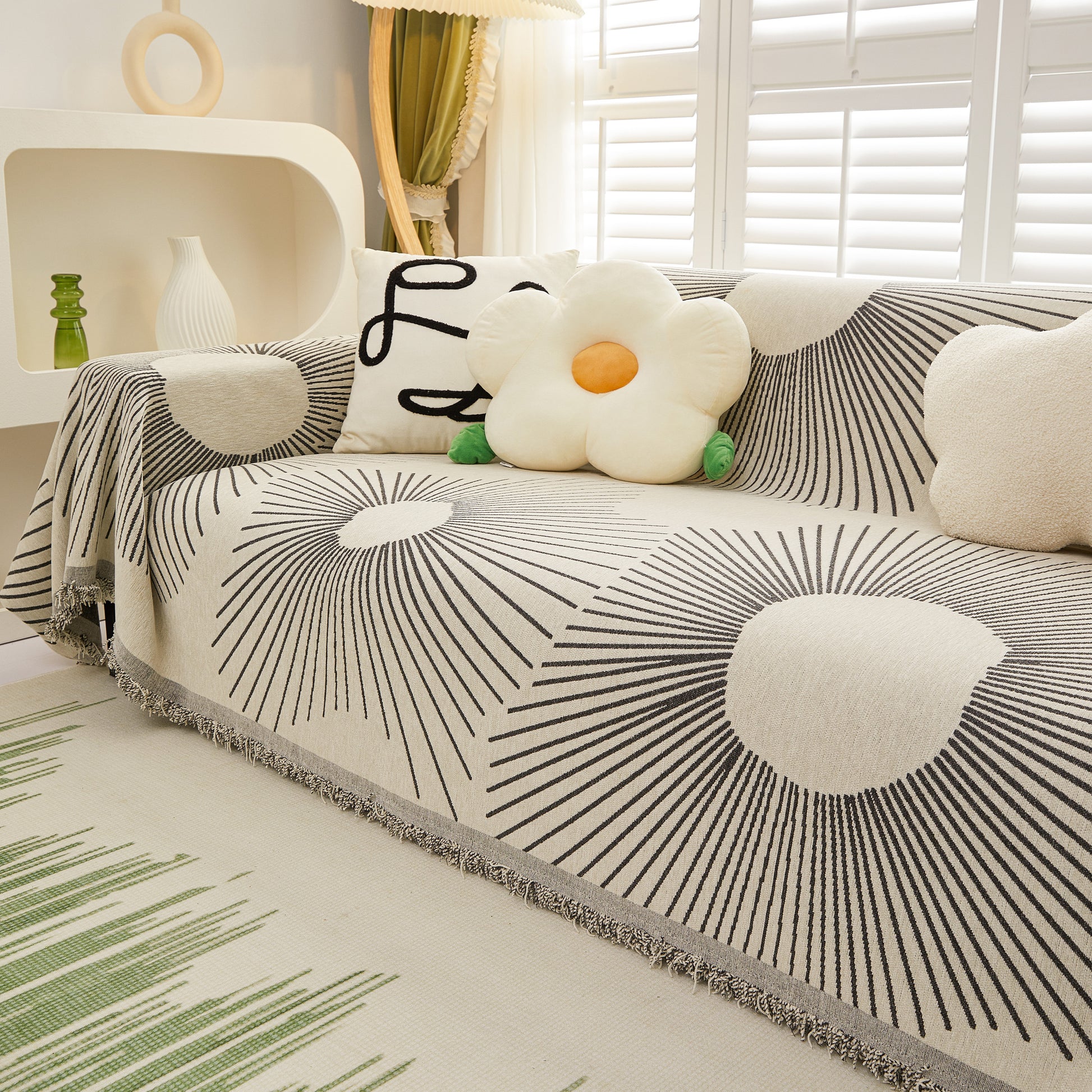 Protect your sofa in style with our Geometric Radial Striped L-Shape Sofa Cover. Made from thick, soft chenille fabric, it's not only durable but also reversible for versatile use. Keep your furniture safe from kids and pets while adding a modern touch to your home.
