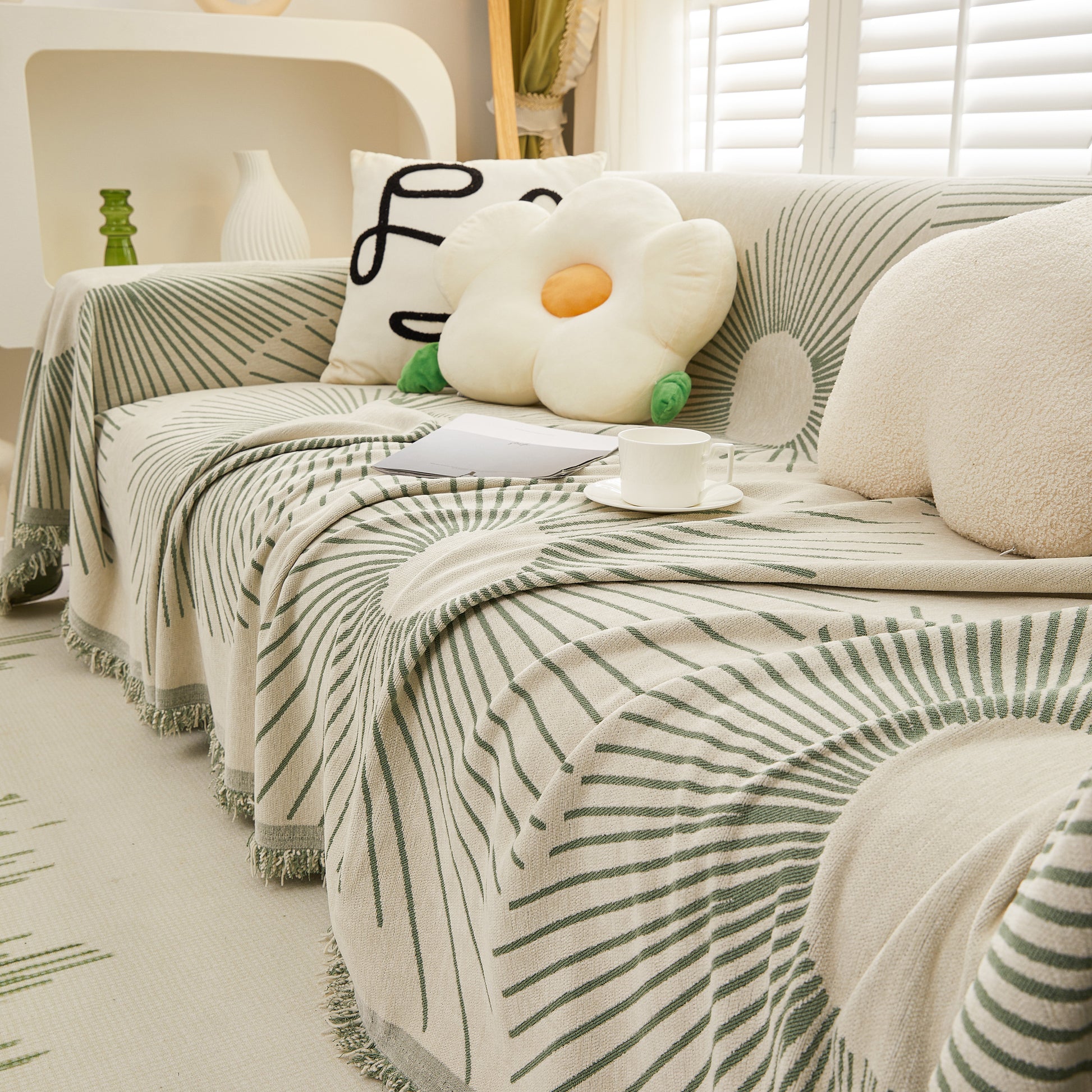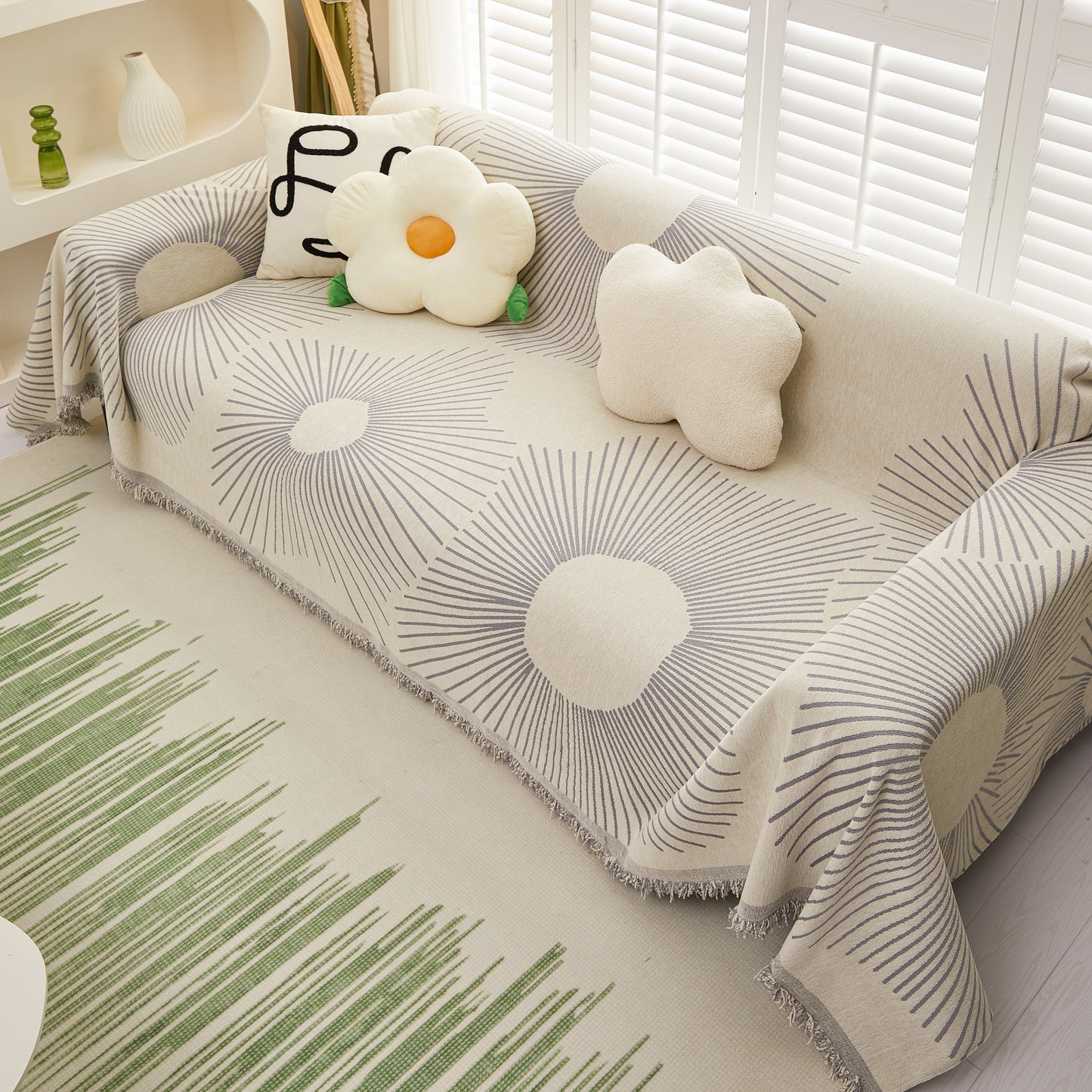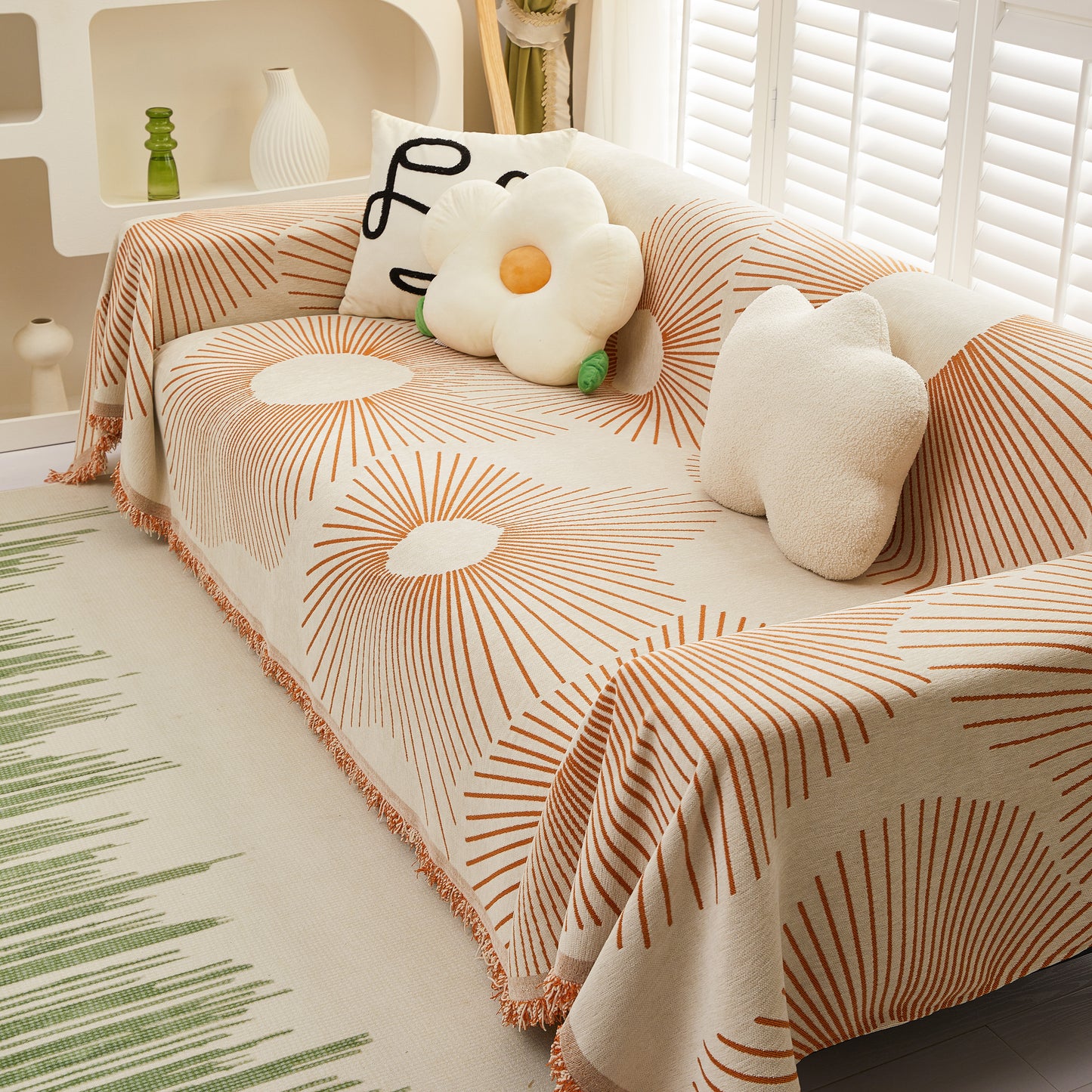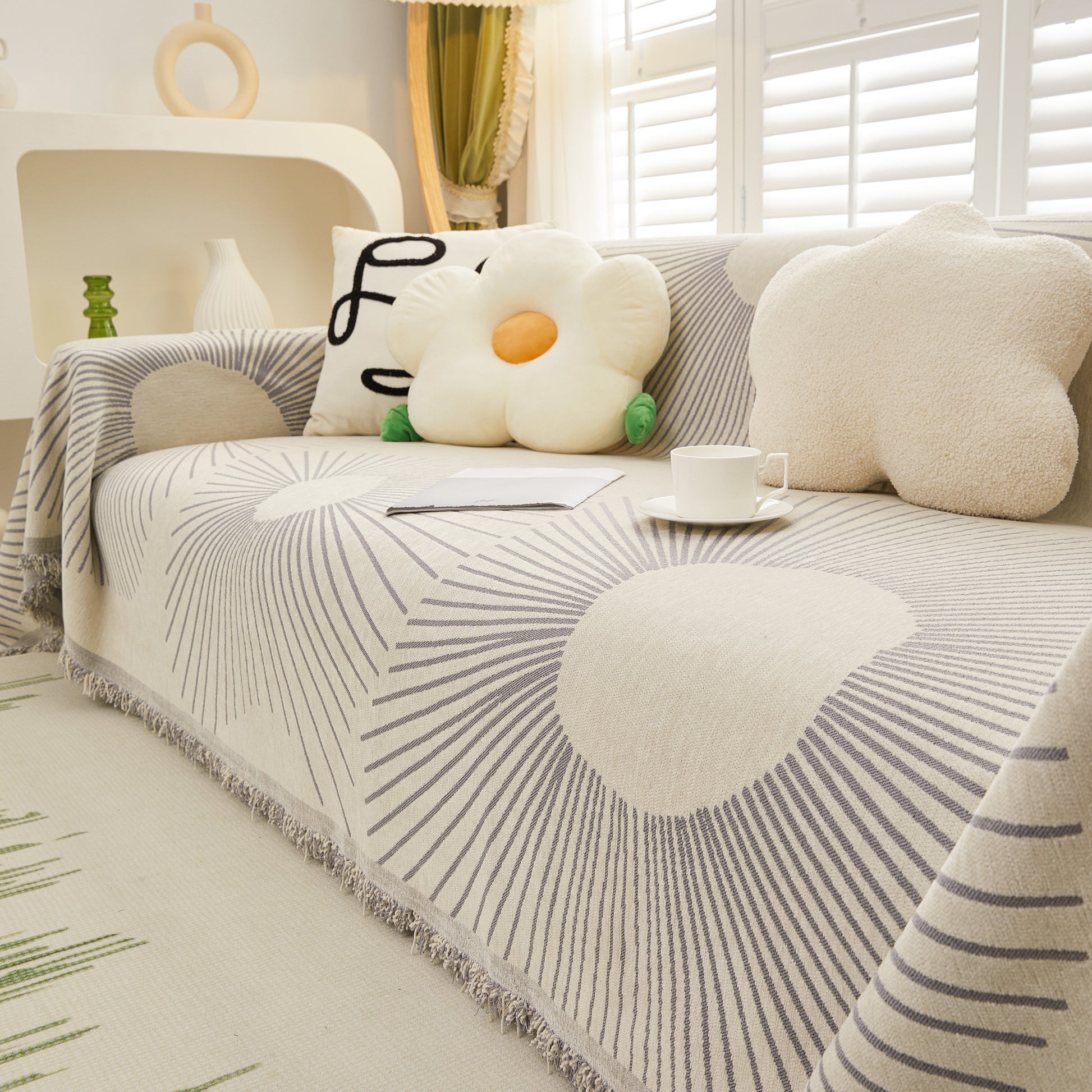 Protect your sofa in style with our Geometric Radial Striped L-Shape Sofa Cover. Made from thick, soft chenille fabric, it's not only durable but also reversible for versatile use. Keep your furniture safe from kids and pets while adding a modern touch to your home.