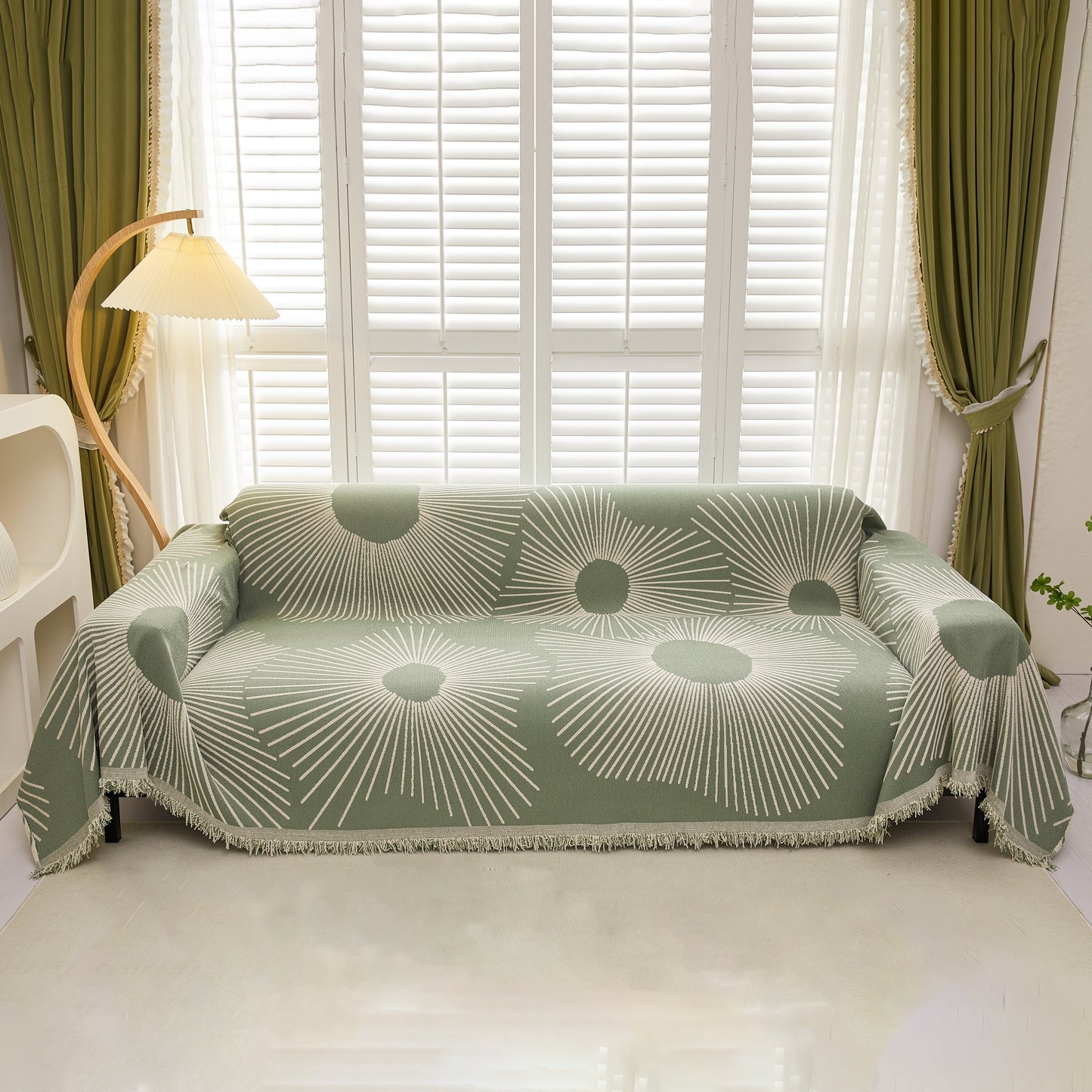 Geometric Radial Striped L-Shape Sofa Cover: Thick, Reversible Furniture Blanket for Kids and Pets