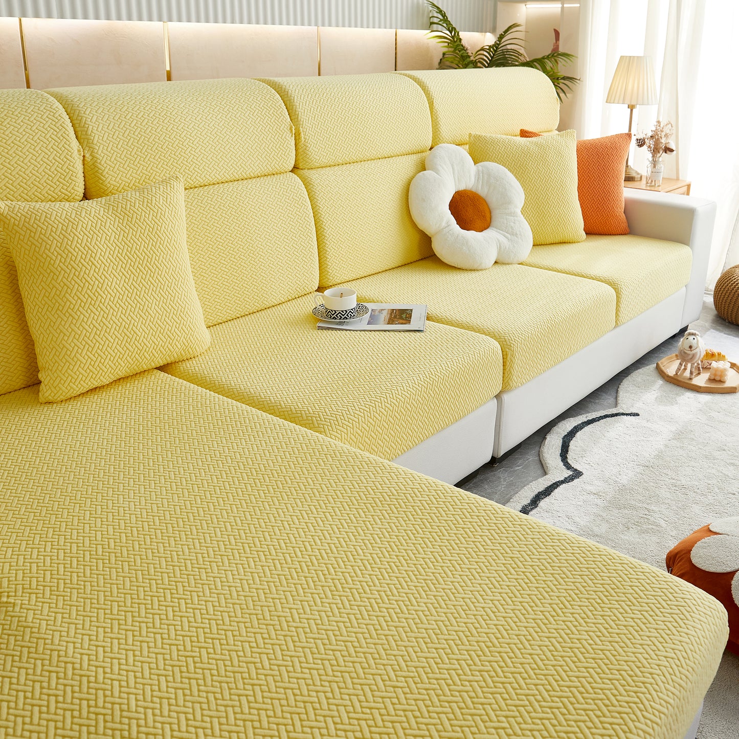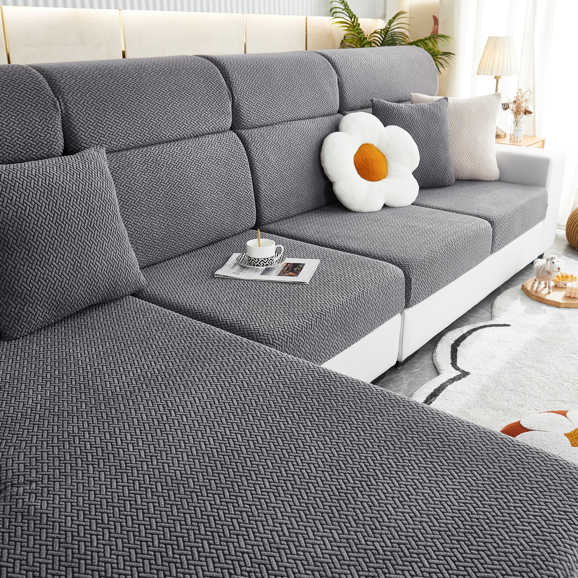 Enhance your L-shaped sectional couch with our high-stretch sofa slipcover. Designed with separate cushion covers for a snug fit, it offers excellent protection against wear and stains. Easy to install and perfect for homes.