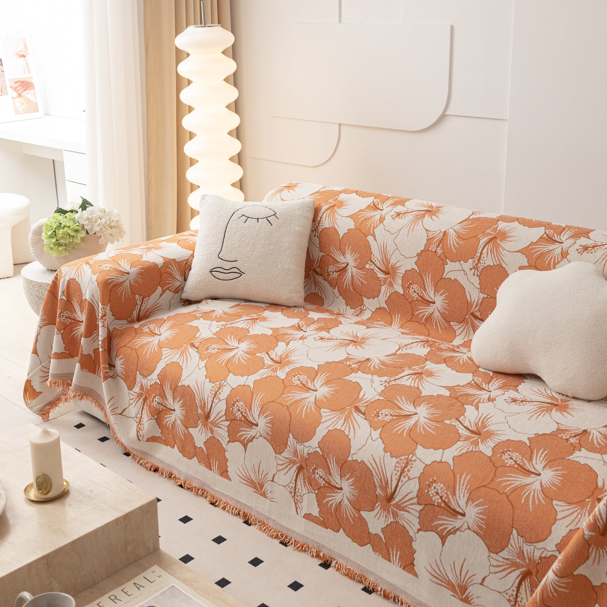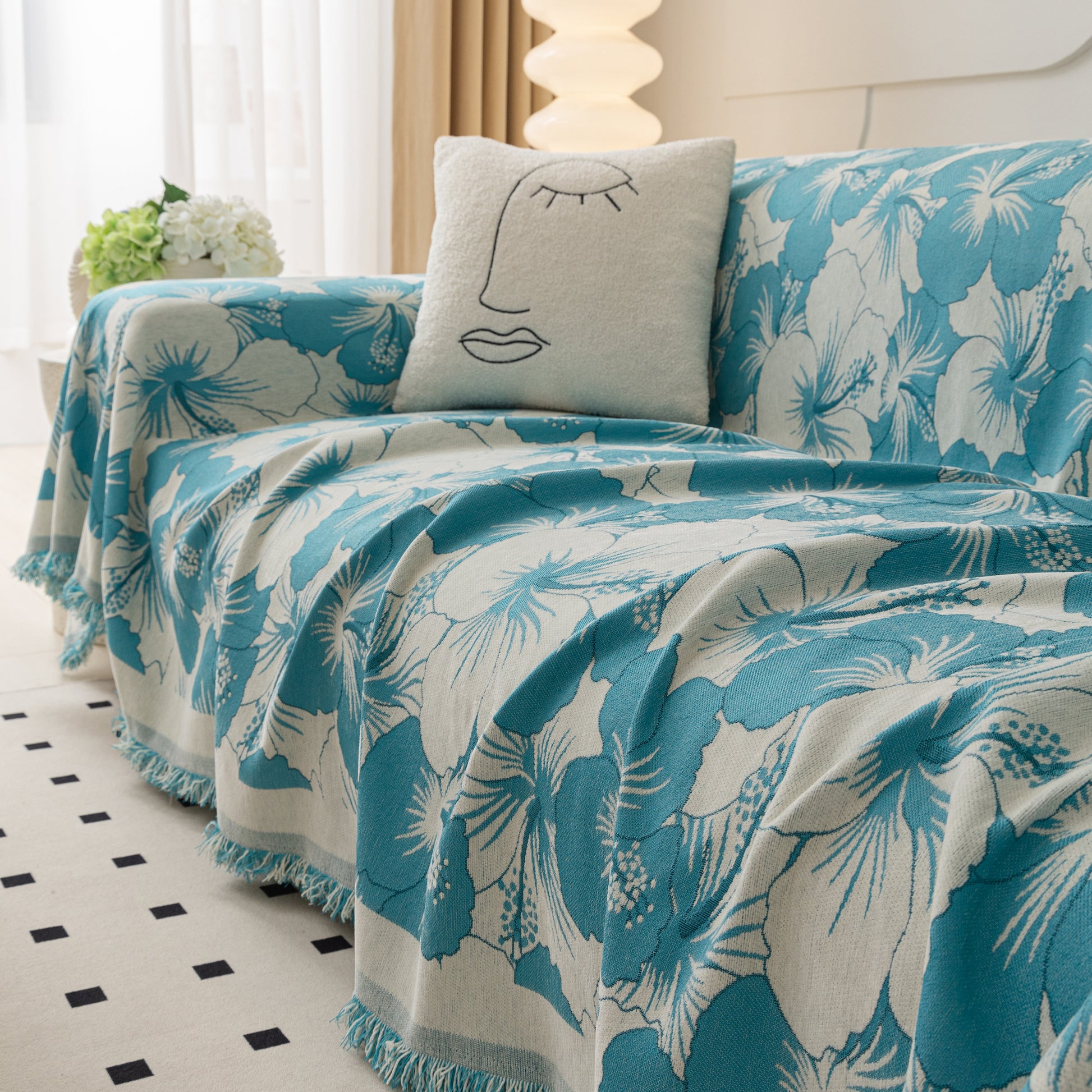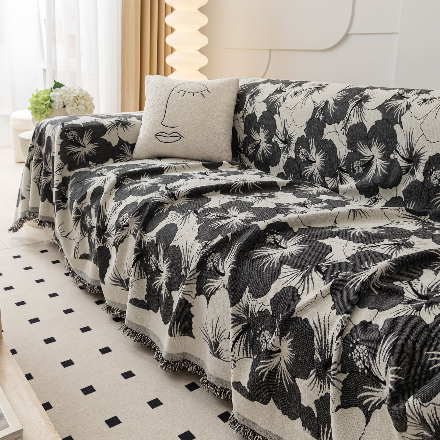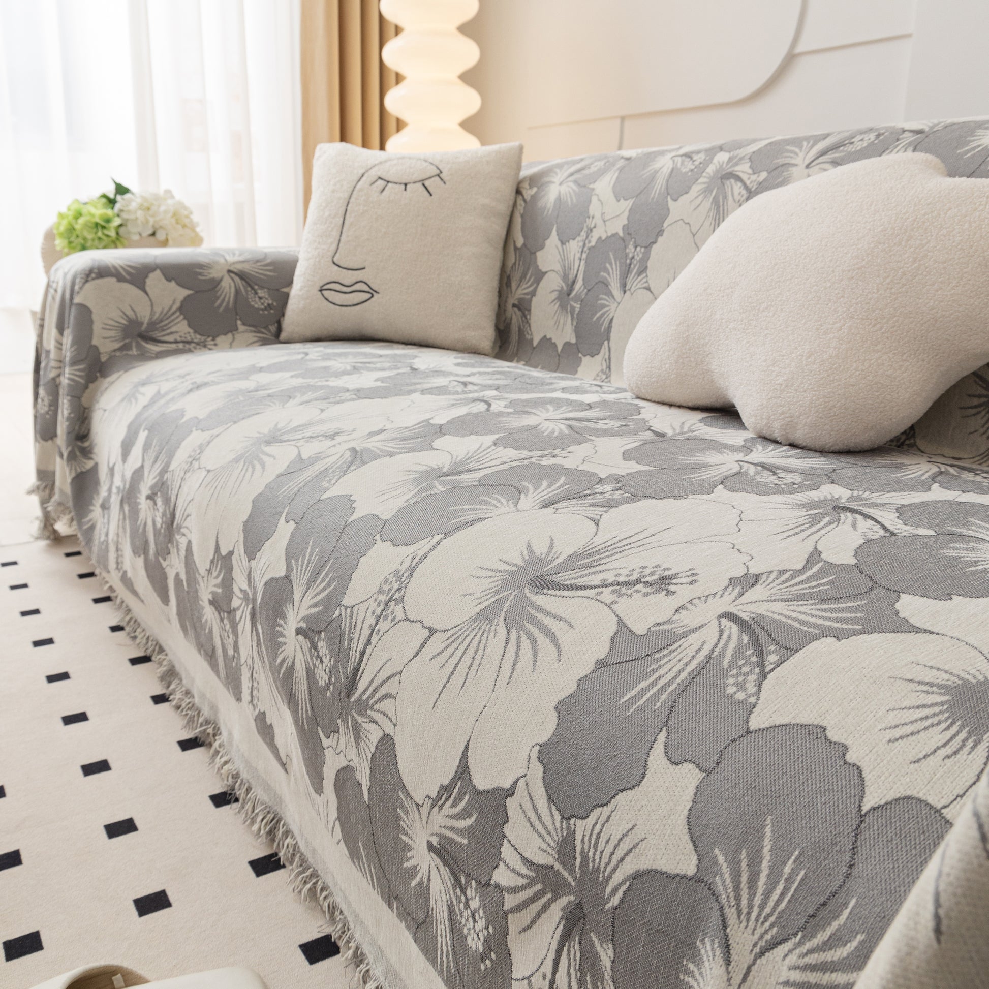 Chenille Blossoming Flowers Couch Covers, Couch Protector Blanket for Couches, Pet Furniture Throw