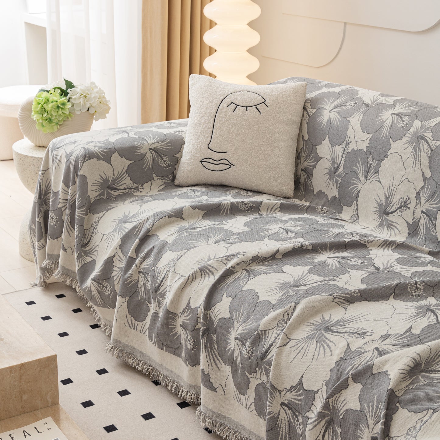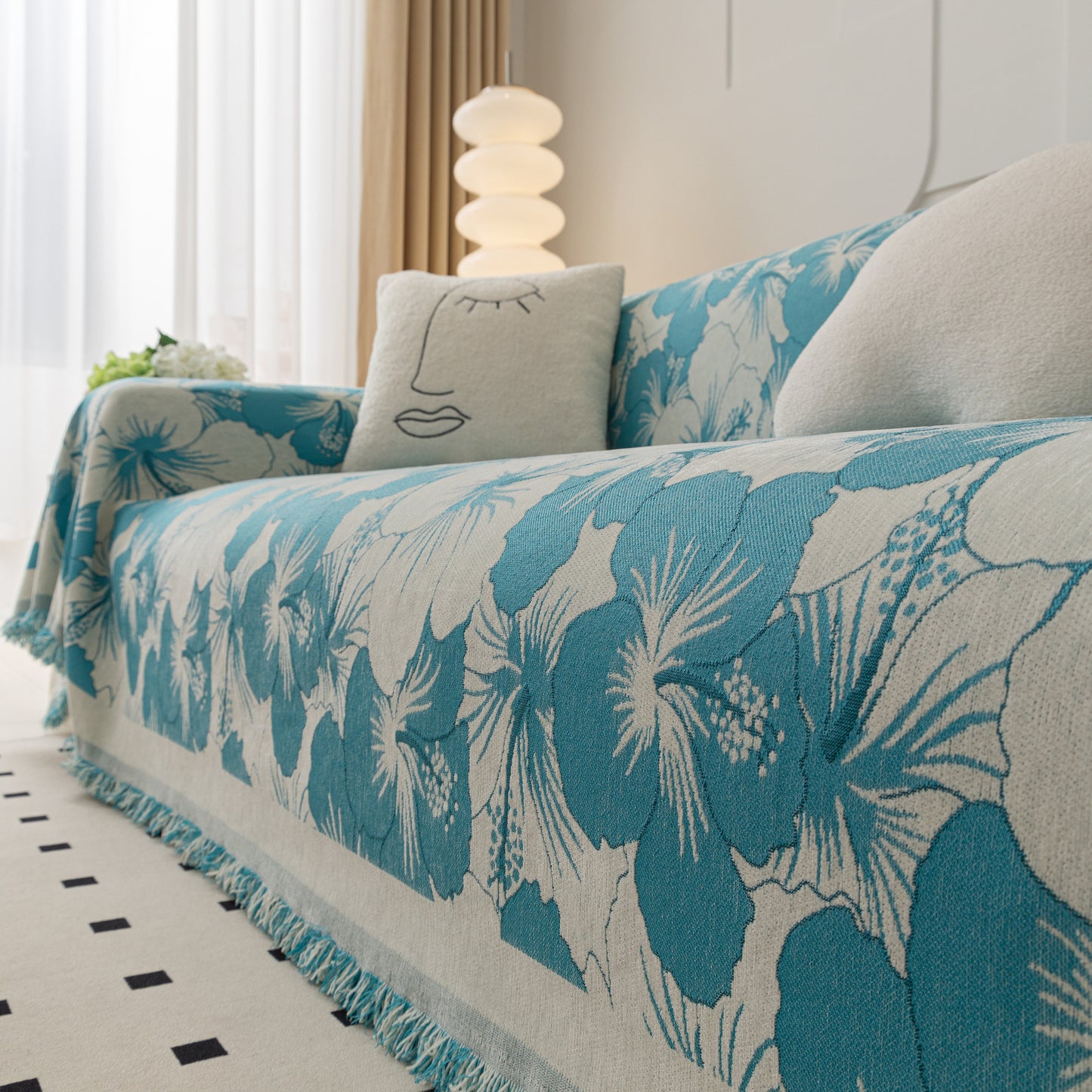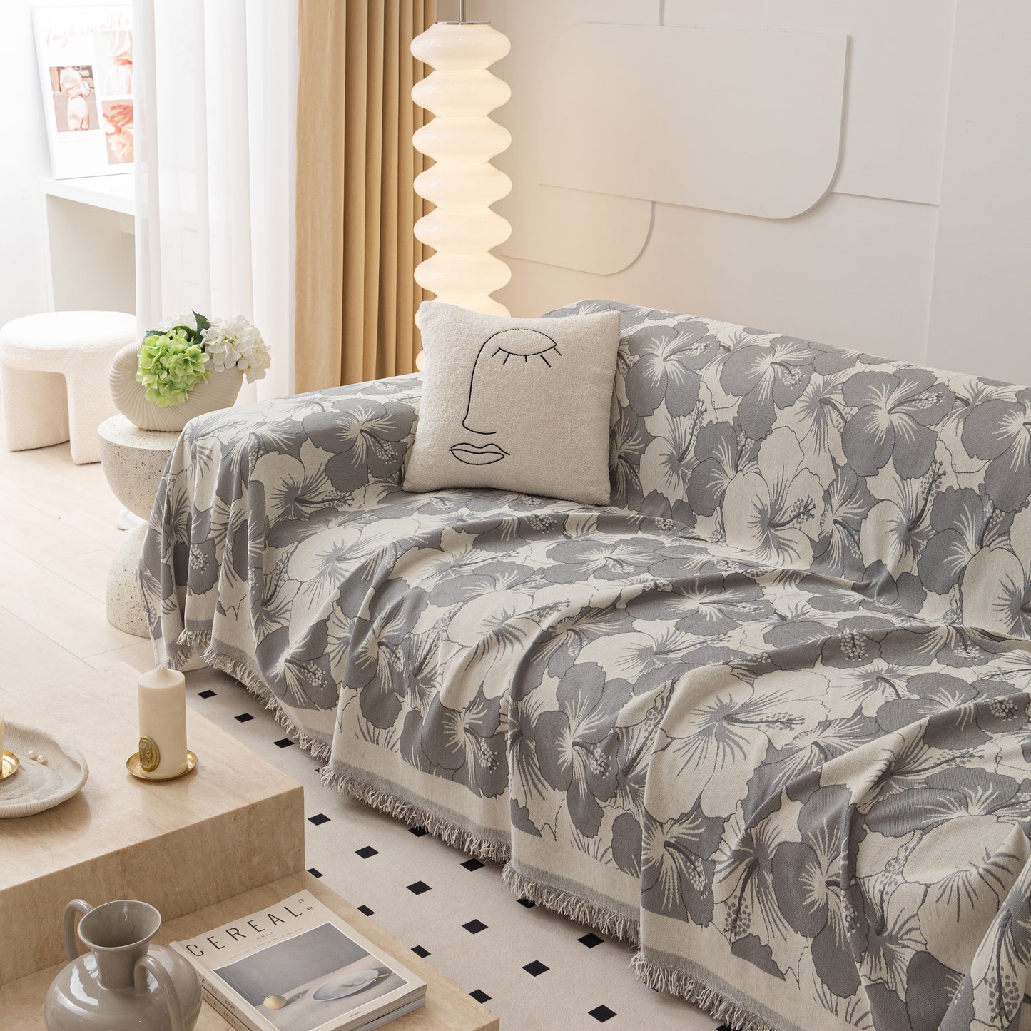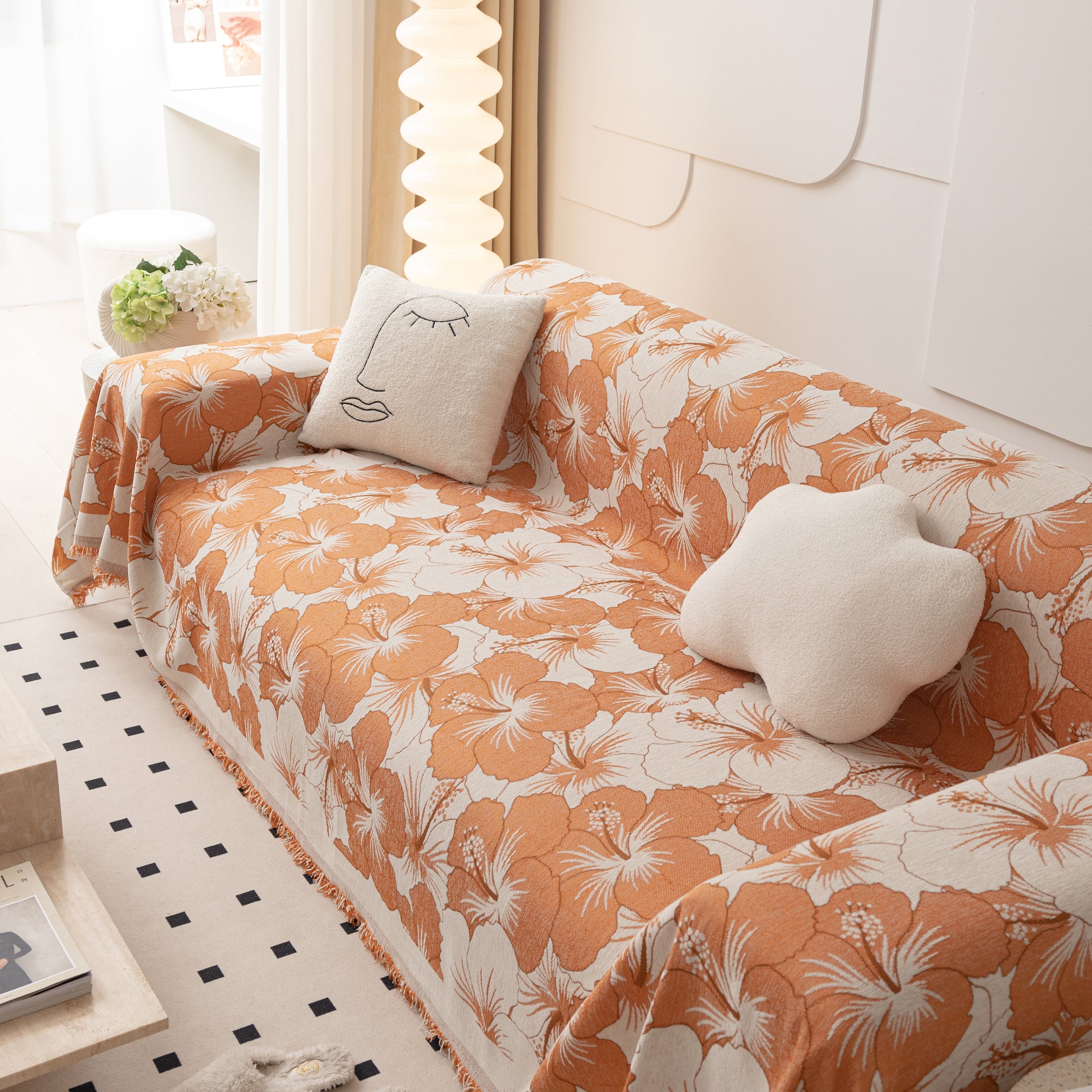 Chenille Blossoming Flowers Couch Covers, Couch Protector Blanket for Couches, Pet Furniture Throw