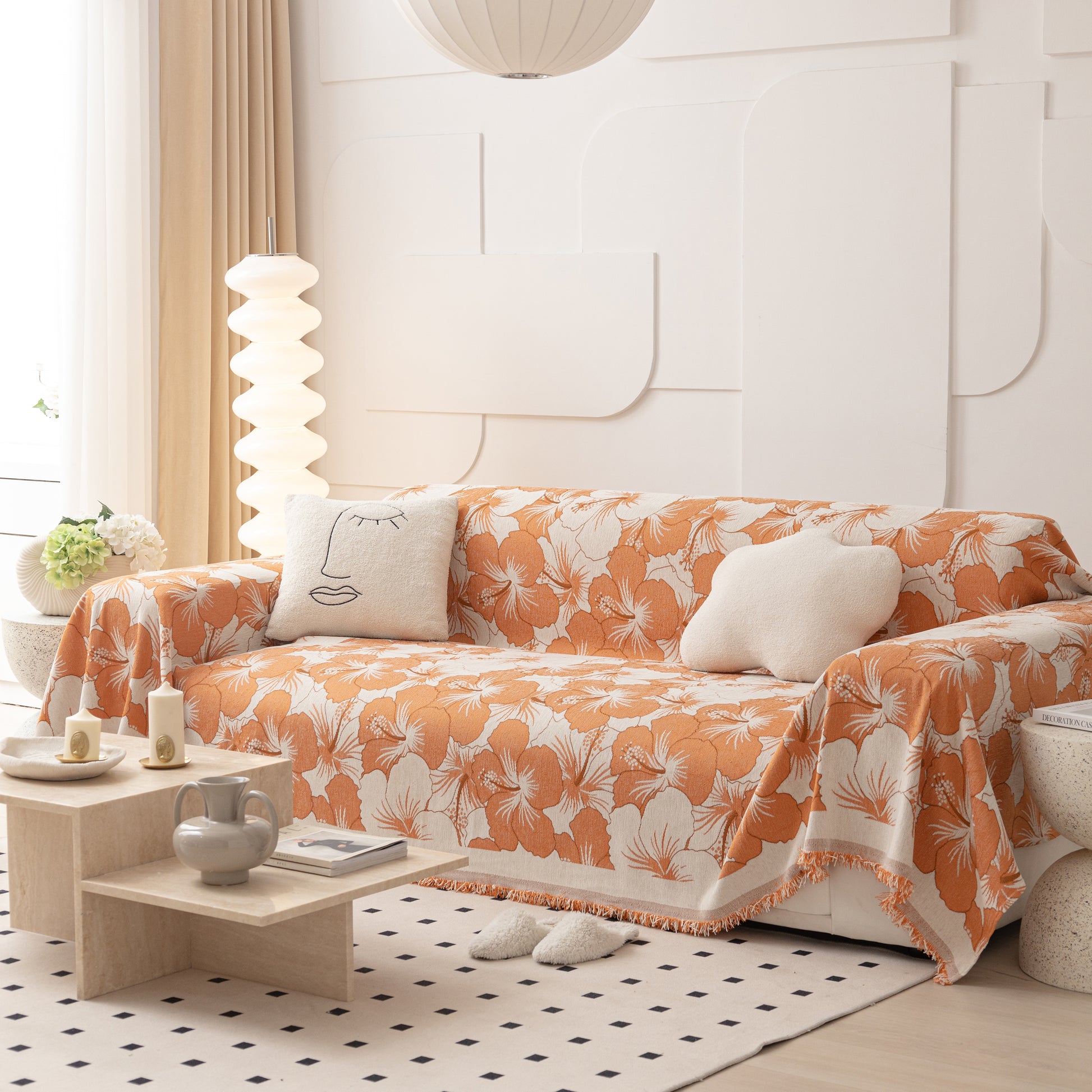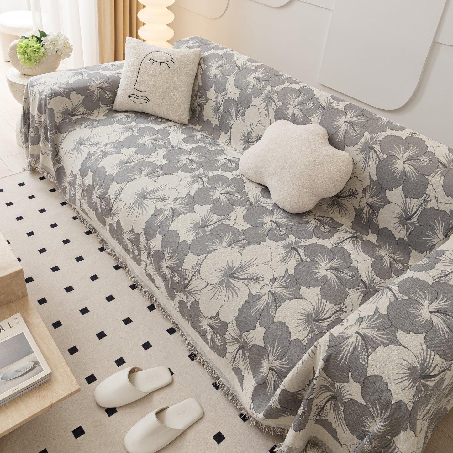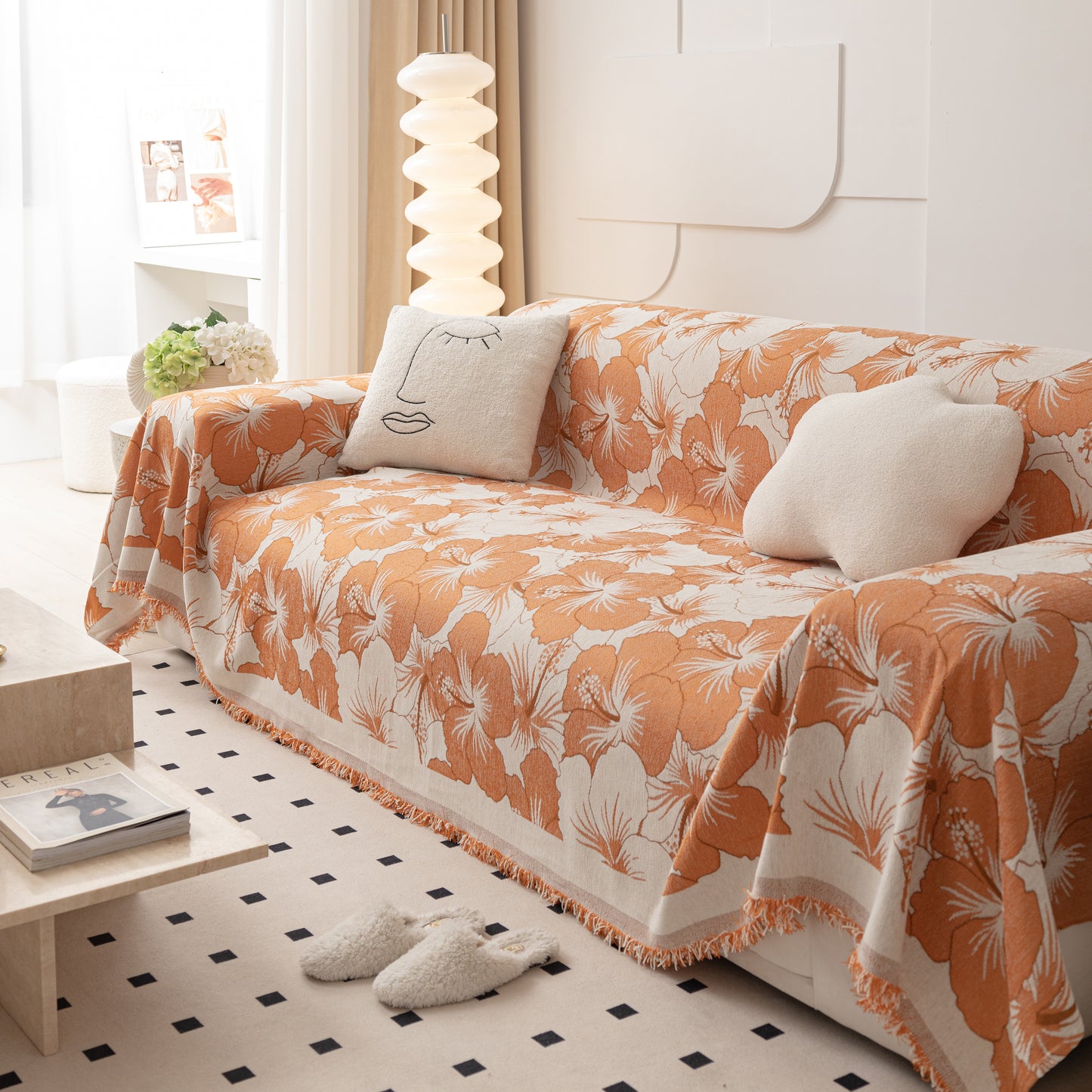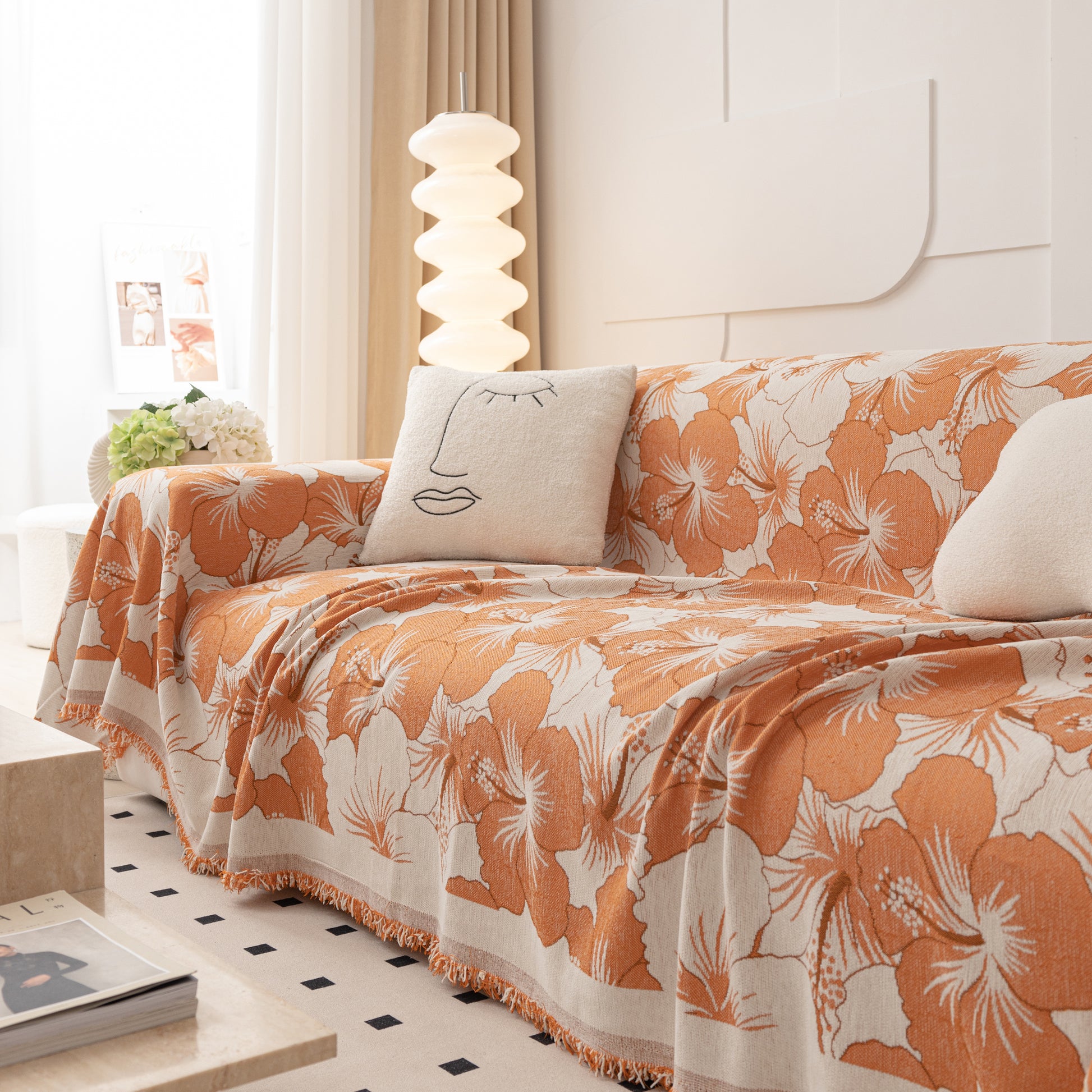 Chenille Blossoming Flowers Couch Covers, Couch Protector Blanket for Couches, Pet Furniture Throw