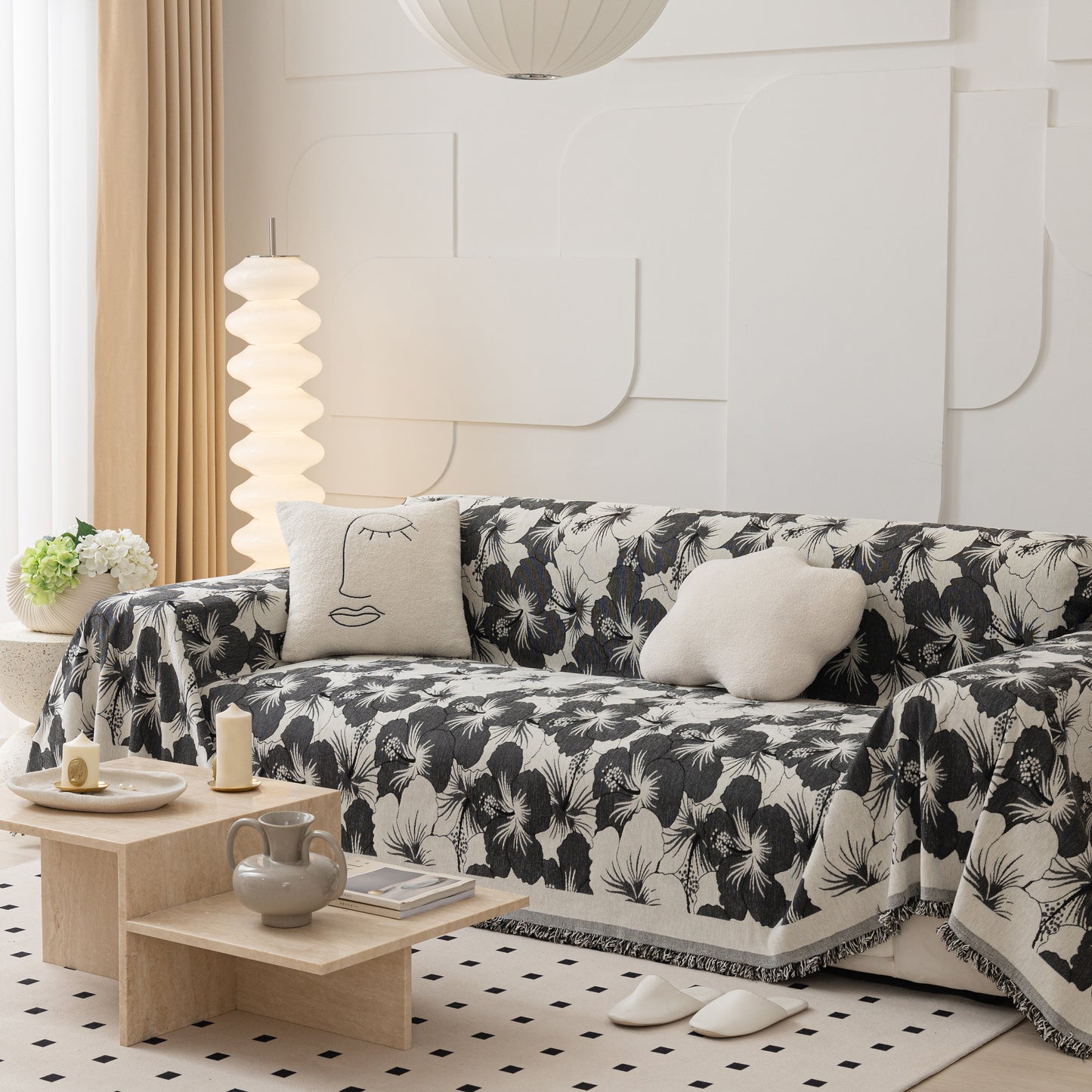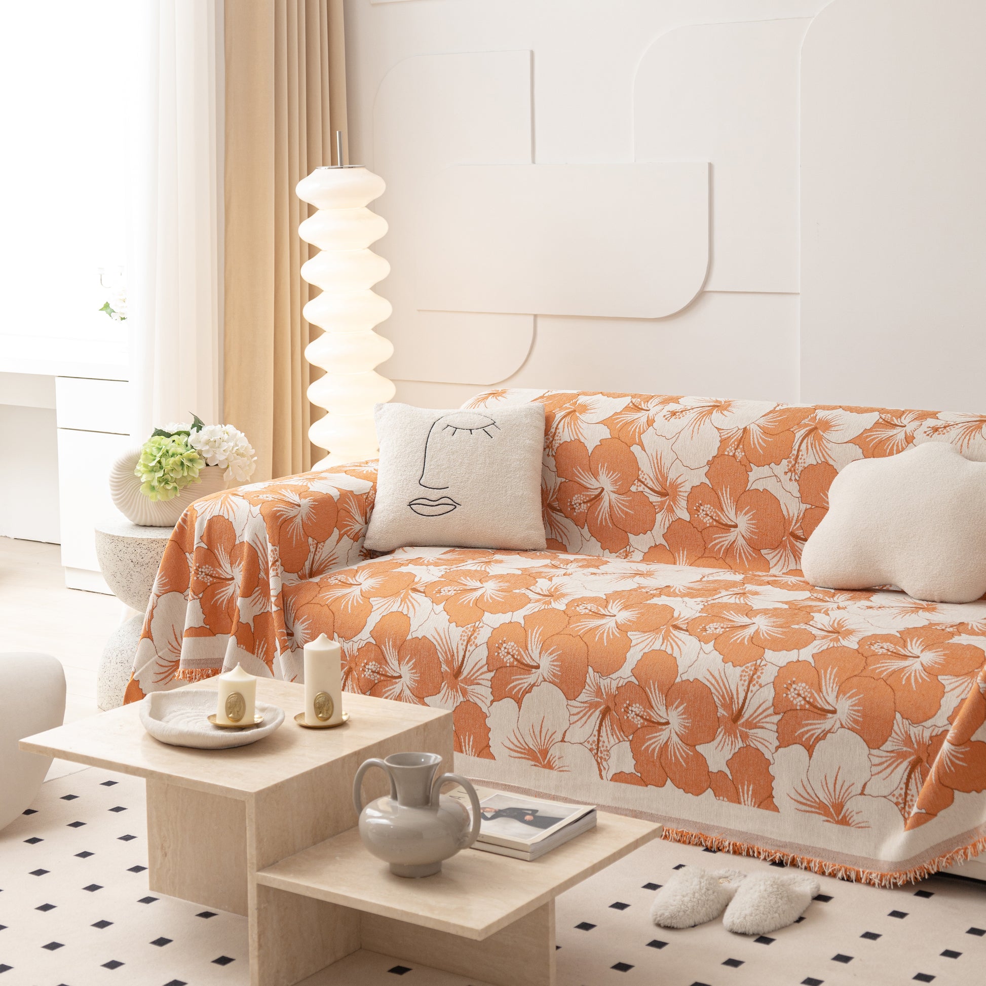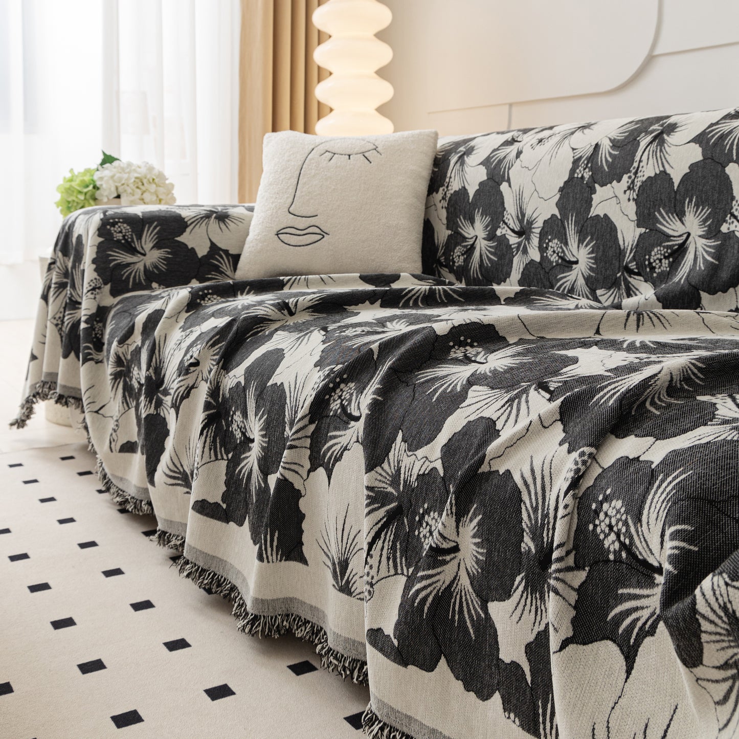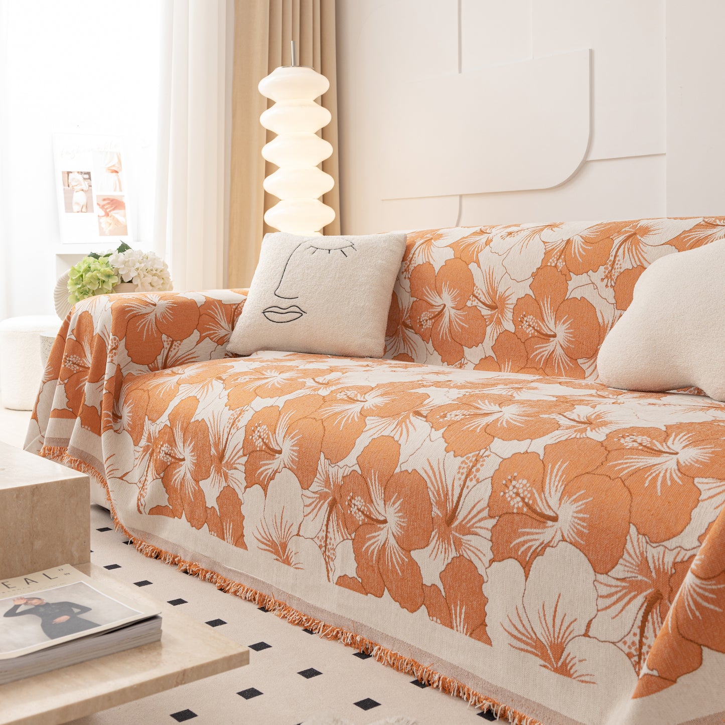 Chenille Blossoming Flowers Couch Covers, Couch Protector Blanket for Couches, Pet Furniture Throw
