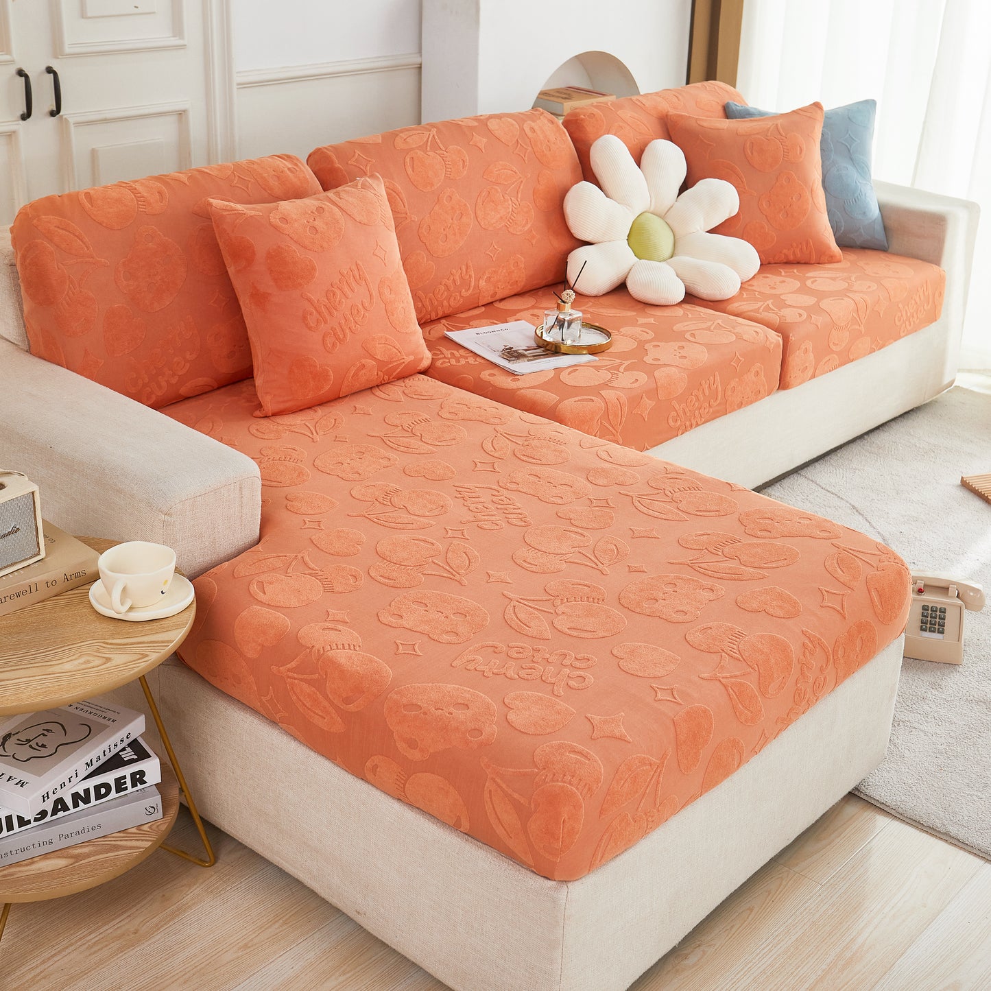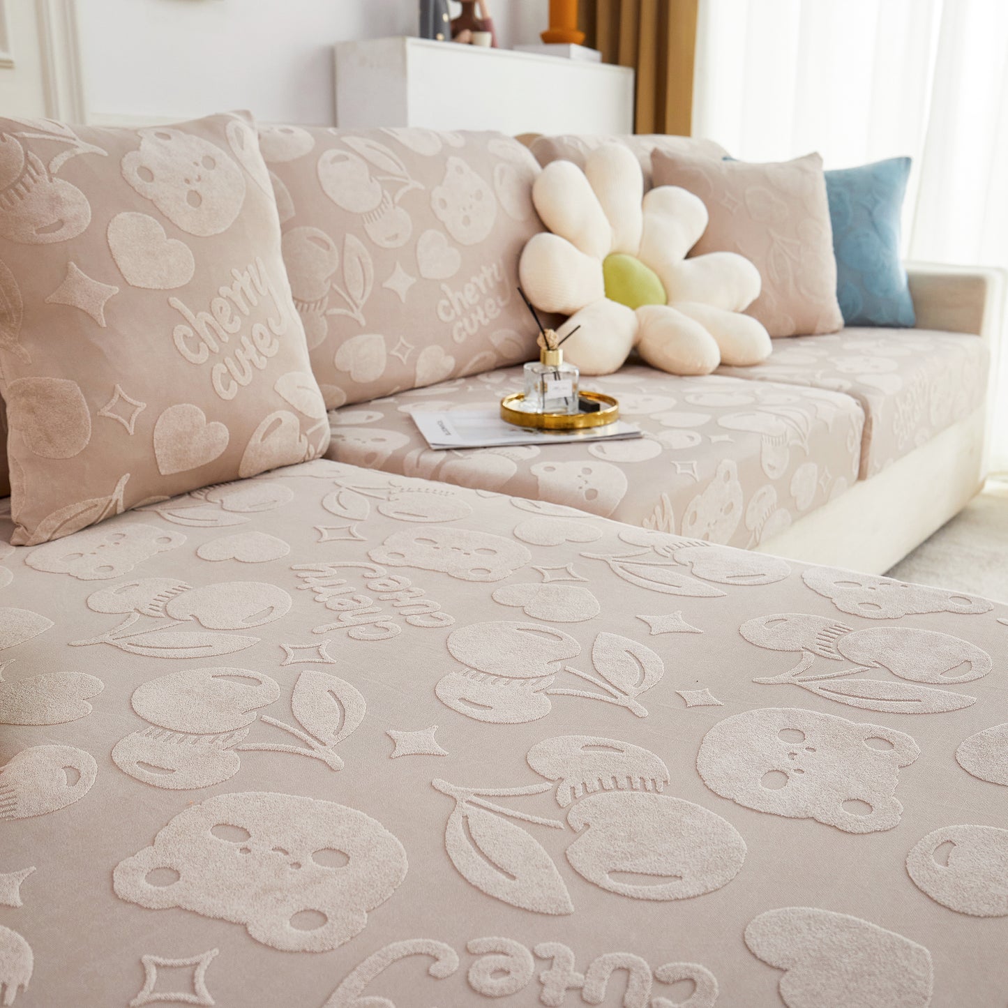 Cherry Cute Cooling Silk Fabric Stretch Couch Cushion Covers, Non-Slip Furniture Protector for Kids