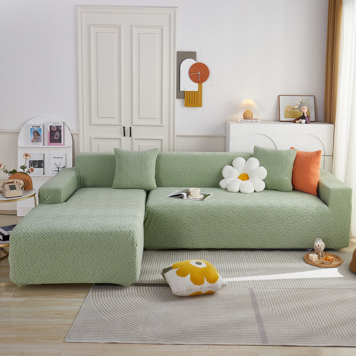 Soft, stretchable L-shape sectional sofa cover with full protection. This stretch furniture protector couch slipcover includes a free pillowcase, is easy to install, stays in place, and is machine washable—perfect for homes with kids and pets.