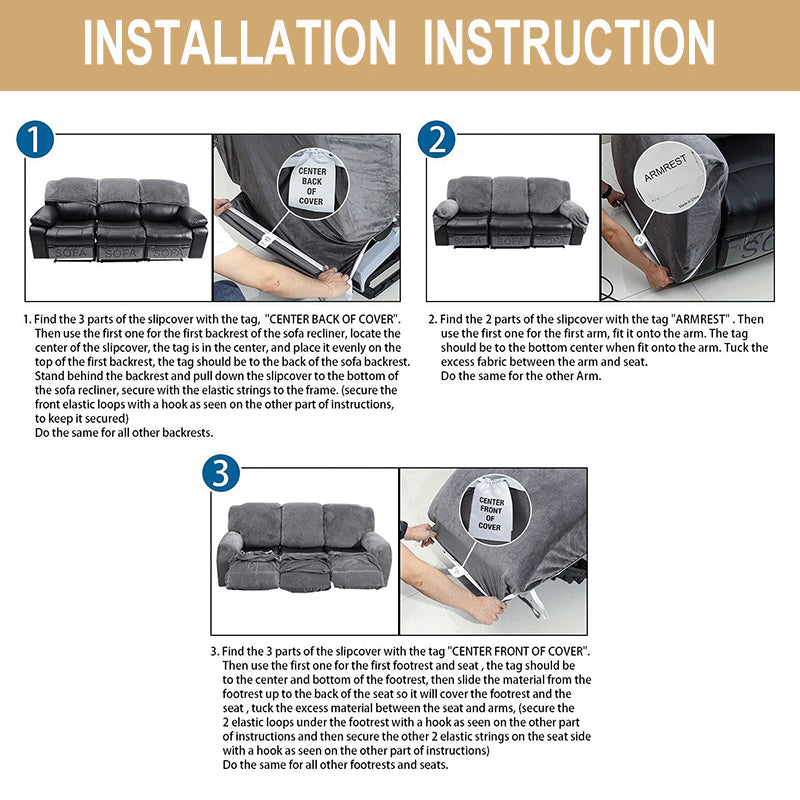 - Perfect Fit: The cover is suitable for both manual and electric recliners, fitting back sitting widths between 23-114 inches. The seat has two elastic loops at the back corners to make installation a breeze.
