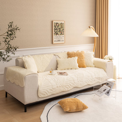 Soft Furry Velvet Plush Non-Slip Sofa Cover Quilted Palm Leaves Sectional Couch Cover for Kids and Pets