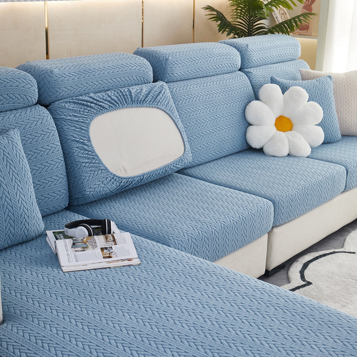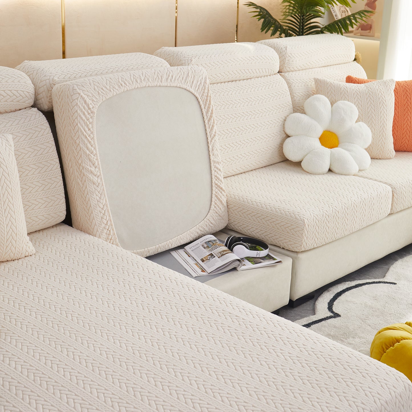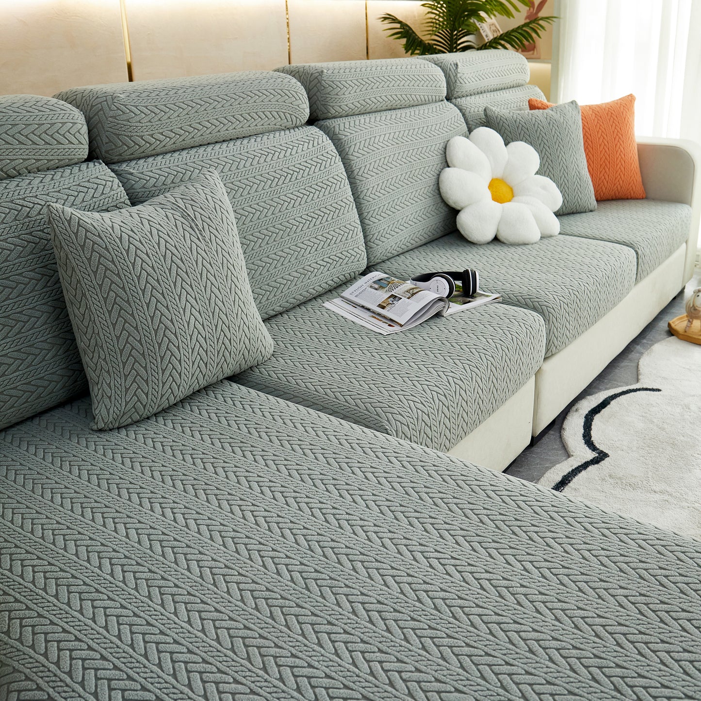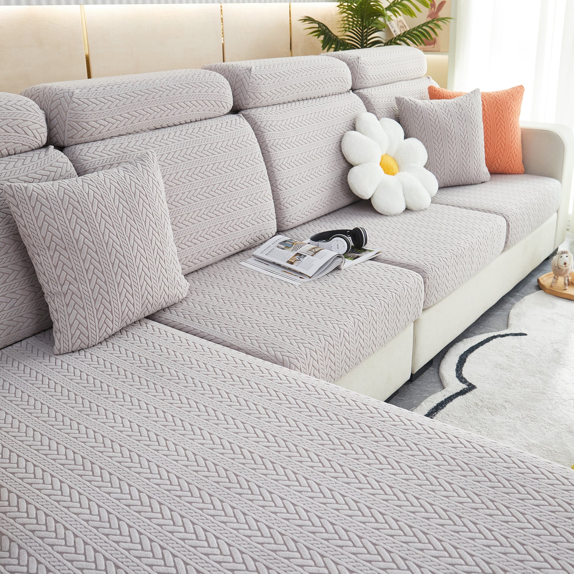 Stretchable Jacquard Polar Fleece Sofa Cover Non-Slip Furniture Protector for Pets L-Shaped Couch Slipcovers