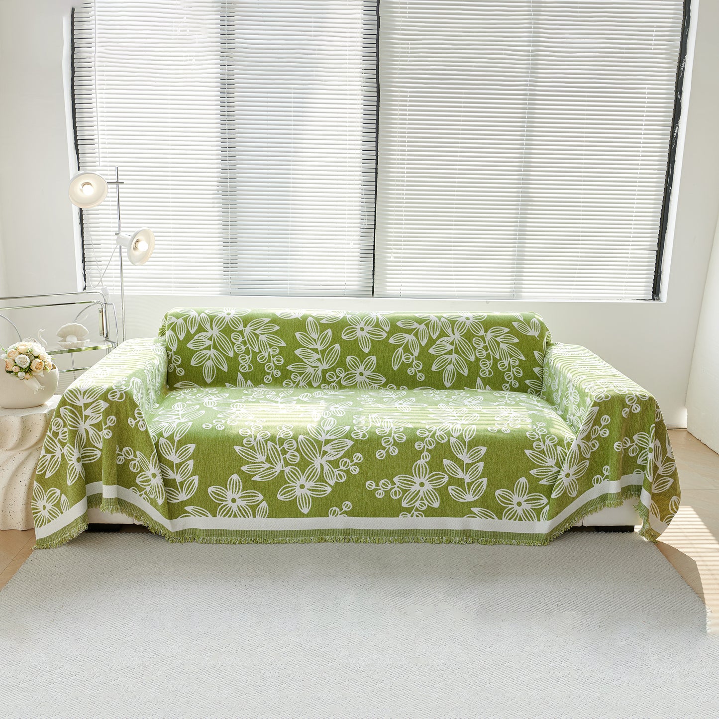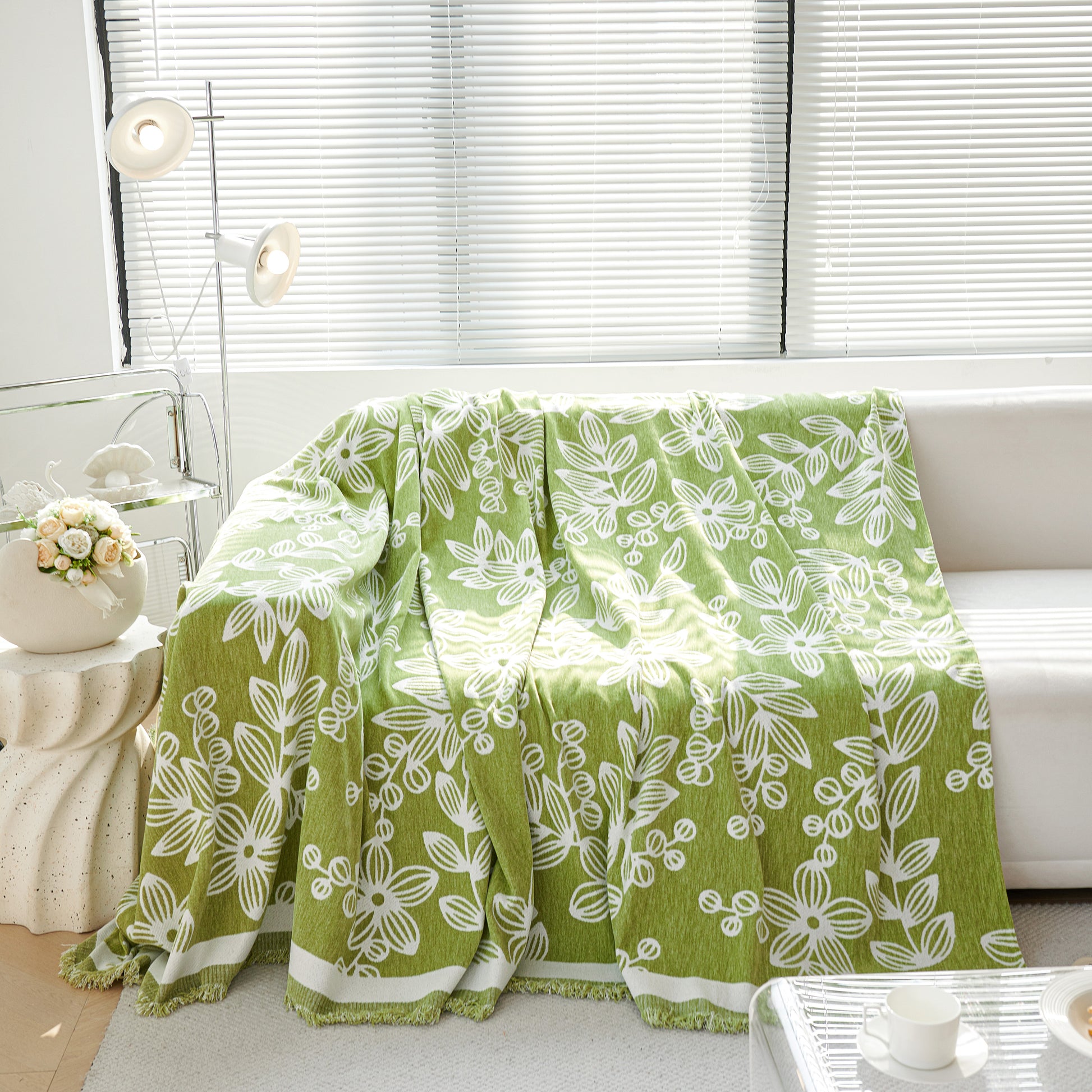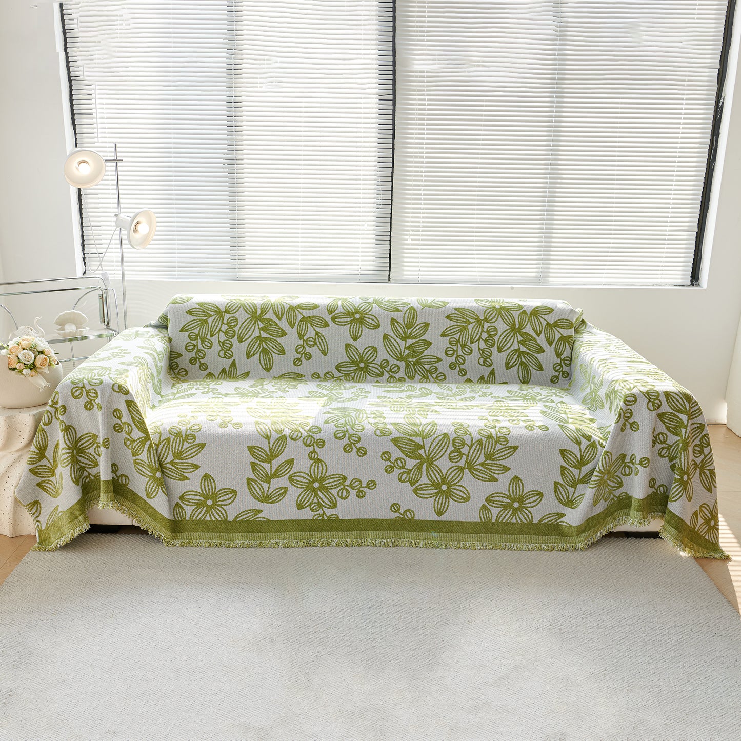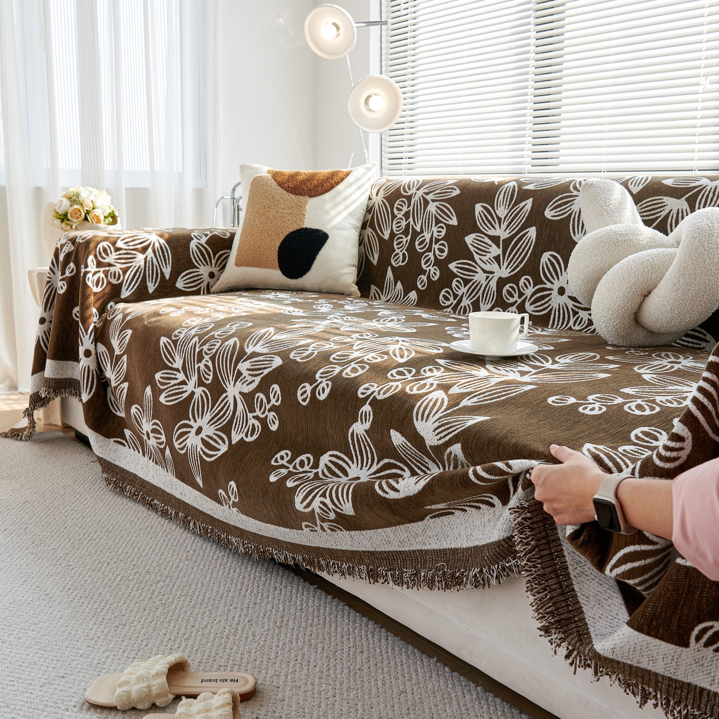 Floral Symphony Couch Throw Cover with Tassel, Chenille Sofa Cover with Leafy Melodies for Sectional