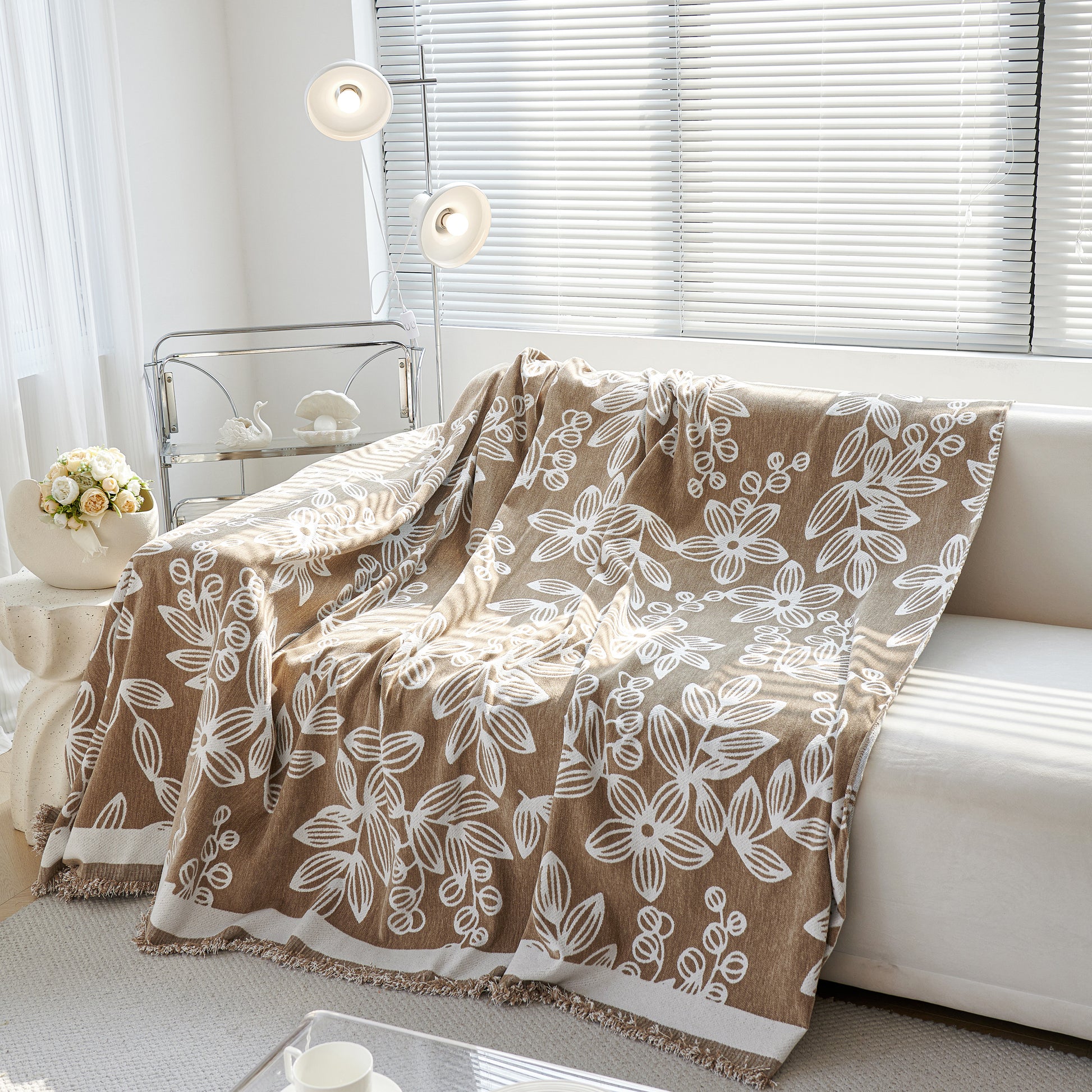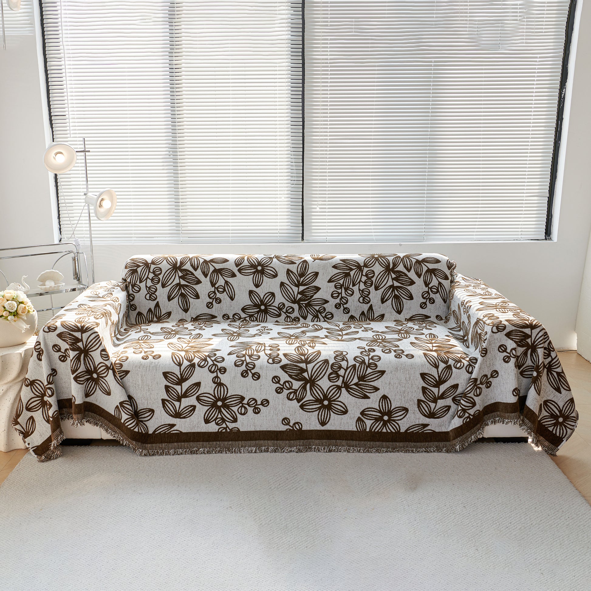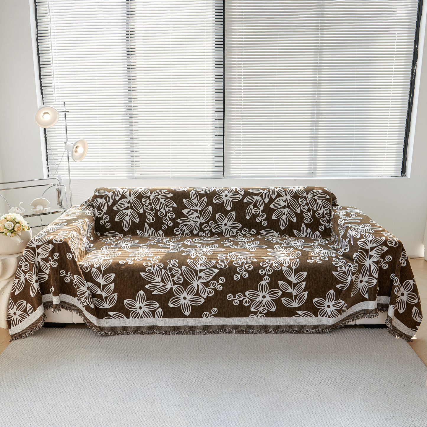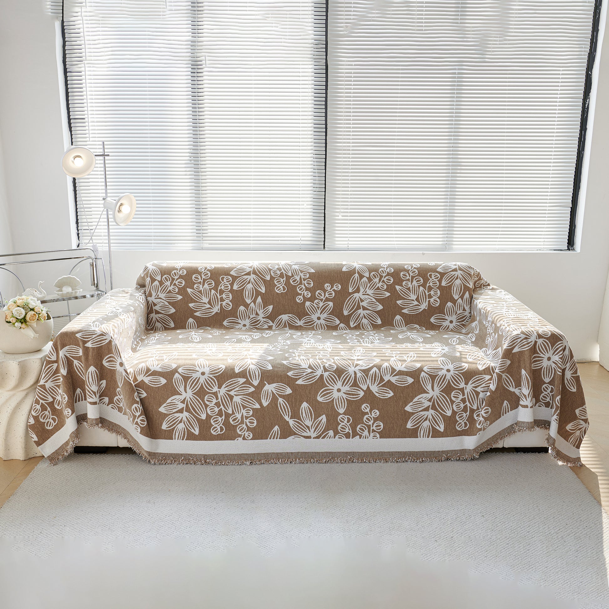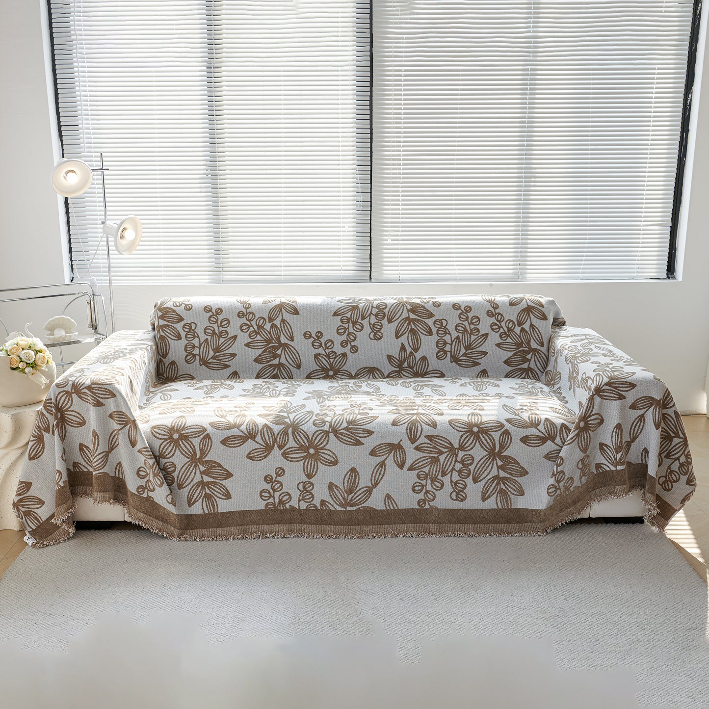 Floral Symphony Couch Throw Cover with Tassel, Chenille Sofa Cover with Leafy Melodies for Sectional
