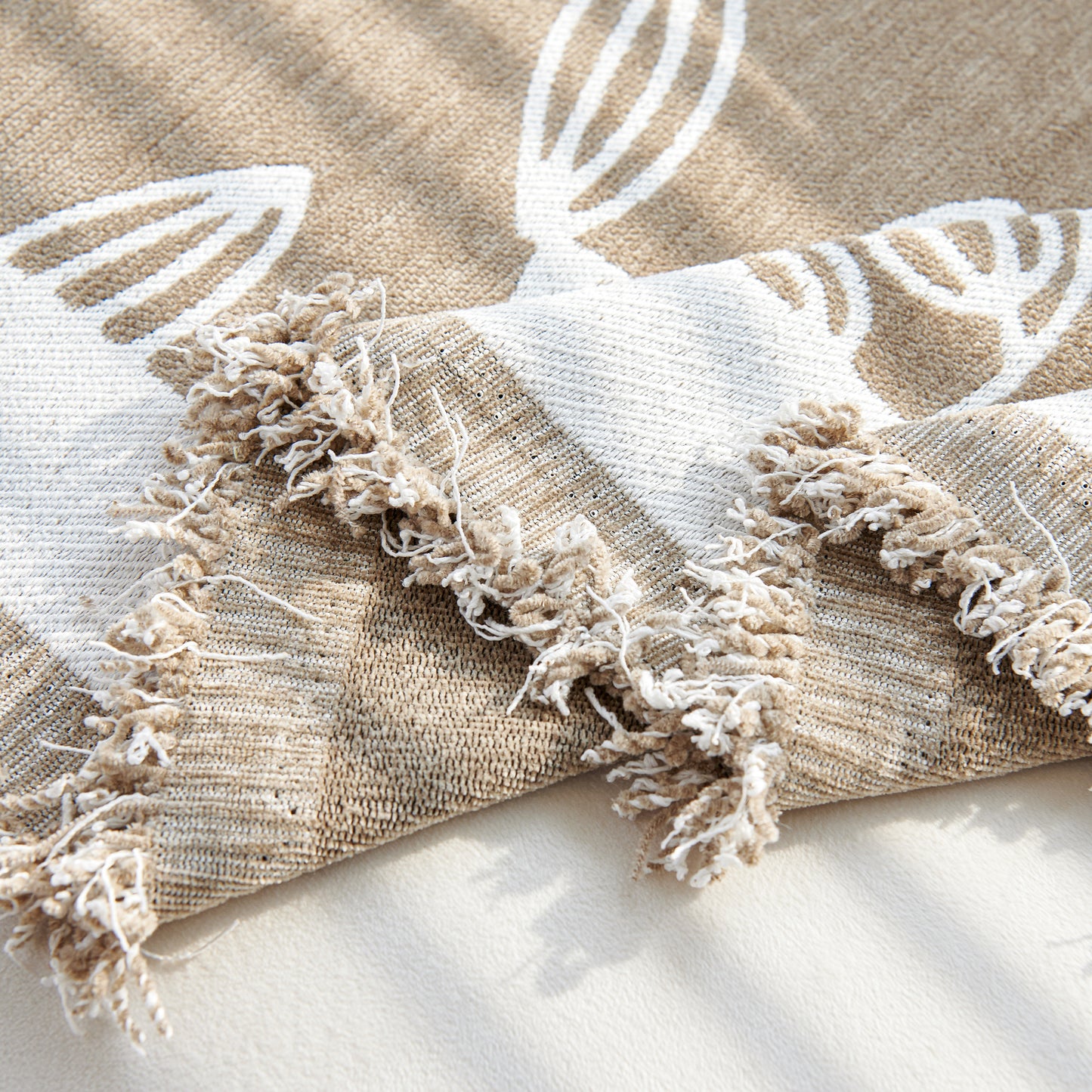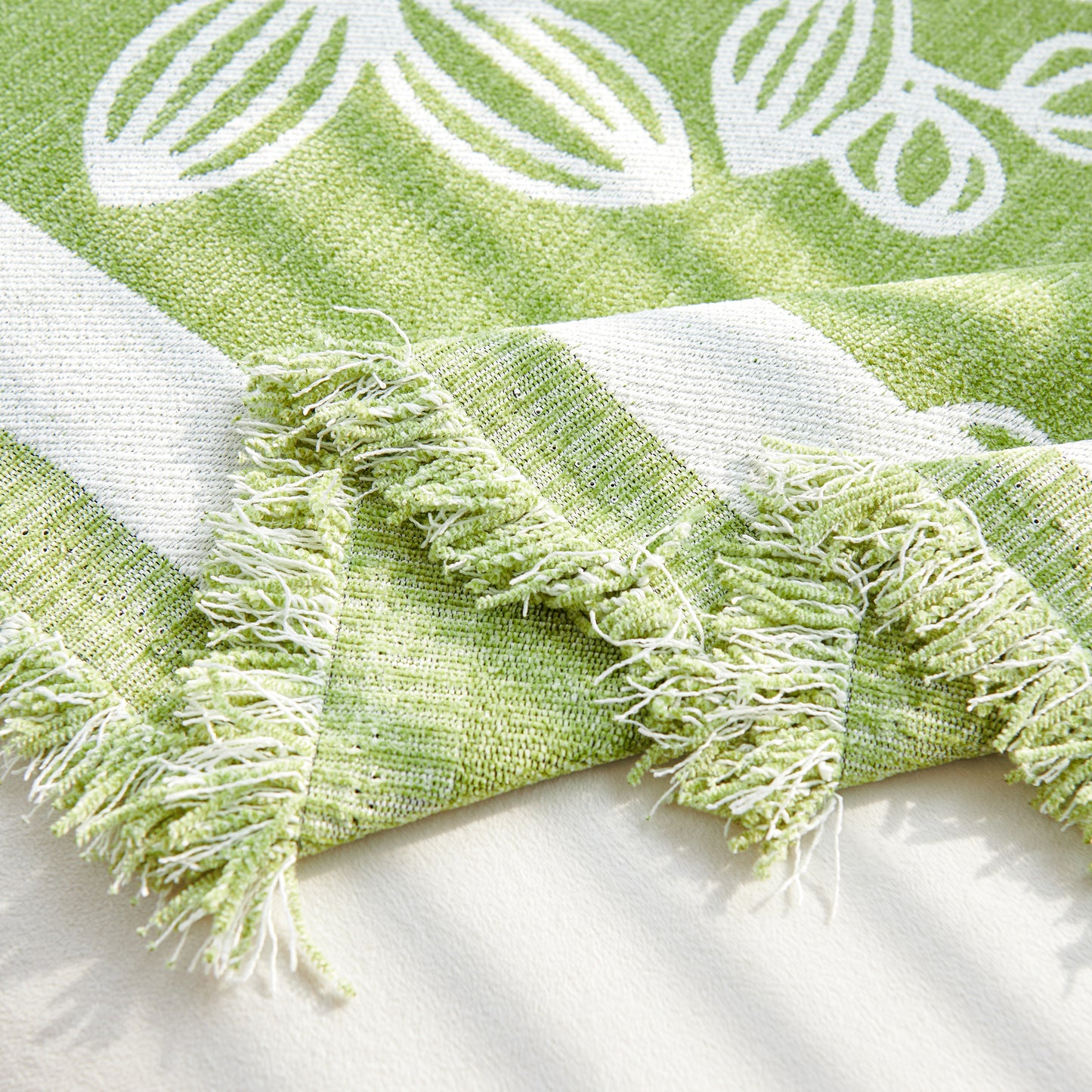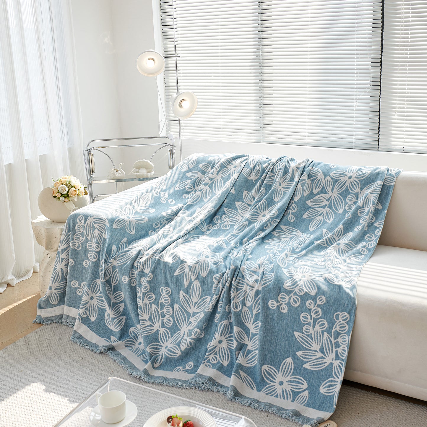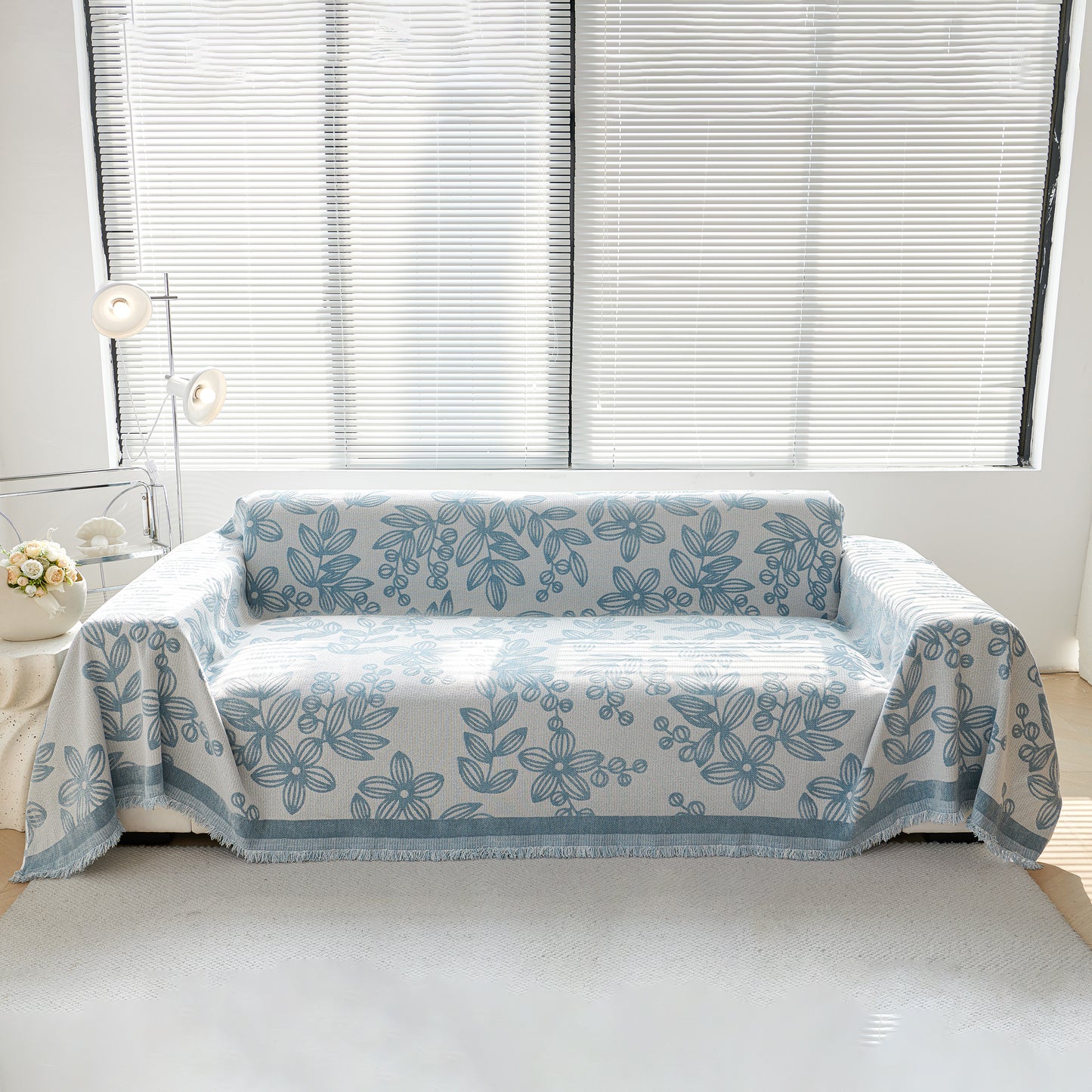 Floral Symphony Couch Throw Cover with Tassel, Chenille Sofa Cover with Leafy Melodies for Sectional