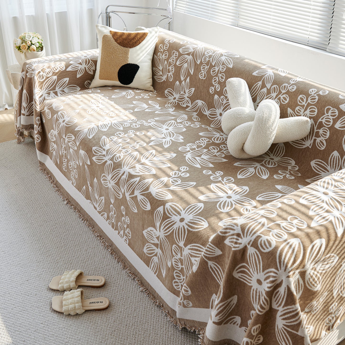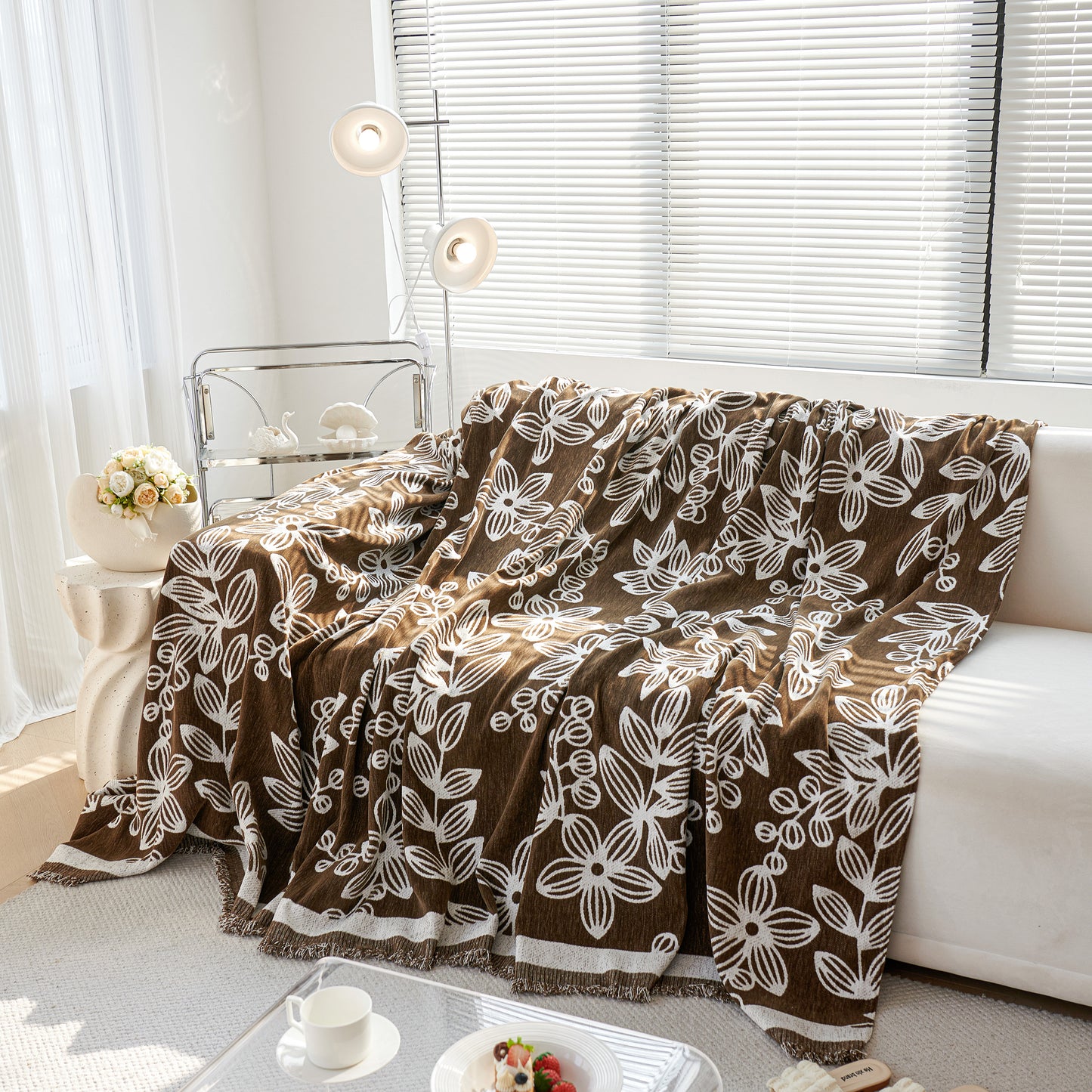 Transform your home with the Floral Symphony Couch Throw Cover. Made from luxurious chenille, this cover features elegant floral and leafy melodies with chic tassels. Perfect for sectionals, it combines style and protection, adding a touch of nature's elegance to your living space.