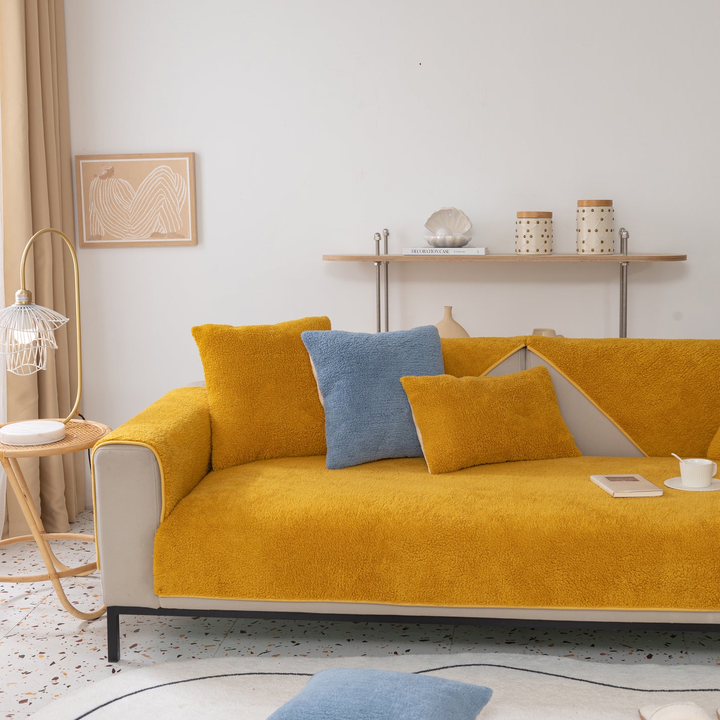 Luxury Sherpa Fleece Solid Sofa Towels Thickened Plush Non Slip Sofa Cushion Covers
