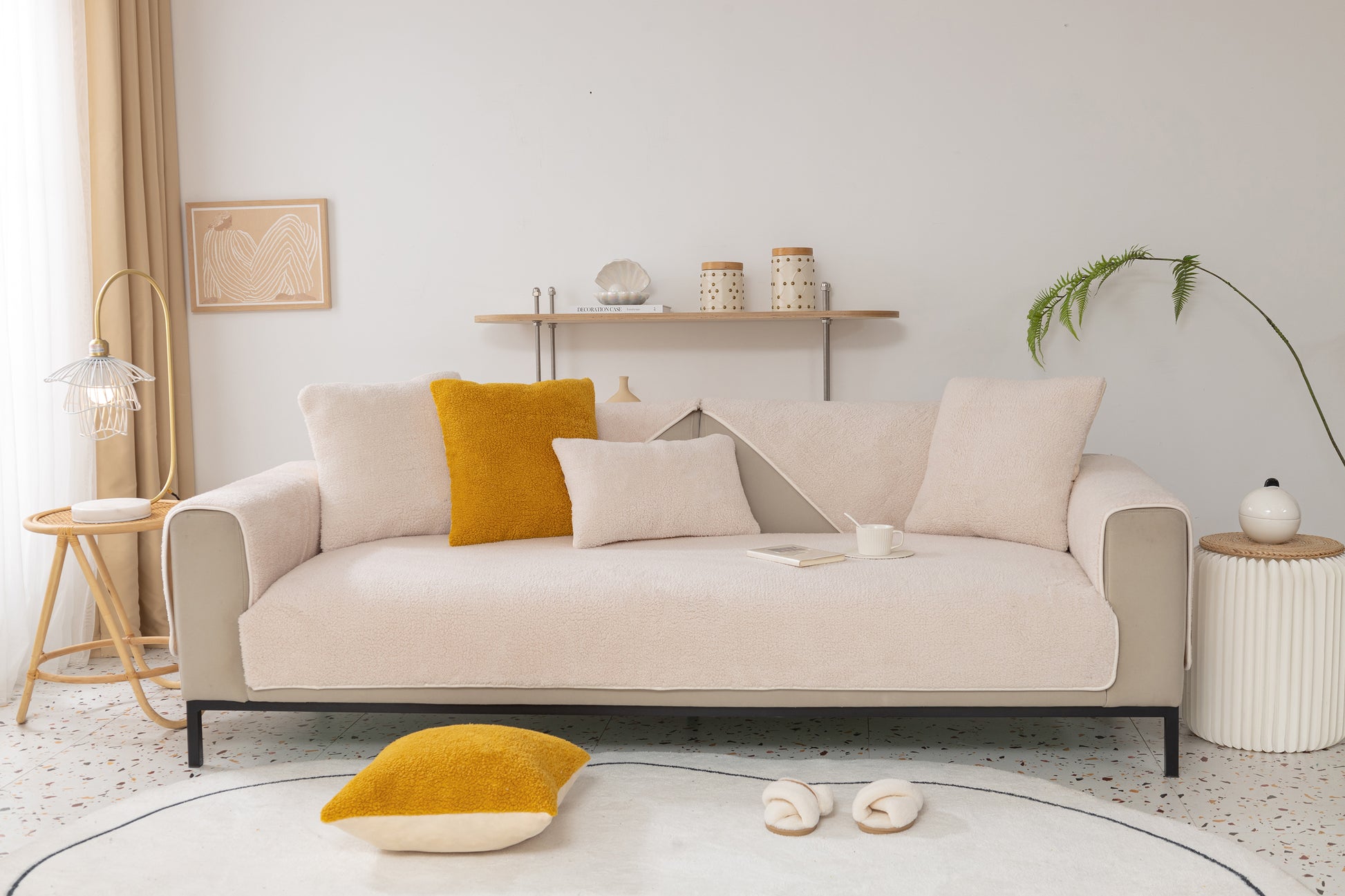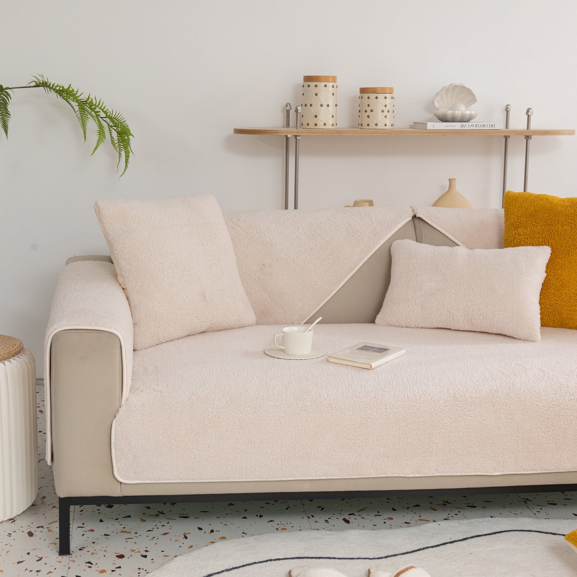 - High-quality materials: This sofa cover is made of high-quality sherpa fleece (100% polyester), featuring dense and delicate fluff that resists shedding and is anti-static. Soft to the touch, it offers a cloud-like comfort with every use.