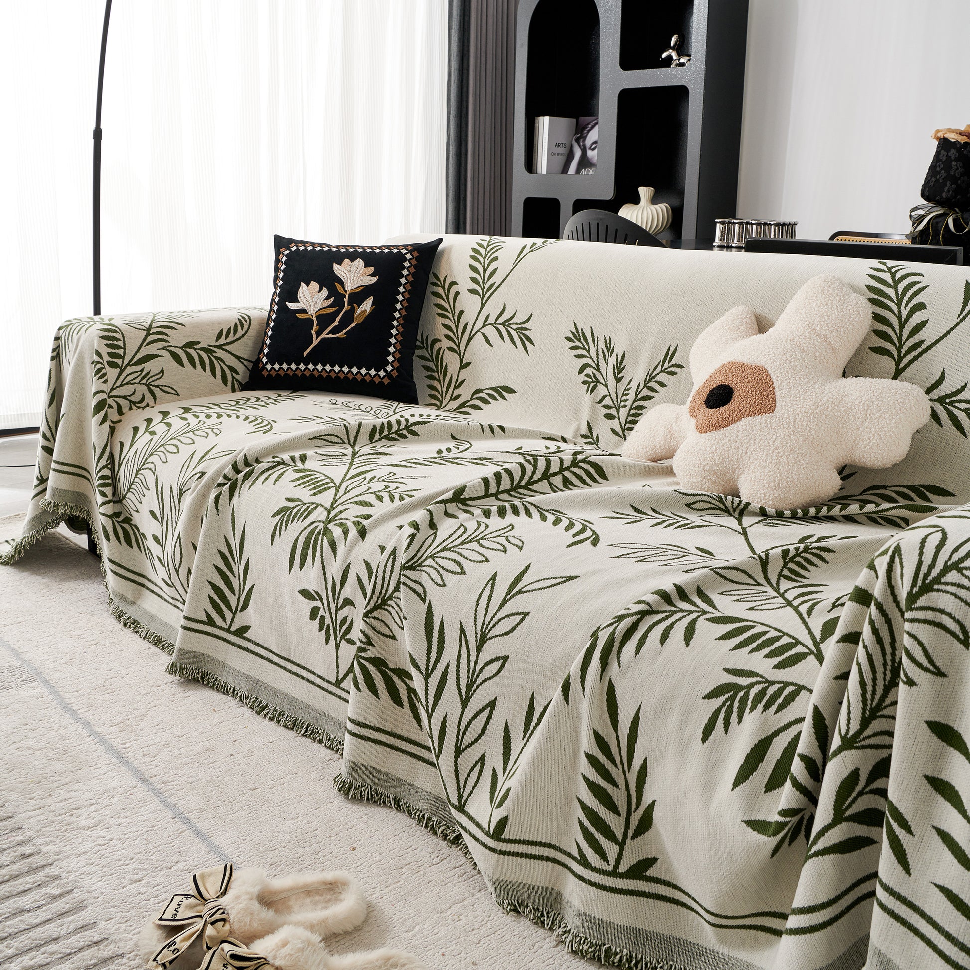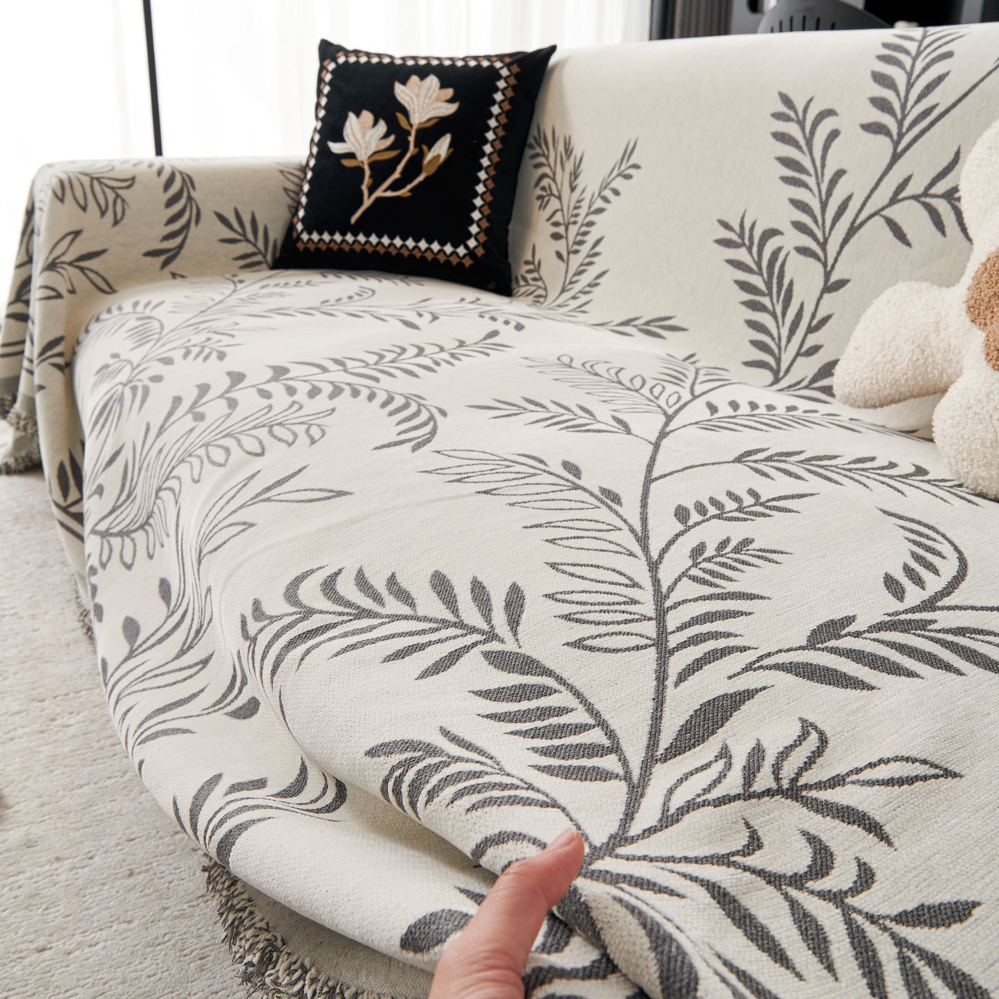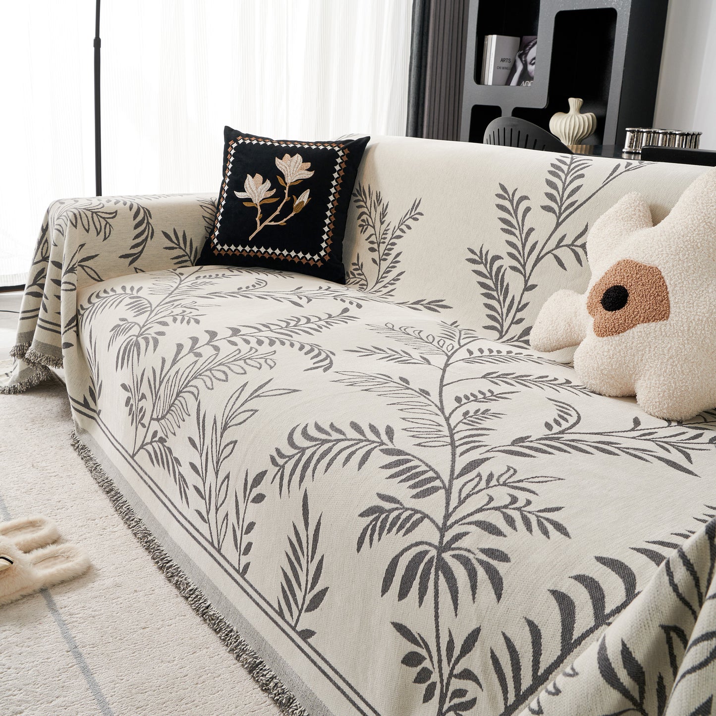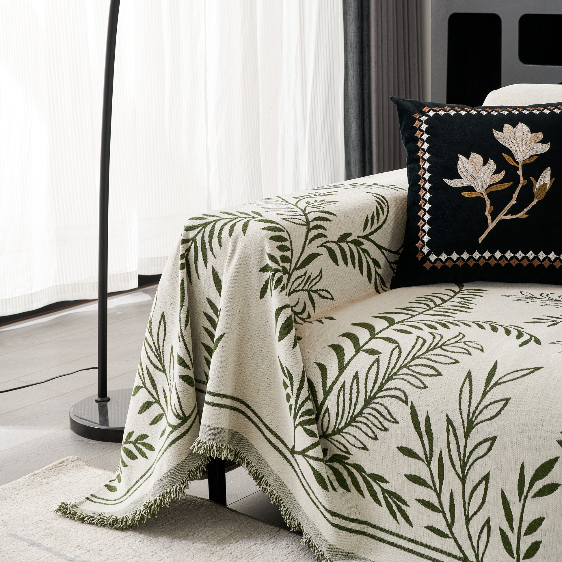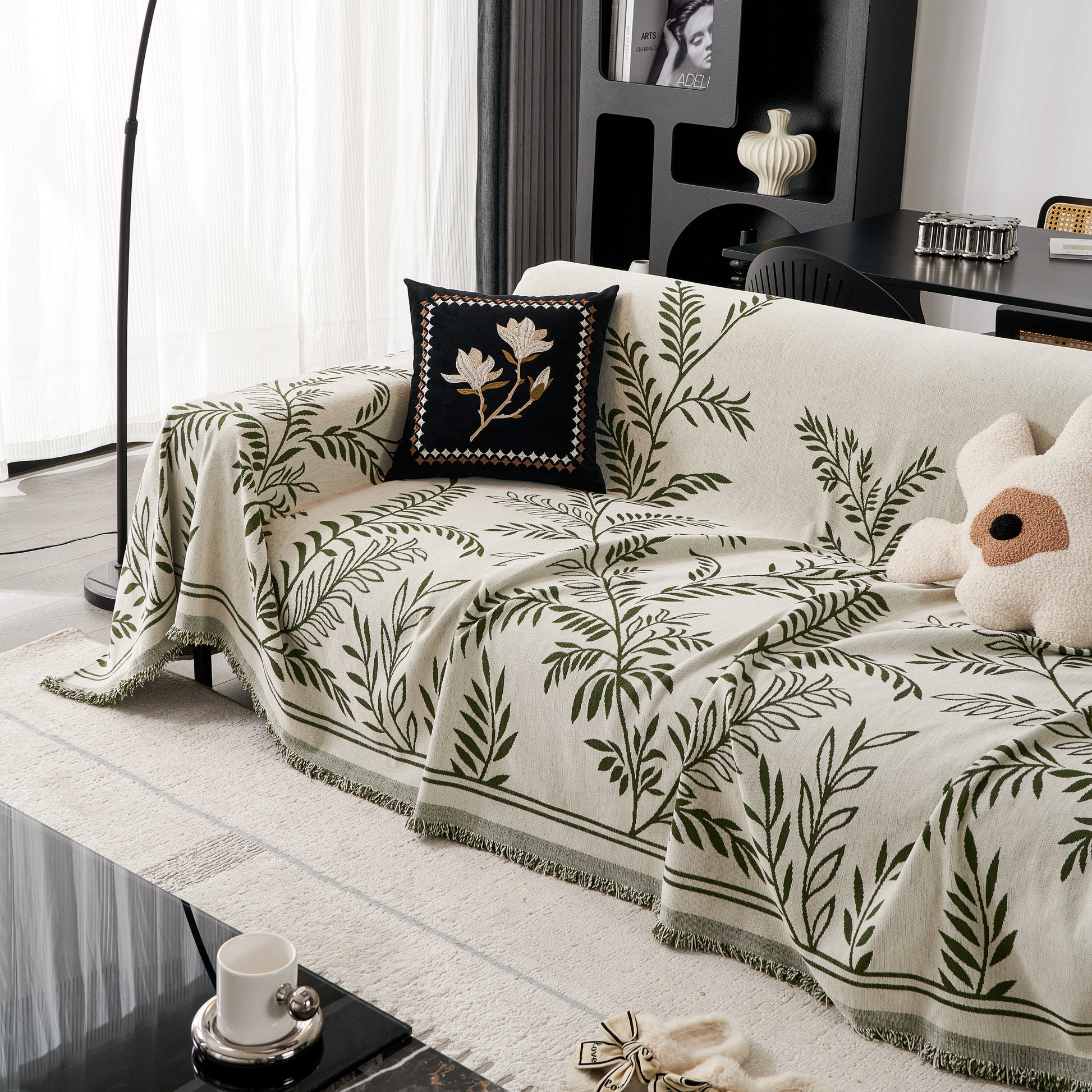 Modern Minimalist Chenille Willow Leaf Pattern Couch Cover Blanket, Luxurious Blankets for The Sofa