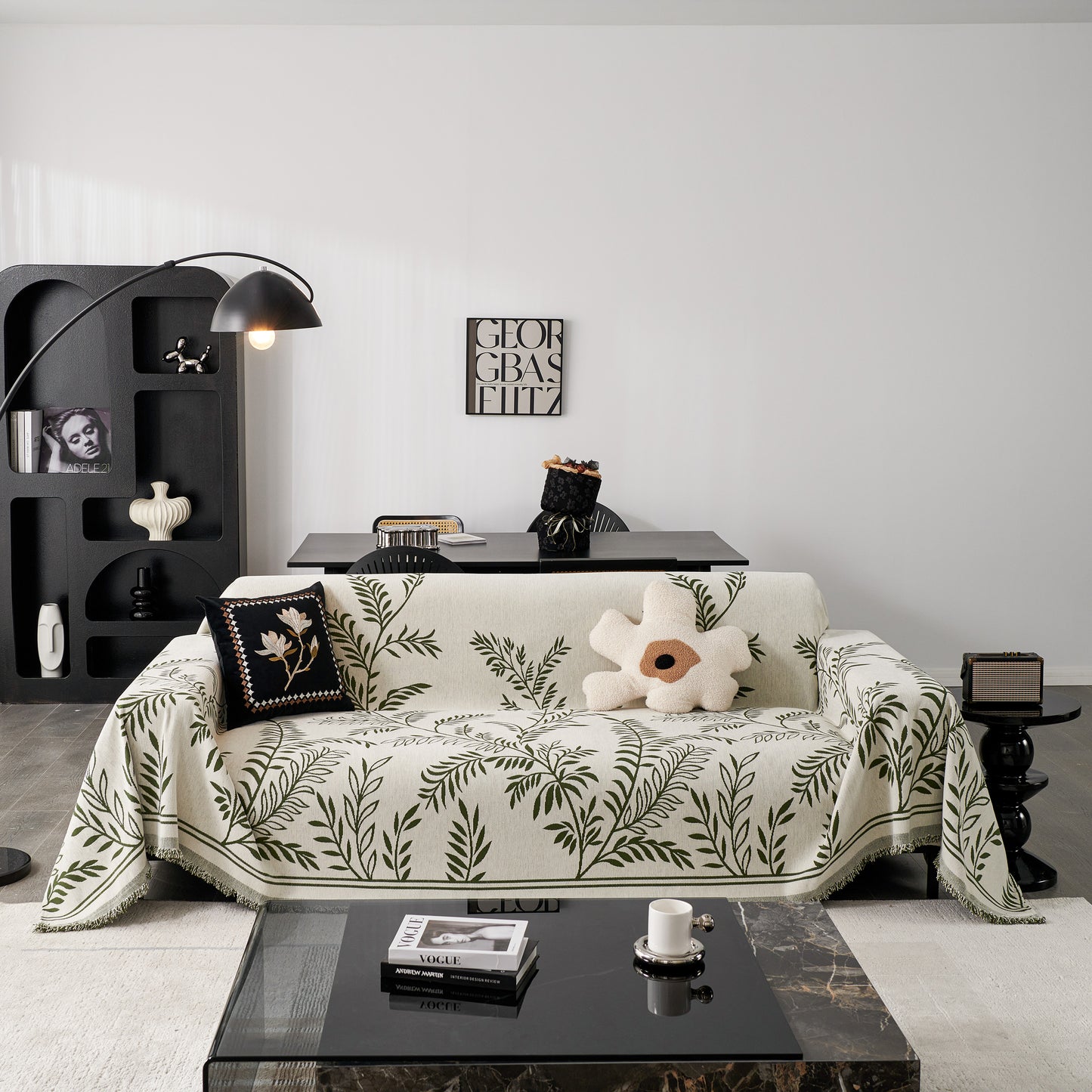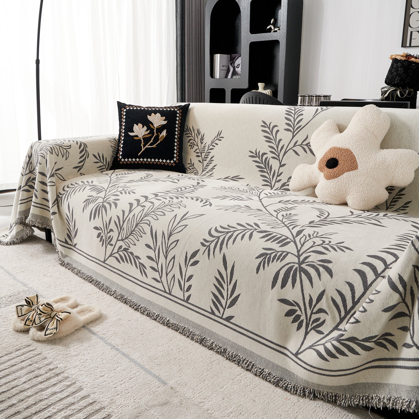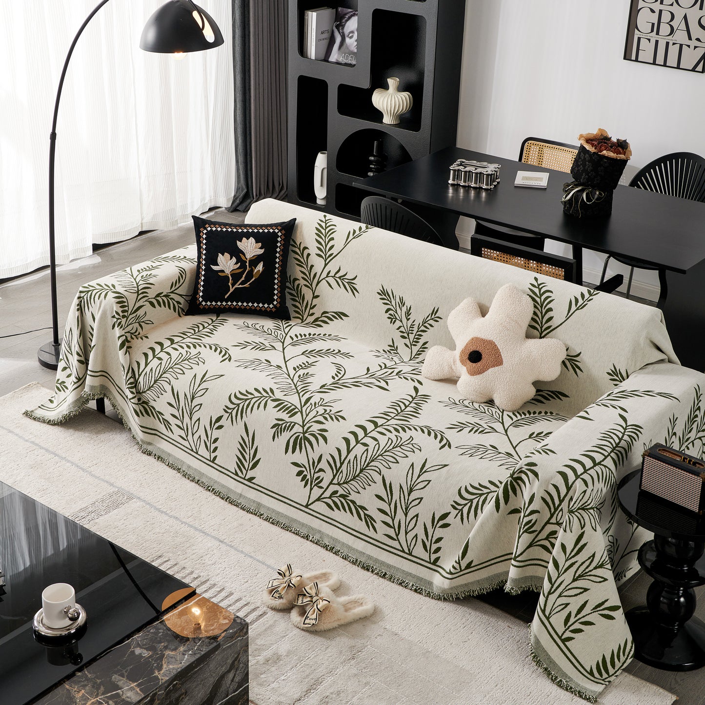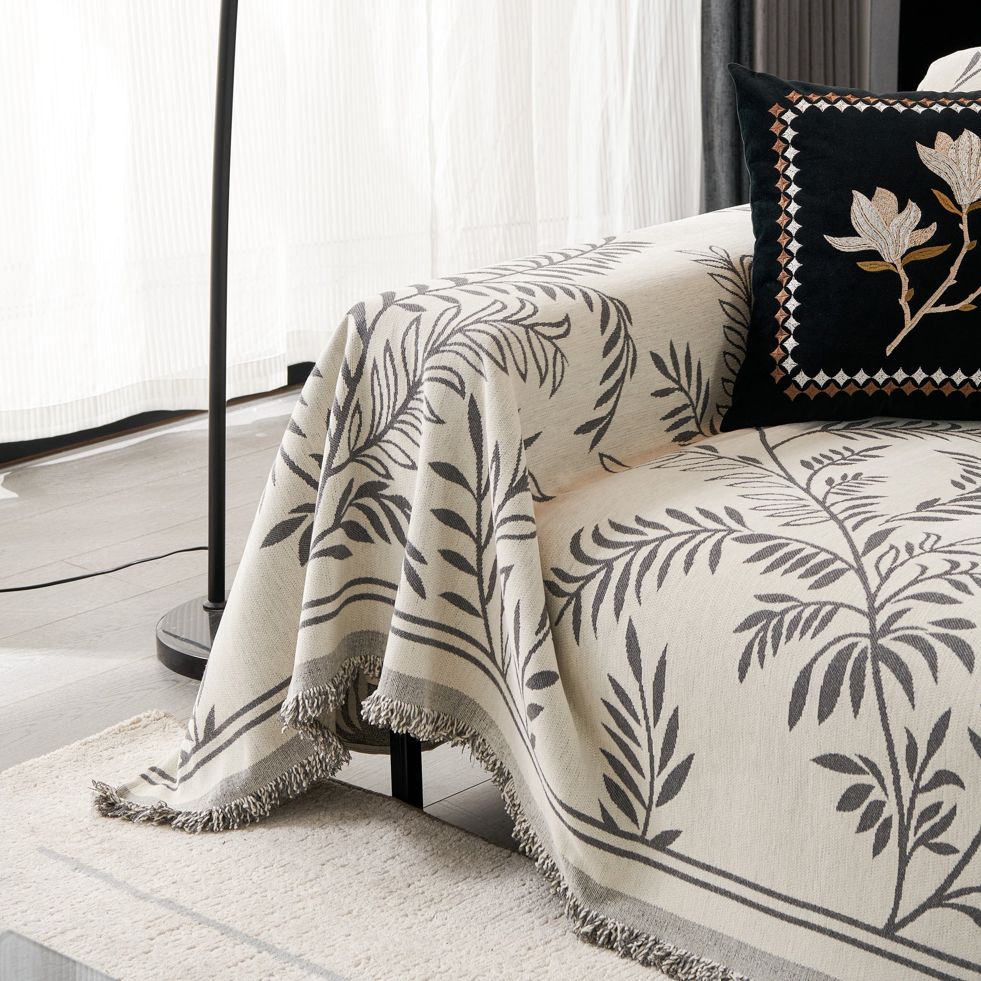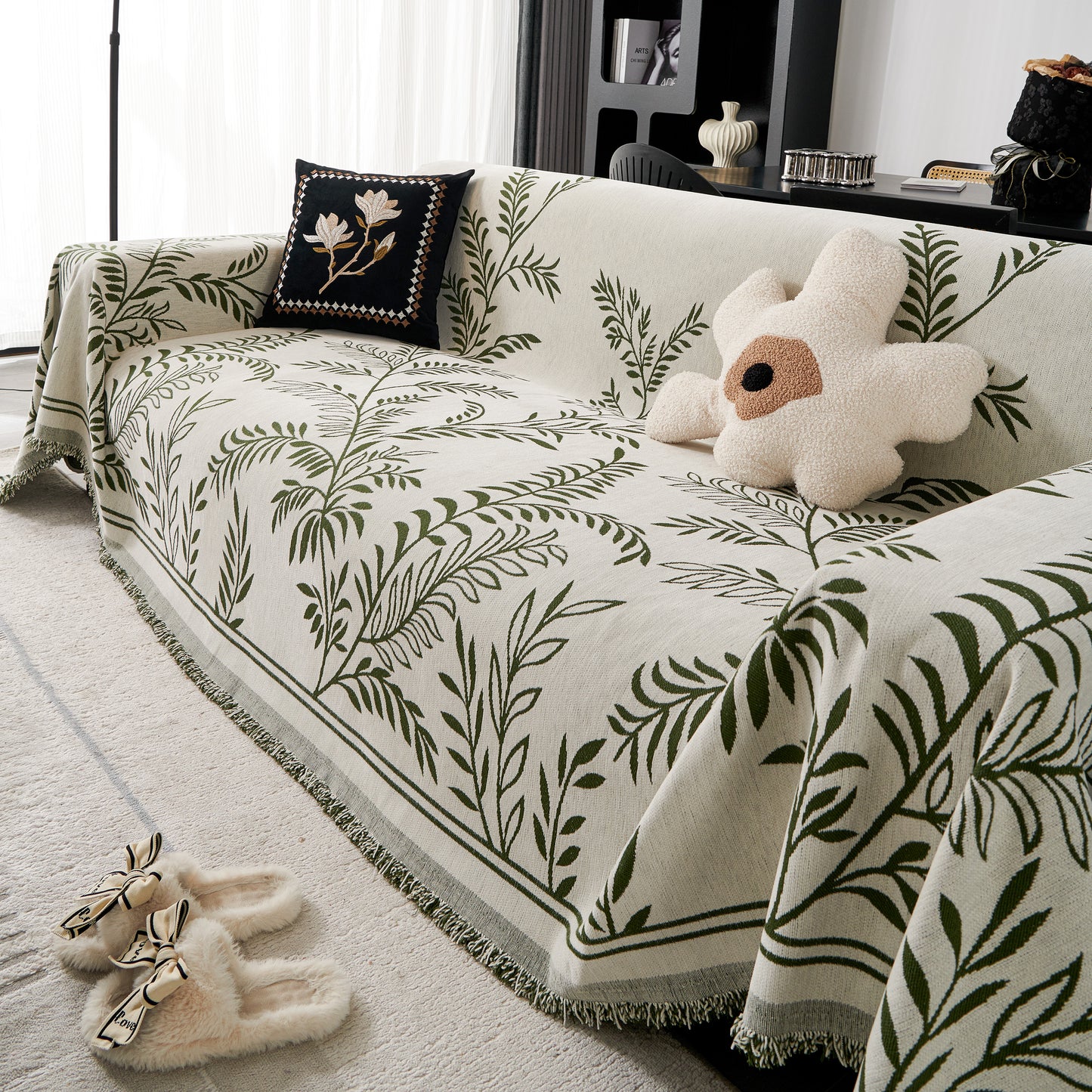 Modern Minimalist Chenille Willow Leaf Pattern Couch Cover Blanket, Luxurious Blankets for The Sofa