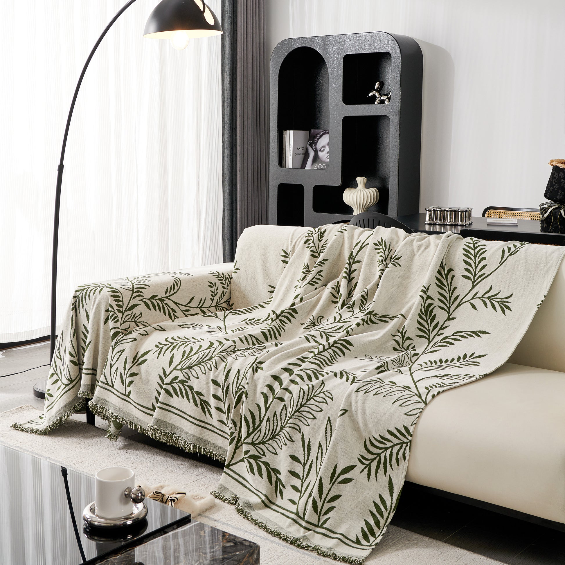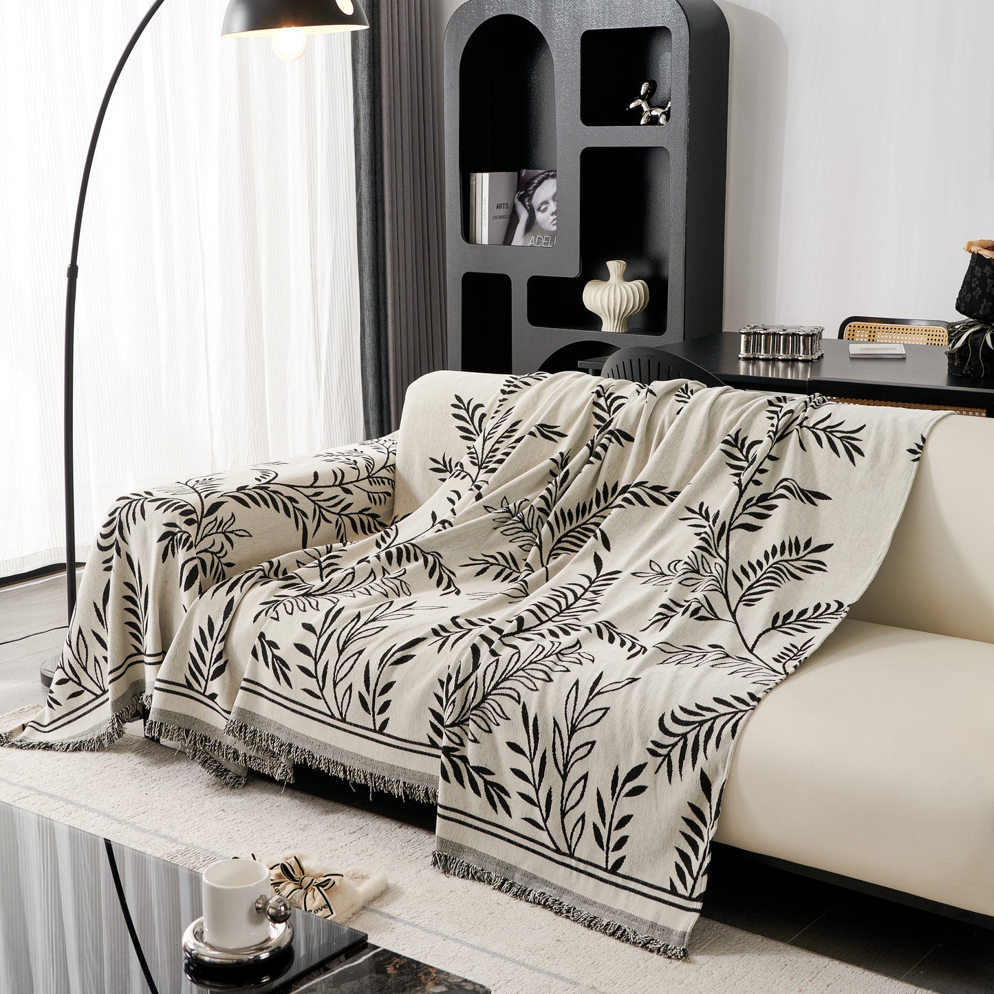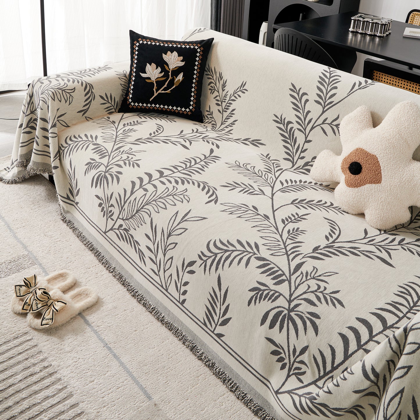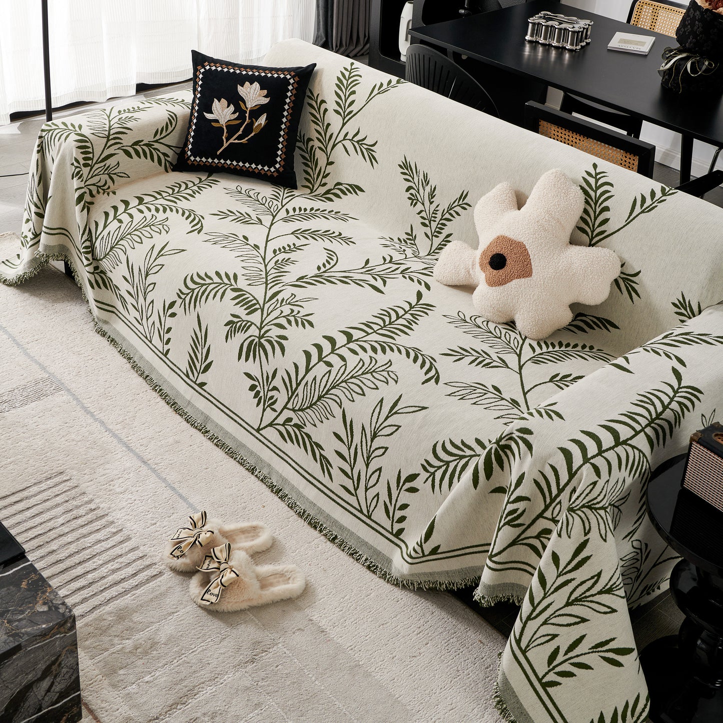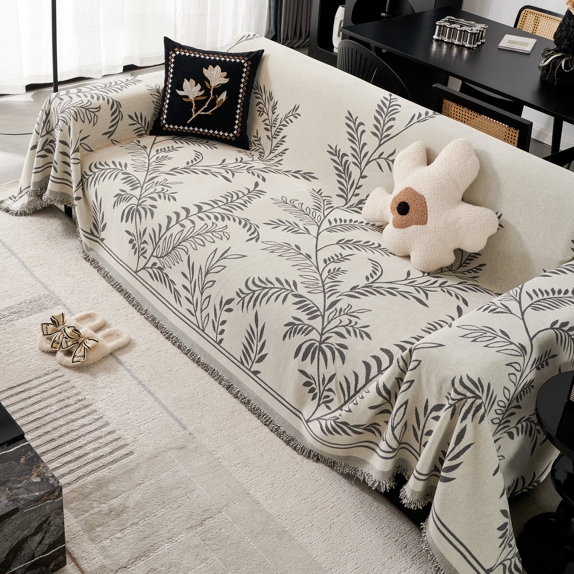 Modern Minimalist Chenille Willow Leaf Pattern Couch Cover Blanket, Luxurious Blankets for The Sofa