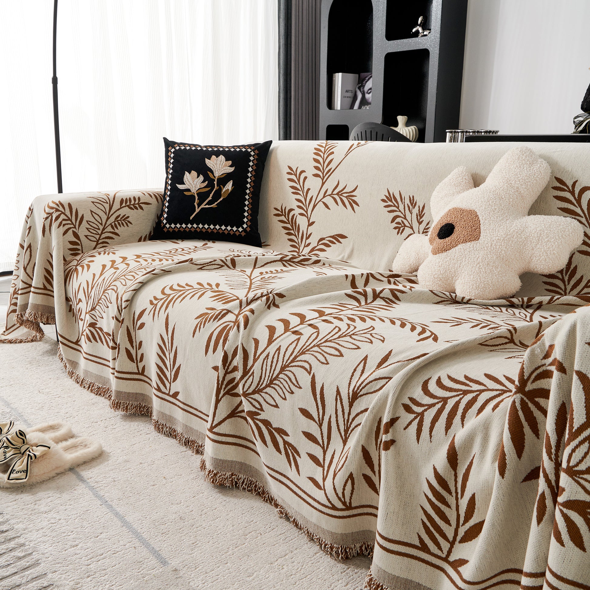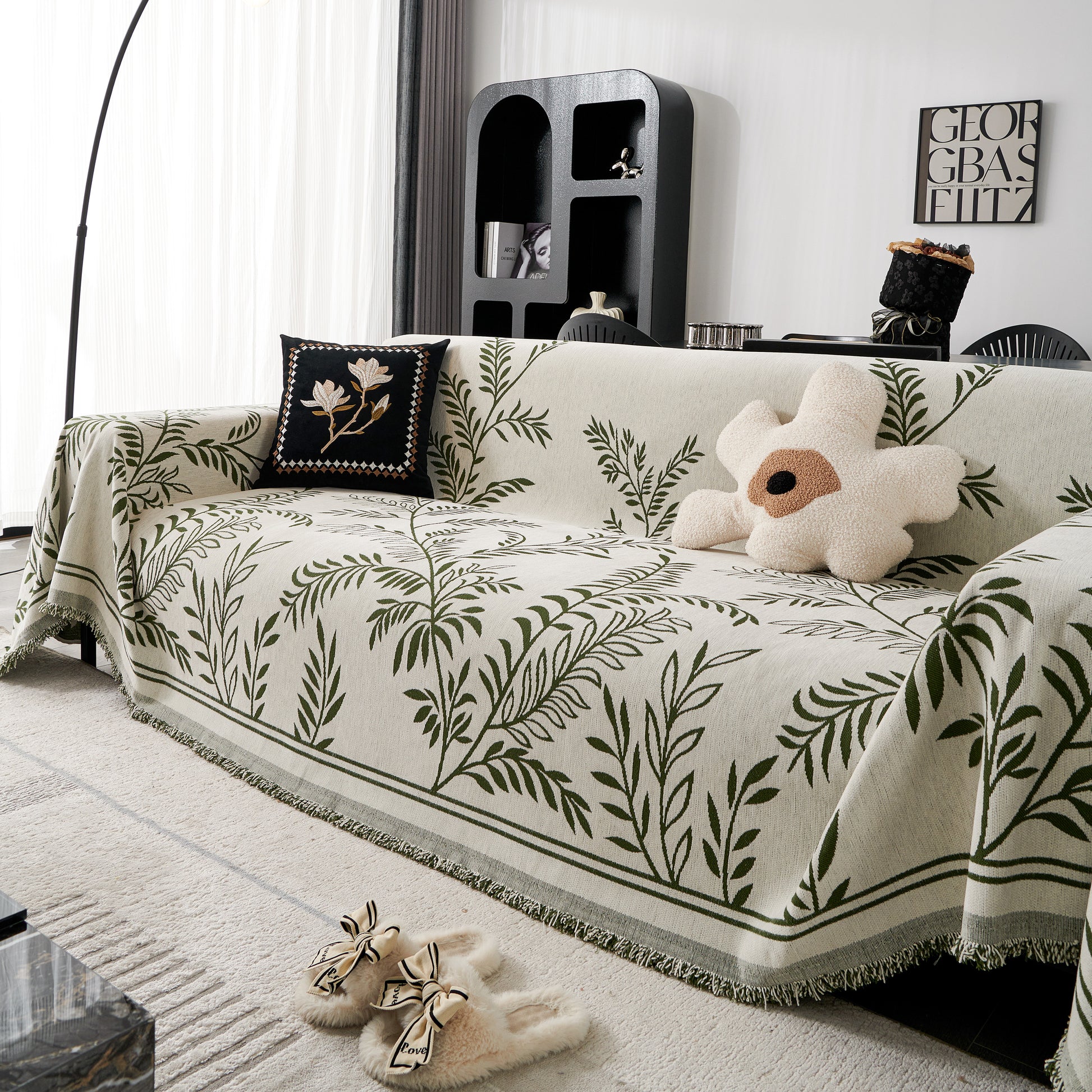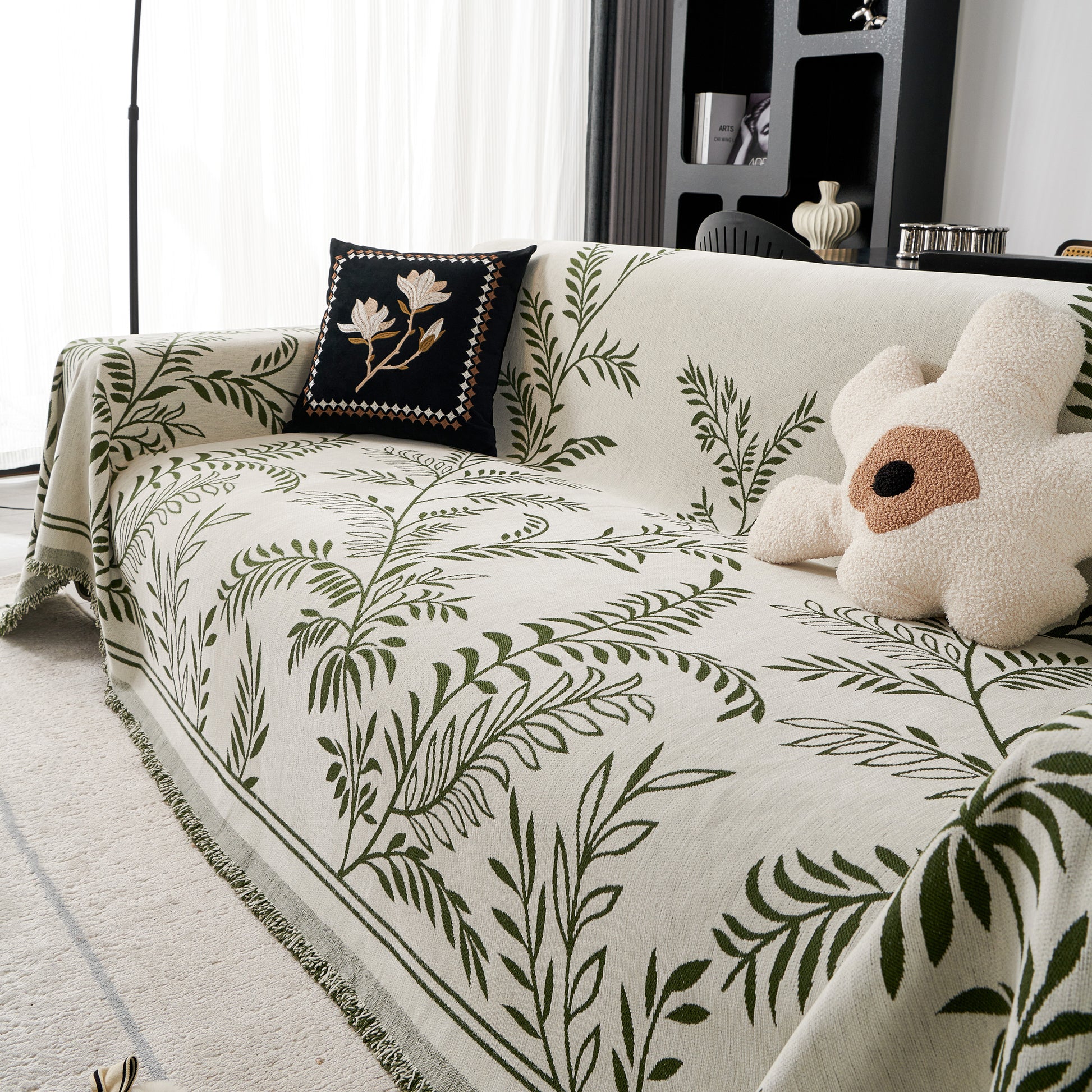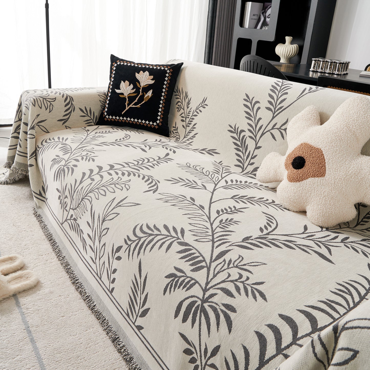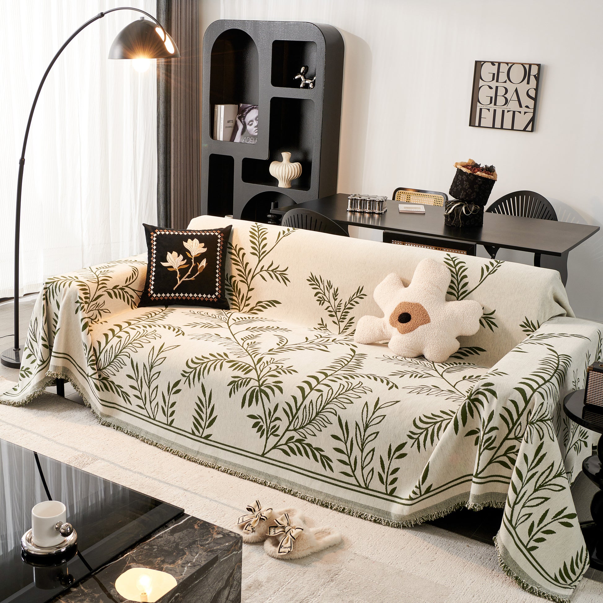 Modern Minimalist Chenille Willow Leaf Pattern Couch Cover Blanket, Luxurious Blankets for The Sofa