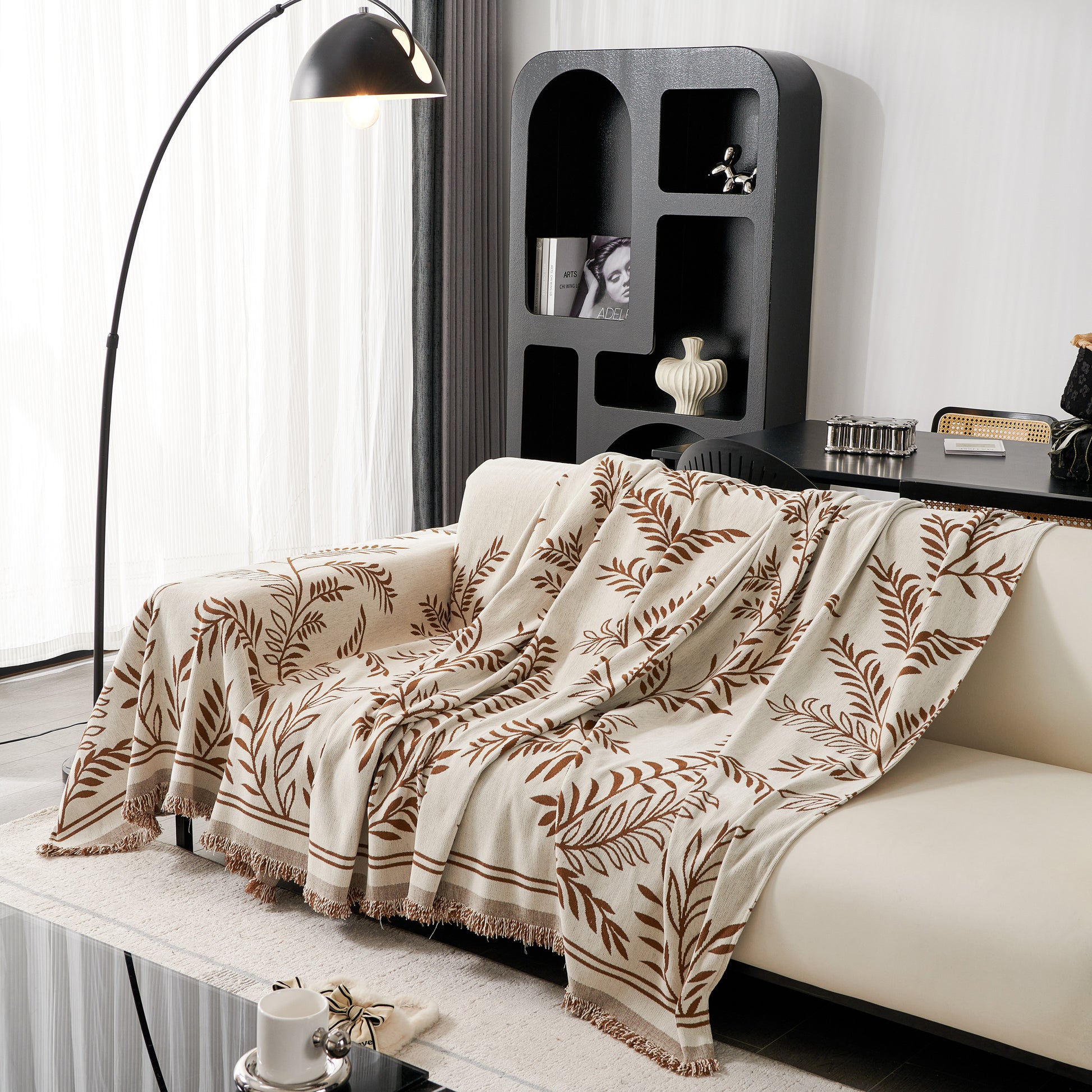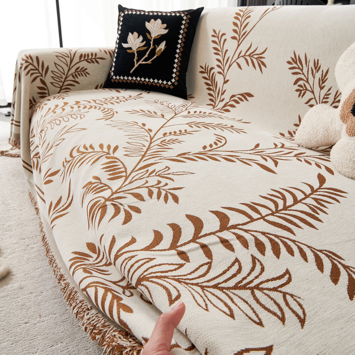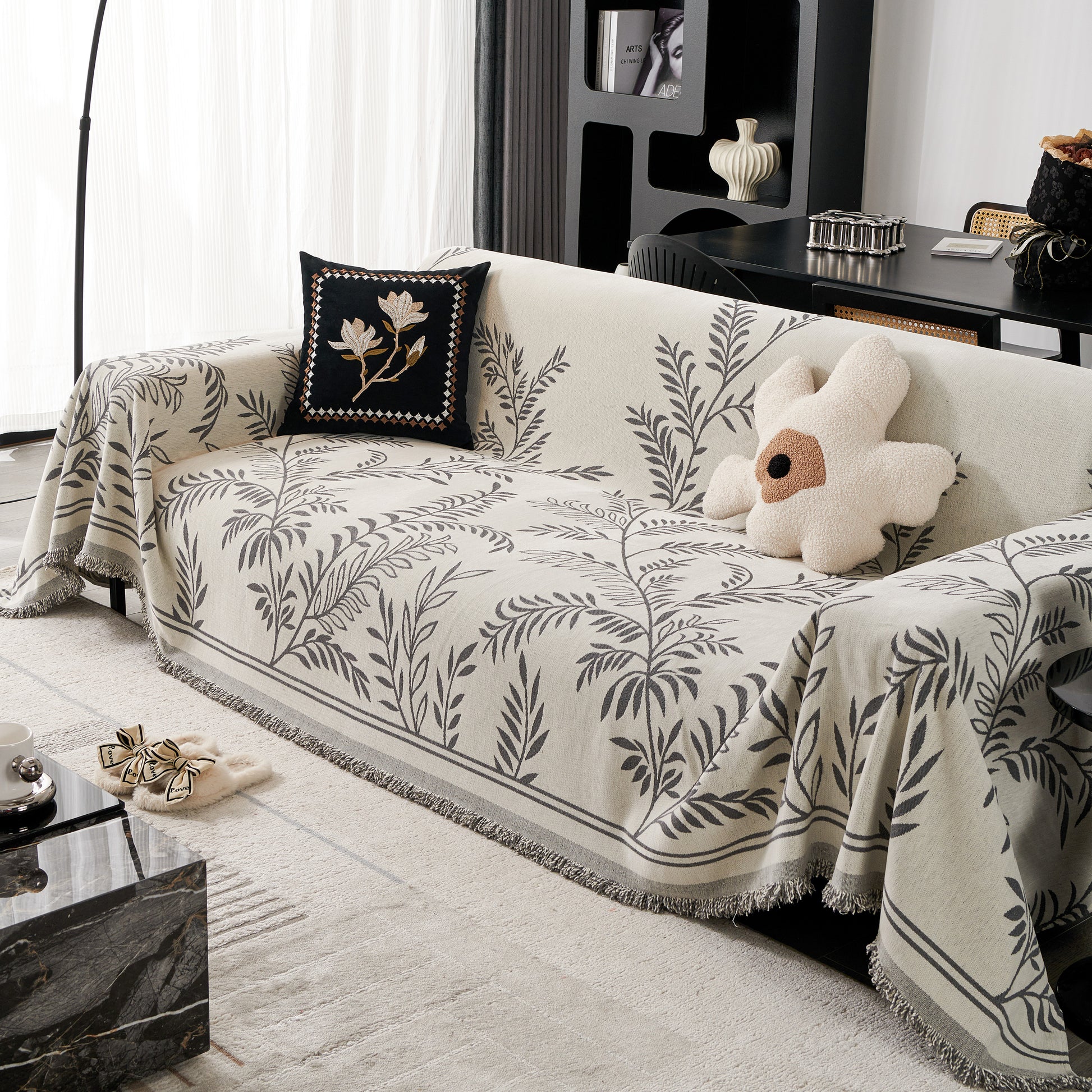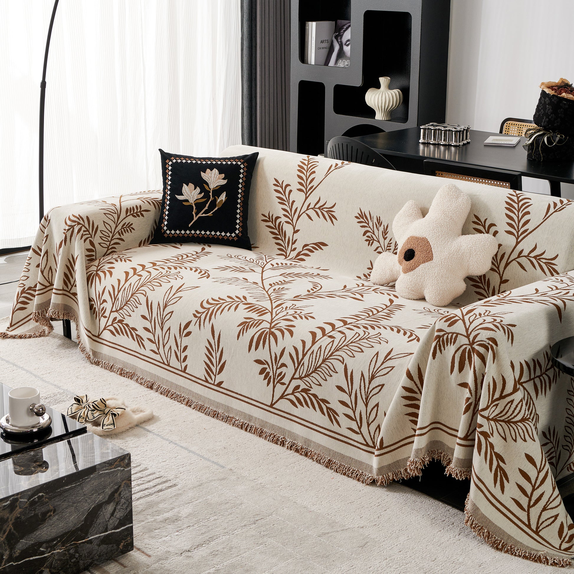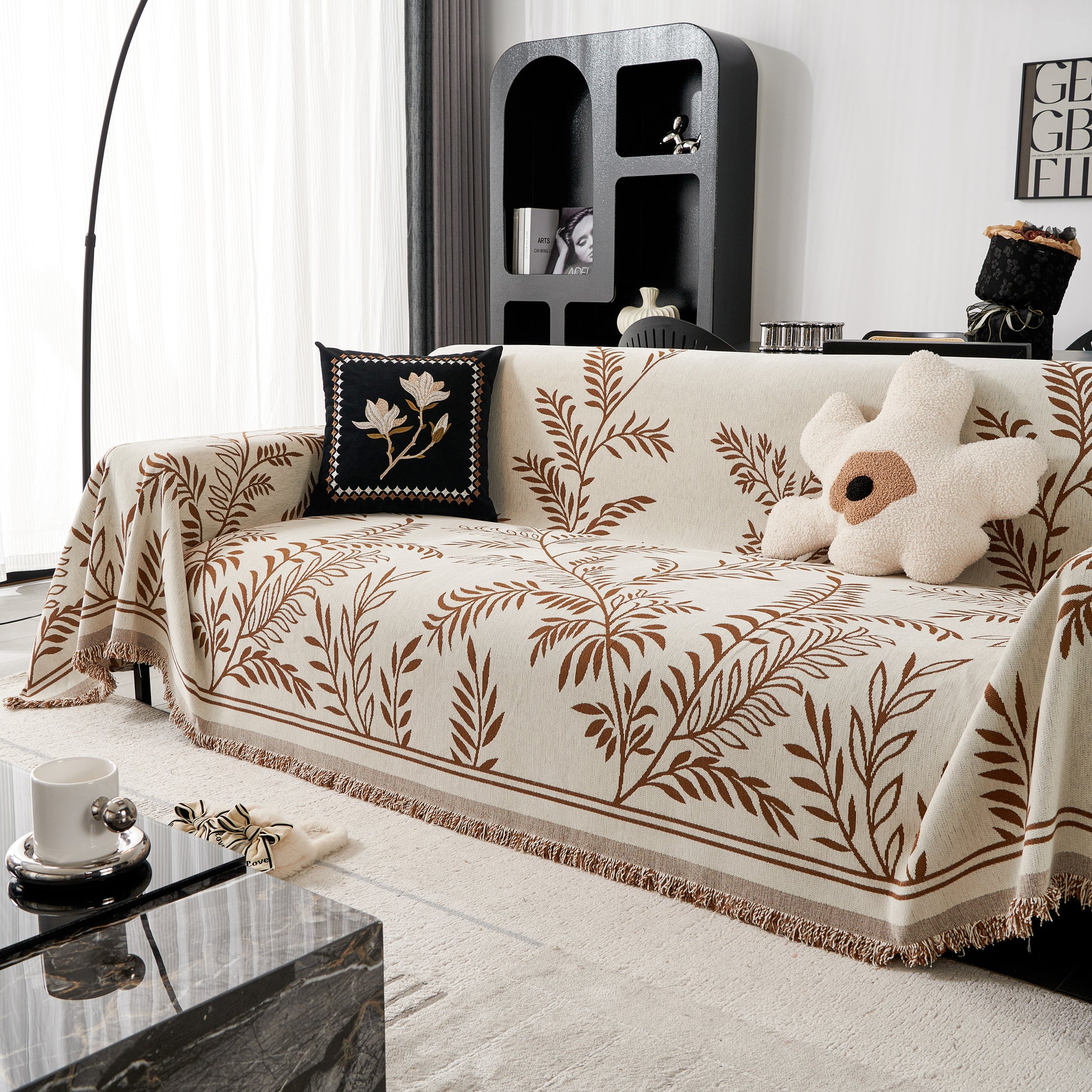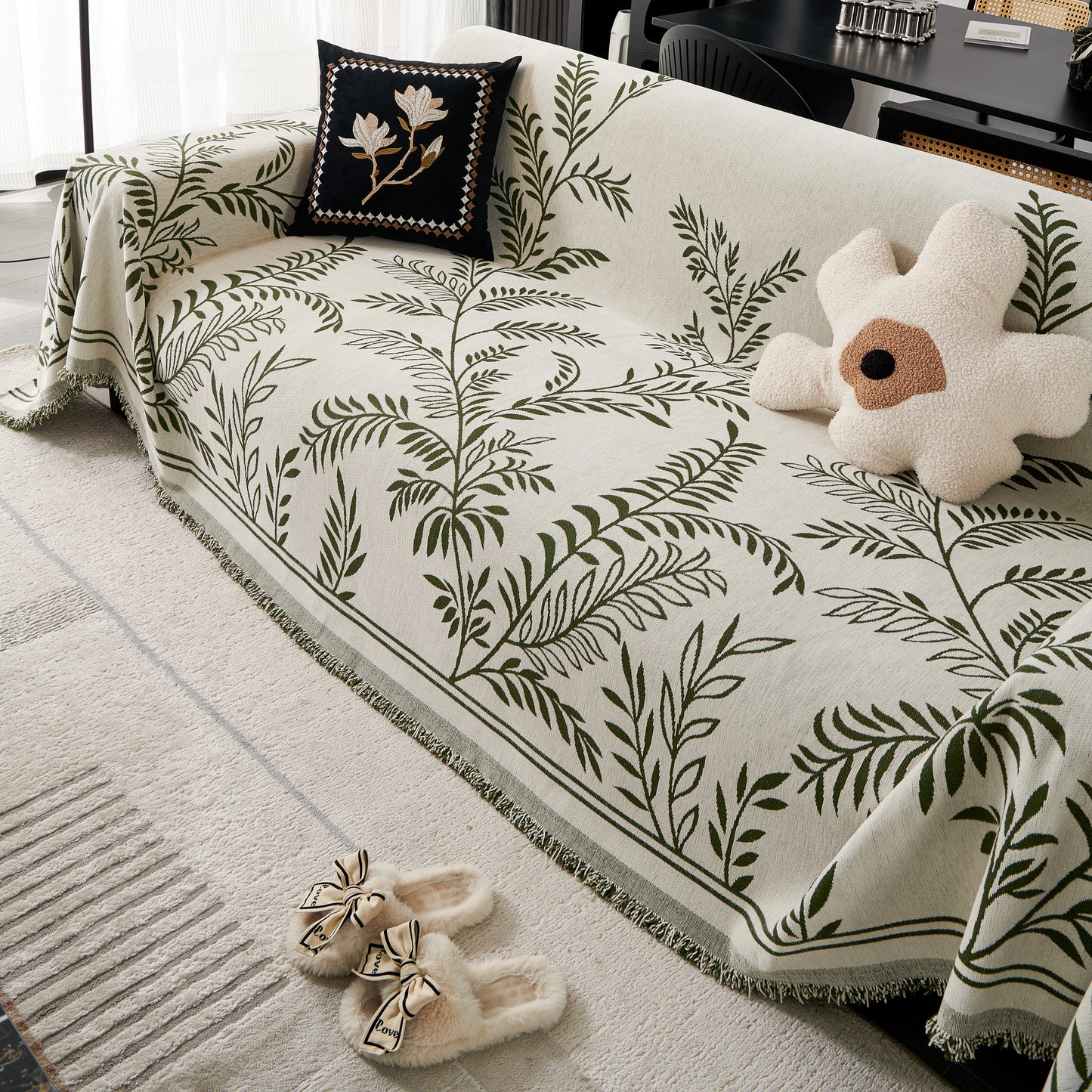 Modern Minimalist Chenille Willow Leaf Pattern Couch Cover Blanket, Luxurious Blankets for The Sofa
