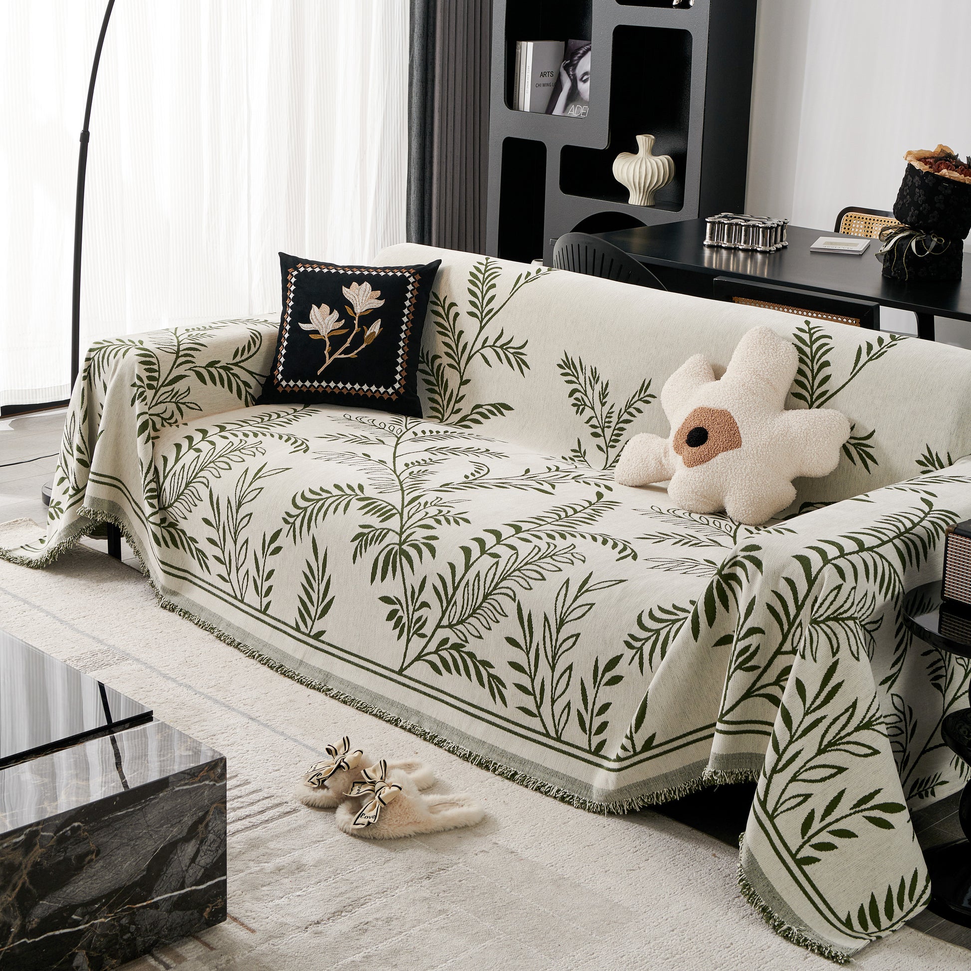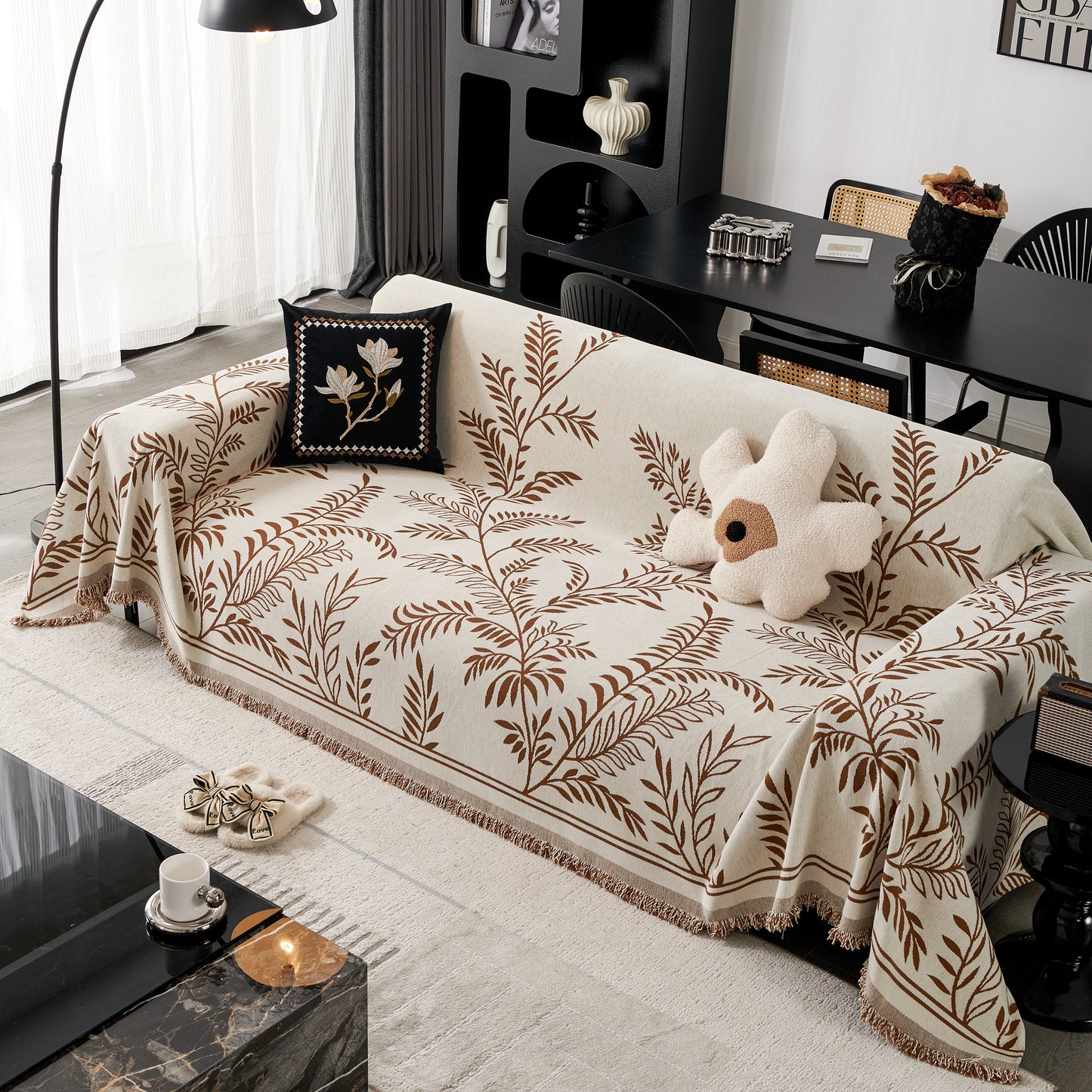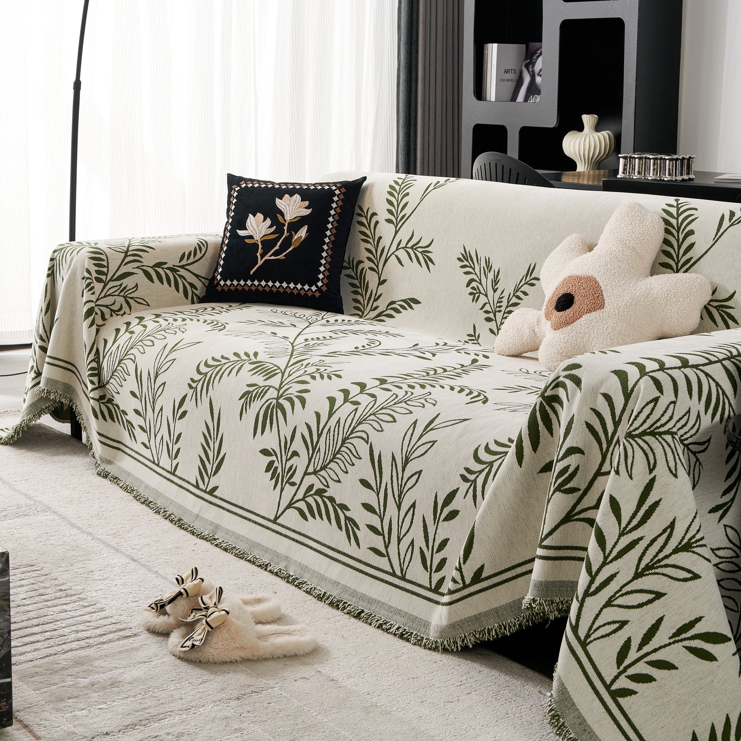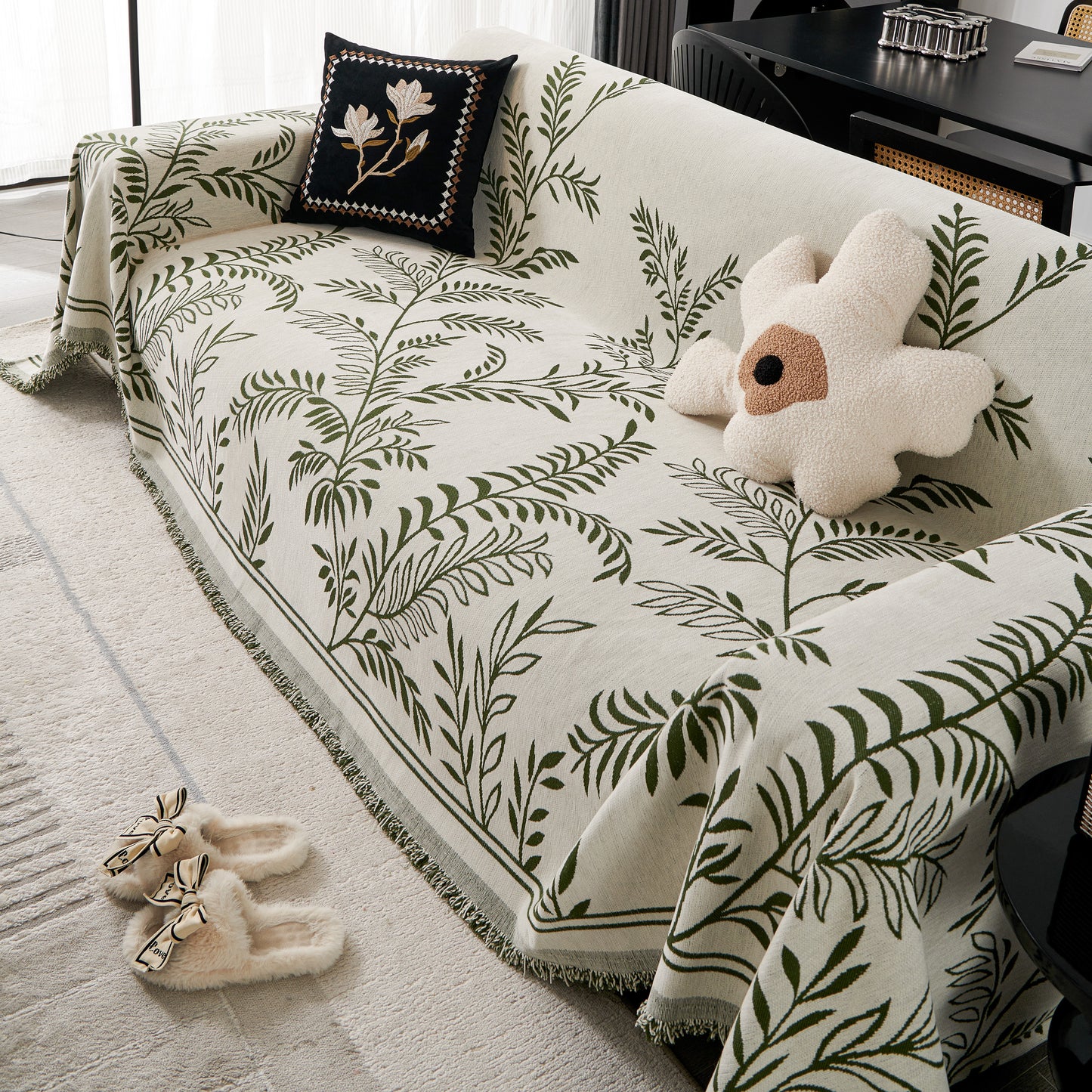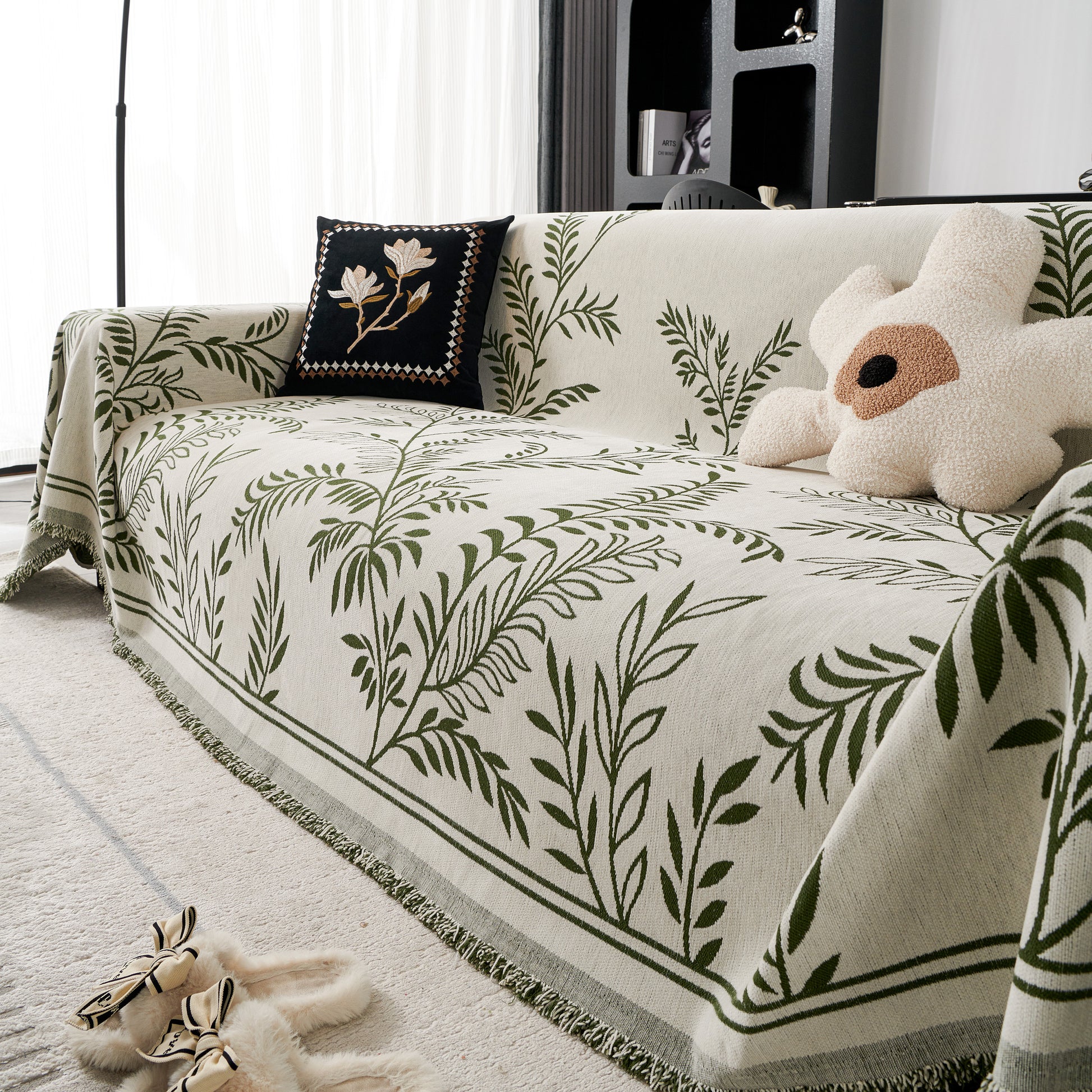 Modern Minimalist Chenille Willow Leaf Pattern Couch Cover Blanket, Luxurious Blankets for The Sofa