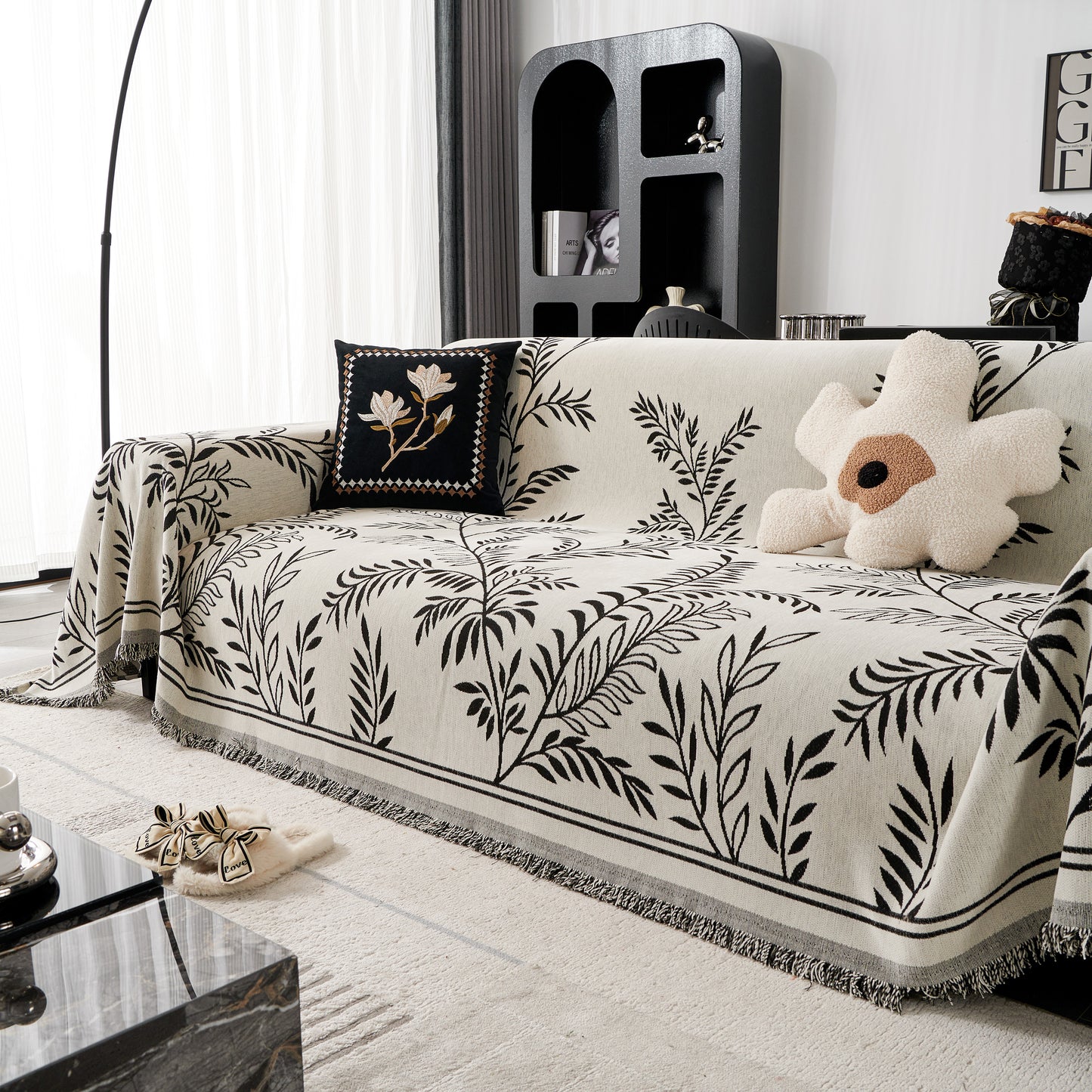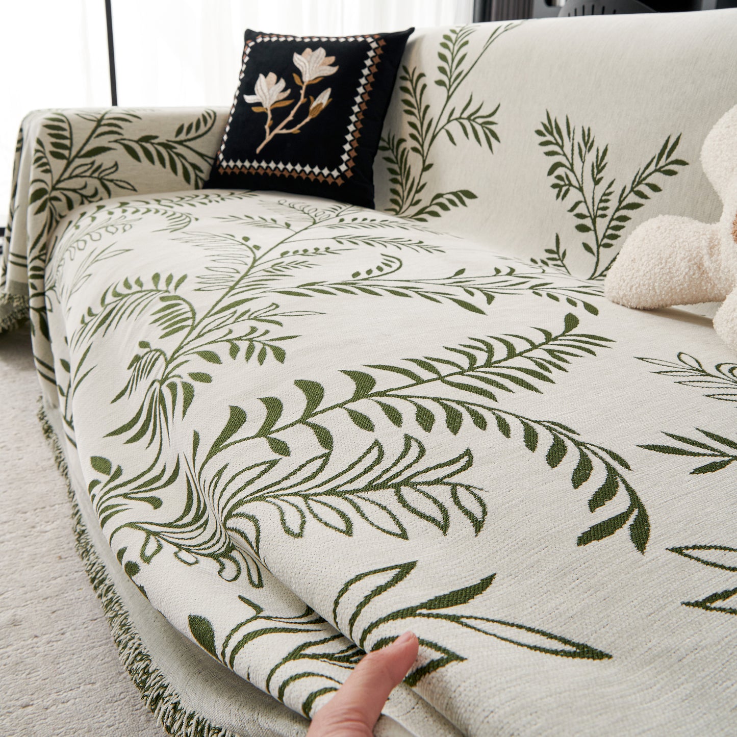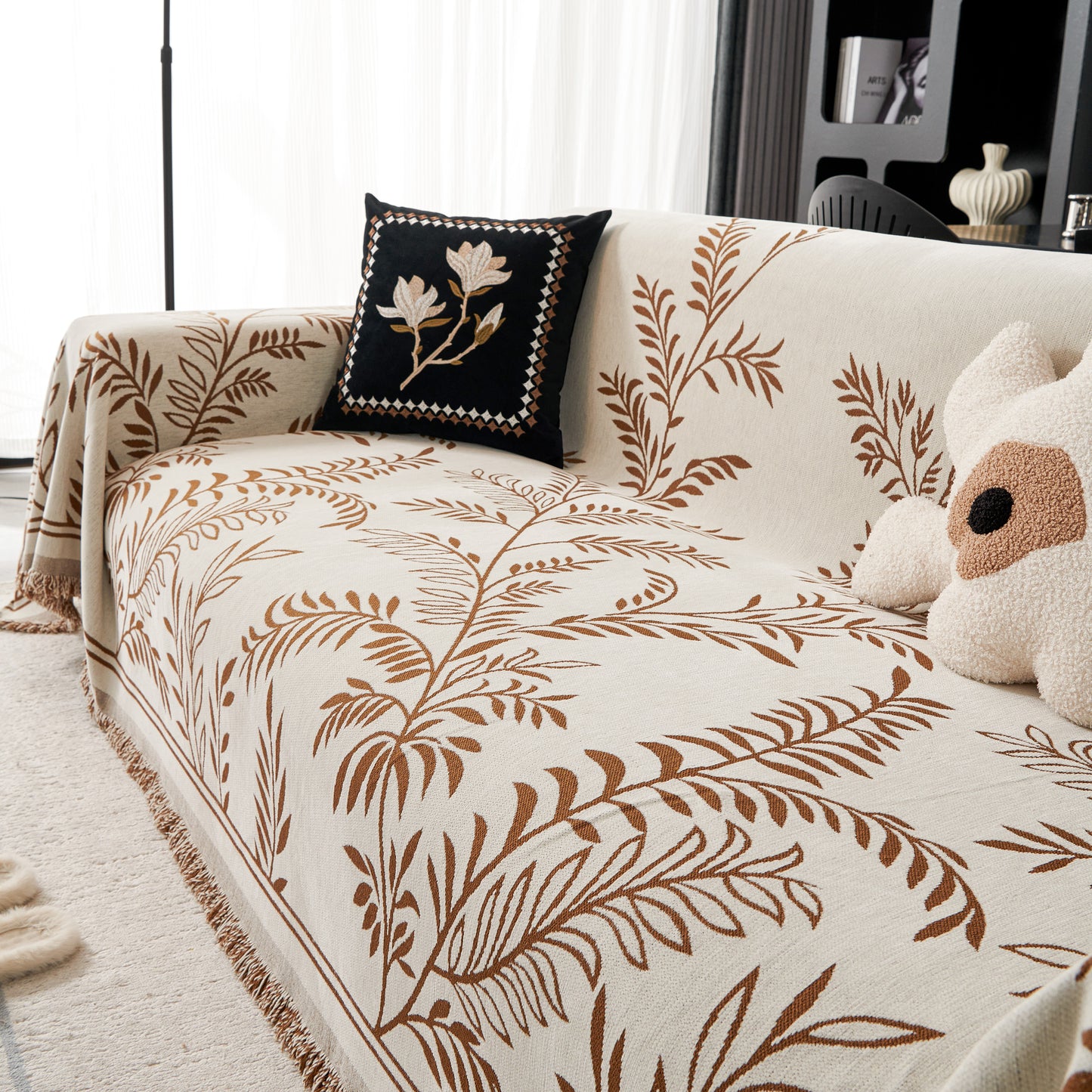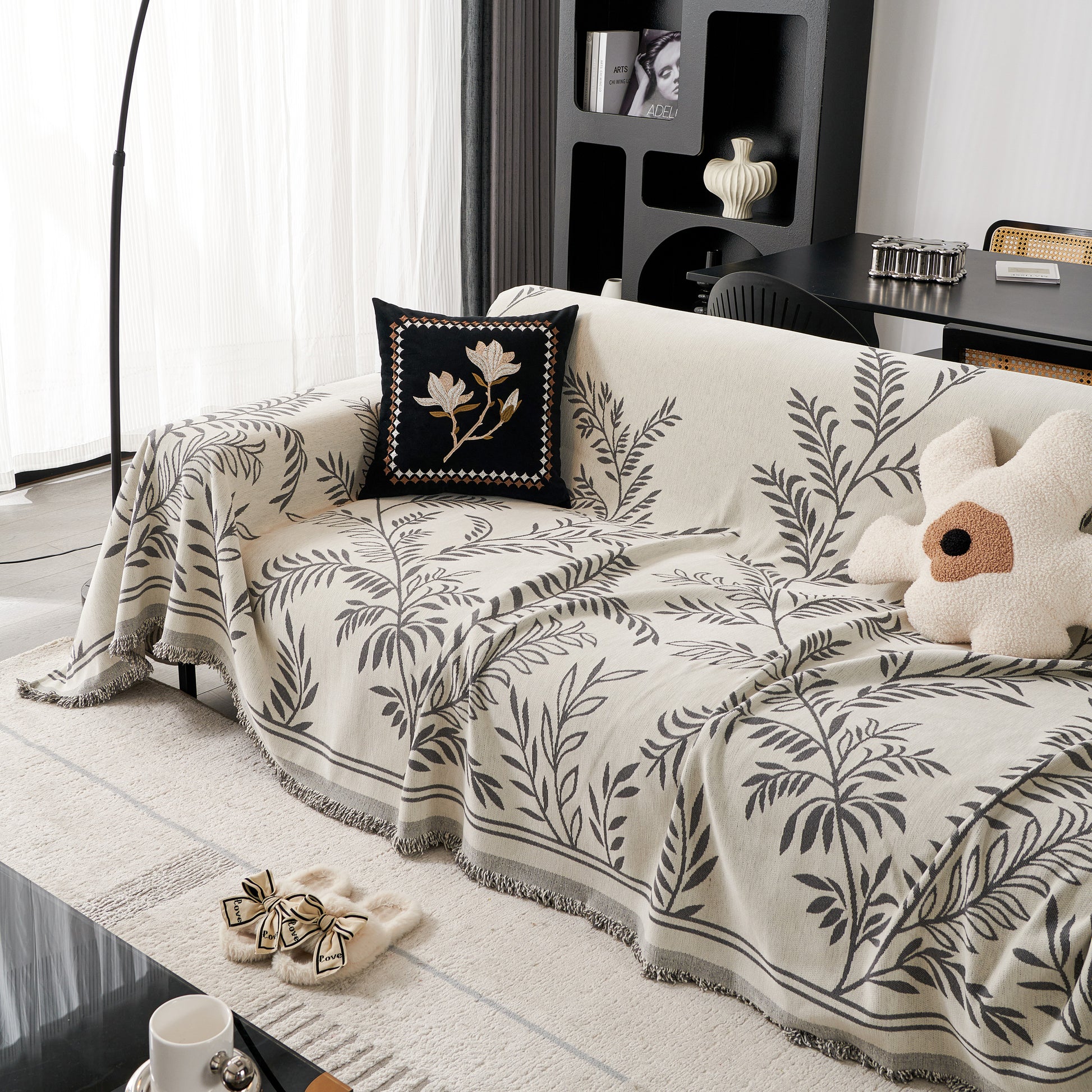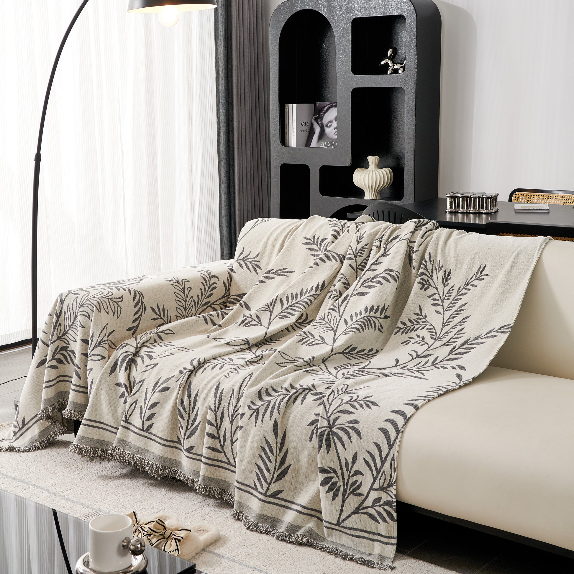 Modern Minimalist Chenille Willow Leaf Pattern Couch Cover Blanket, Luxurious Blankets for The Sofa