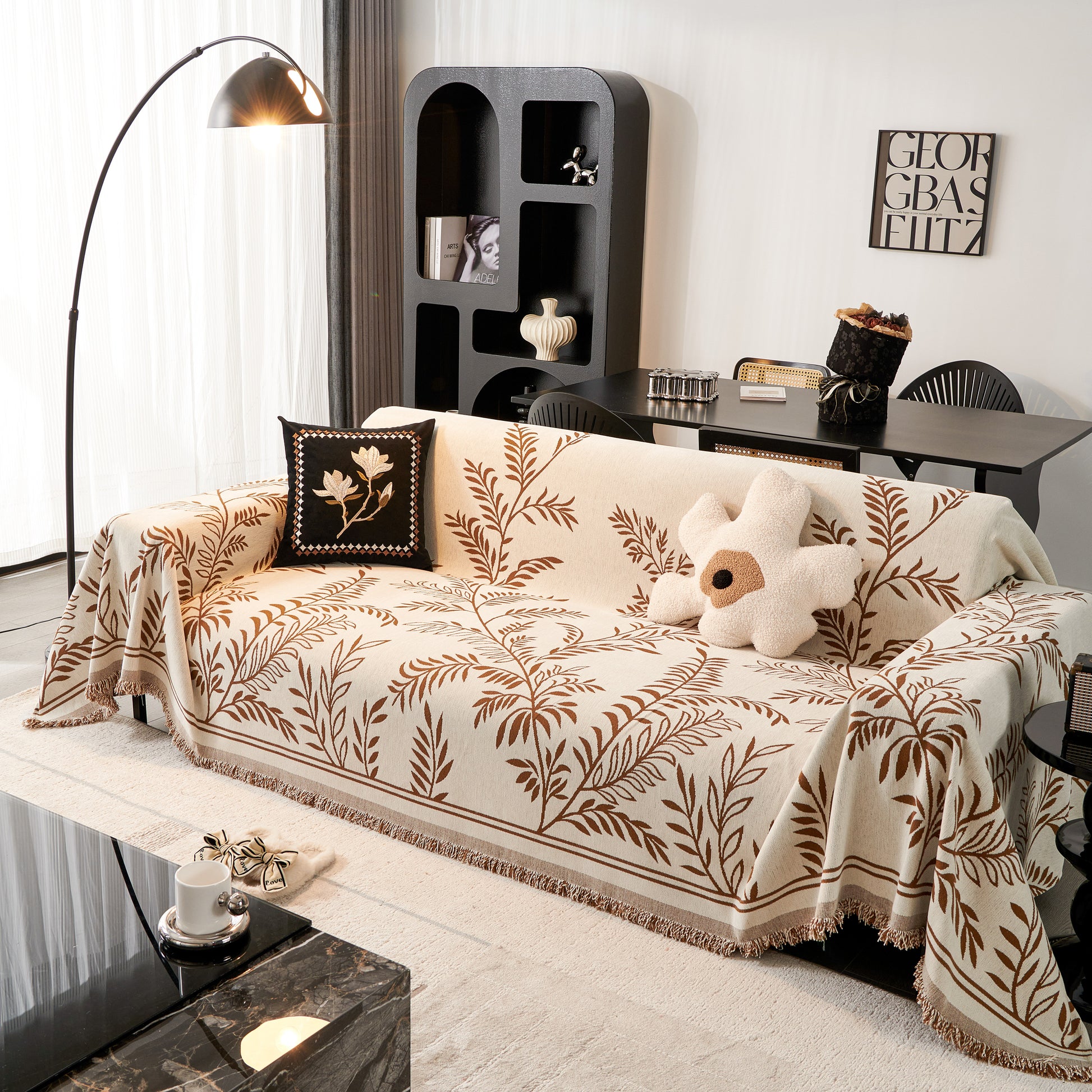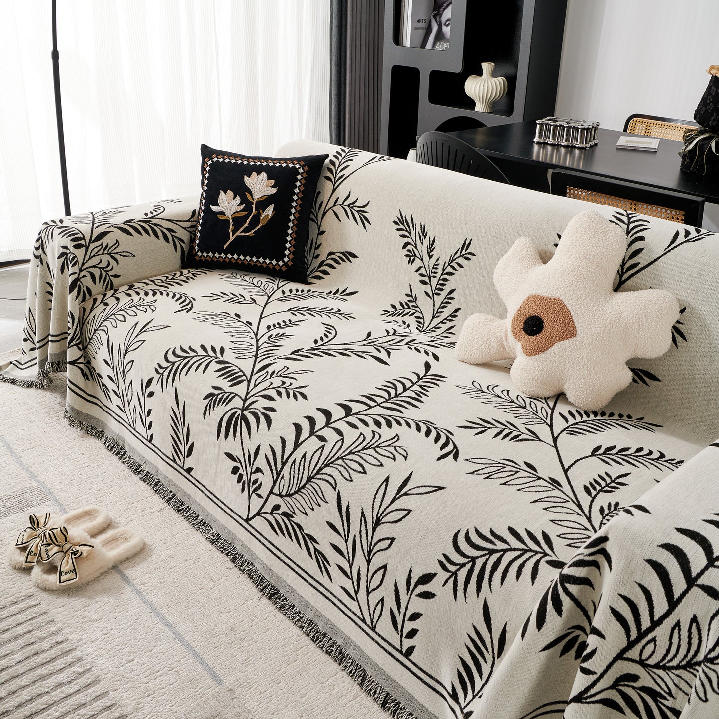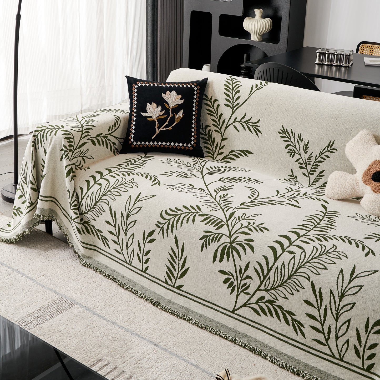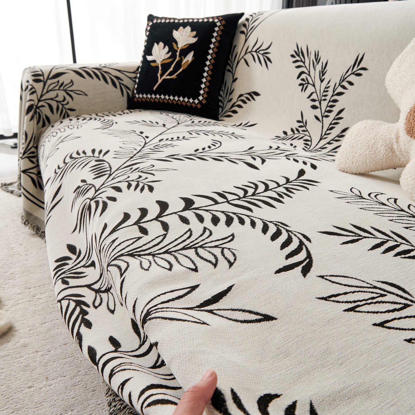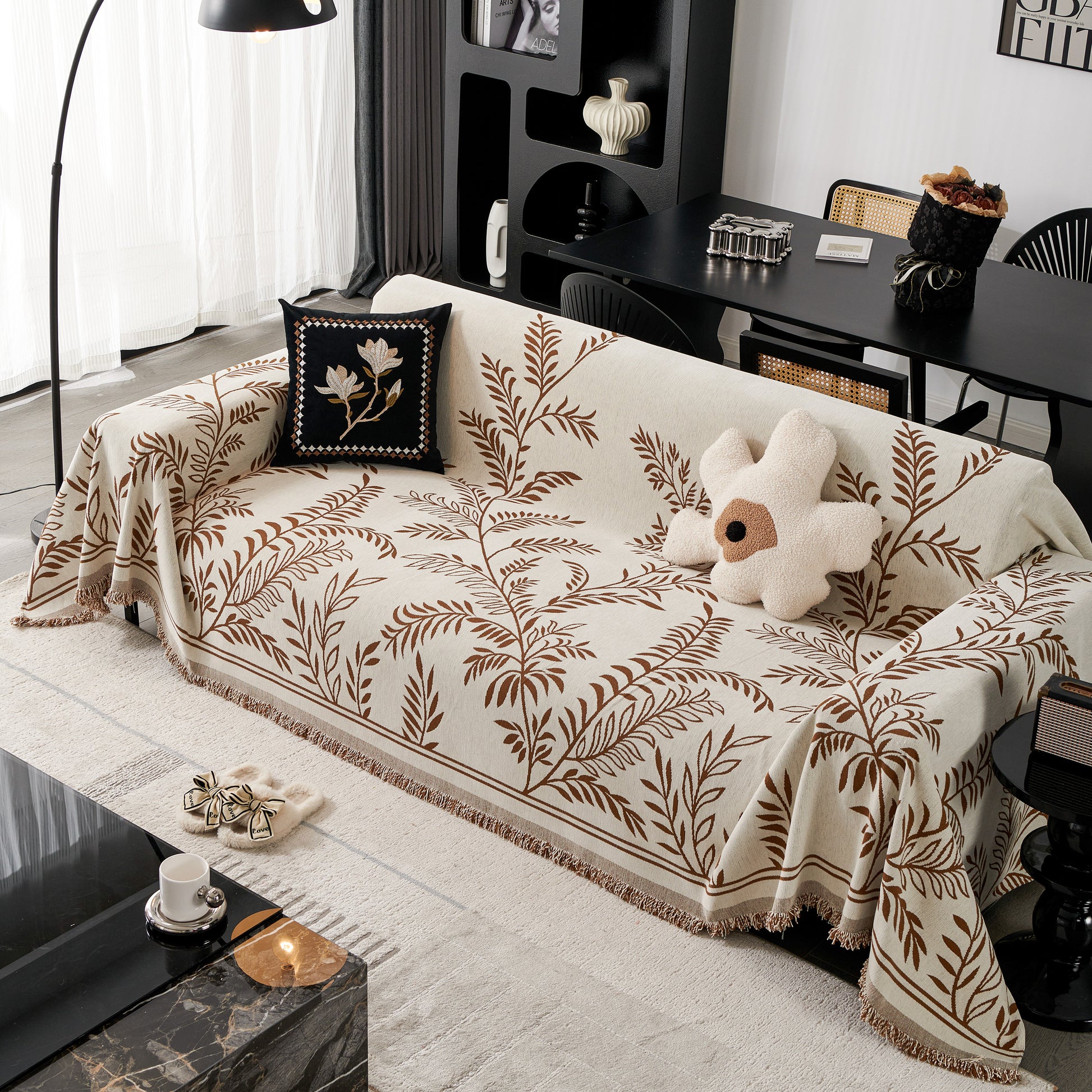 Modern Minimalist Chenille Willow Leaf Pattern Couch Cover Blanket, Luxurious Blankets for The Sofa