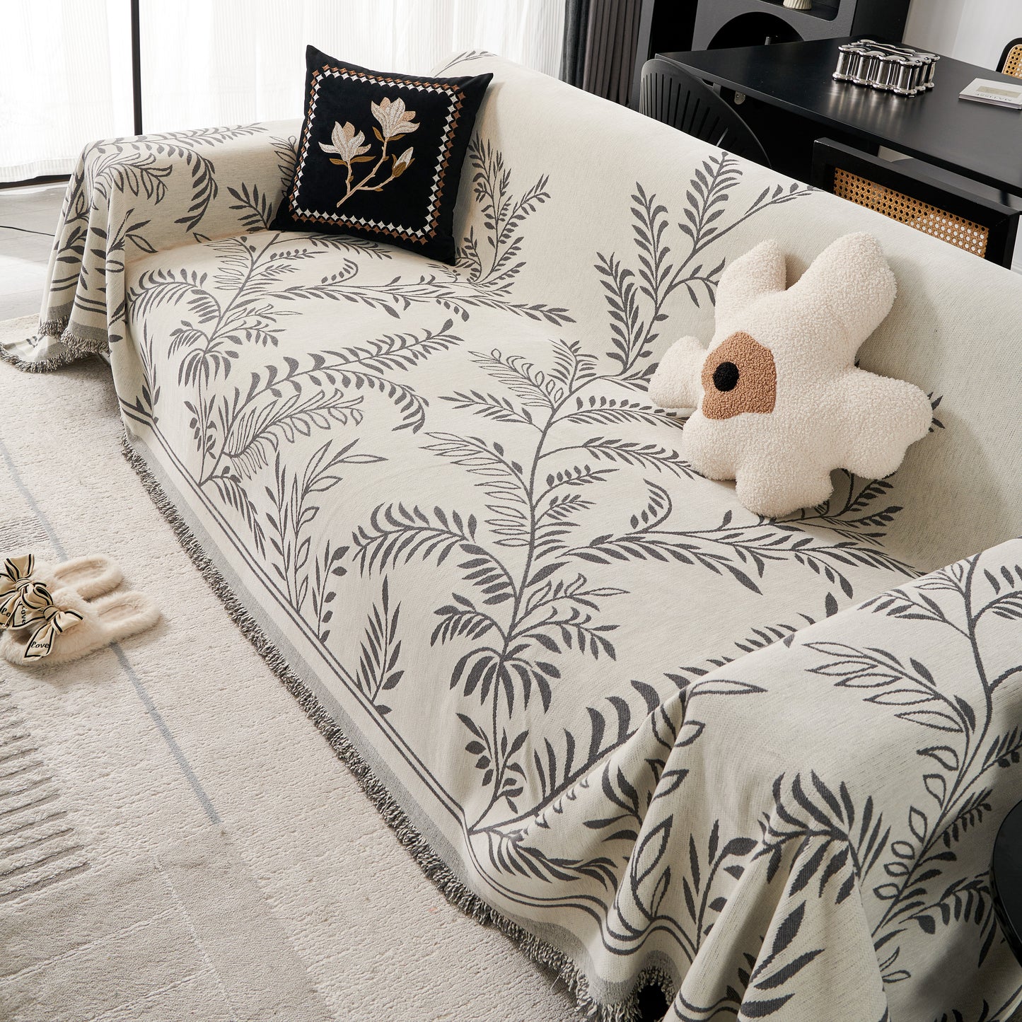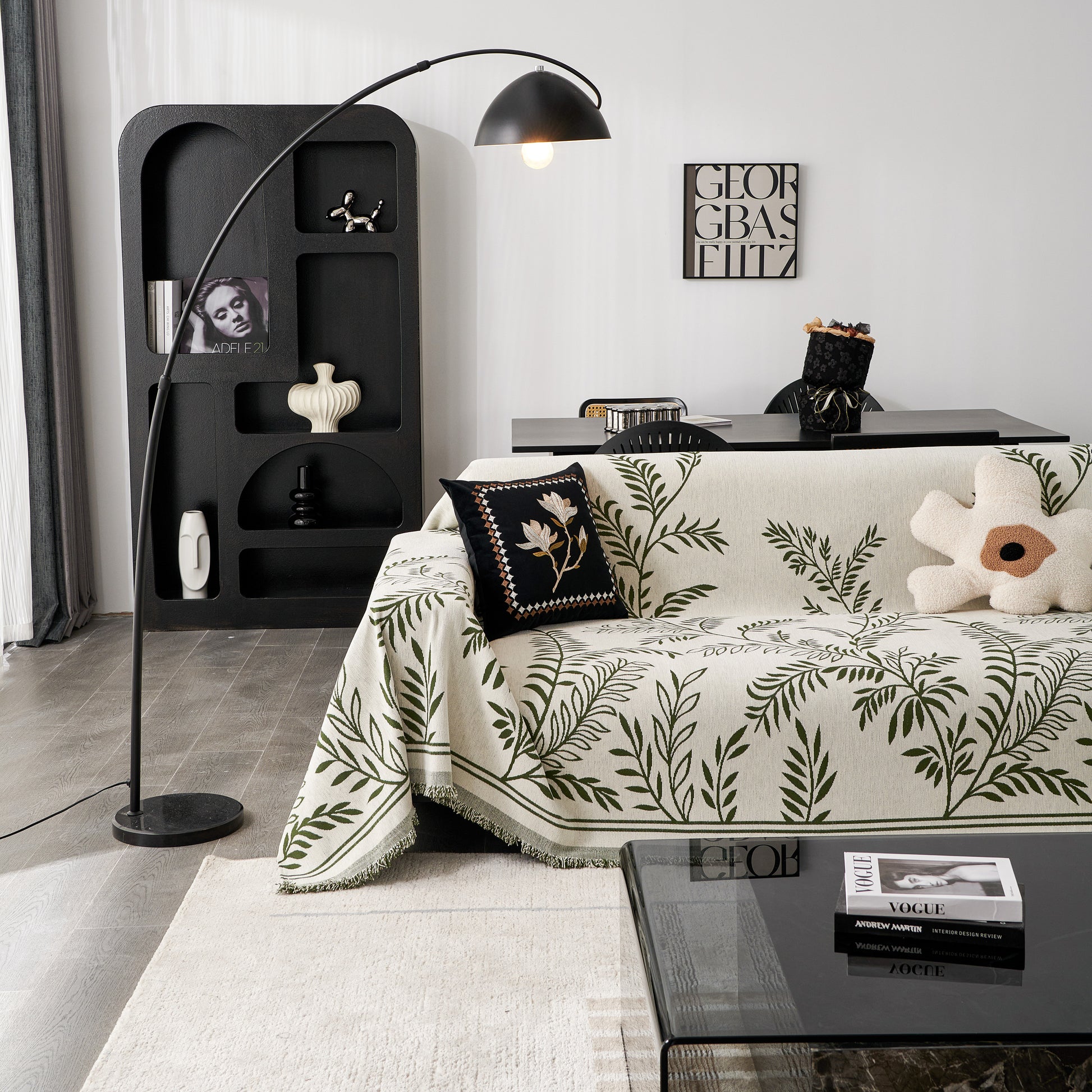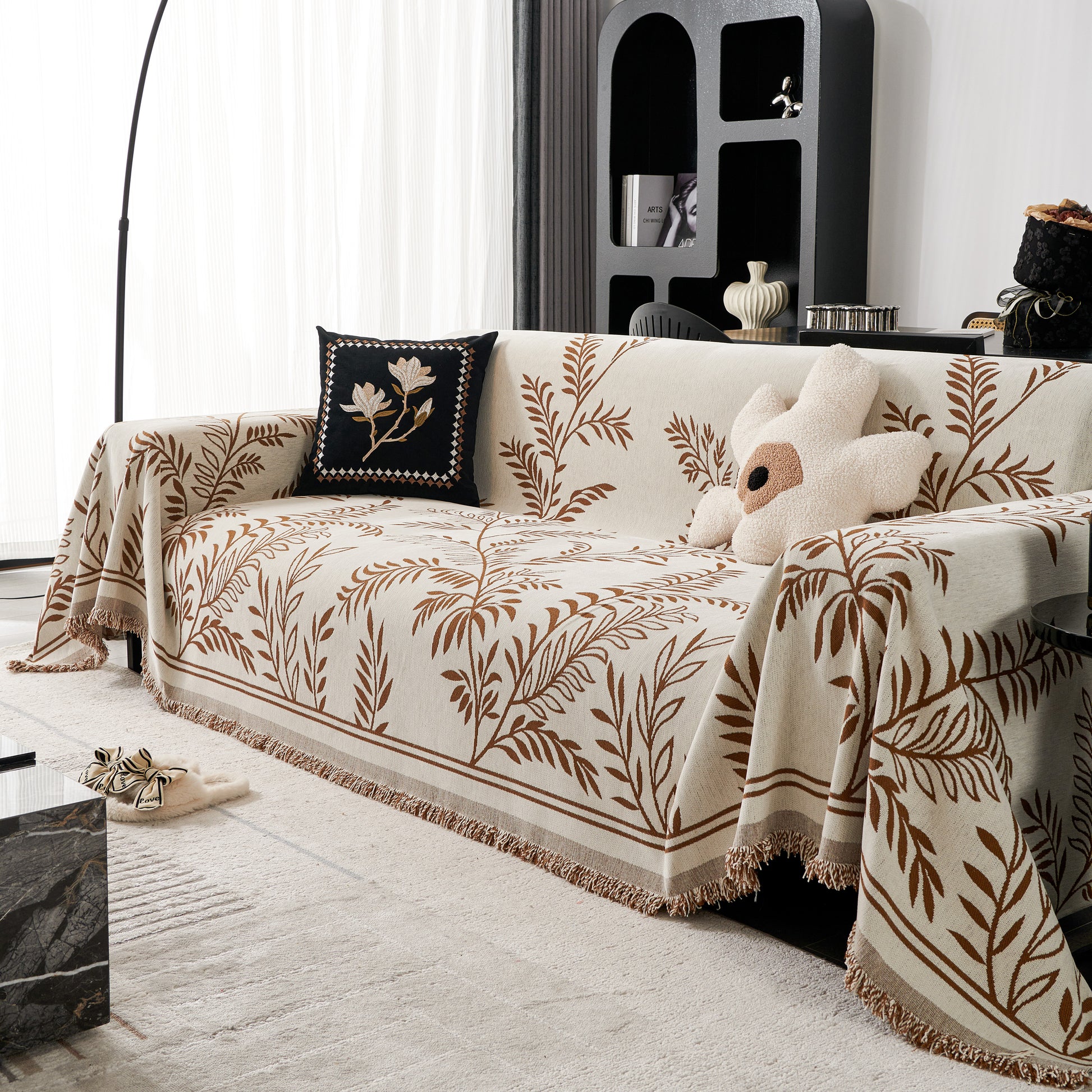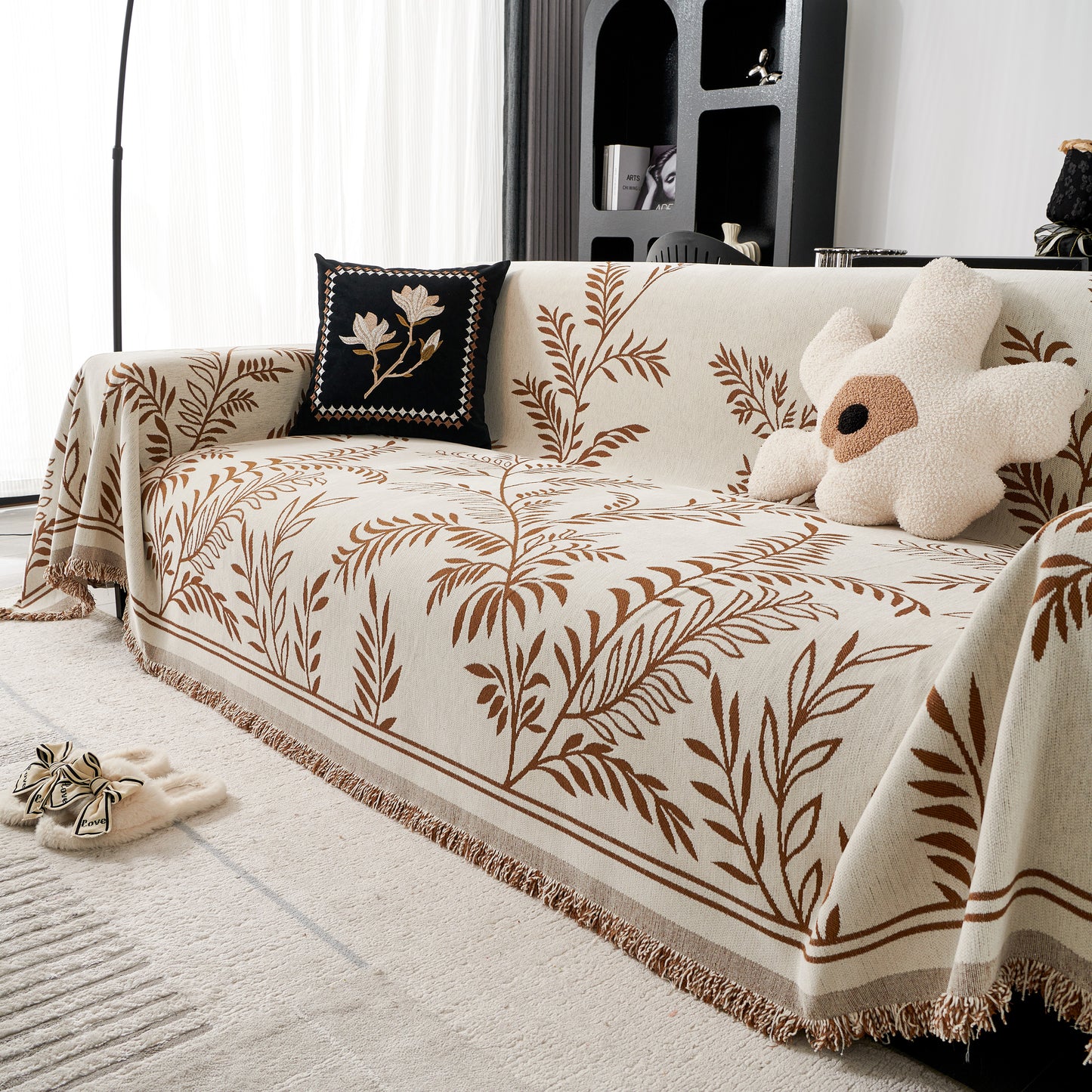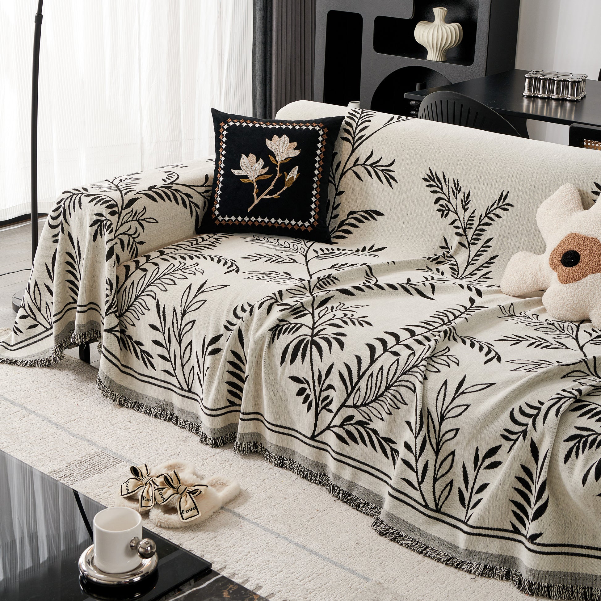 Modern Minimalist Chenille Willow Leaf Pattern Couch Cover Blanket, Luxurious Blankets for The Sofa