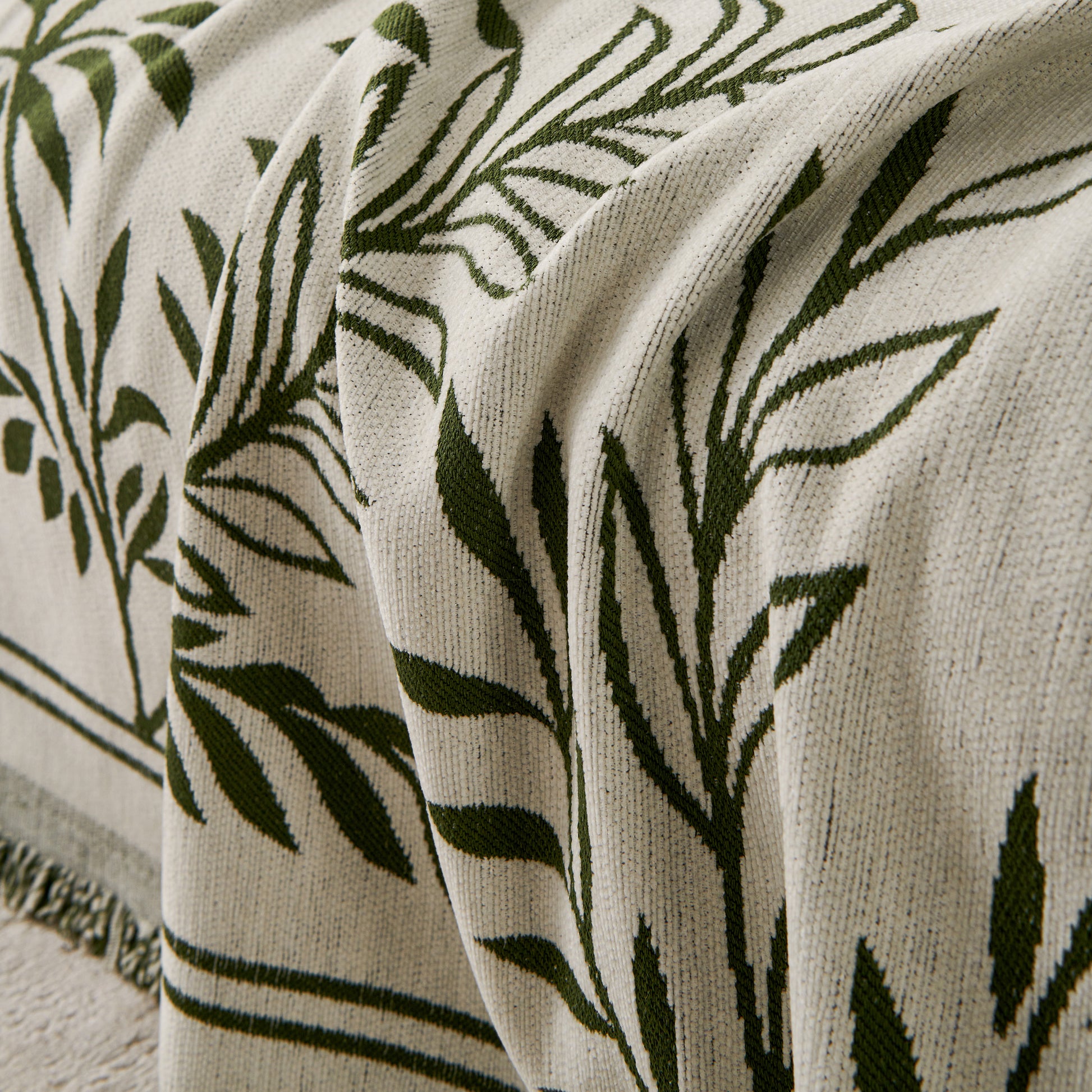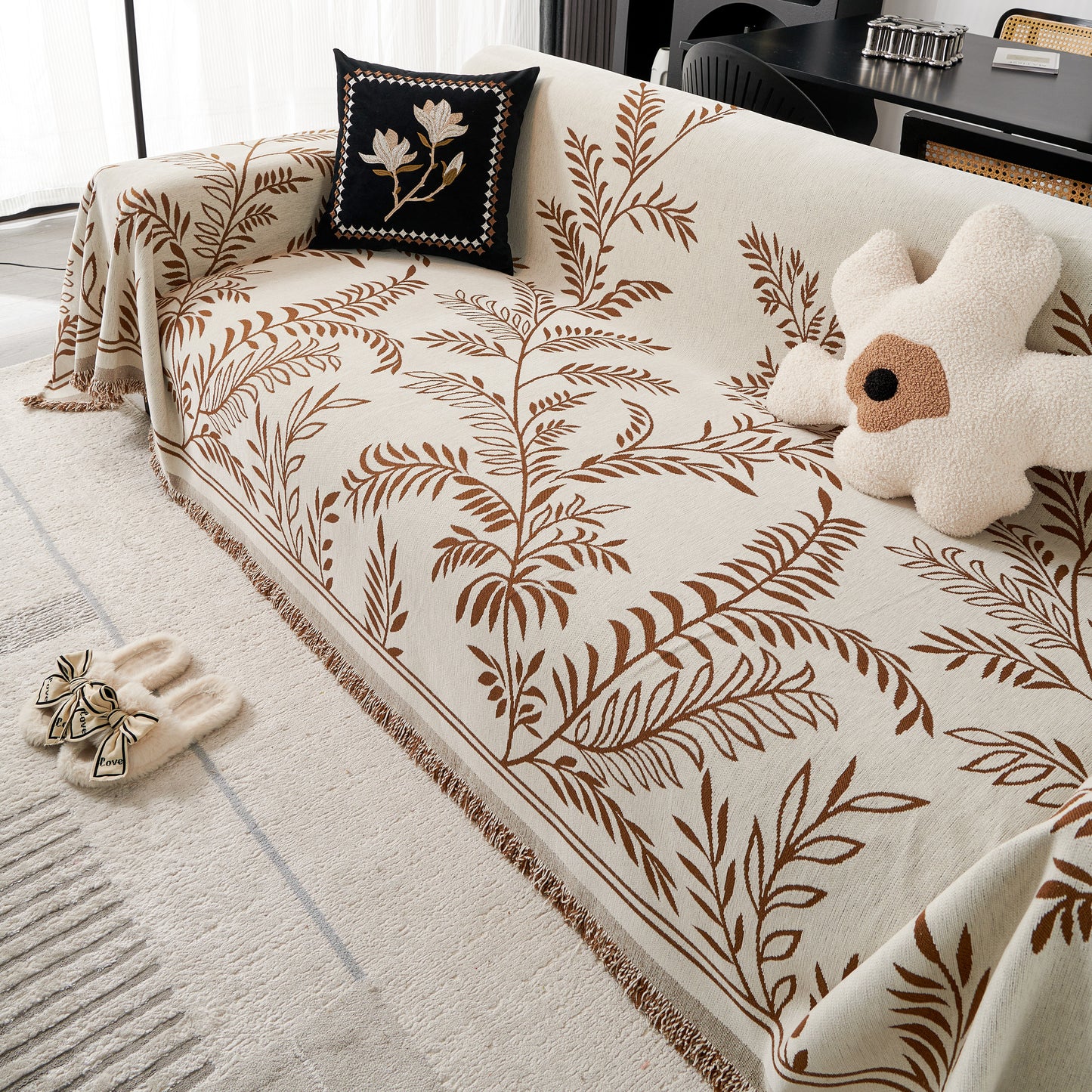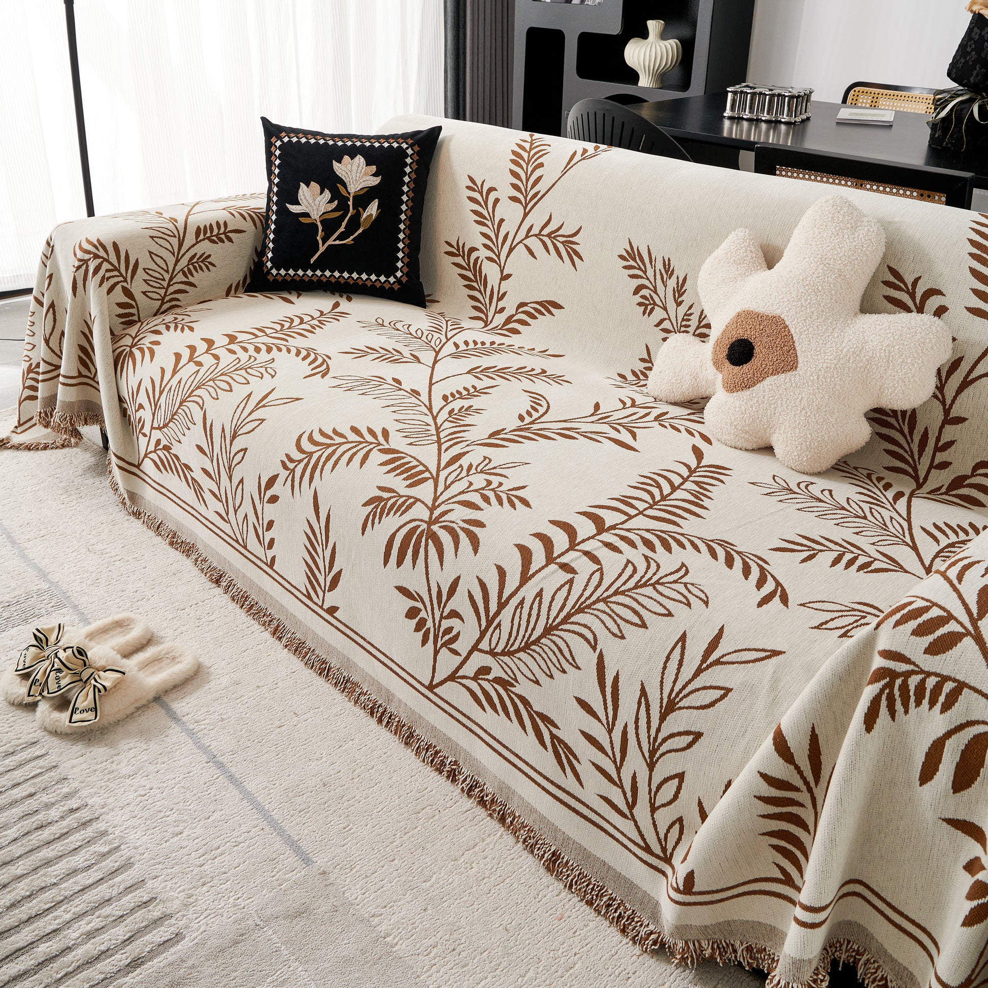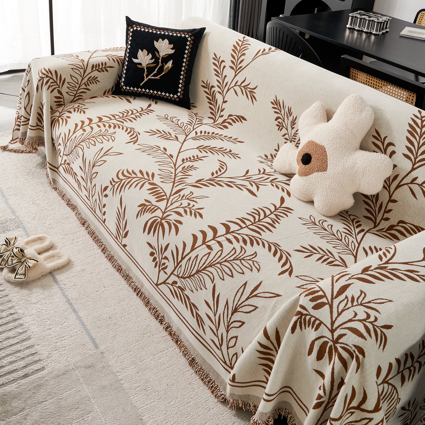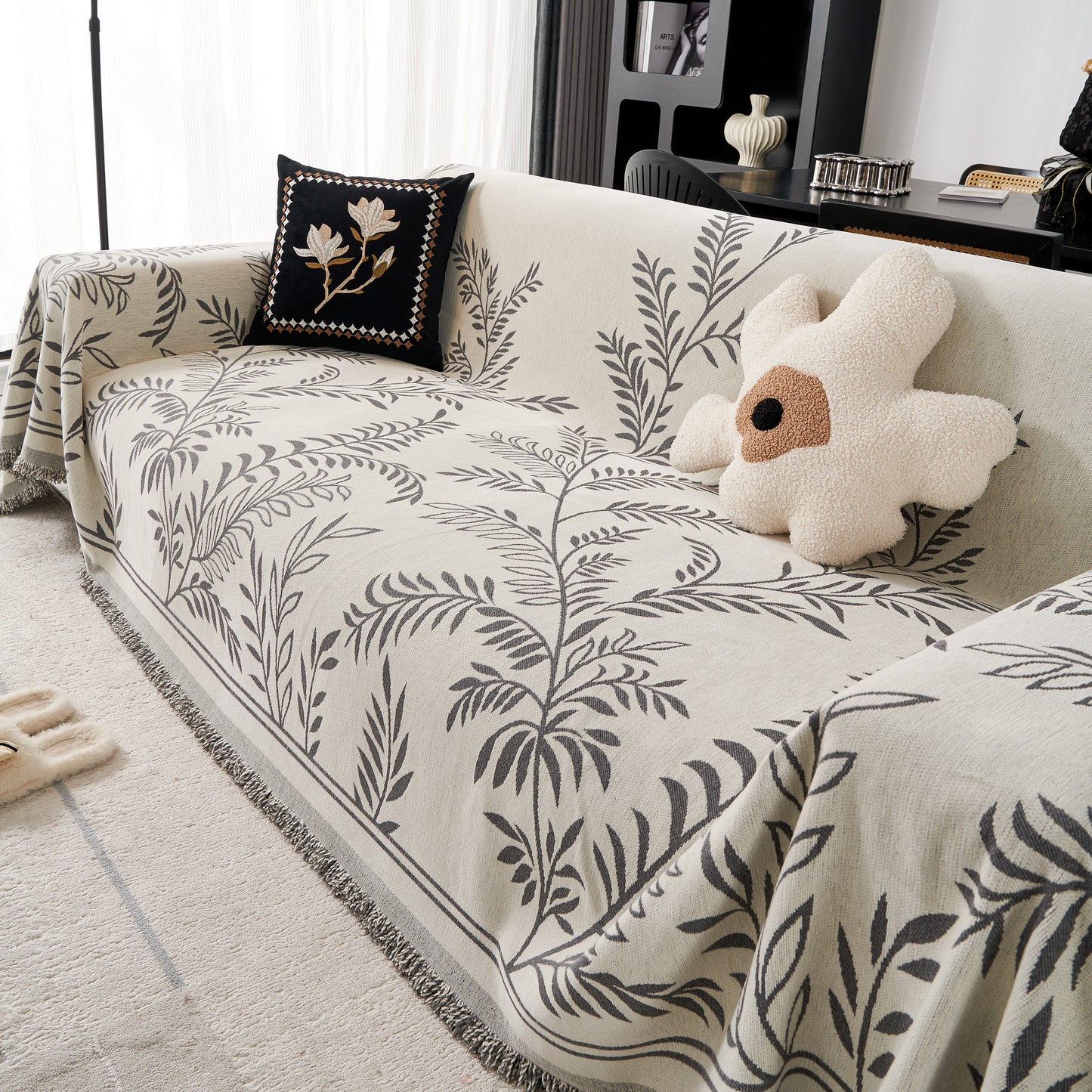 Modern Minimalist Chenille Willow Leaf Pattern Couch Cover Blanket, Luxurious Blankets for The Sofa