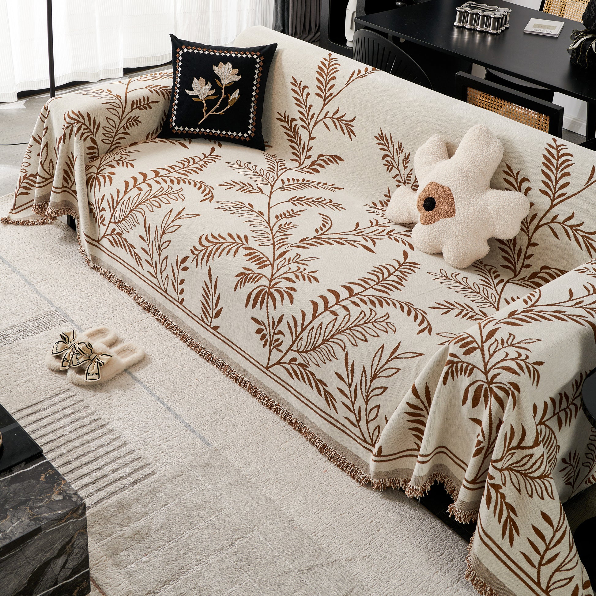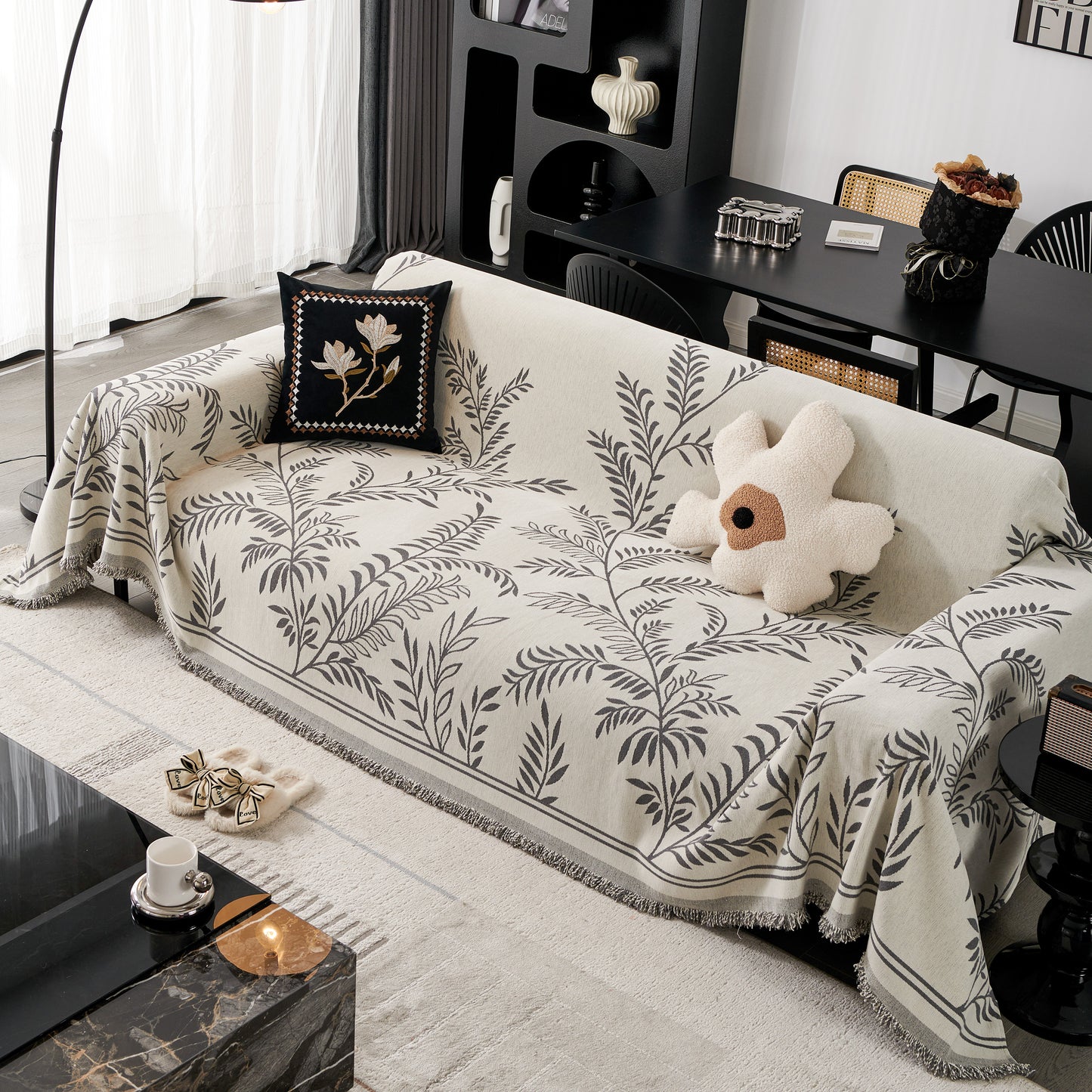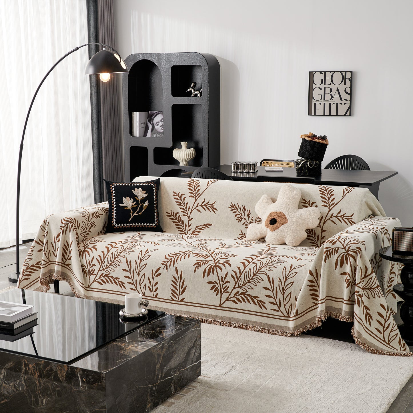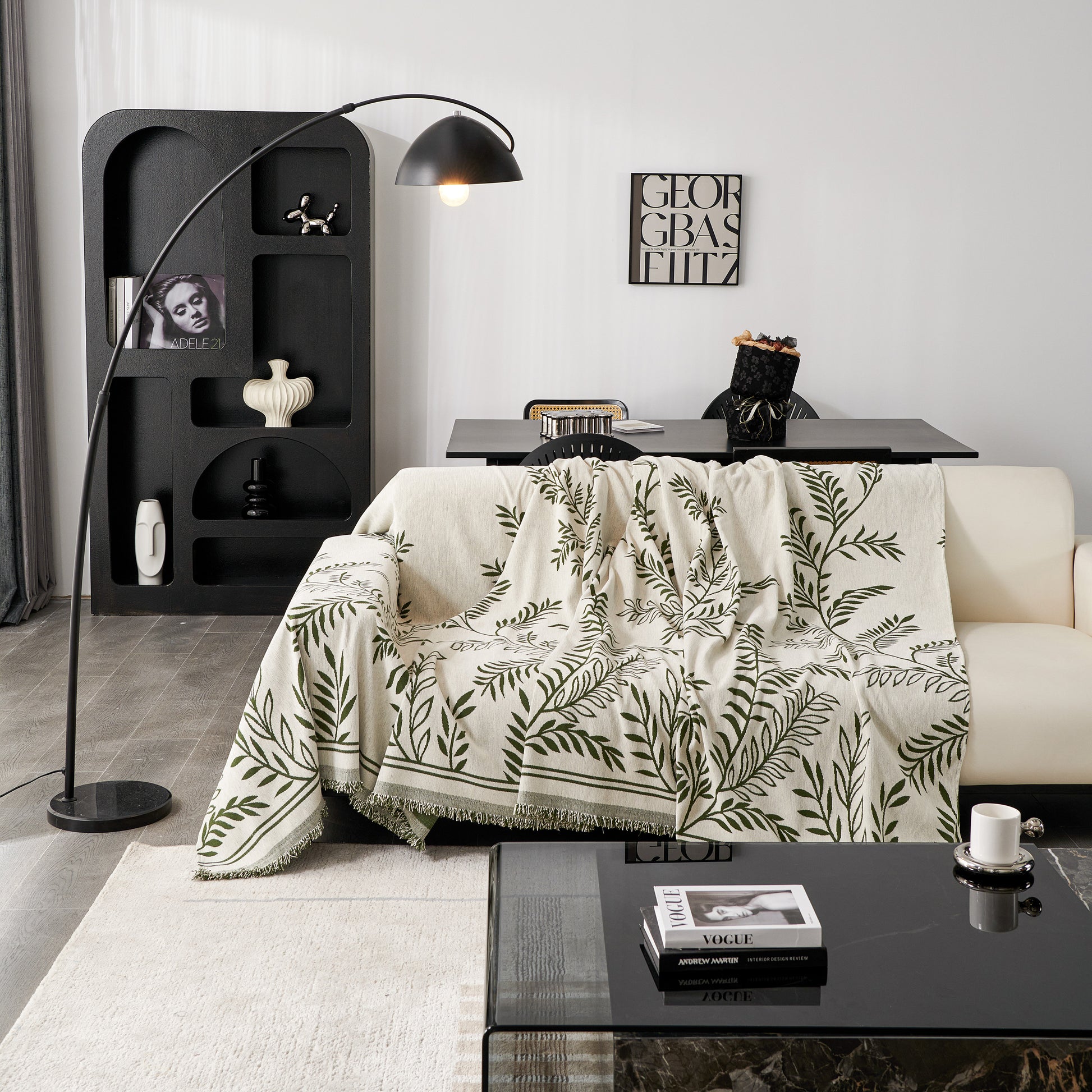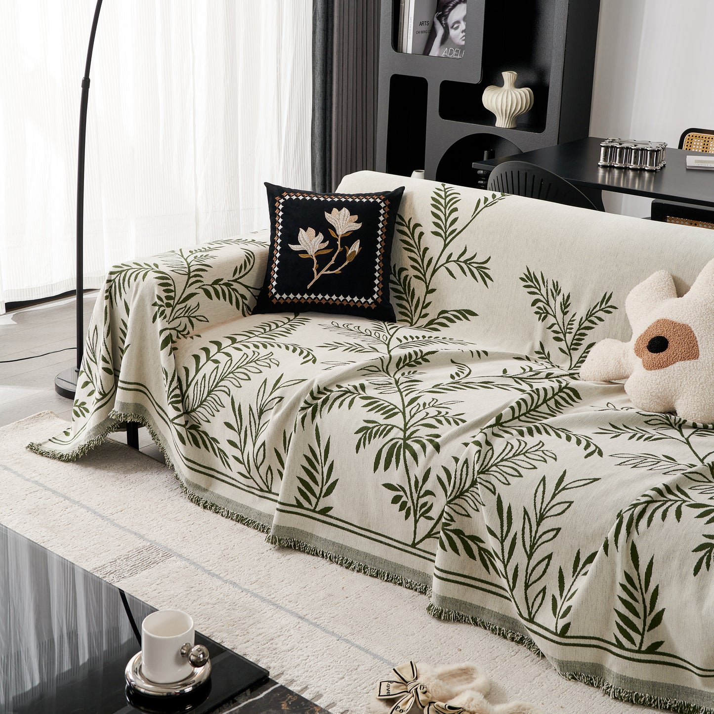 Modern Minimalist Chenille Willow Leaf Pattern Couch Cover Blanket, Luxurious Blankets for The Sofa