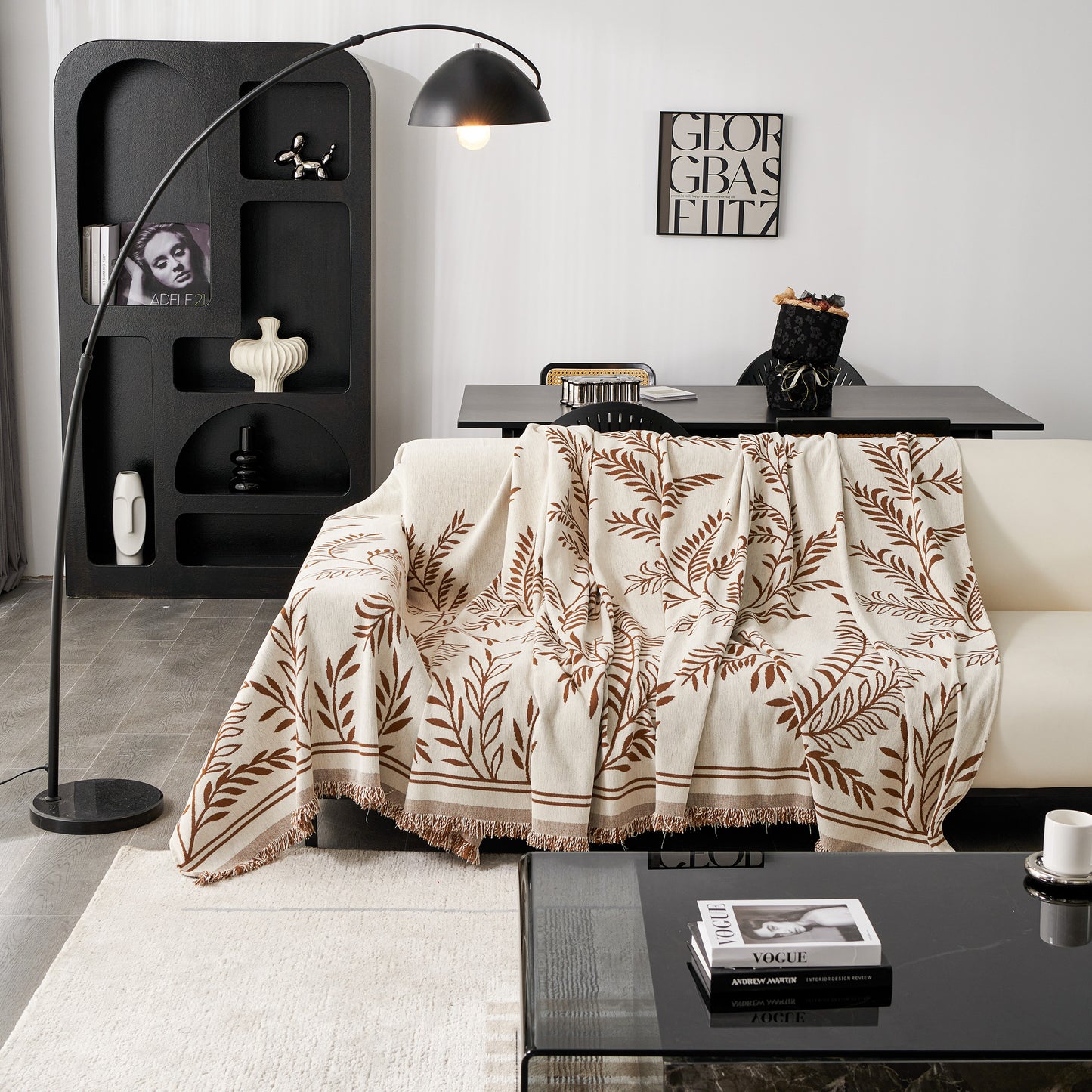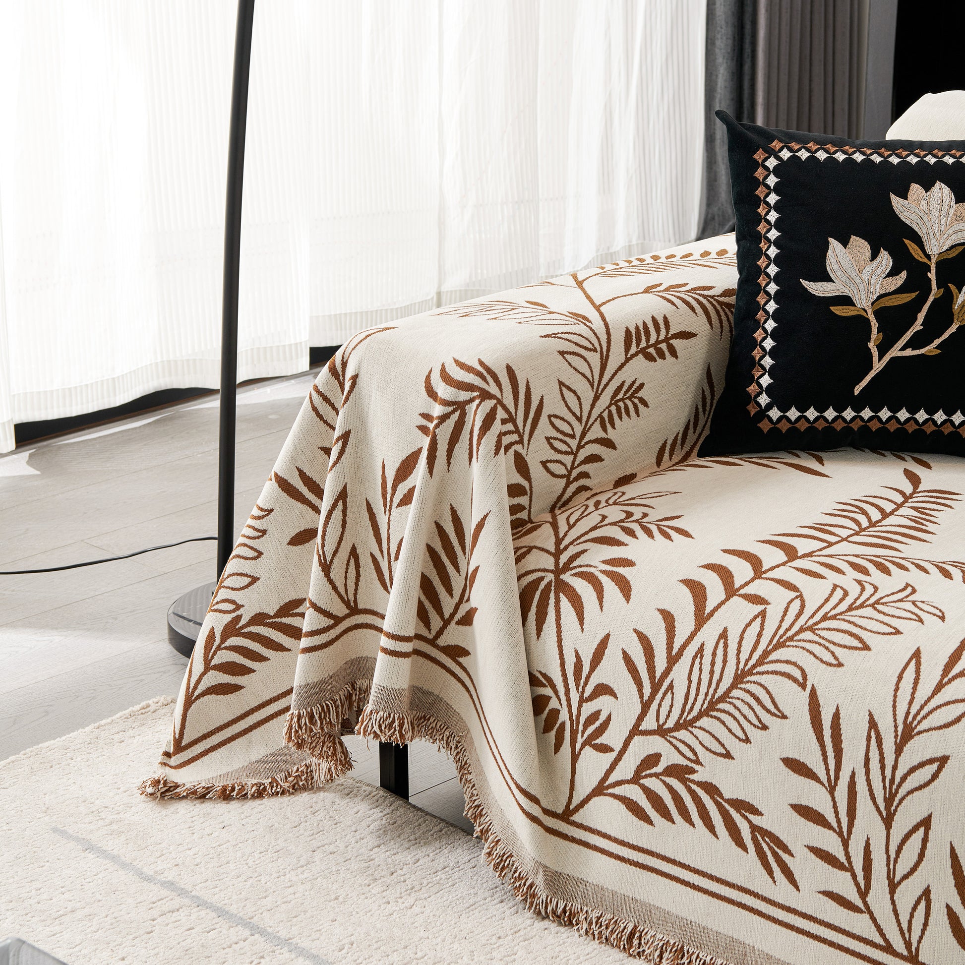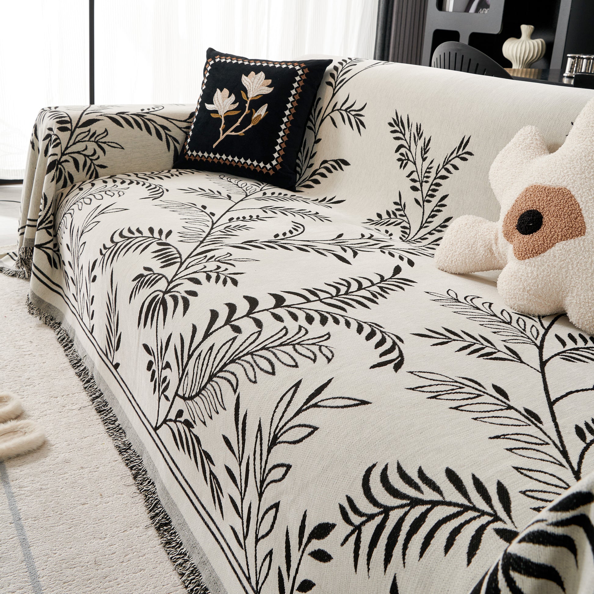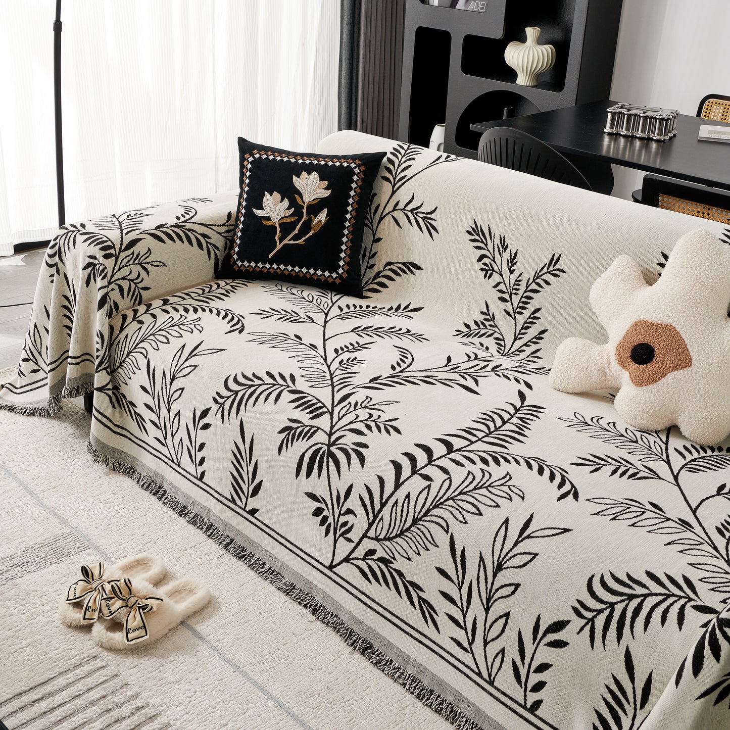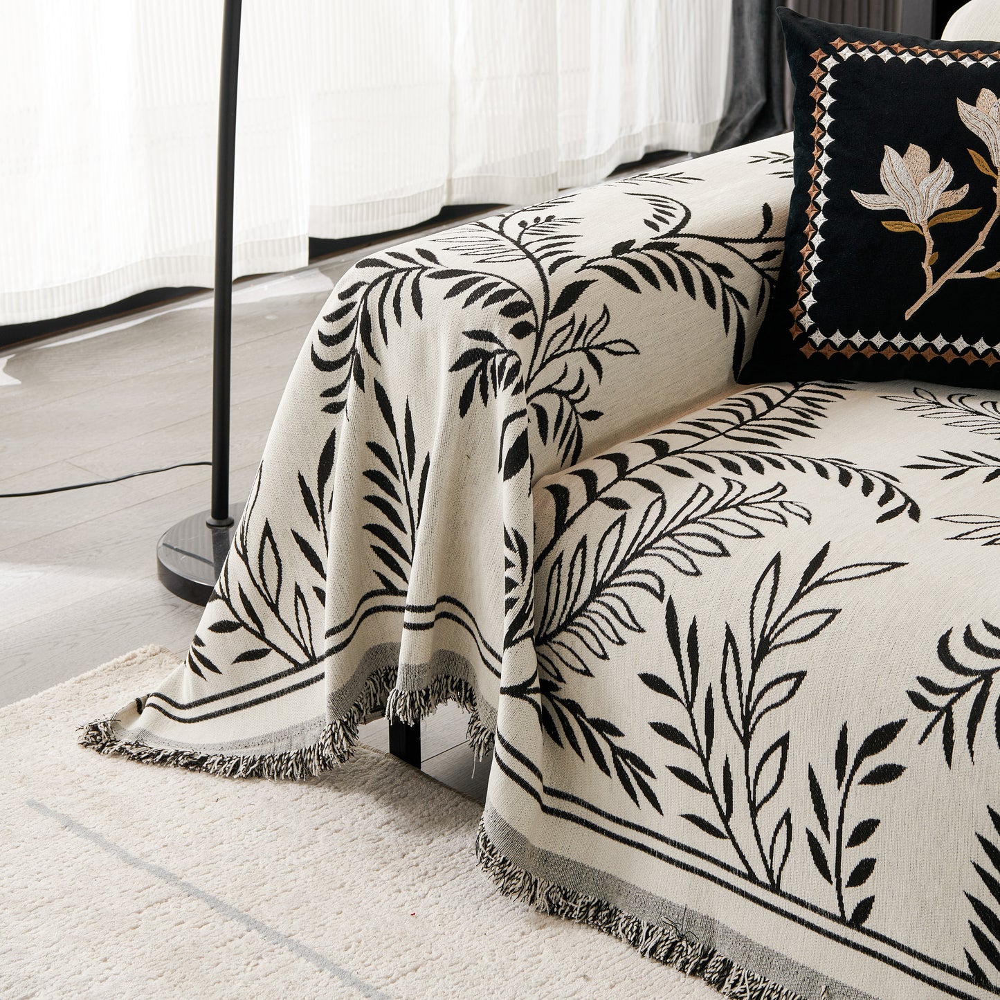 Modern Minimalist Chenille Willow Leaf Pattern Couch Cover Blanket, Luxurious Blankets for The Sofa