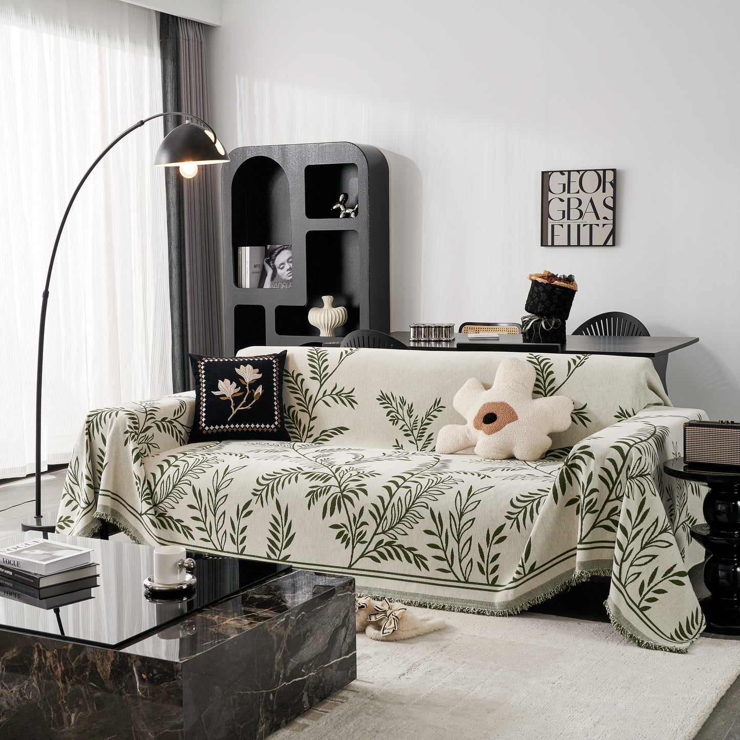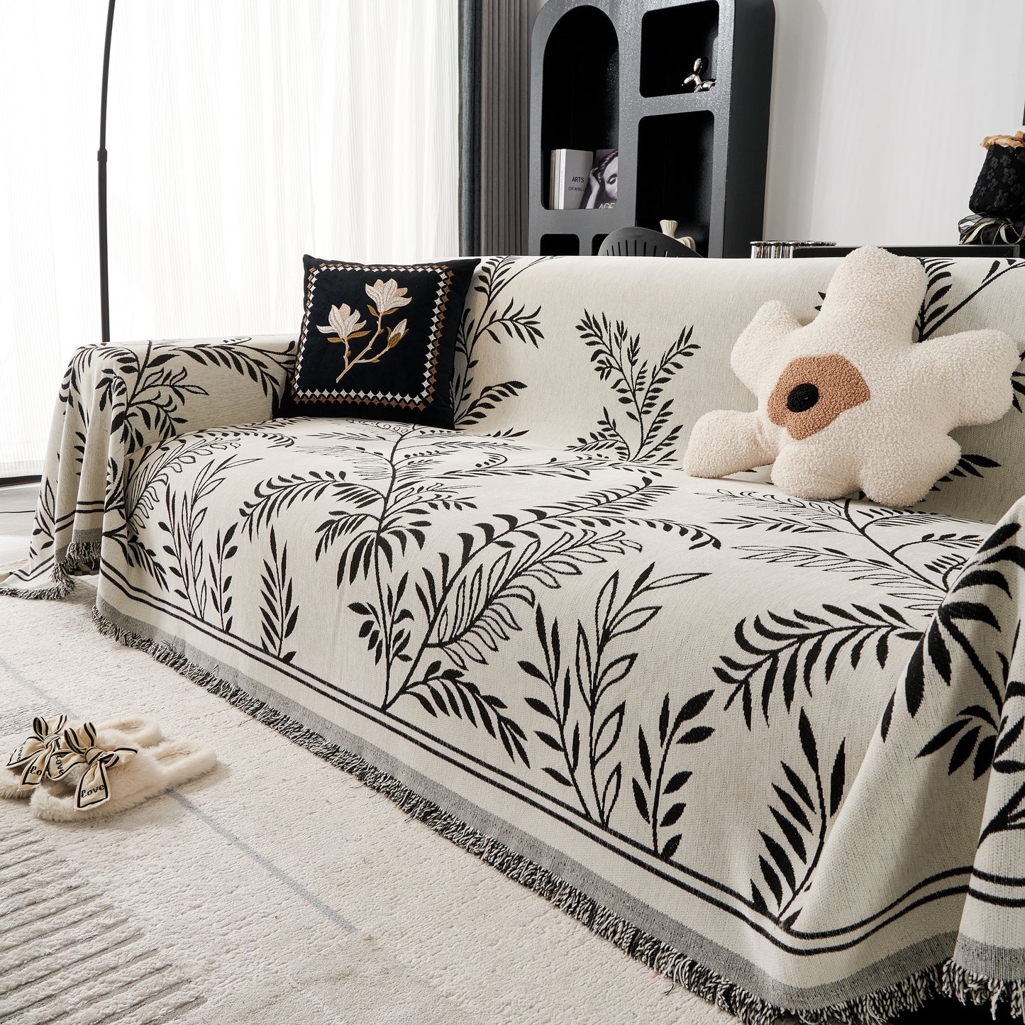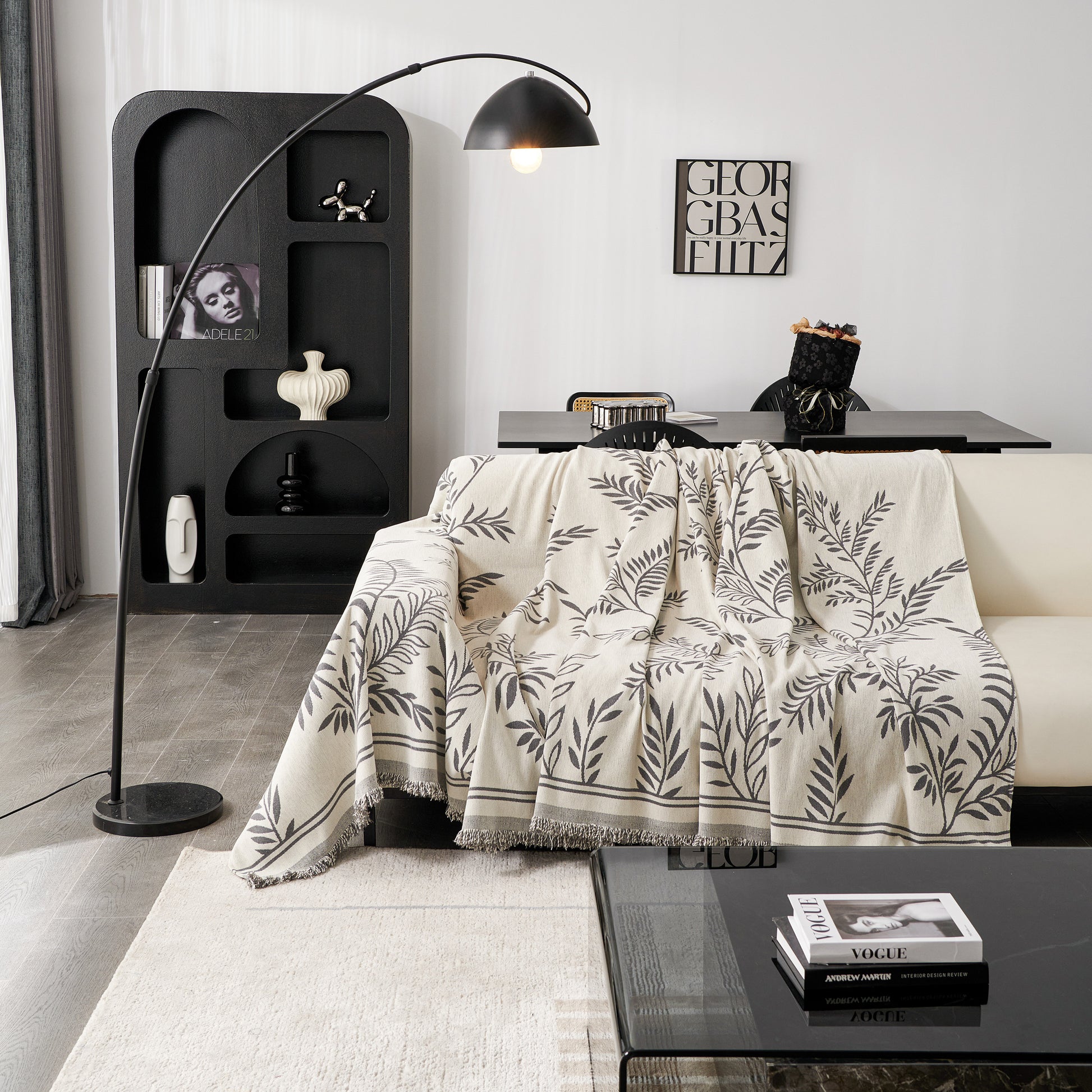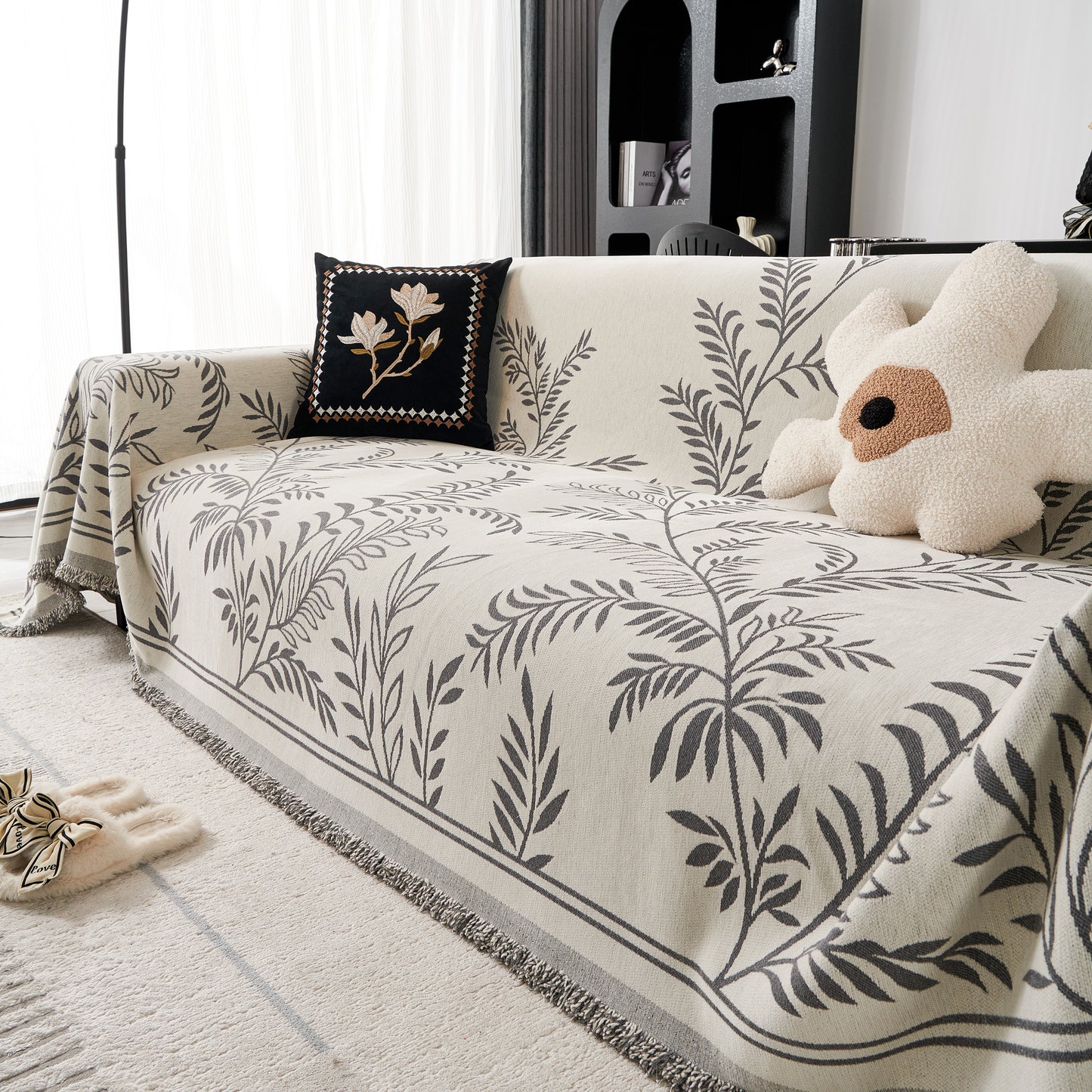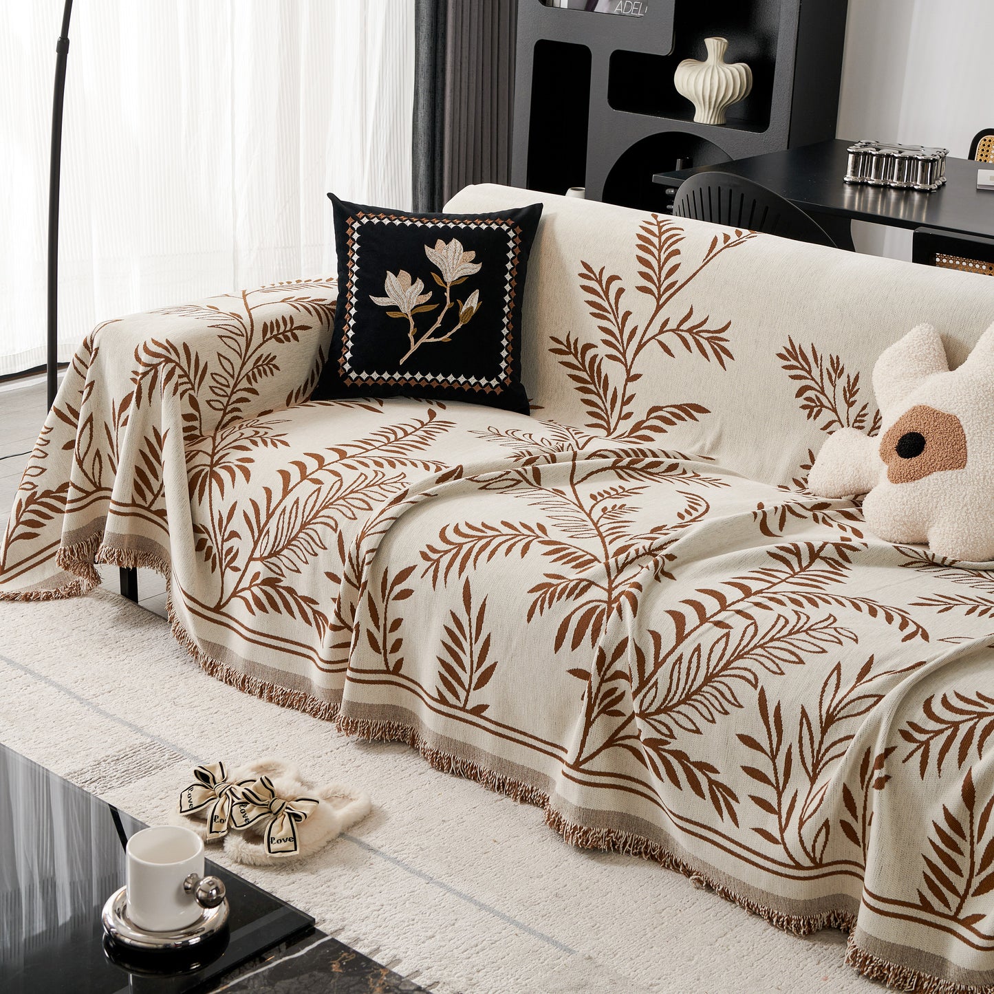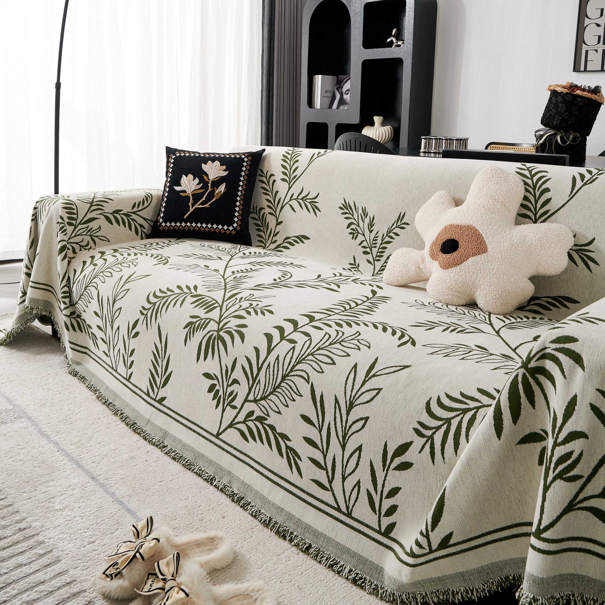 Modern Minimalist Chenille Willow Leaf Pattern Couch Cover Blanket, Luxurious Blankets for The Sofa