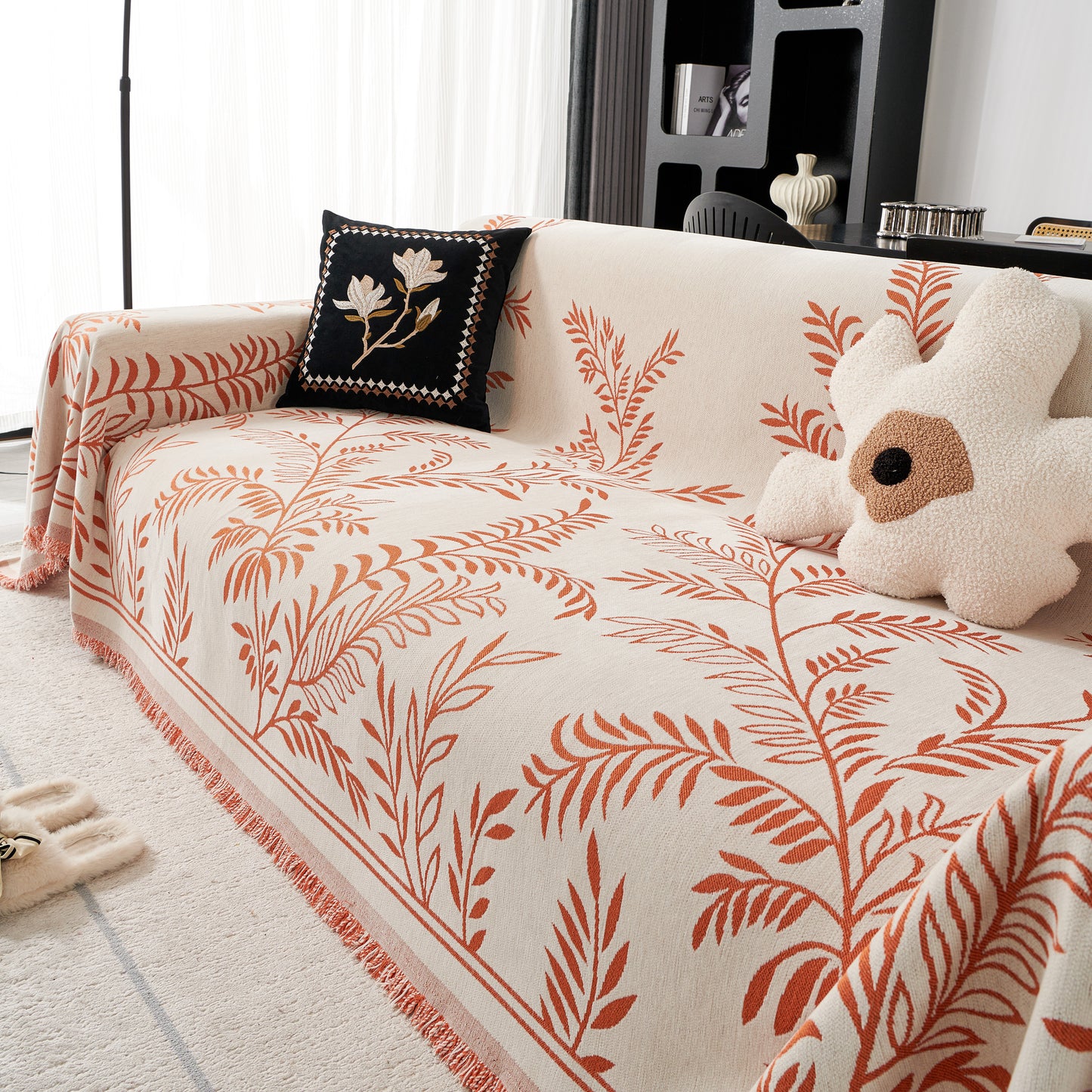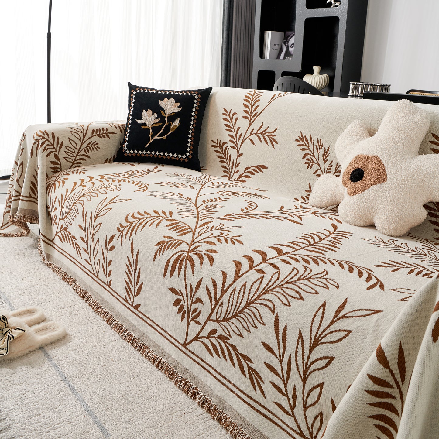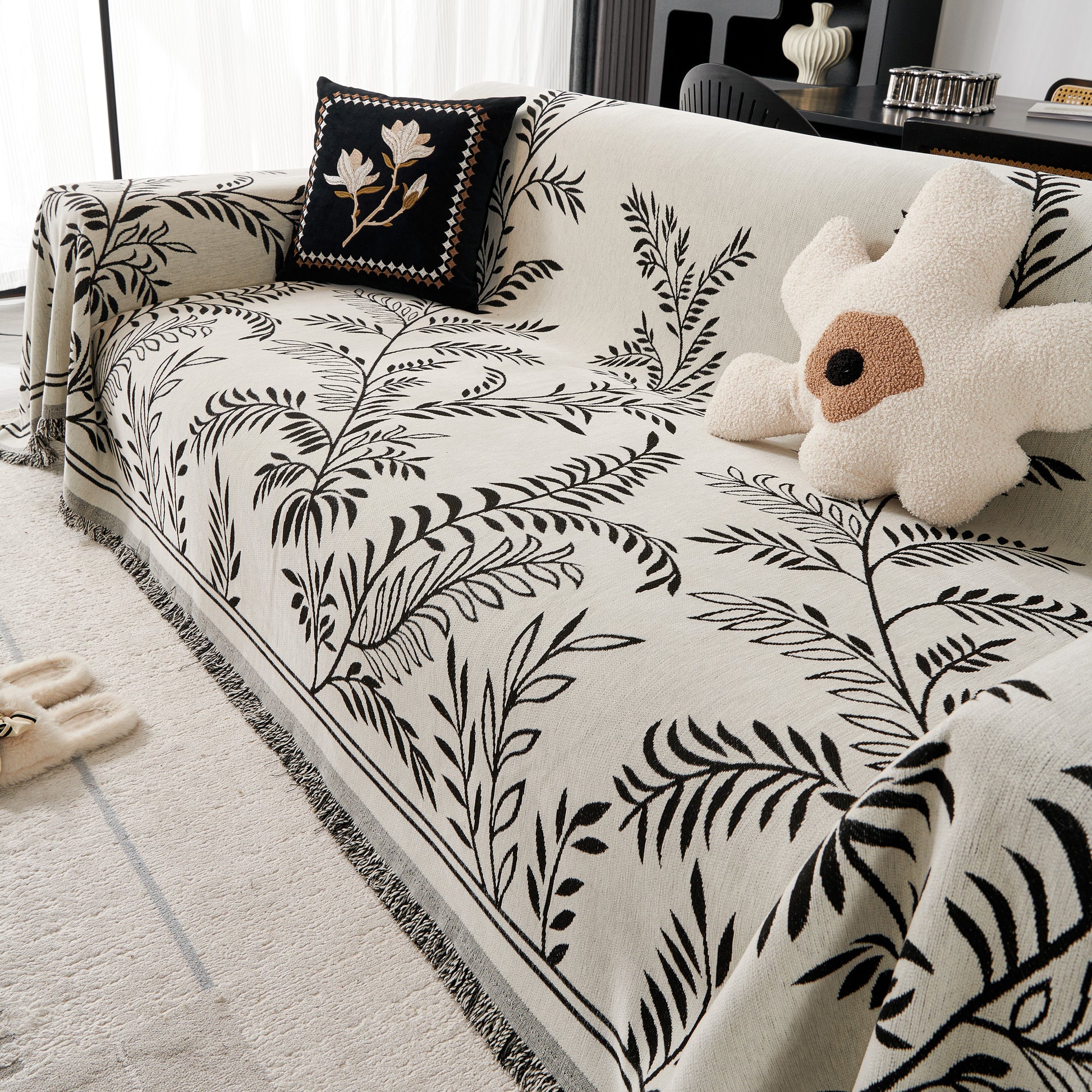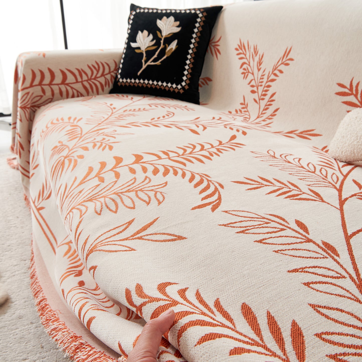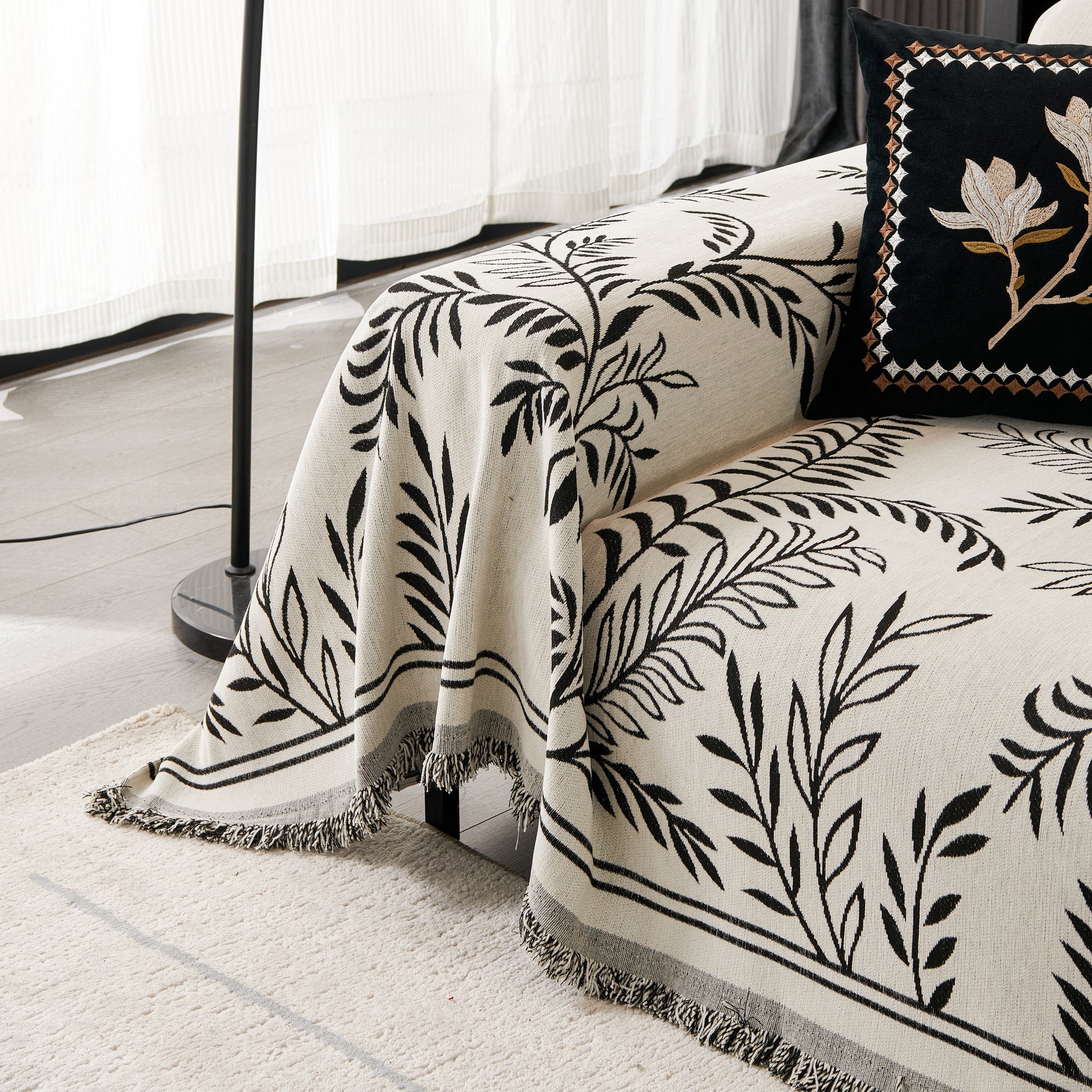 Modern Minimalist Chenille Willow Leaf Pattern Couch Cover Blanket, Luxurious Blankets for The Sofa
