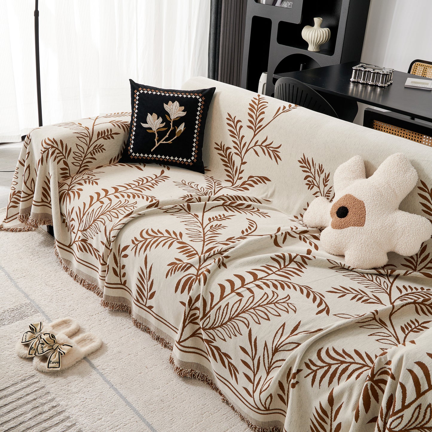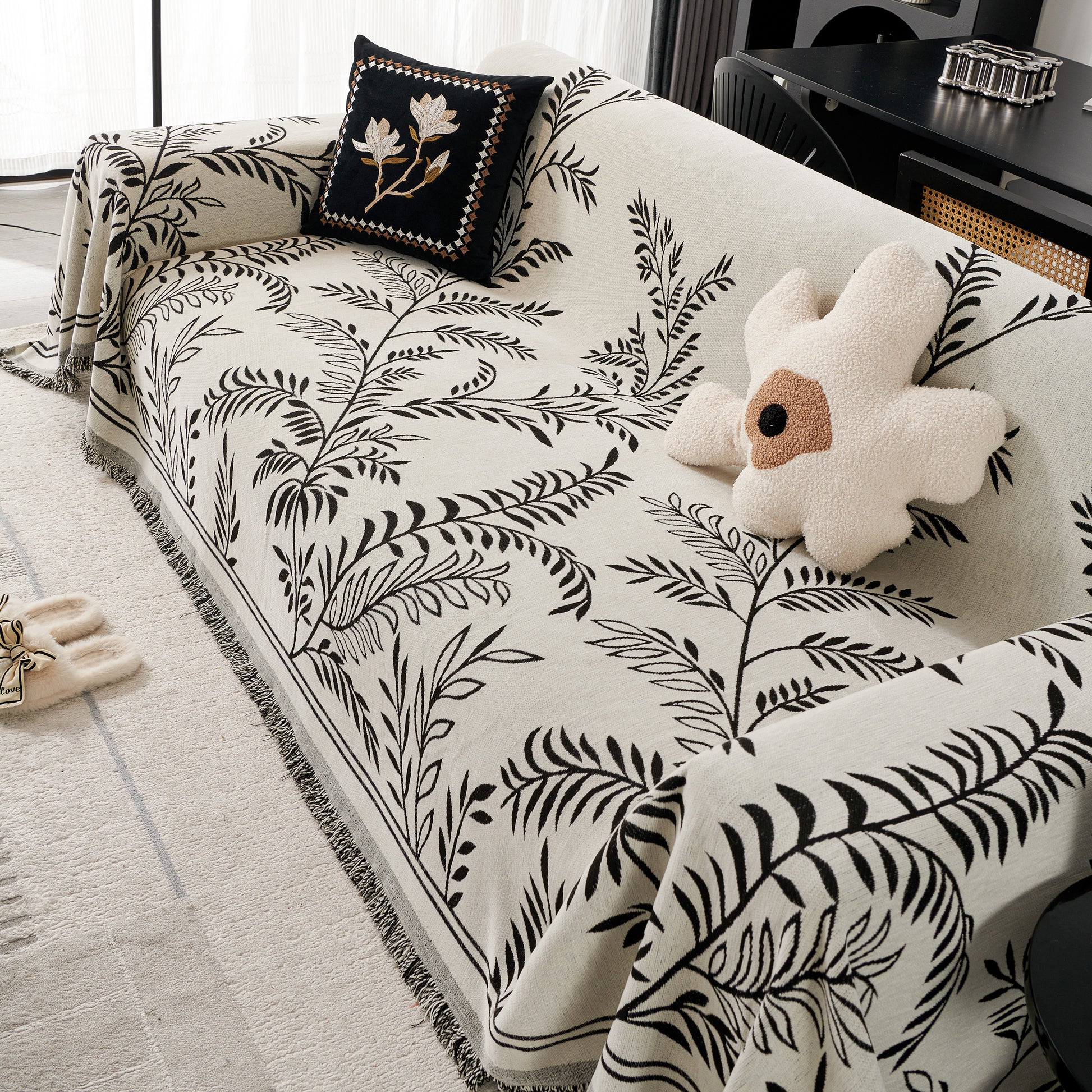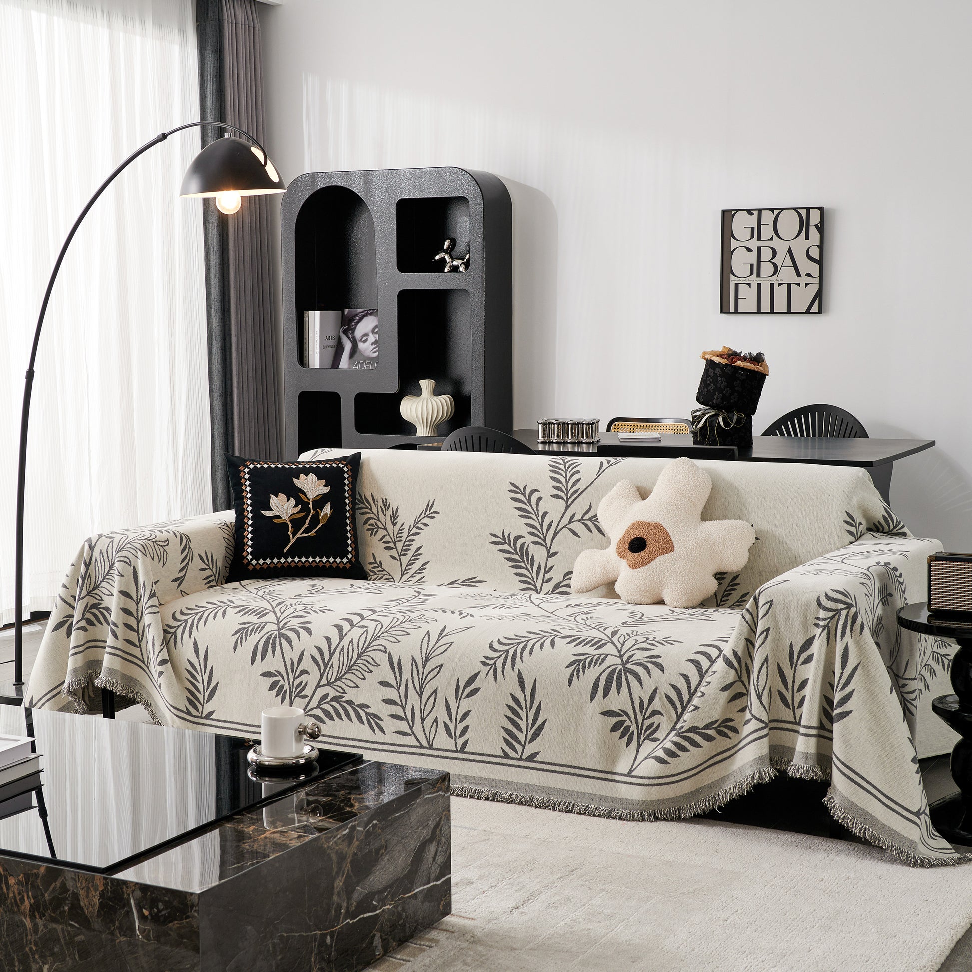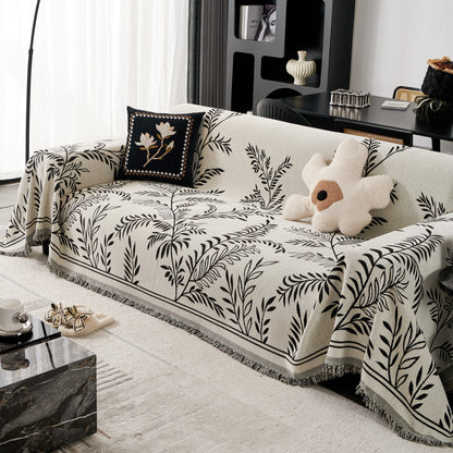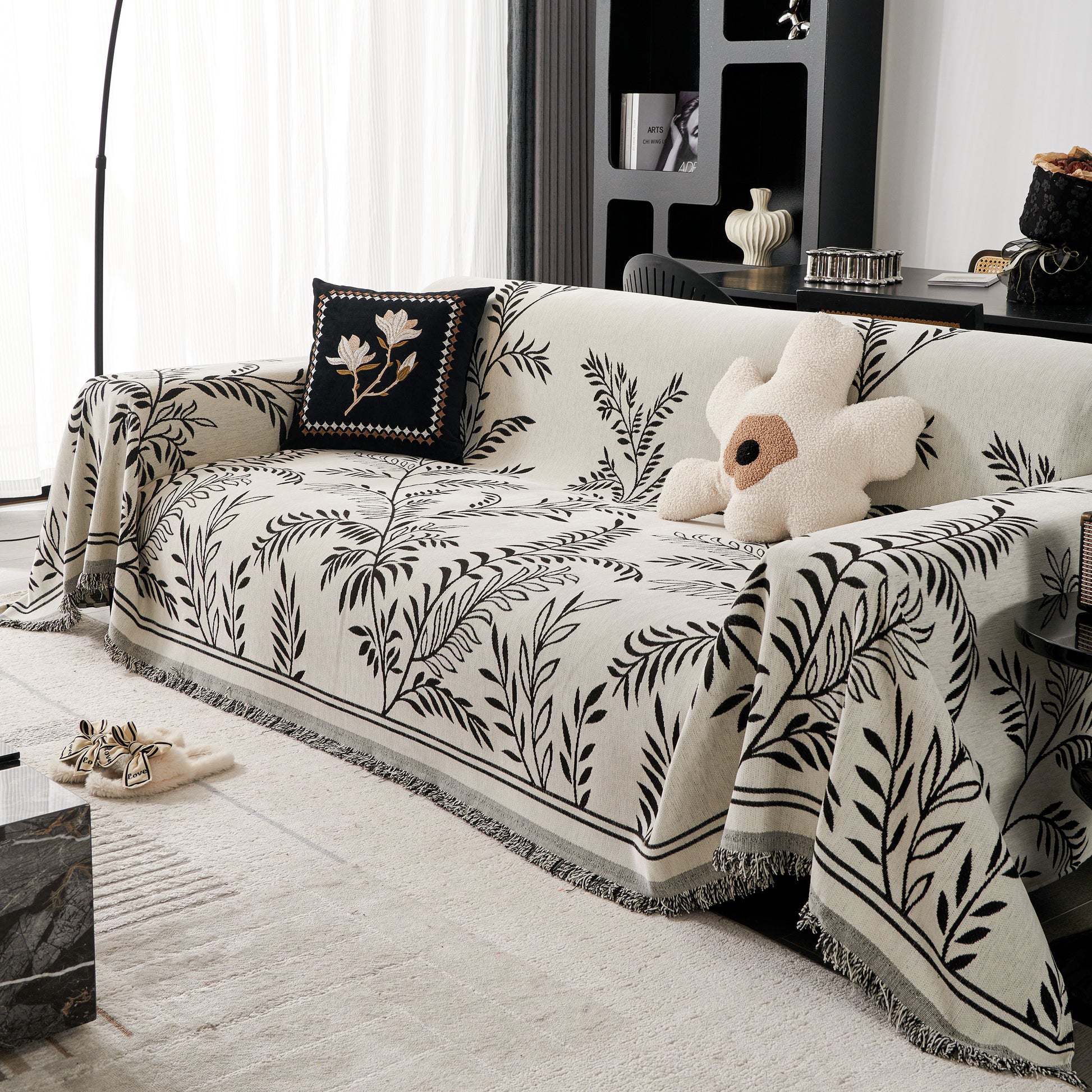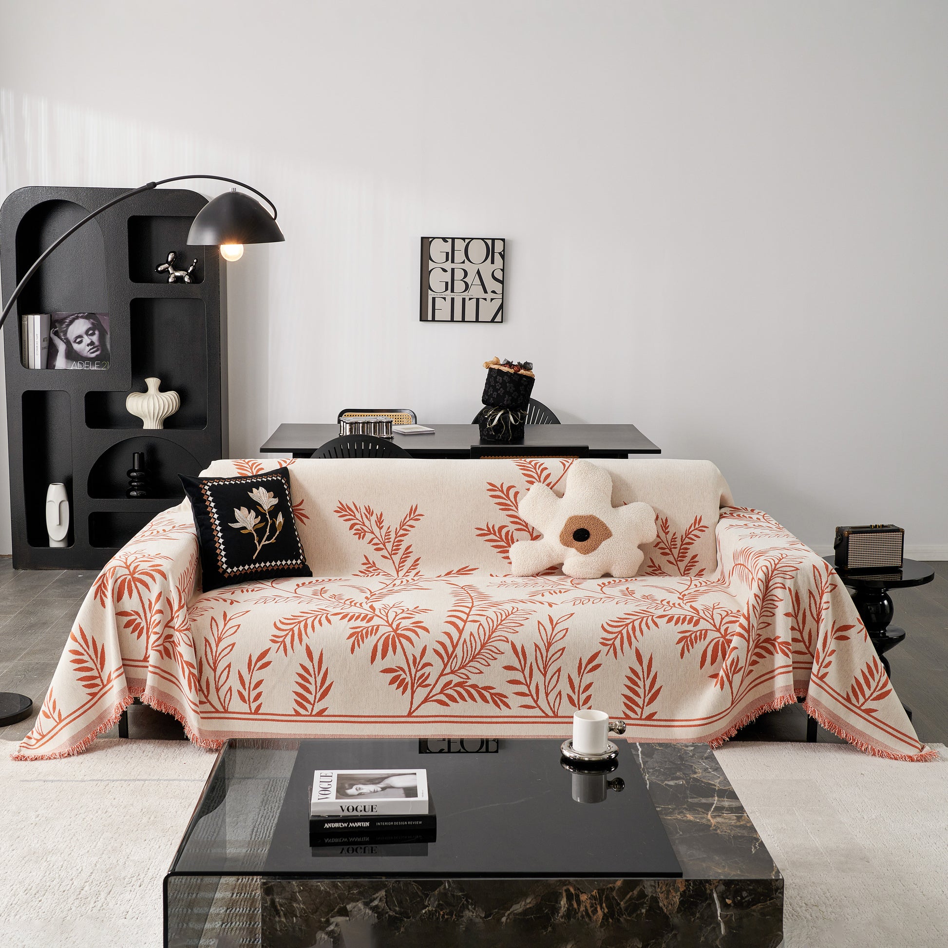 Modern Minimalist Chenille Willow Leaf Pattern Couch Cover Blanket, Luxurious Blankets for The Sofa