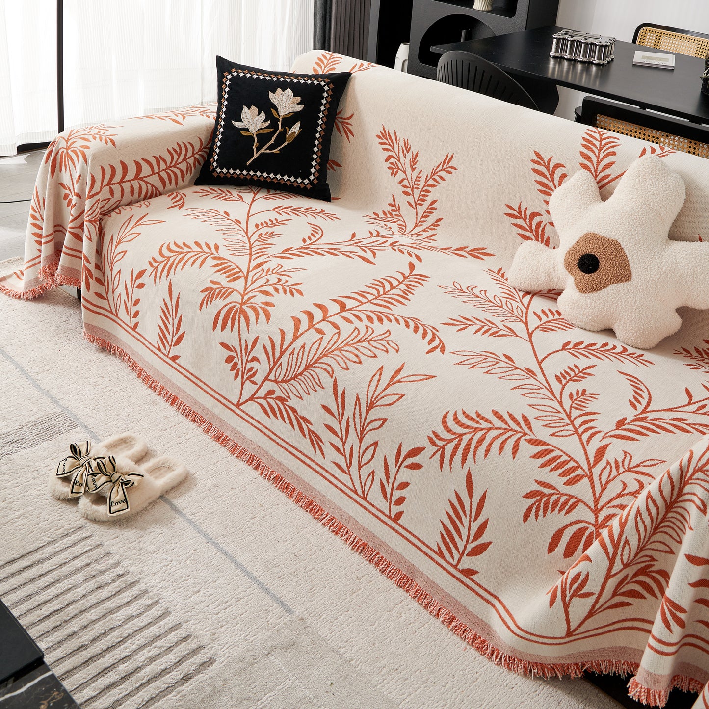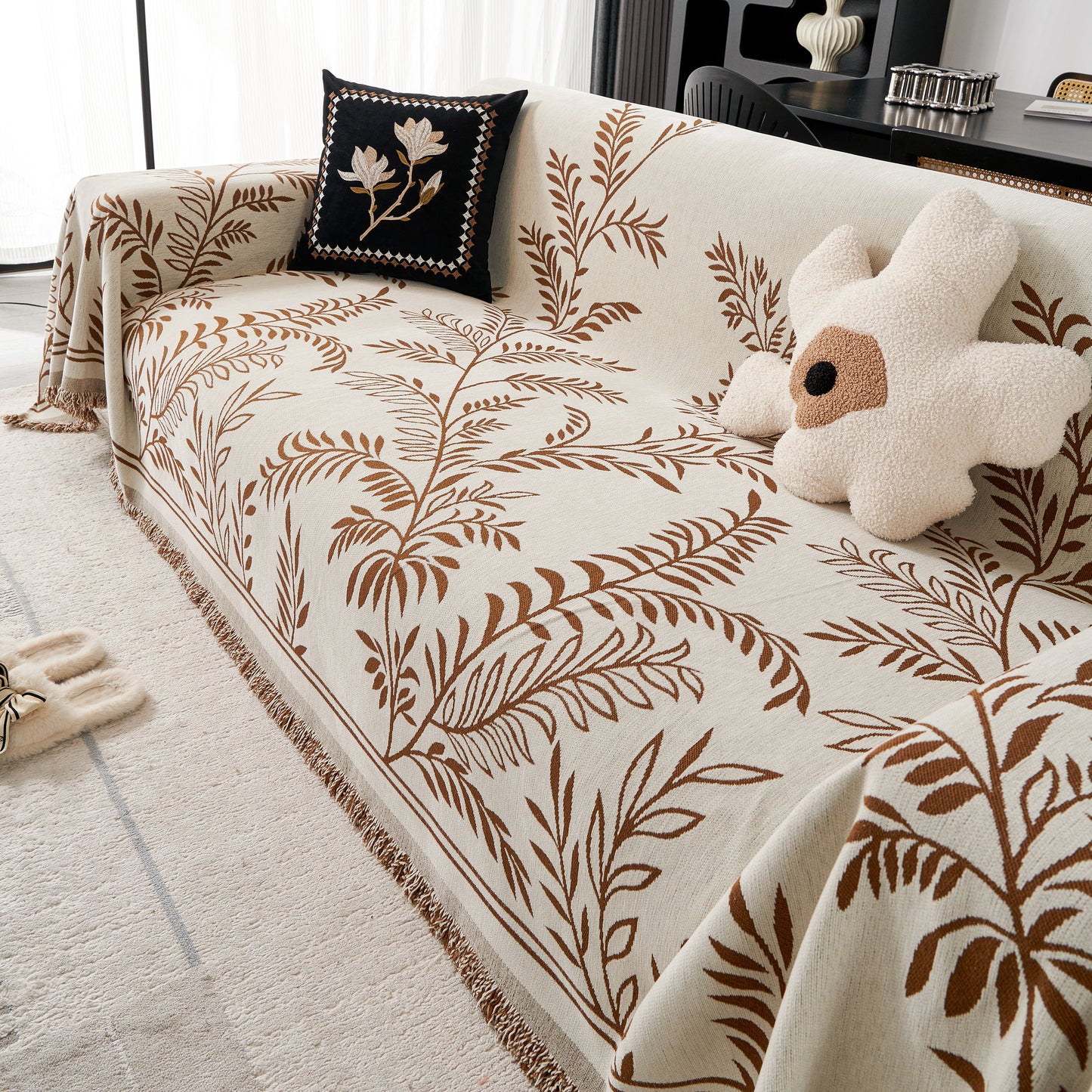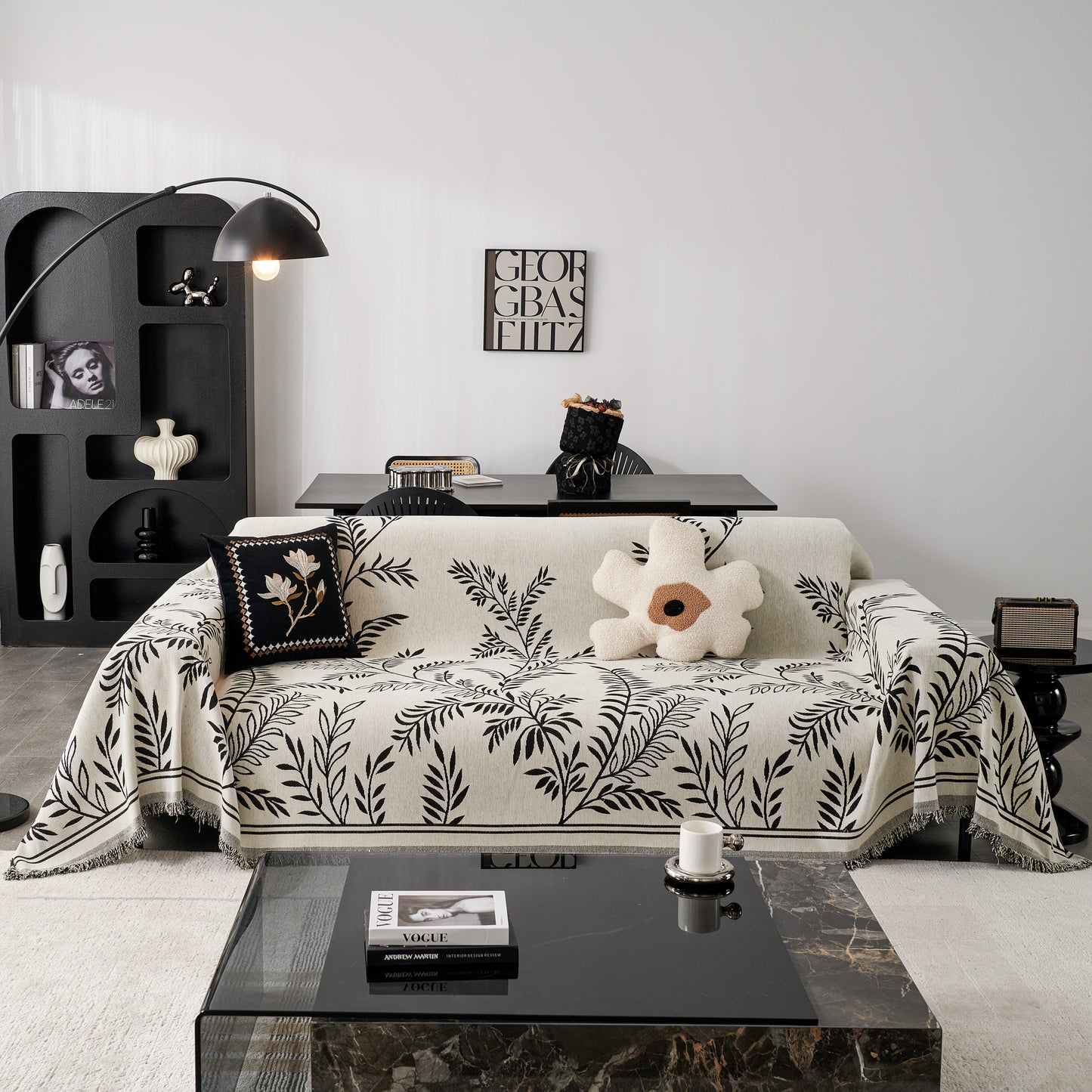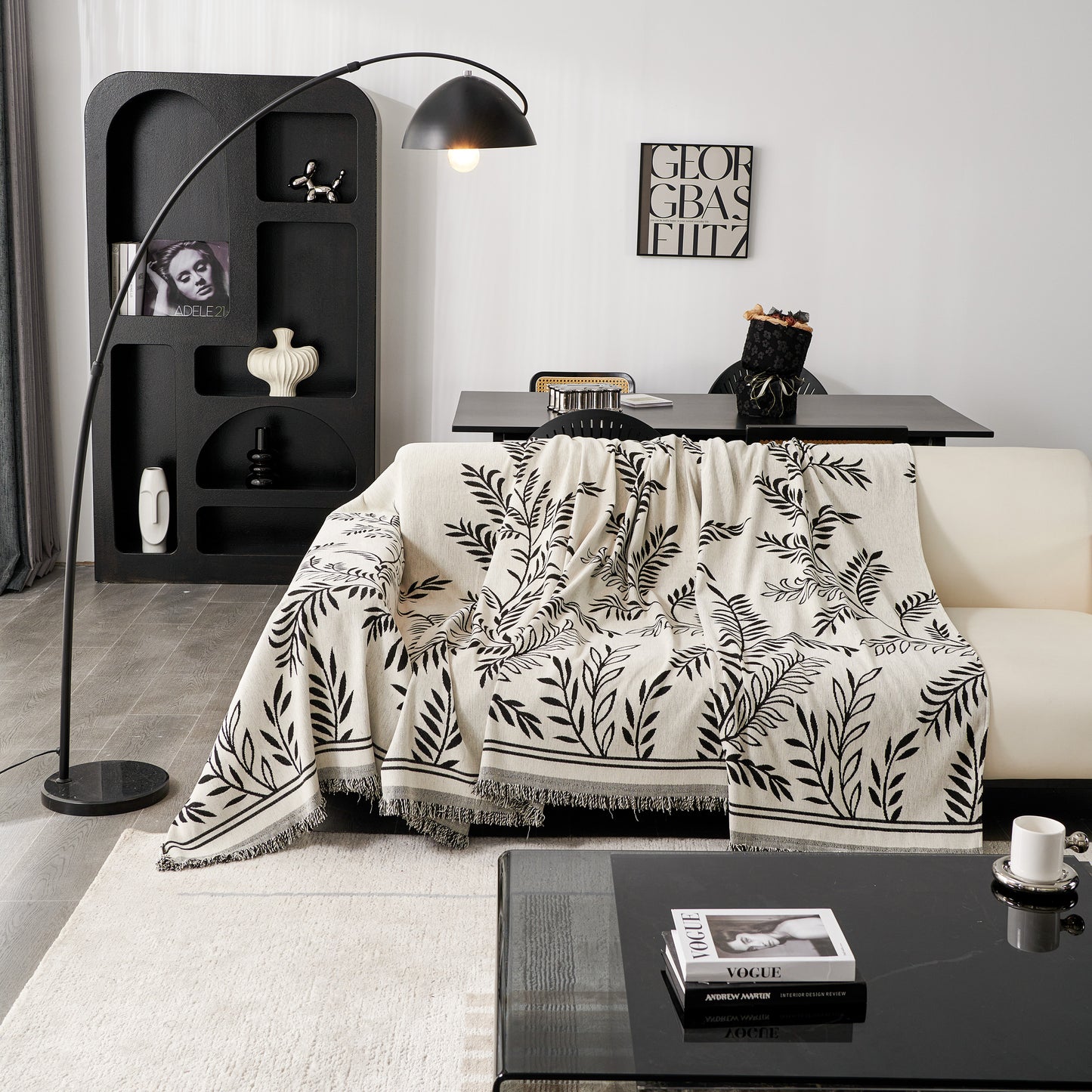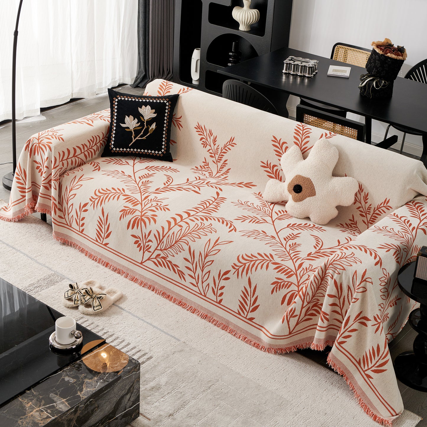 Modern Minimalist Chenille Willow Leaf Pattern Couch Cover Blanket, Luxurious Blankets for The Sofa