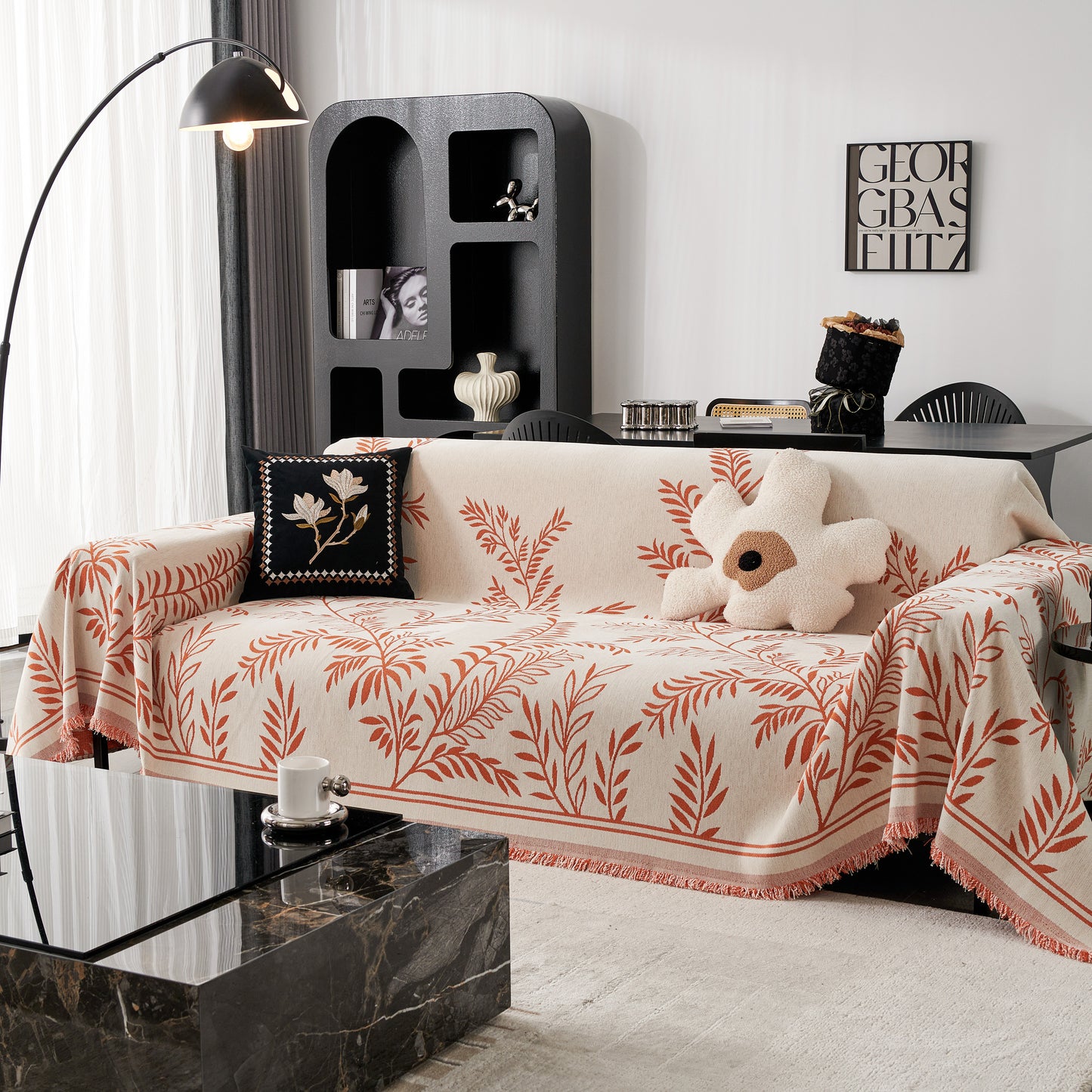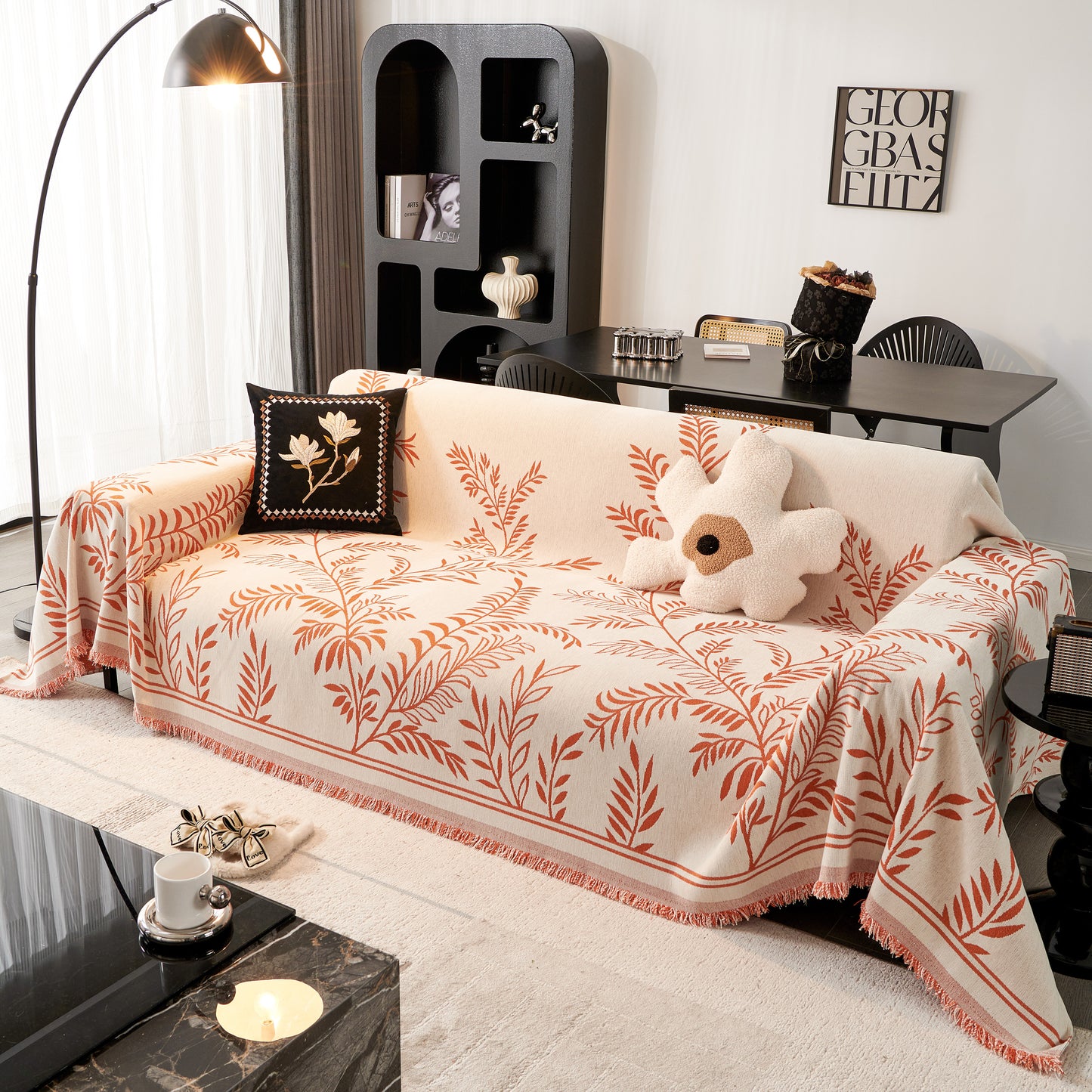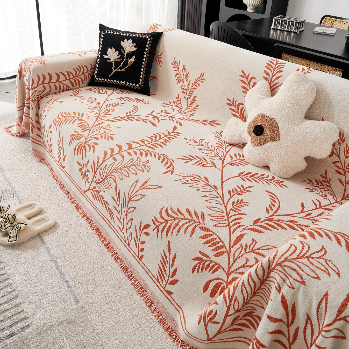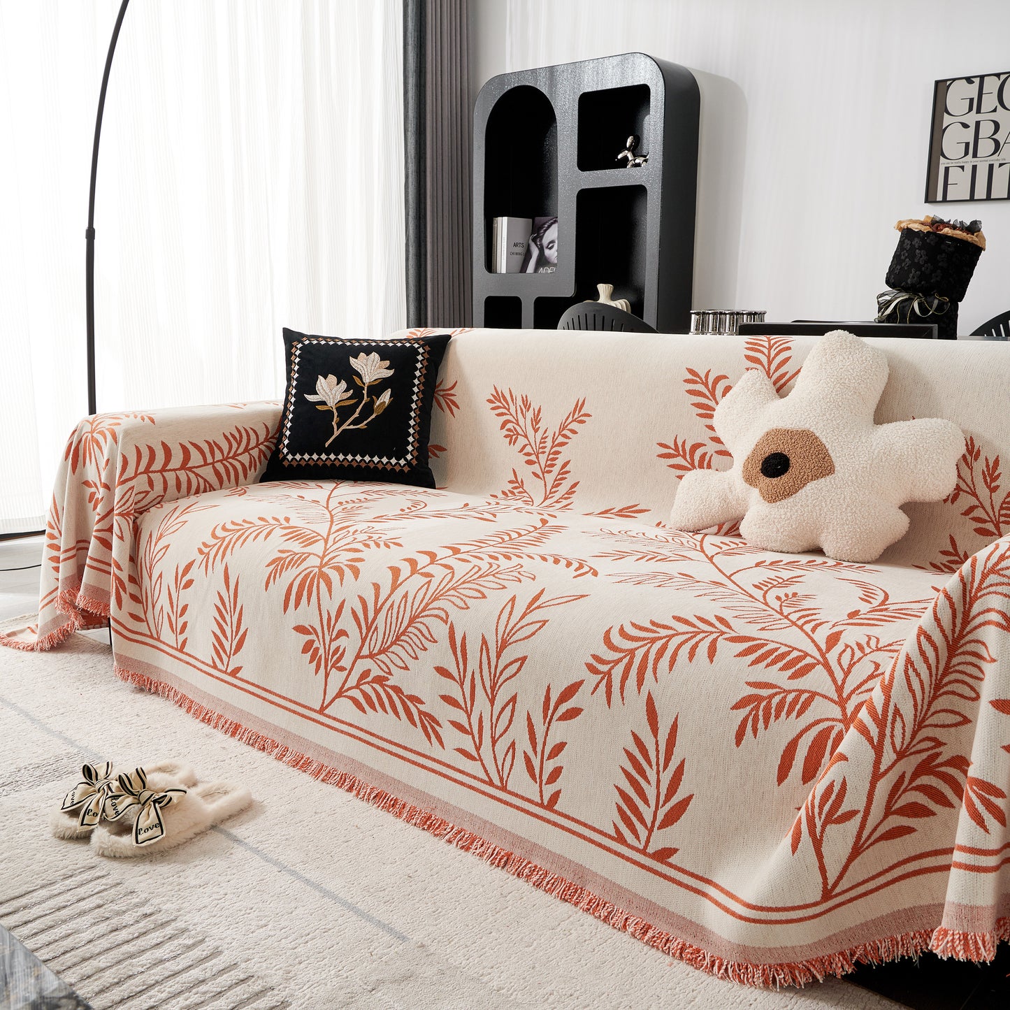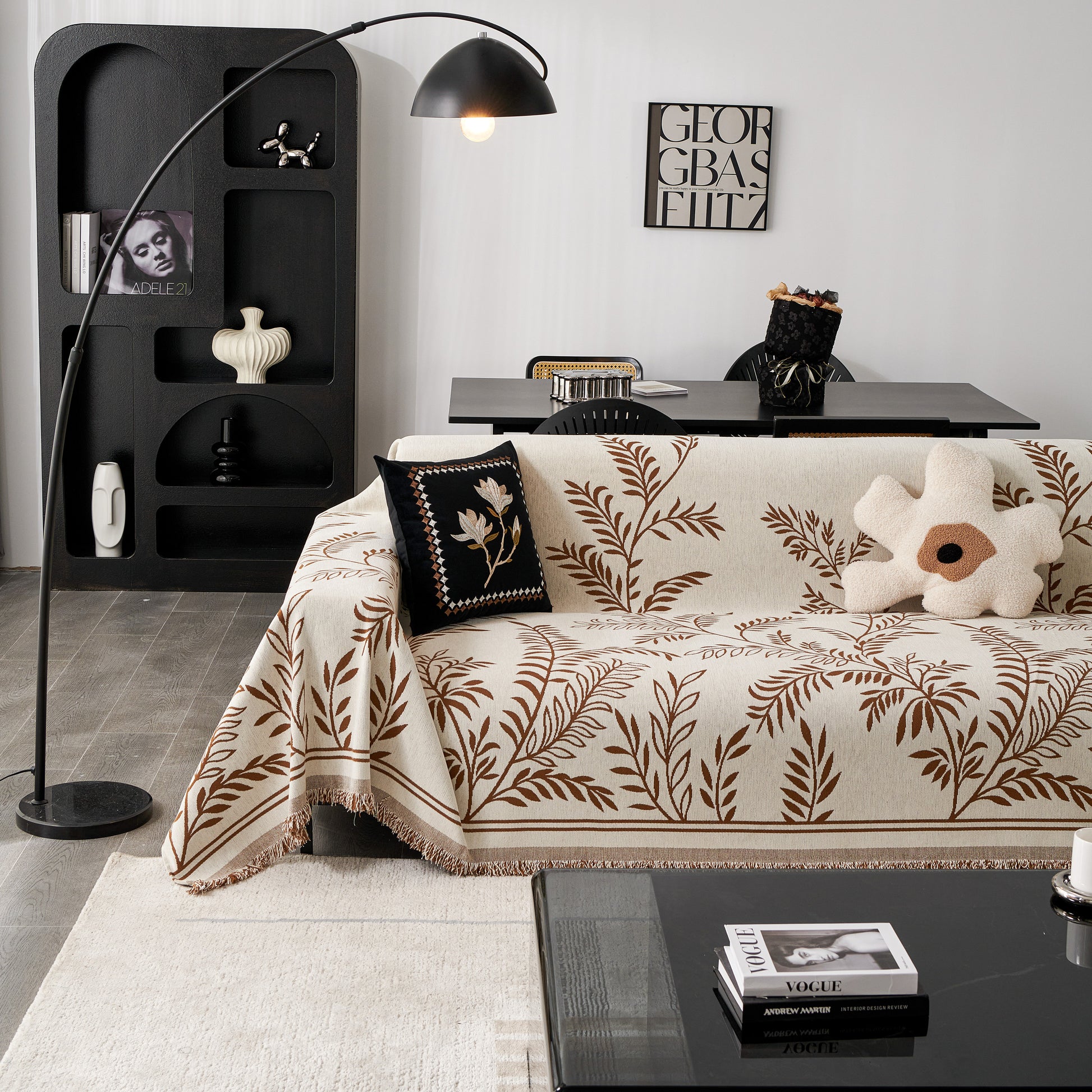 Modern Minimalist Chenille Willow Leaf Pattern Couch Cover Blanket, Luxurious Blankets for The Sofa